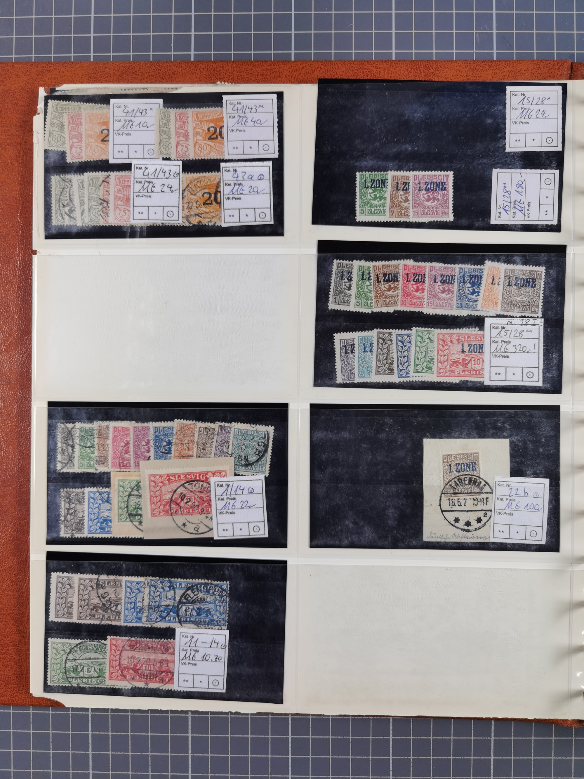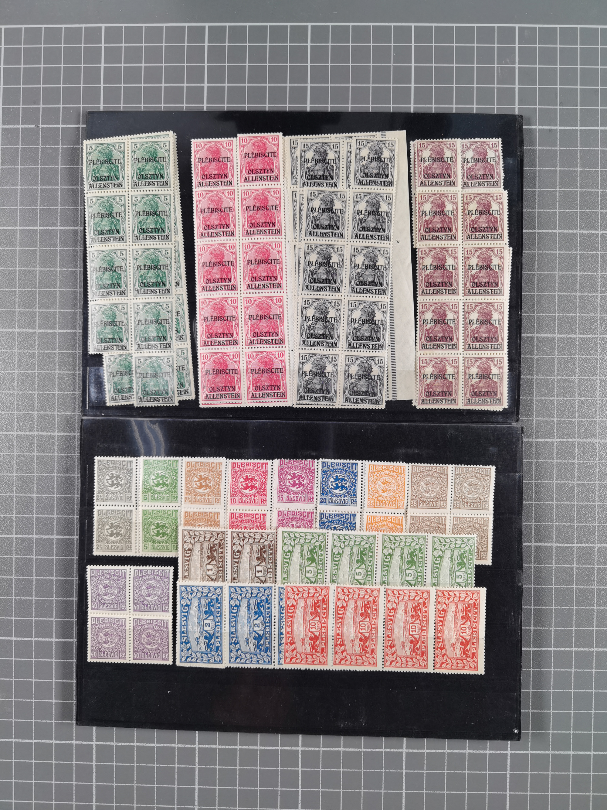 1914/21, ungebrauchte/postfrische und gestempelte Partie, dabei Rumänien Mi.-Nr. 12F 4x in gestempelter und einmal in postfrischer Einheit, Allenstein Mi.-Nr. 1-14 per 10 postfrisch, Schleswig Mi.-Nr. 1-14 per 15 postfrisch, Saar mit besseren etc., alles sauber auf Steckkarten