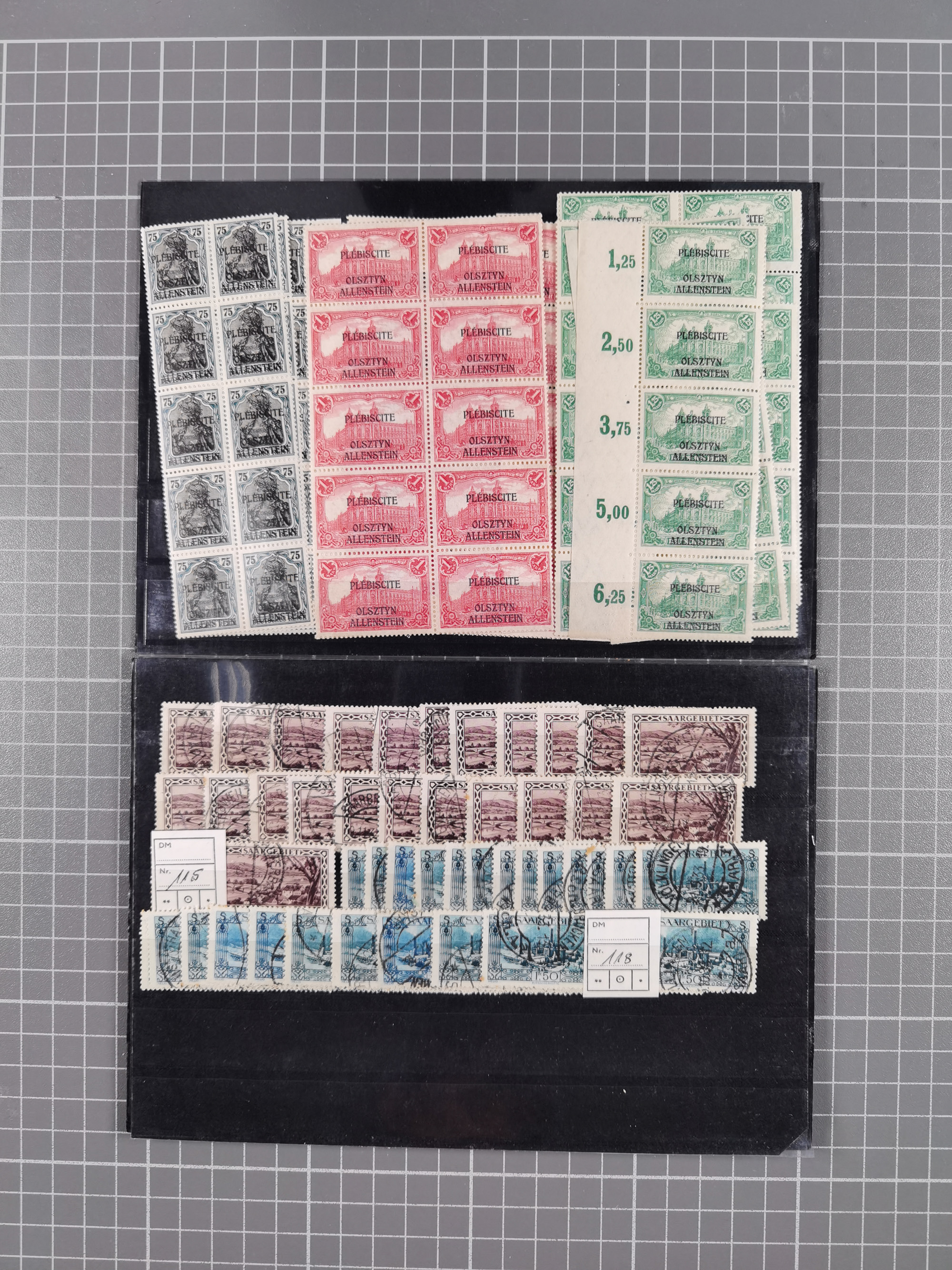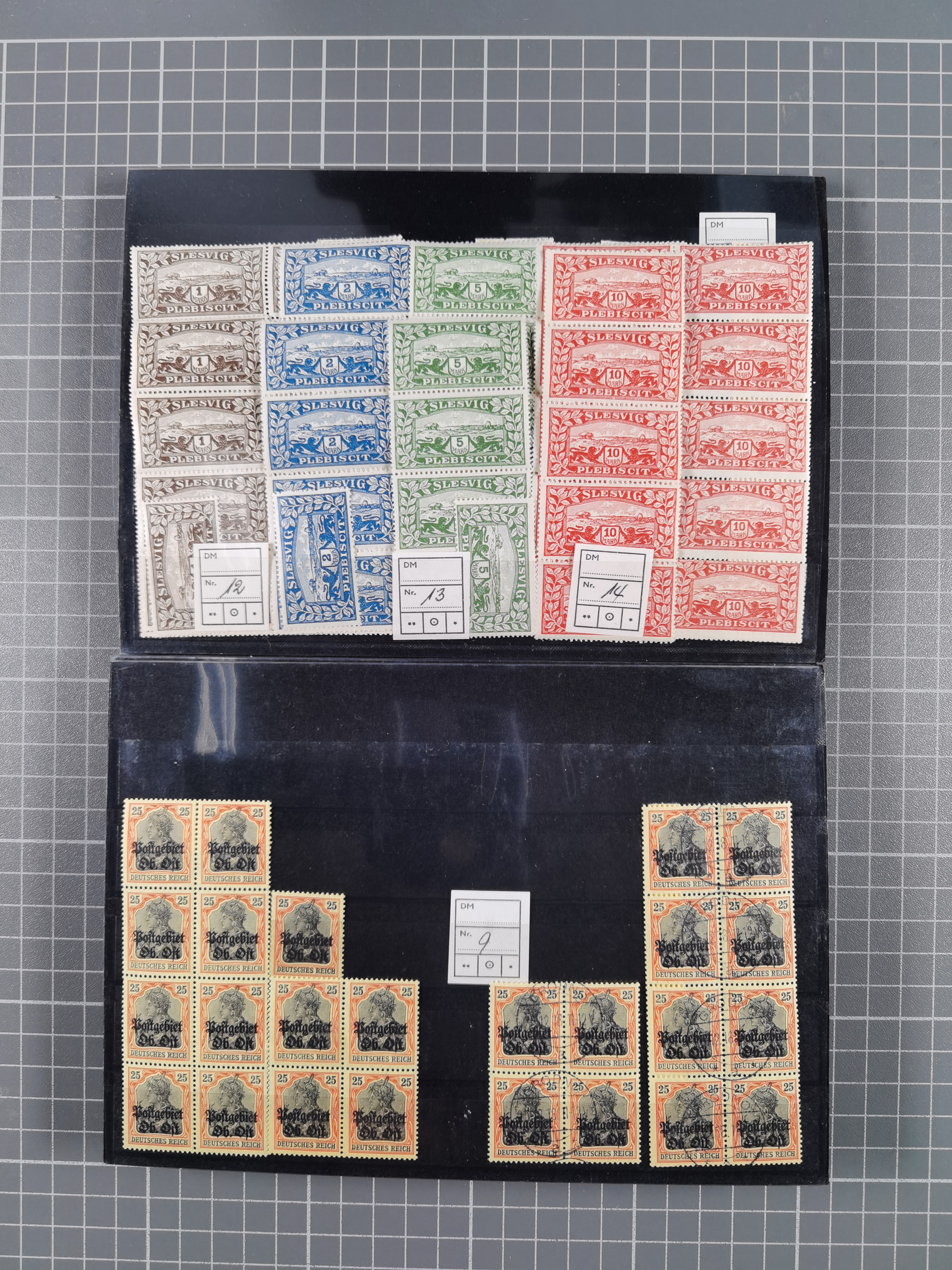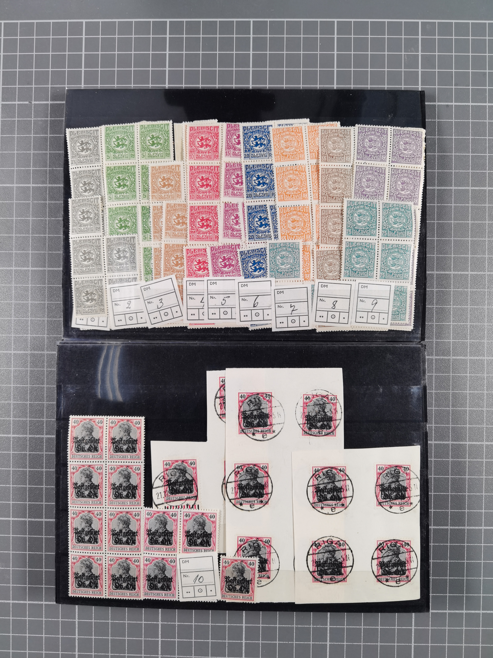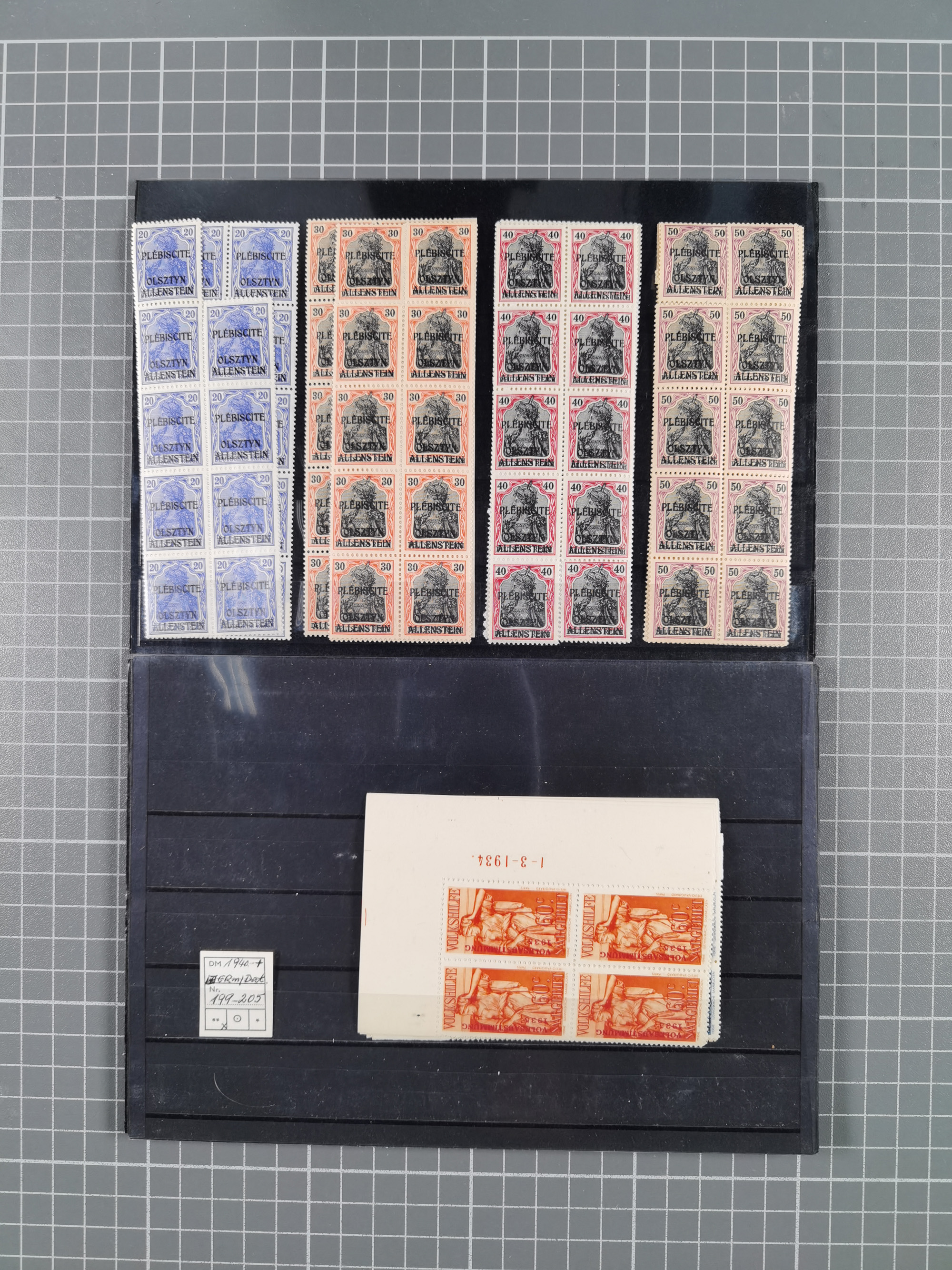 1914/39, meist ungebrauchter und gestempelter Doubletten-Bestand Bes. I. WK, Abstimmungsgebiete sowie Danzig und Memel in Steckbüchern. Dazu unterschiedlich stark besetztes Lagerbuch Danzig
