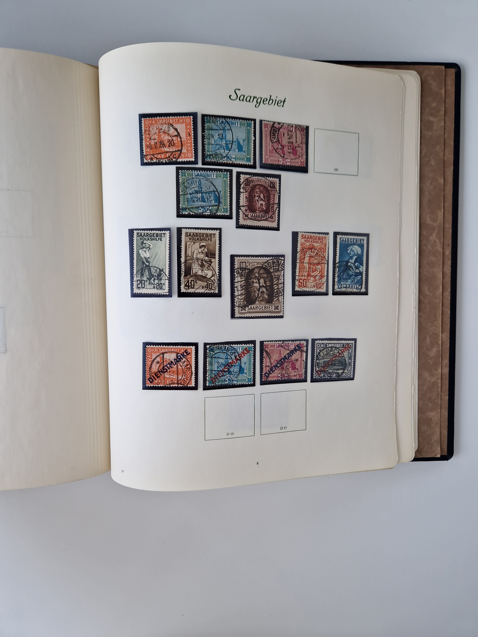 1880/1980 (ca.), alte Sammlung in 3 Bänden, dabei schöne Teile Saar, Danzig und Kolonien sowie Deutschland nach 1945