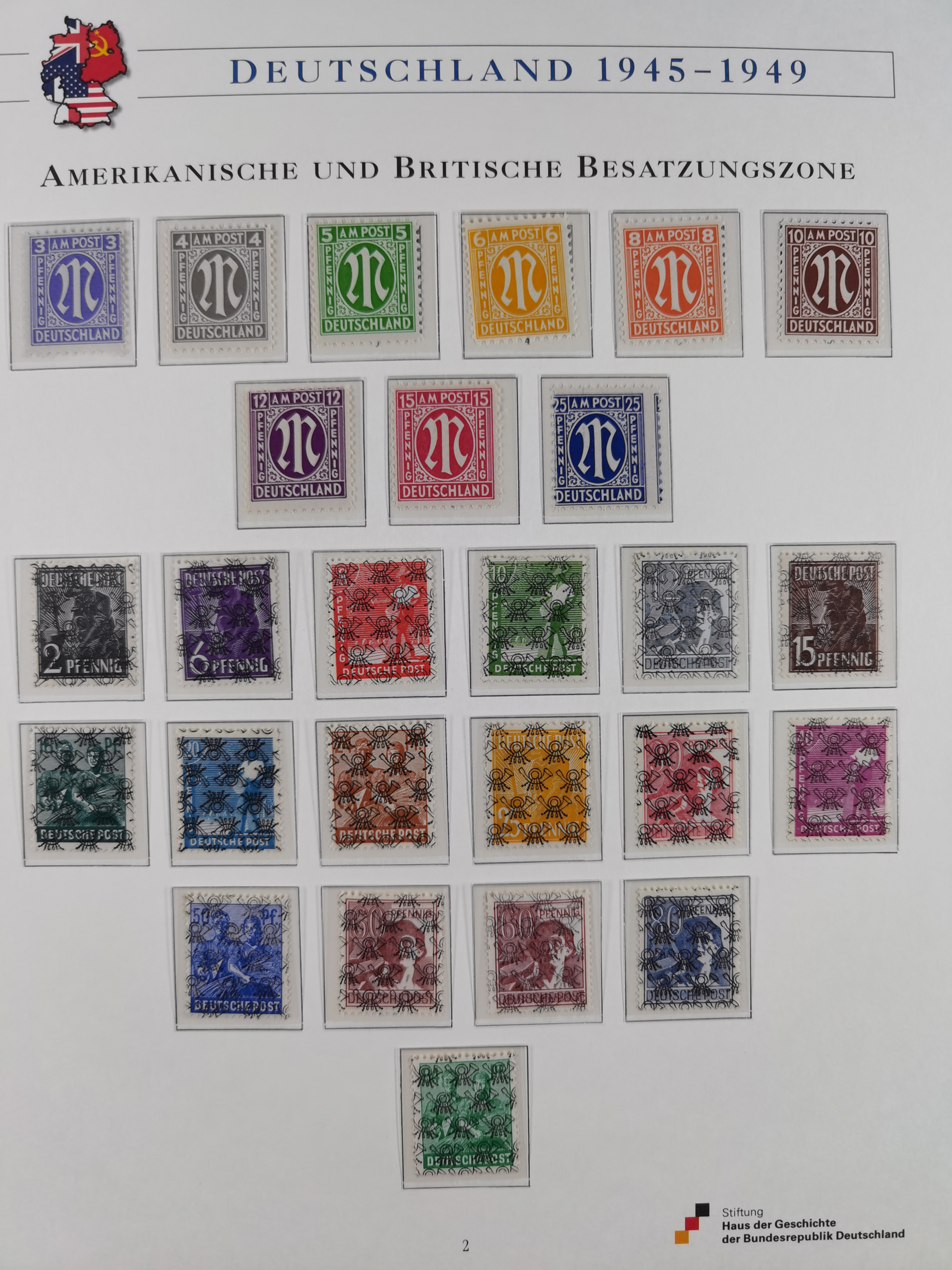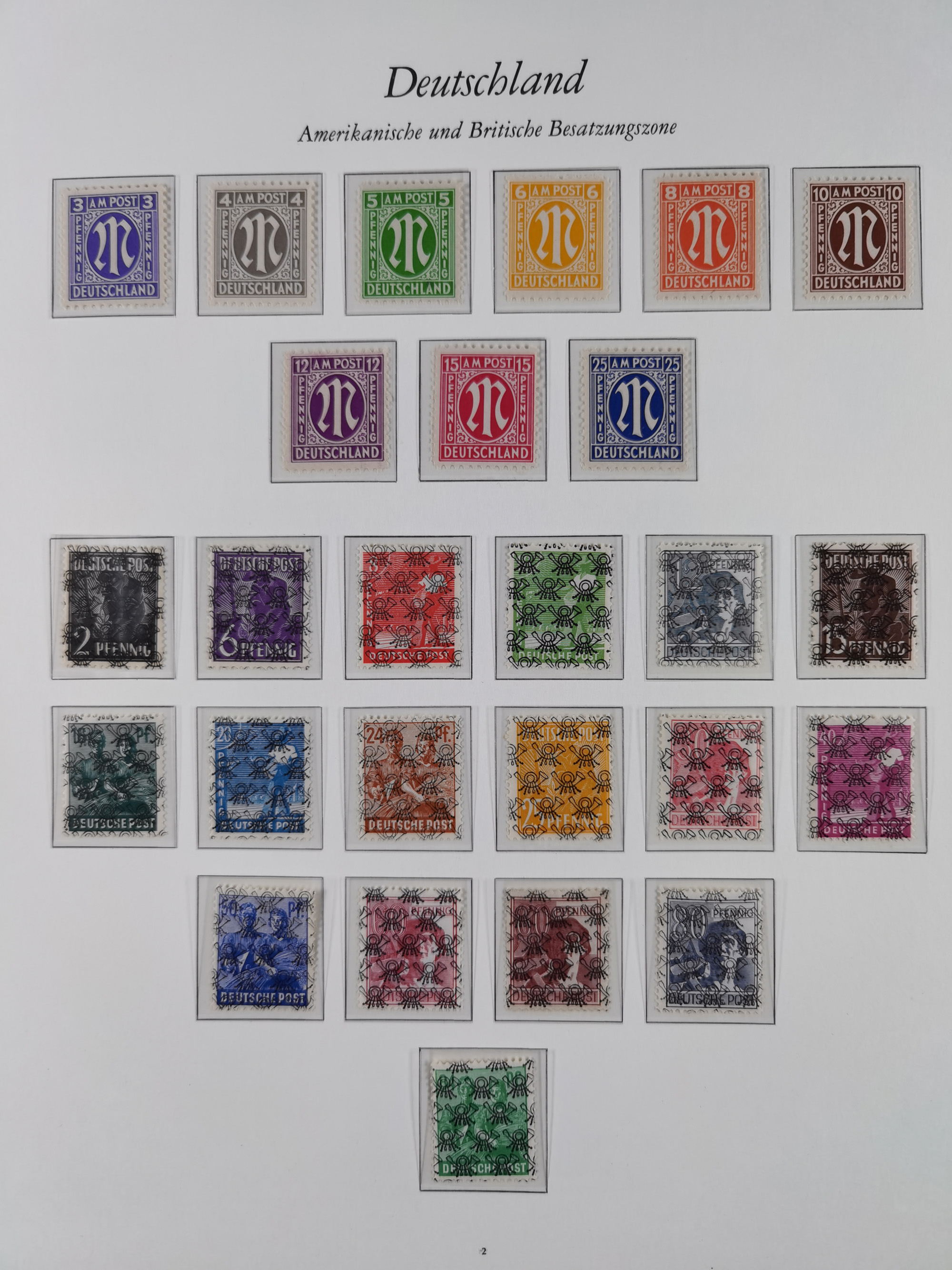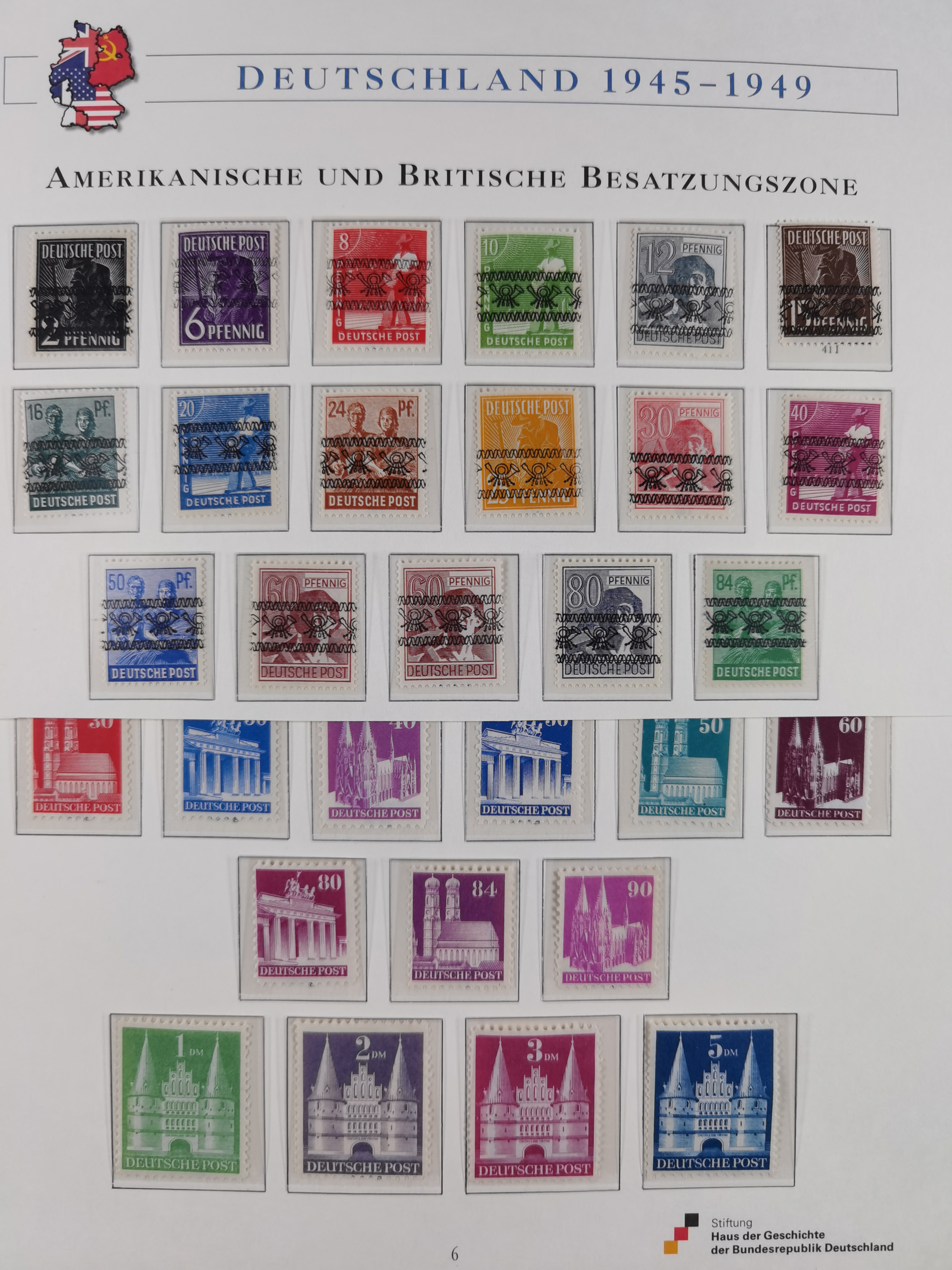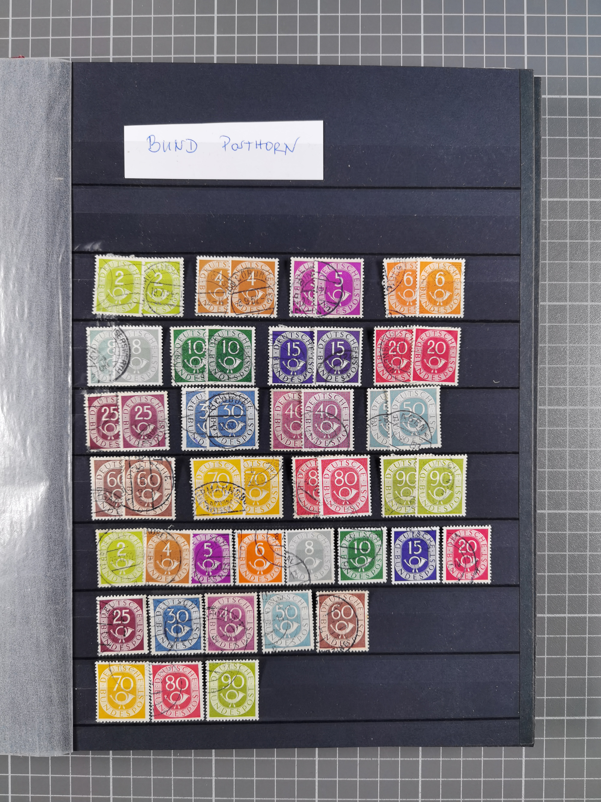1945/80 (ca.), postfrischer, ungebrauchter und gestempelter Sammlungsbestand in 9 Alben, dabei Bizone mit Mi. 52-68 I+II und Bl. 1c, Bund mit Posthorn und Berlin mit Bl. 1 (2, einmal mit Sstpl.)