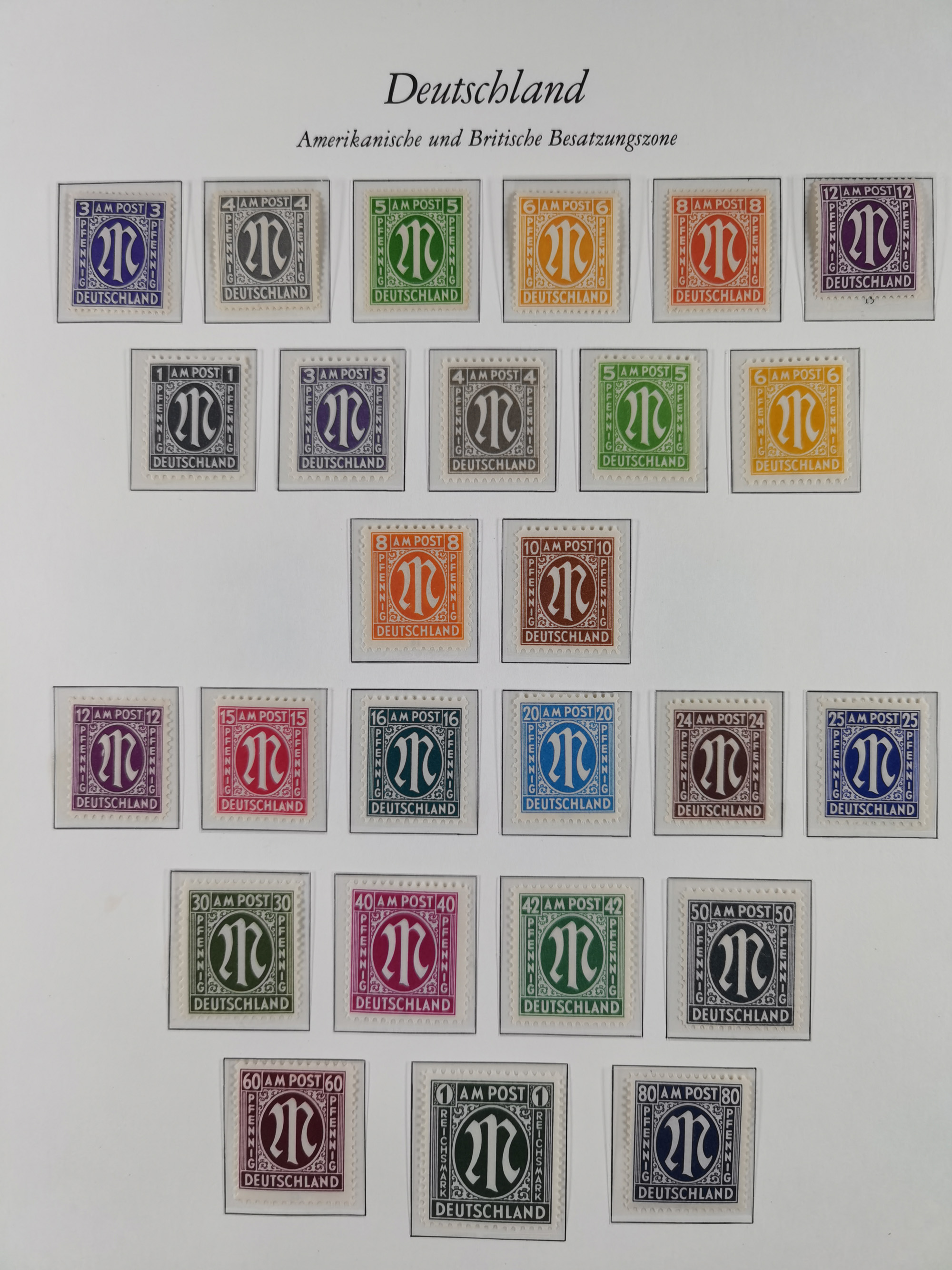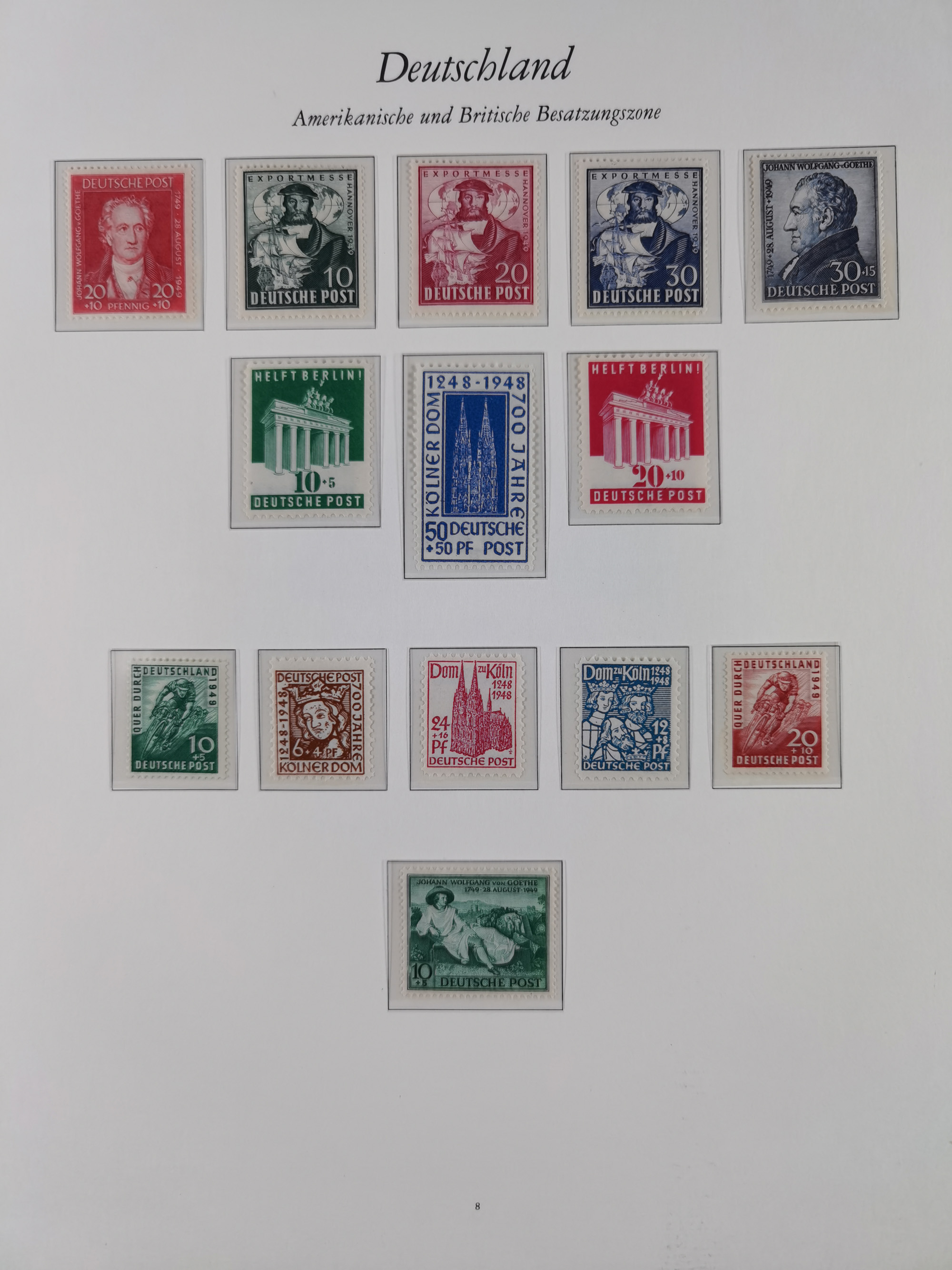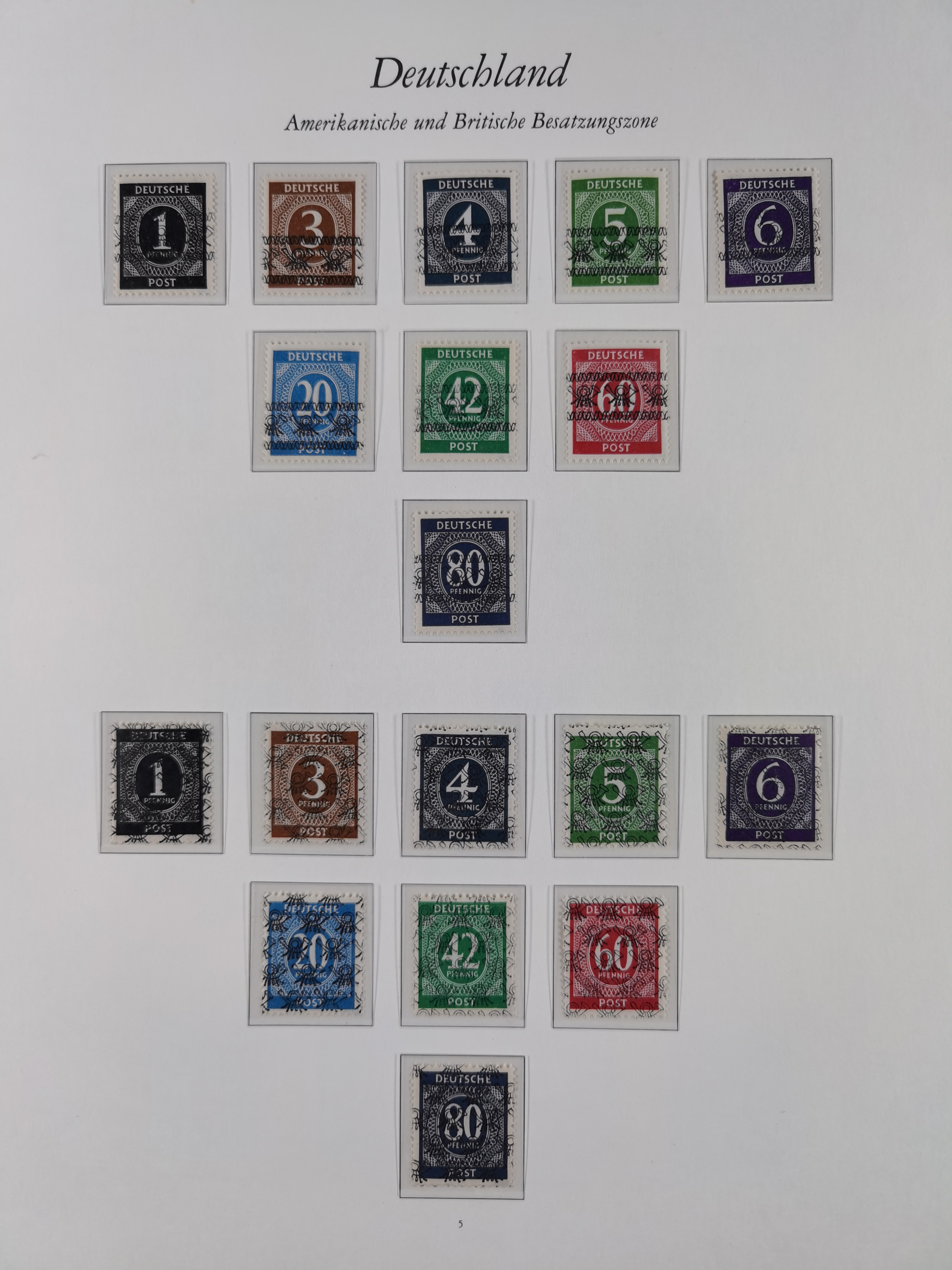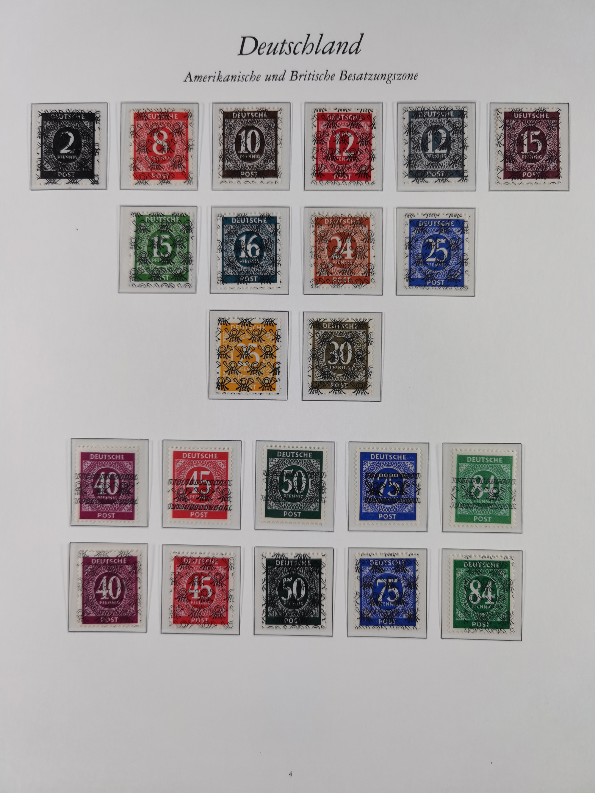 1945/80 (ca.), postfrischer, ungebrauchter und gestempelter Sammlungsbestand in 9 Alben, dabei Bizone mit Mi. 52-68 I+II und Bl. 1c, Bund mit Posthorn und Berlin mit Bl. 1 (2, einmal mit Sstpl.)