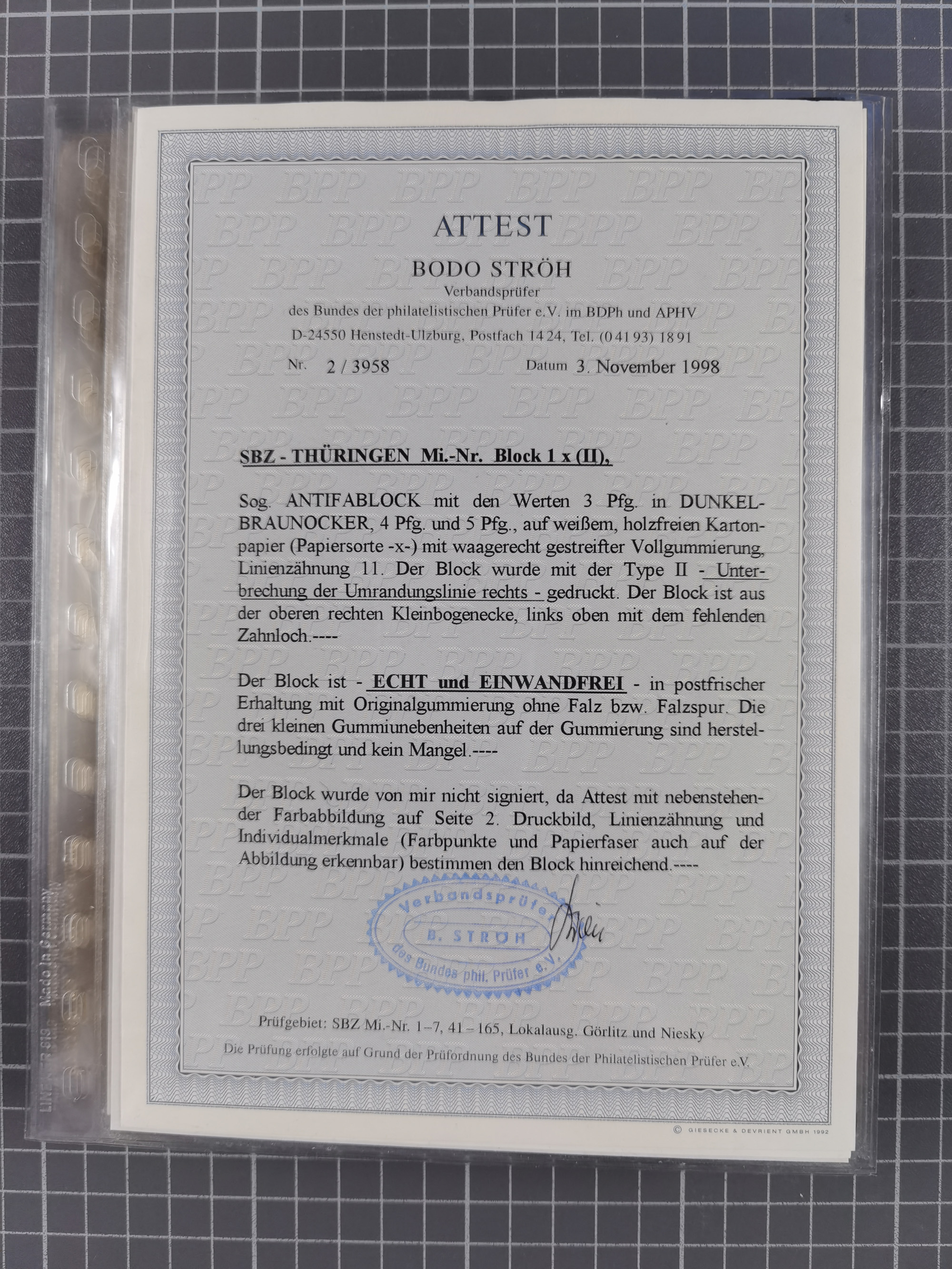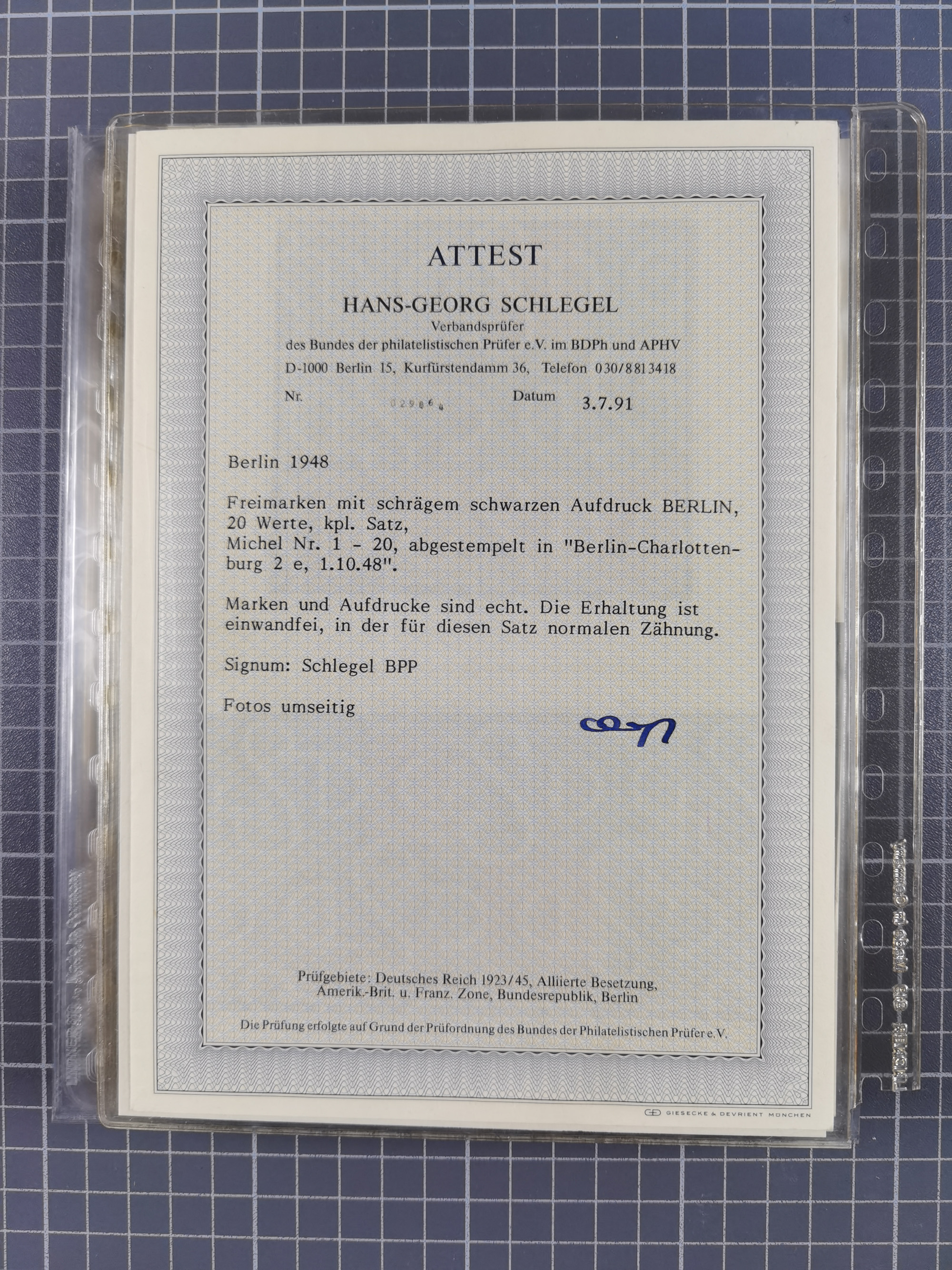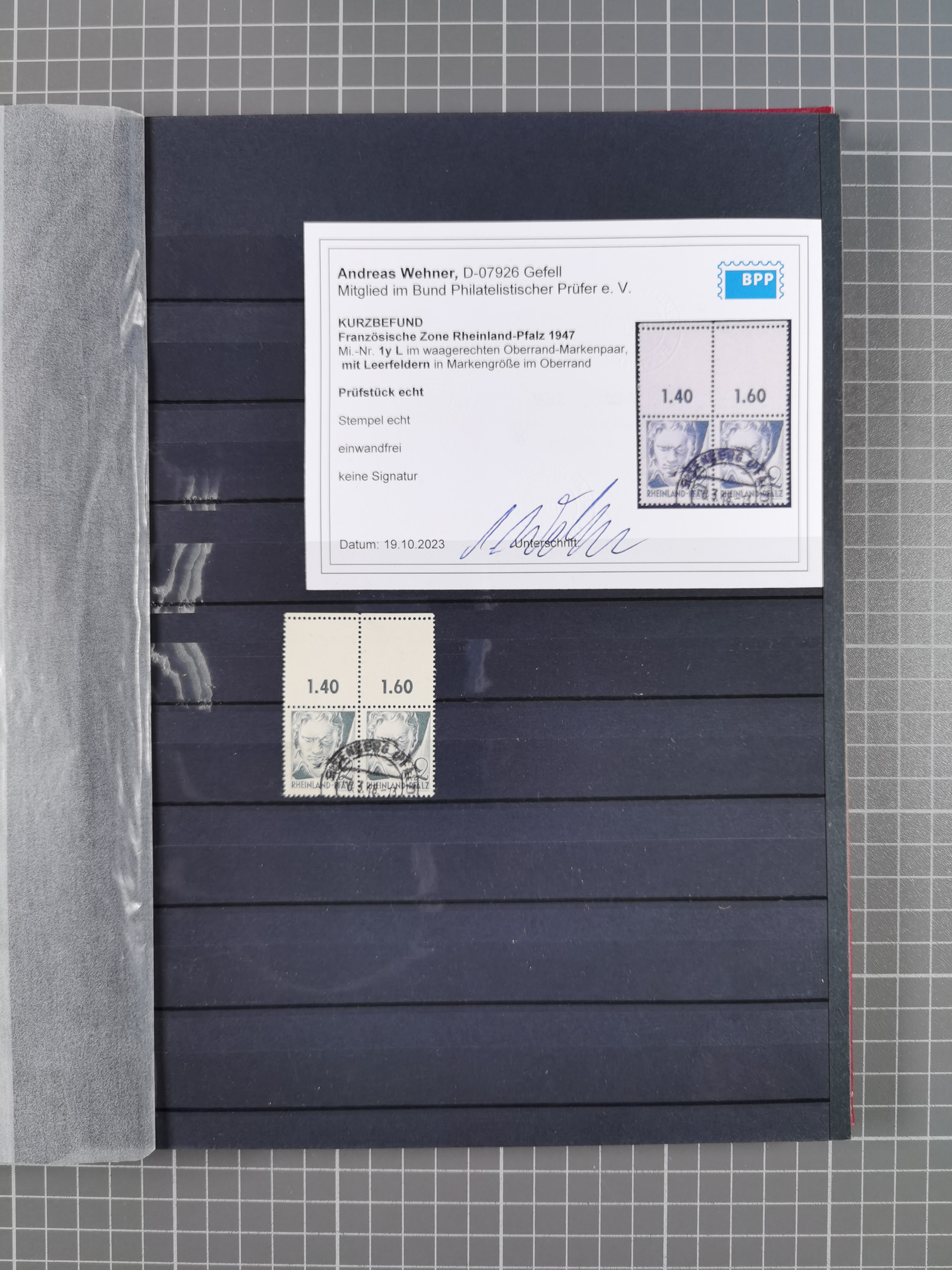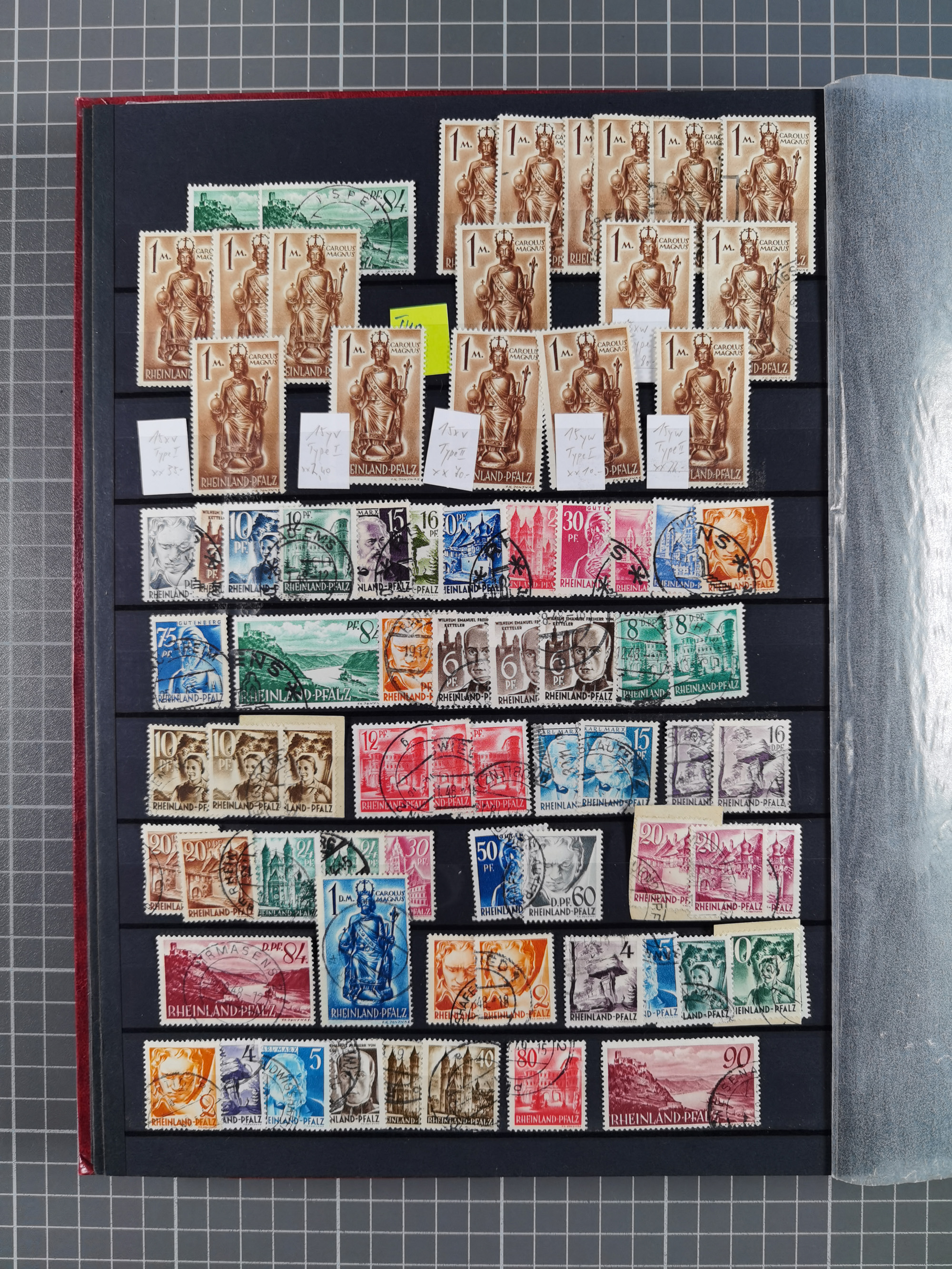 1948/51, meist postfrischer und gestempelter Bestand, angefangen ab Posthornsatz kpl. postfrisch sign. bzw. 70-90 Pfg. unsigniert mit Kurzbefund/Fotoattest Schlegel BPP, ferner 50 Pfg. (1) und 60 (2) doppelt, sowie Französische Zone mit Baden Bl. 1B gestempelt, 1A (2) und 1B postfrisch, Rheinland-Pfalz mit u.a. Mi.-Nr. 36 gestempelt sign. Schlegel BPP, 42-45A Eckrand postfrisch, Bl. 1 (2), sowie unzählige ungezähnte Werte, teils mehrfach, dabei u.a. 2U im Paar (KB D. Schlegel BPP), 7PU sign., 1yL im Paar gestempelt (KB Wehner BPP), etc., im Steckbuch
