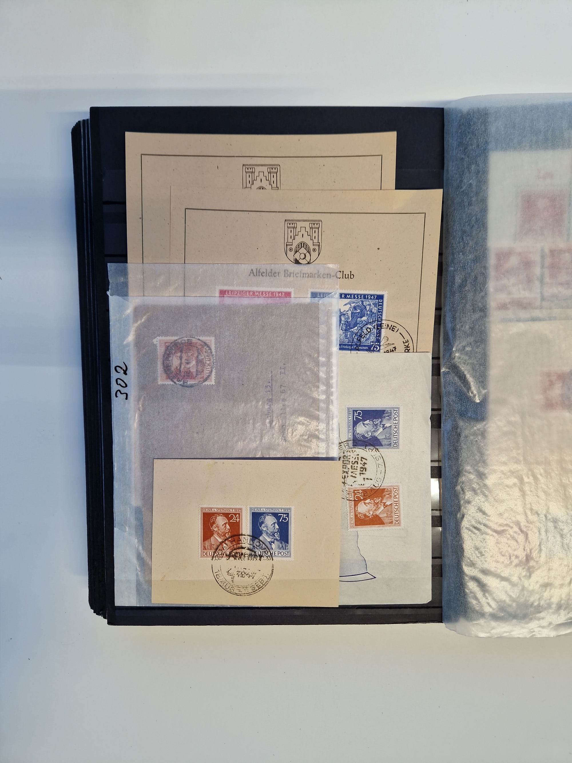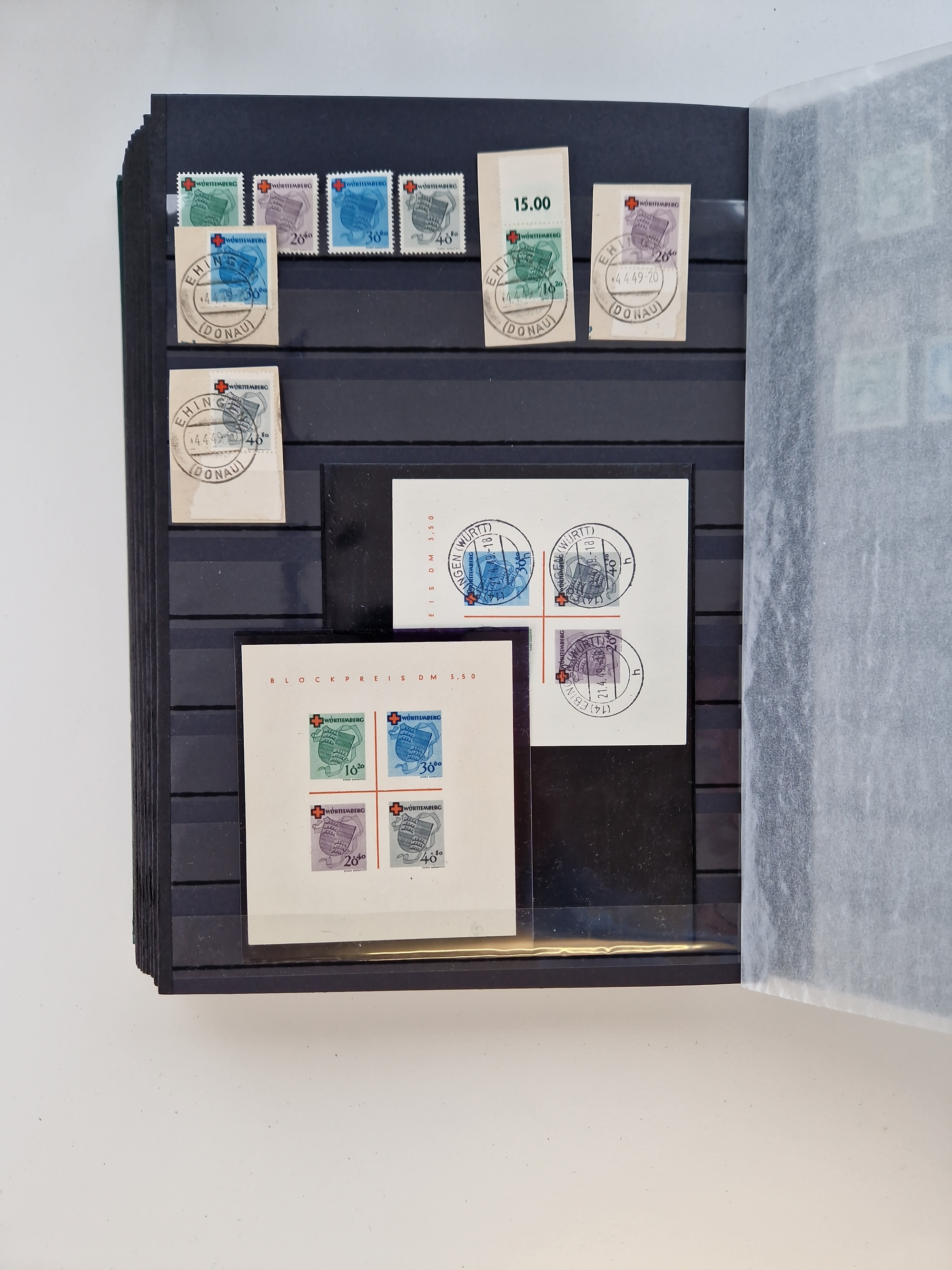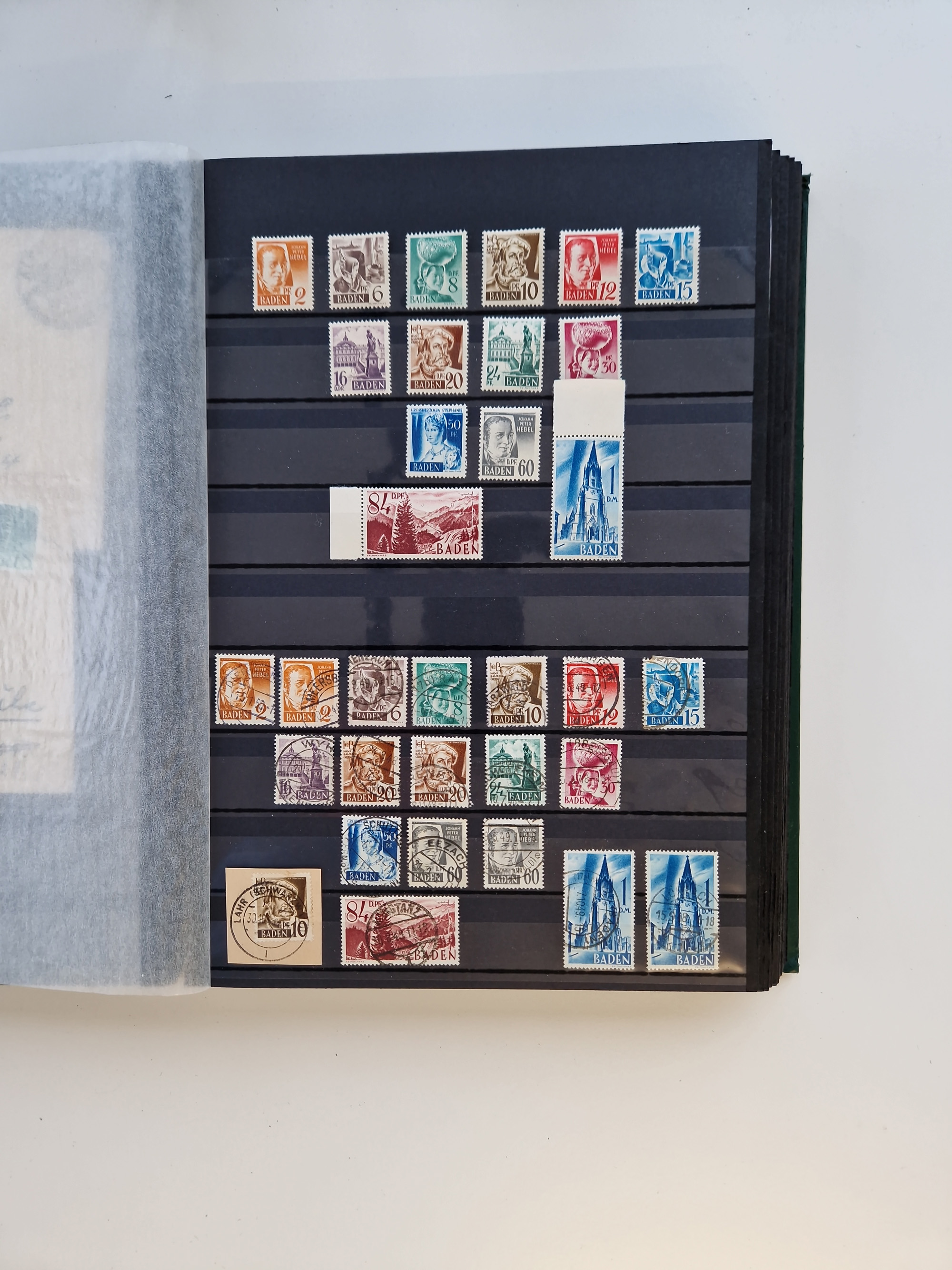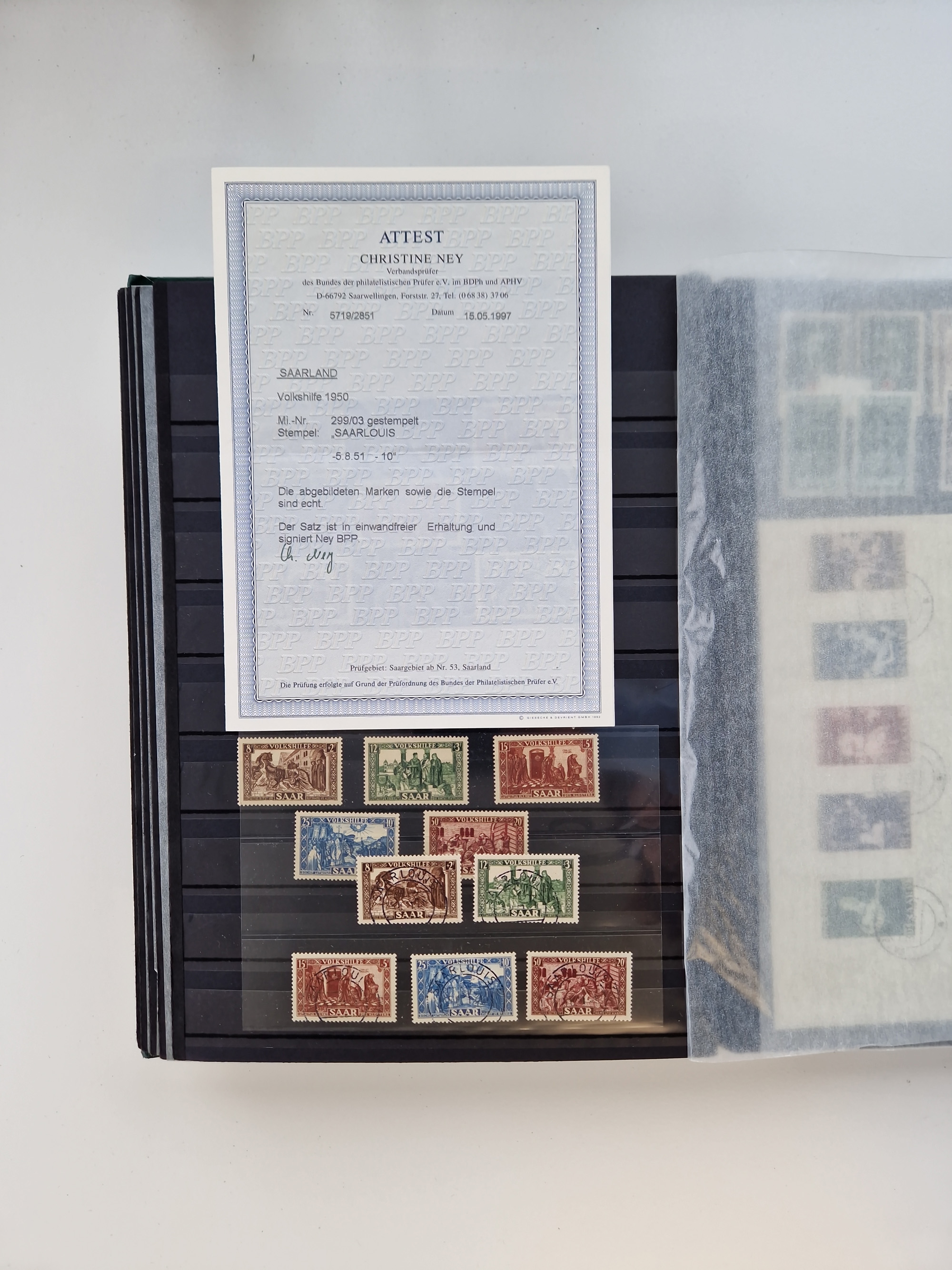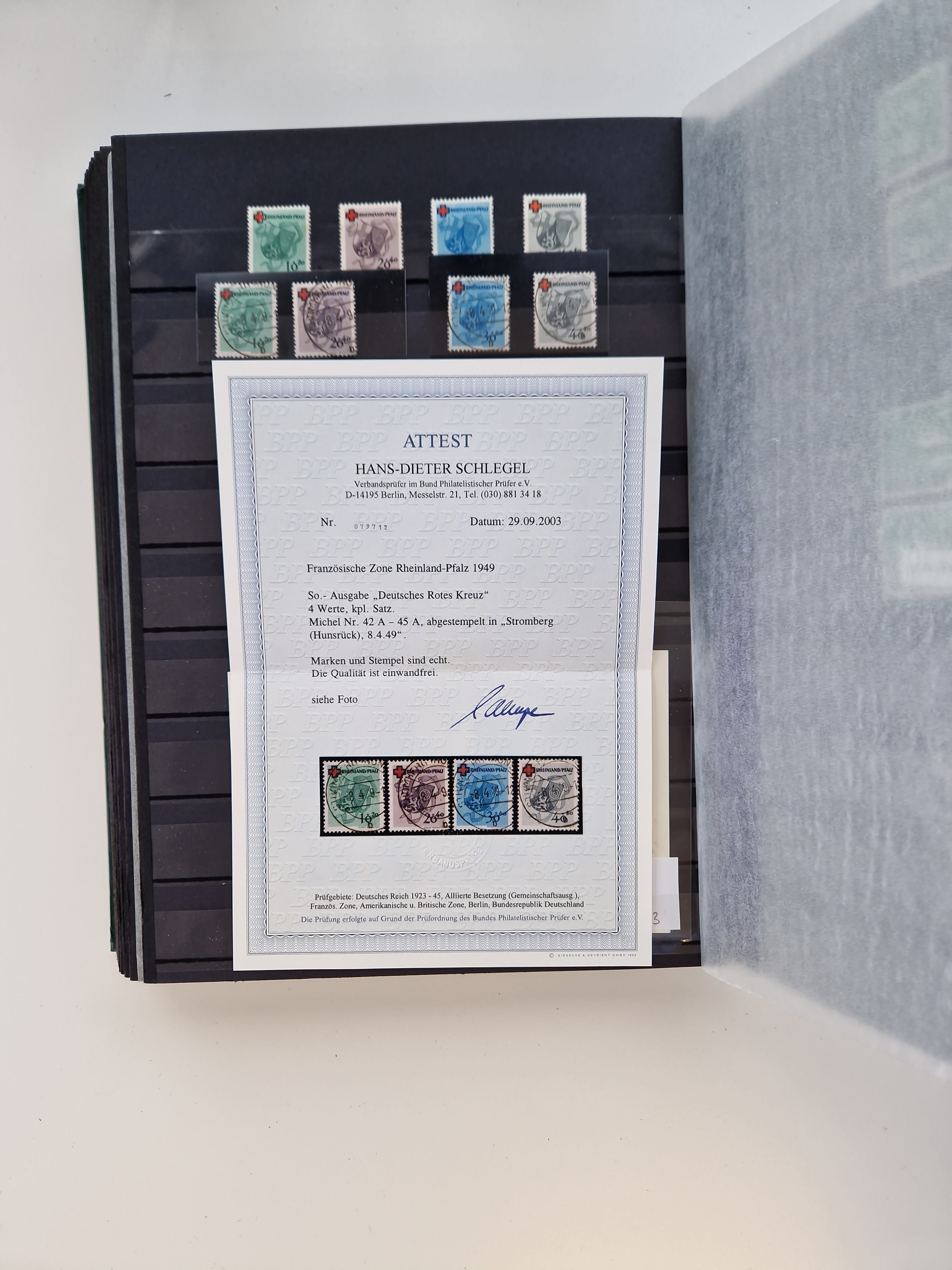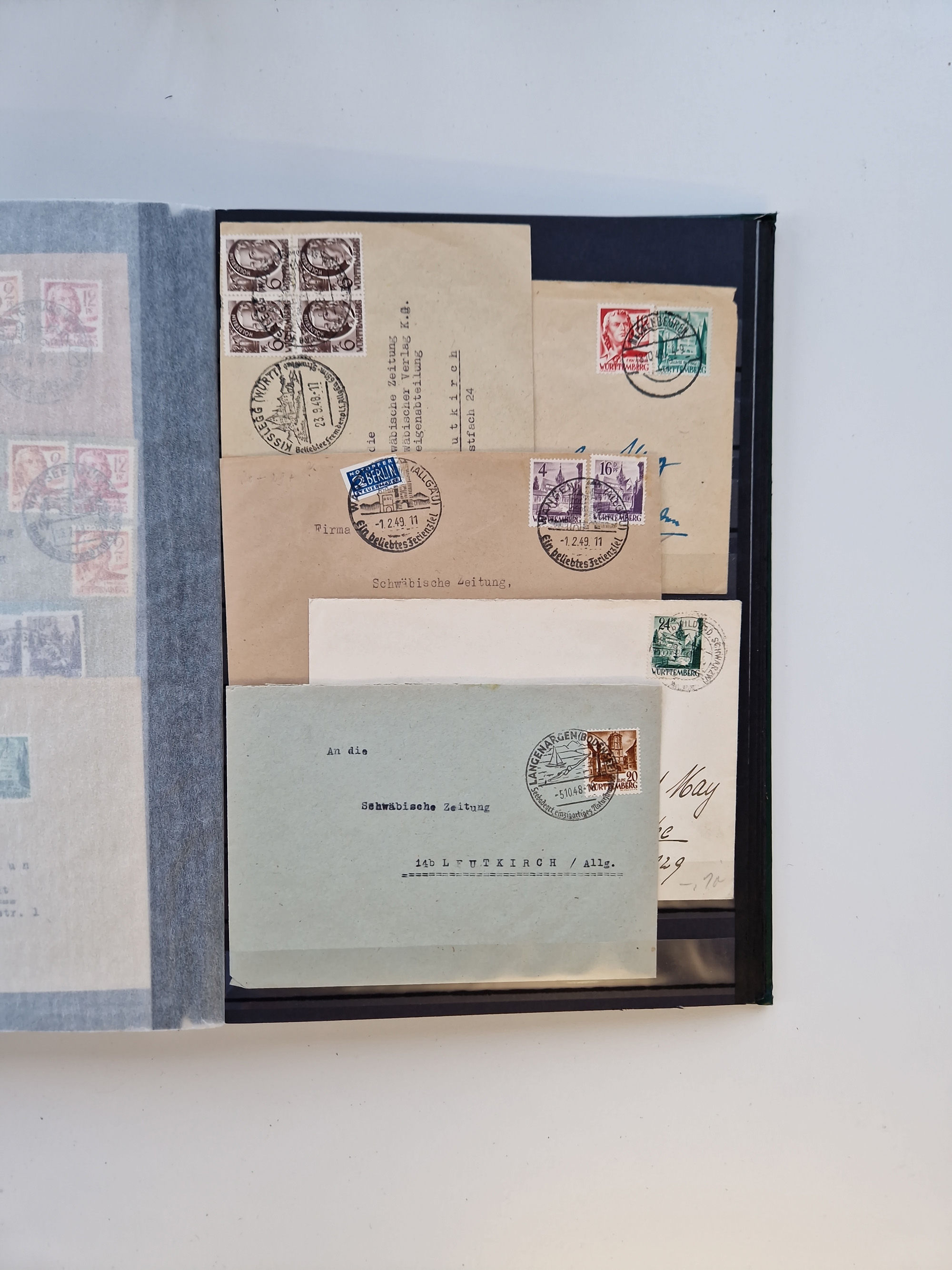 1945/50, interessanter Bestand mit fast nur besseren Sätzen, Block-Ausgaben und Briefen. Dabei u.a. SBZ Bl.1xa postfrisch (FA Ströh BPP), Bl.2t gestempelt (FA Dr. Jasch BPP) und Bl. 4ay gestempelt (FA Ströh BPP), Berlin Mi.-Nr. 1-20 gestempelt (sign. Schlegel BPP mit FA) und Bl. 1I gestempelt (FA D. Schlegel BPP), Saarland Bl.1-2 postfrisch (sign. Ney BPP), Baden Bl. 2 mit rotem SST (sign. Schlegel BPP) und Bund mit besseren Anfangsausgaben und Briefen mit u.a. Mi.-Nr. 116 Br.