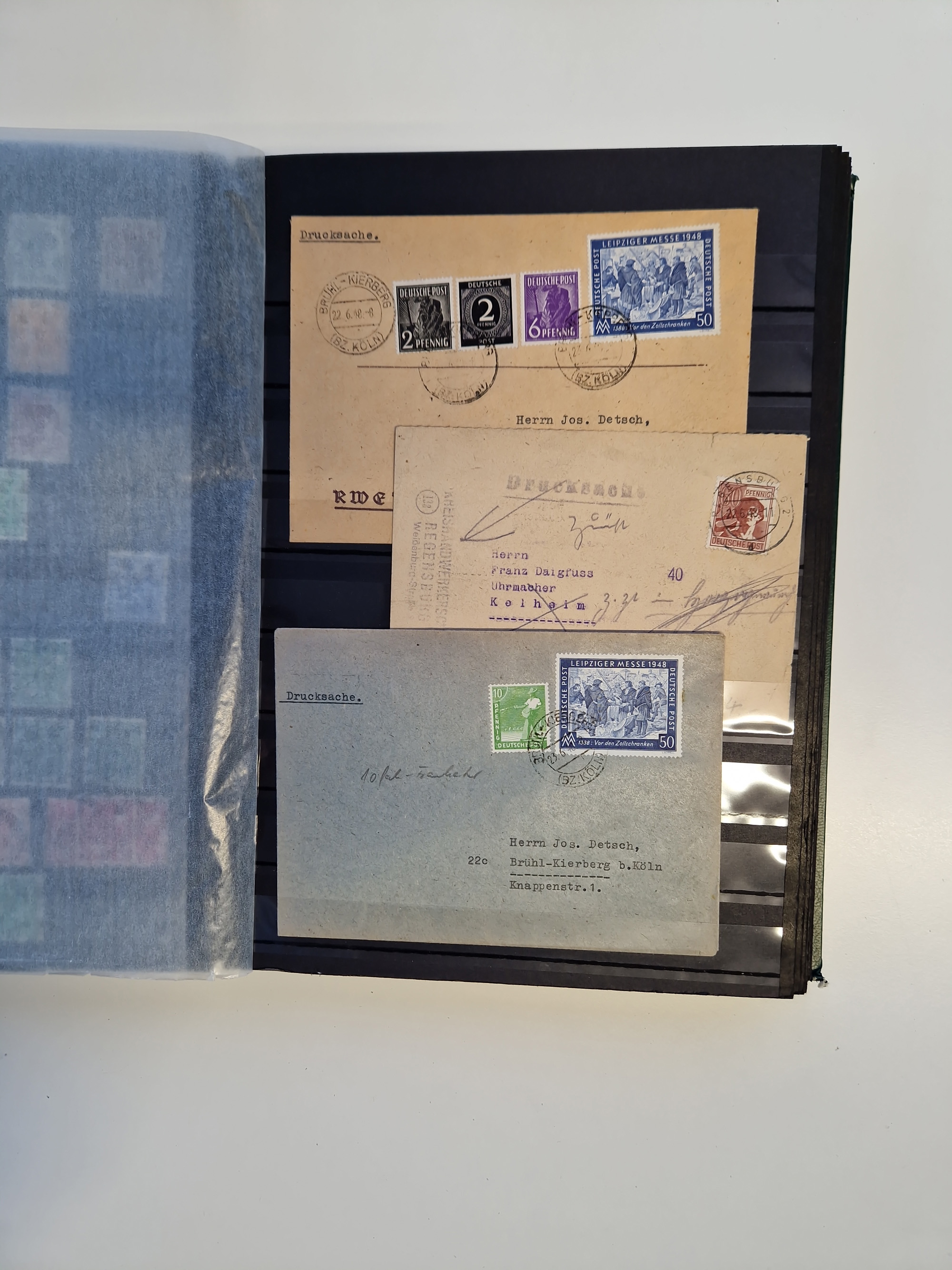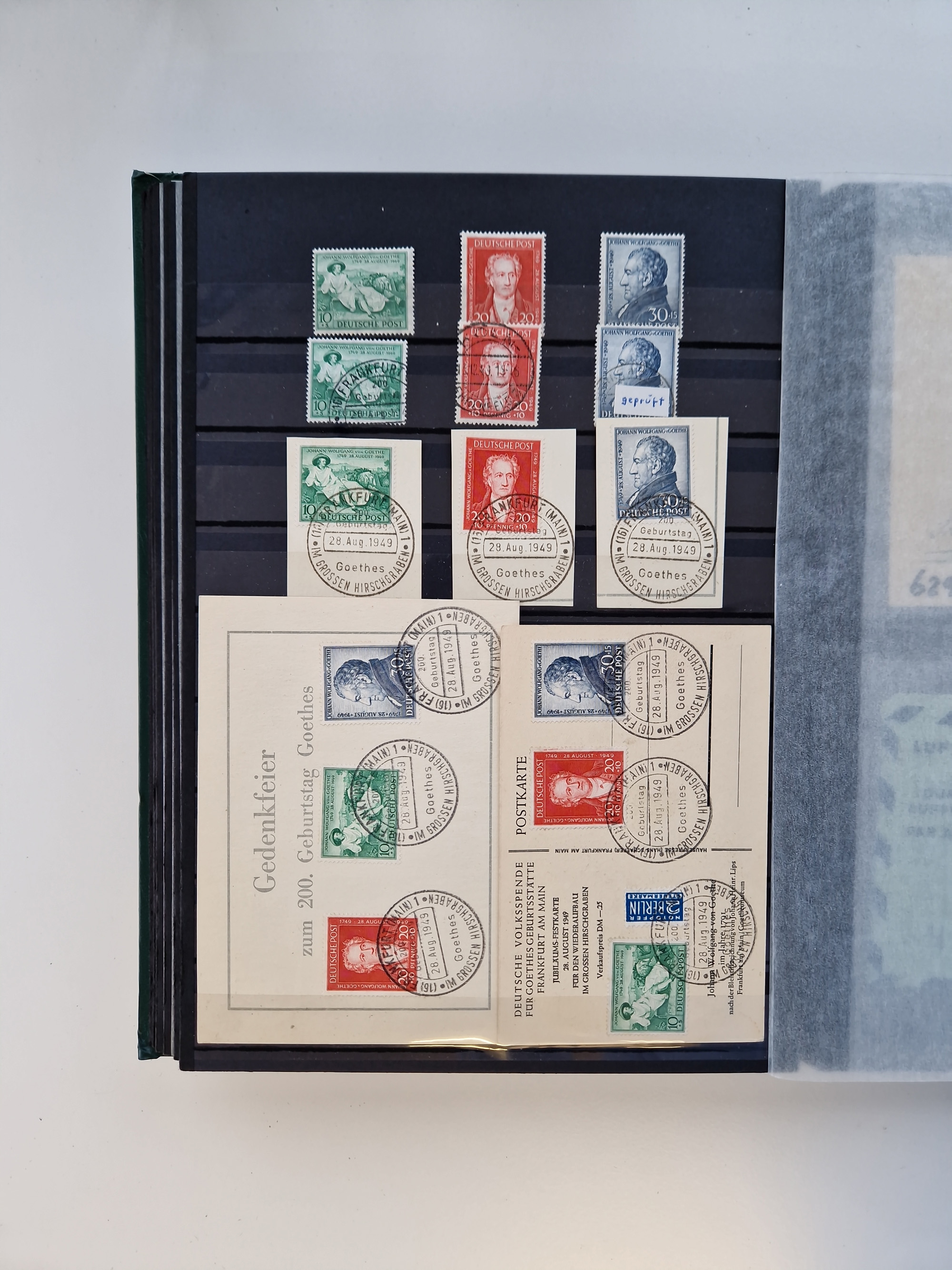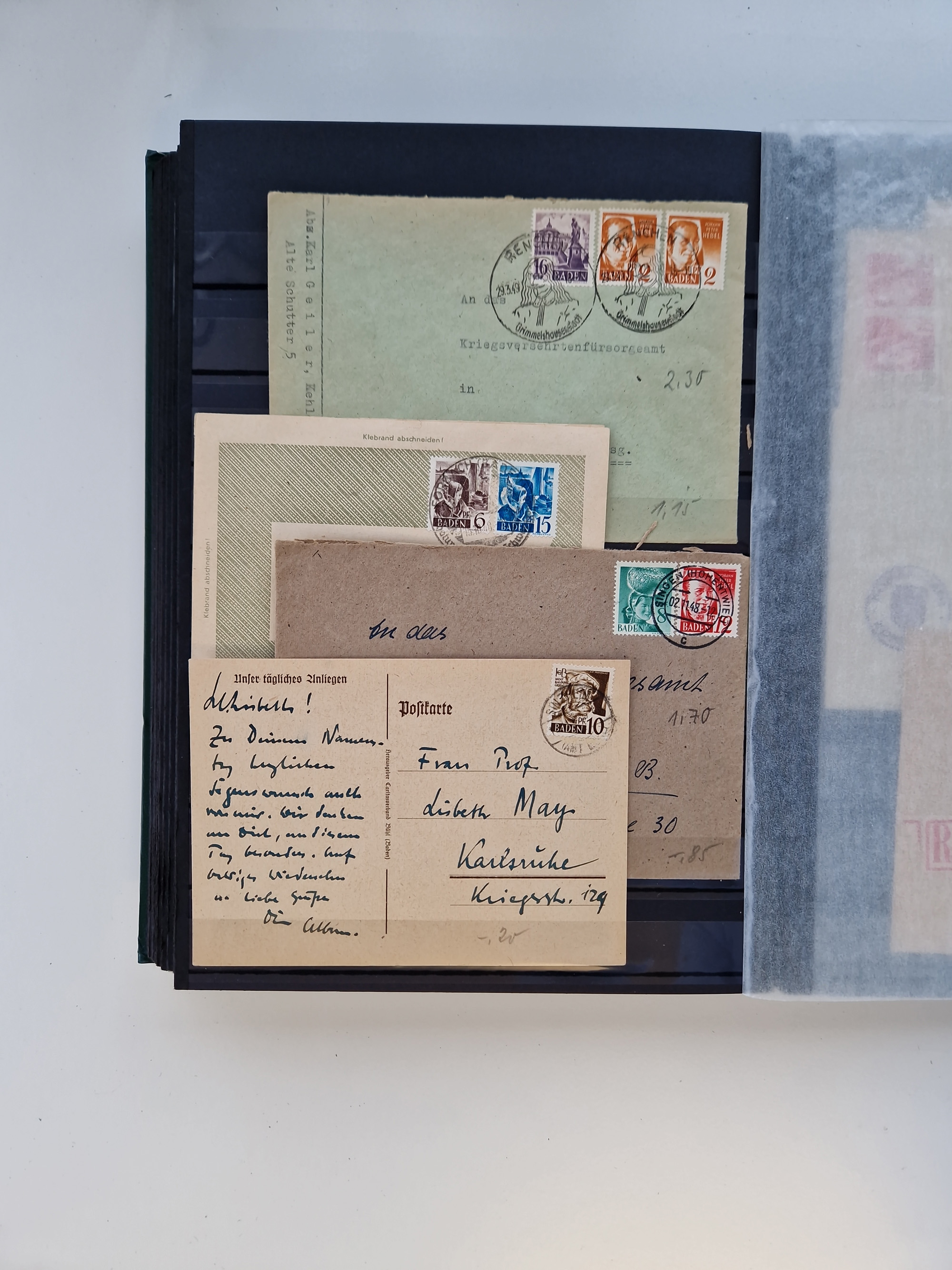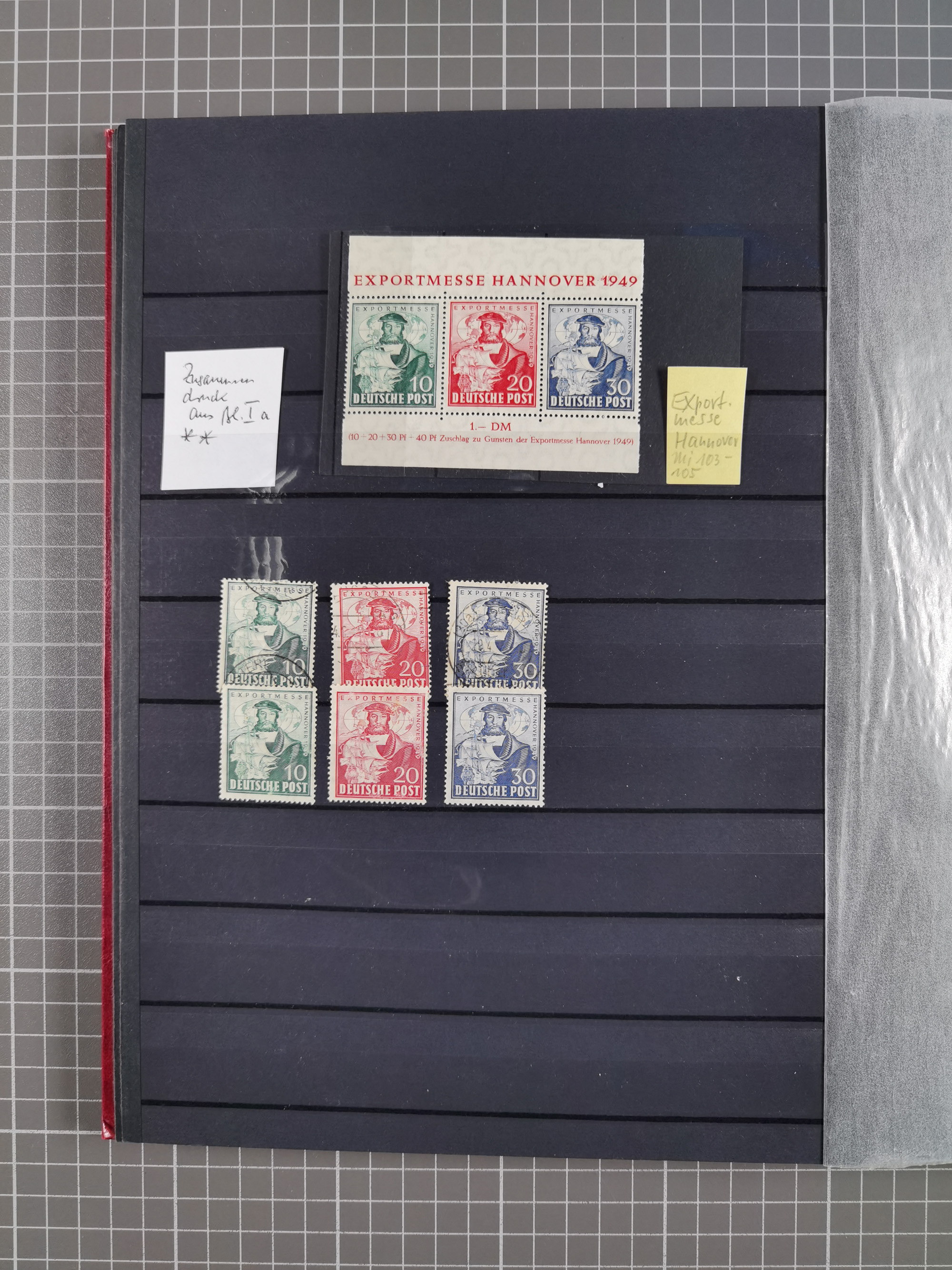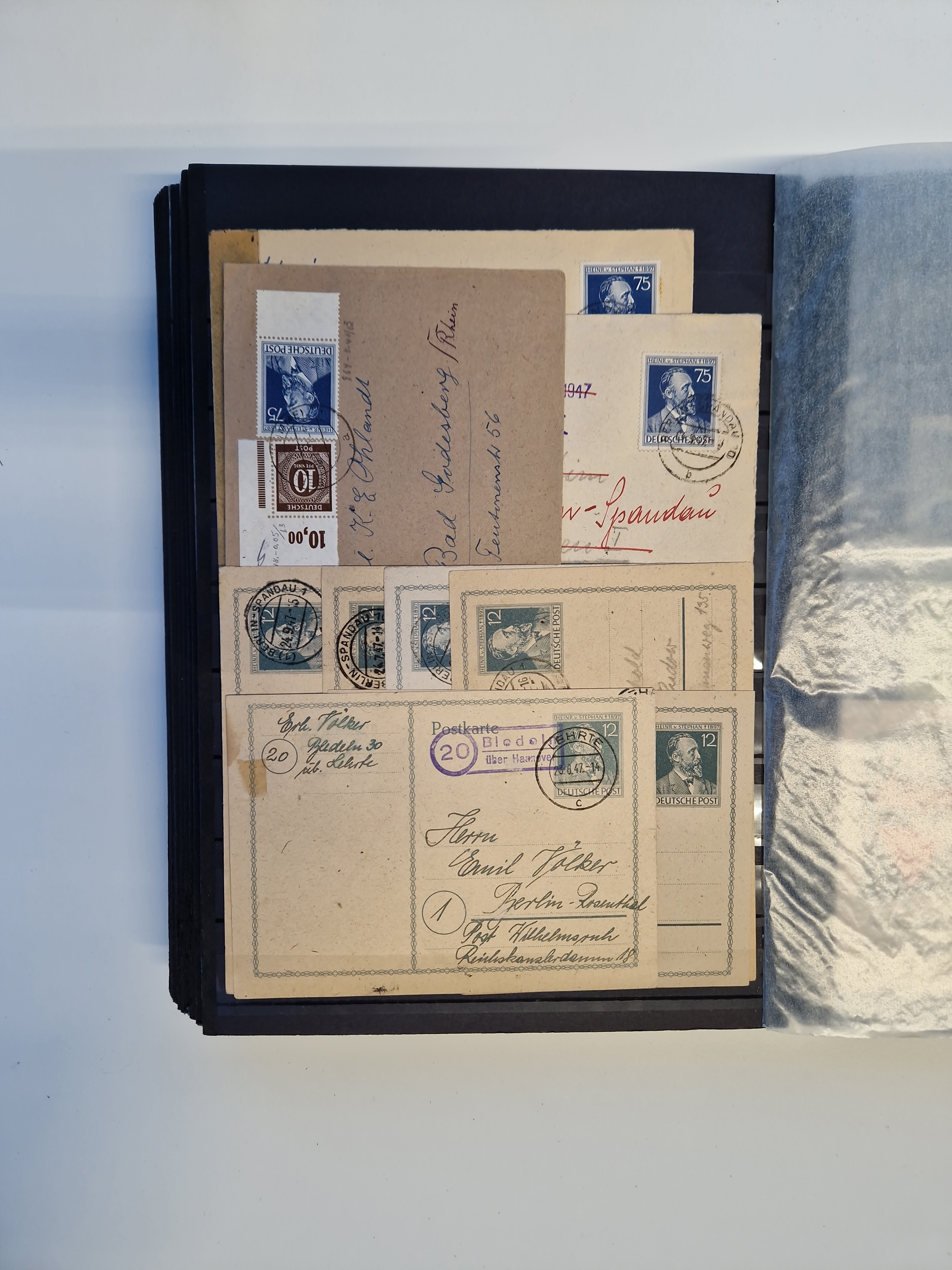 1945/50, interessanter Bestand mit fast nur besseren Sätzen, Block-Ausgaben und Briefen. Dabei u.a. SBZ Bl.1xa postfrisch (FA Ströh BPP), Bl.2t gestempelt (FA Dr. Jasch BPP) und Bl. 4ay gestempelt (FA Ströh BPP), Berlin Mi.-Nr. 1-20 gestempelt (sign. Schlegel BPP mit FA) und Bl. 1I gestempelt (FA D. Schlegel BPP), Saarland Bl.1-2 postfrisch (sign. Ney BPP), Baden Bl. 2 mit rotem SST (sign. Schlegel BPP) und Bund mit besseren Anfangsausgaben und Briefen mit u.a. Mi.-Nr. 116 Br.