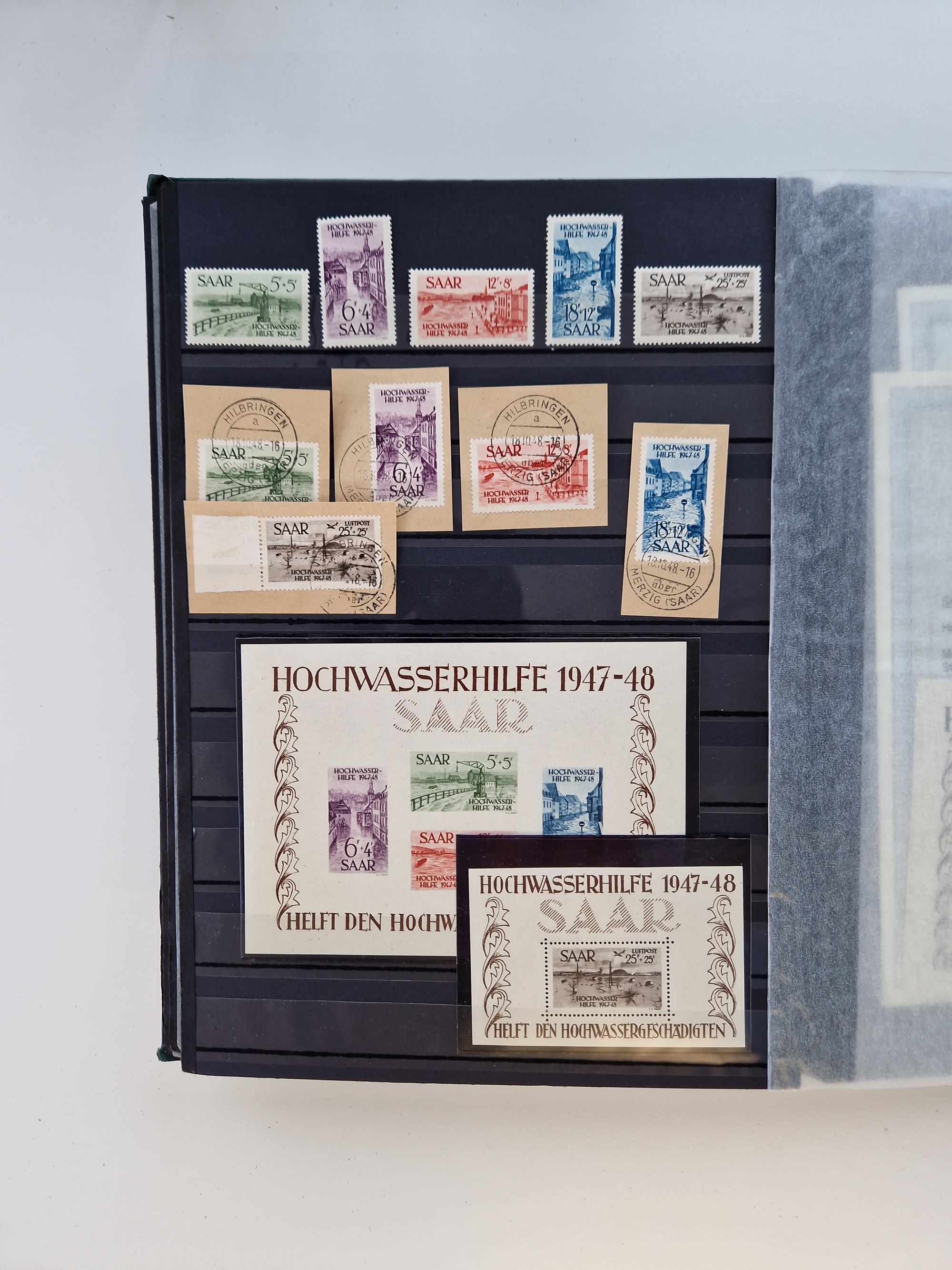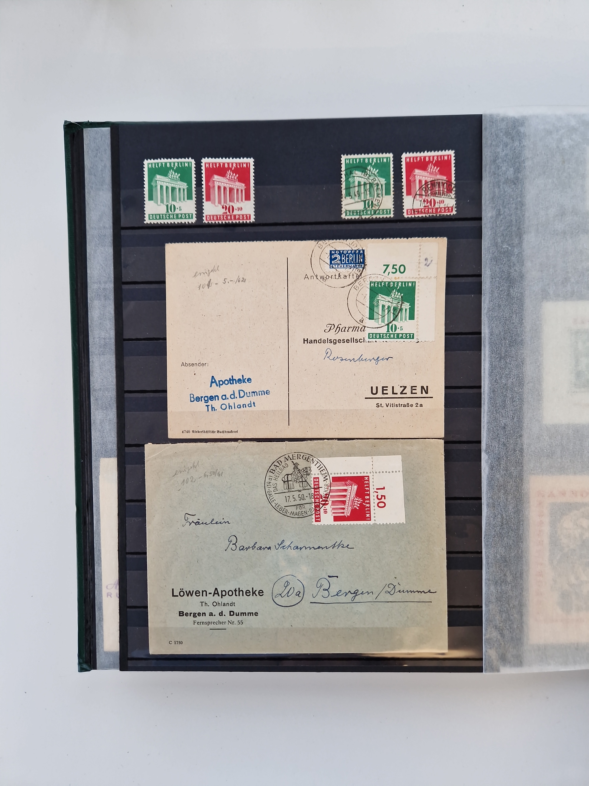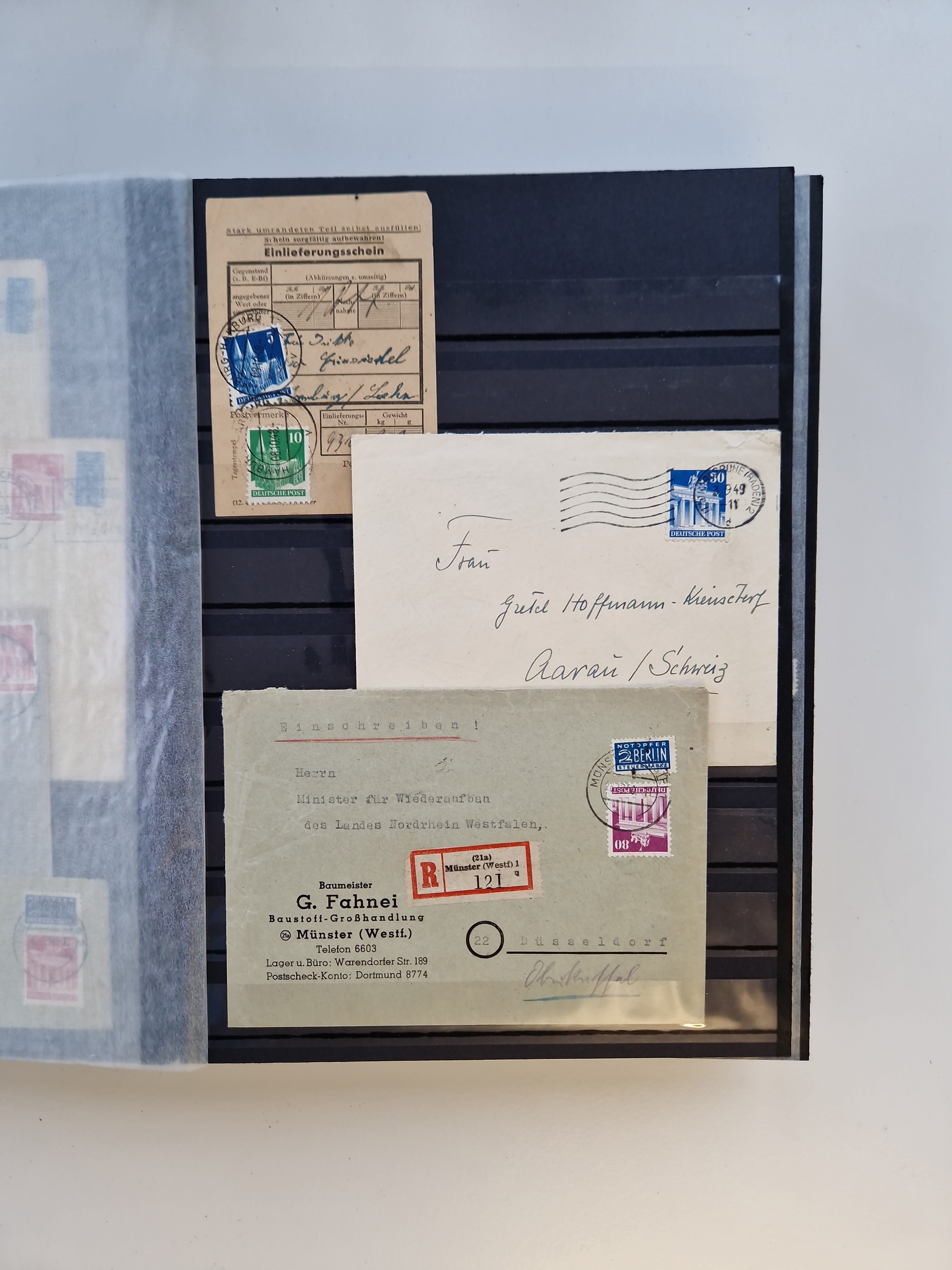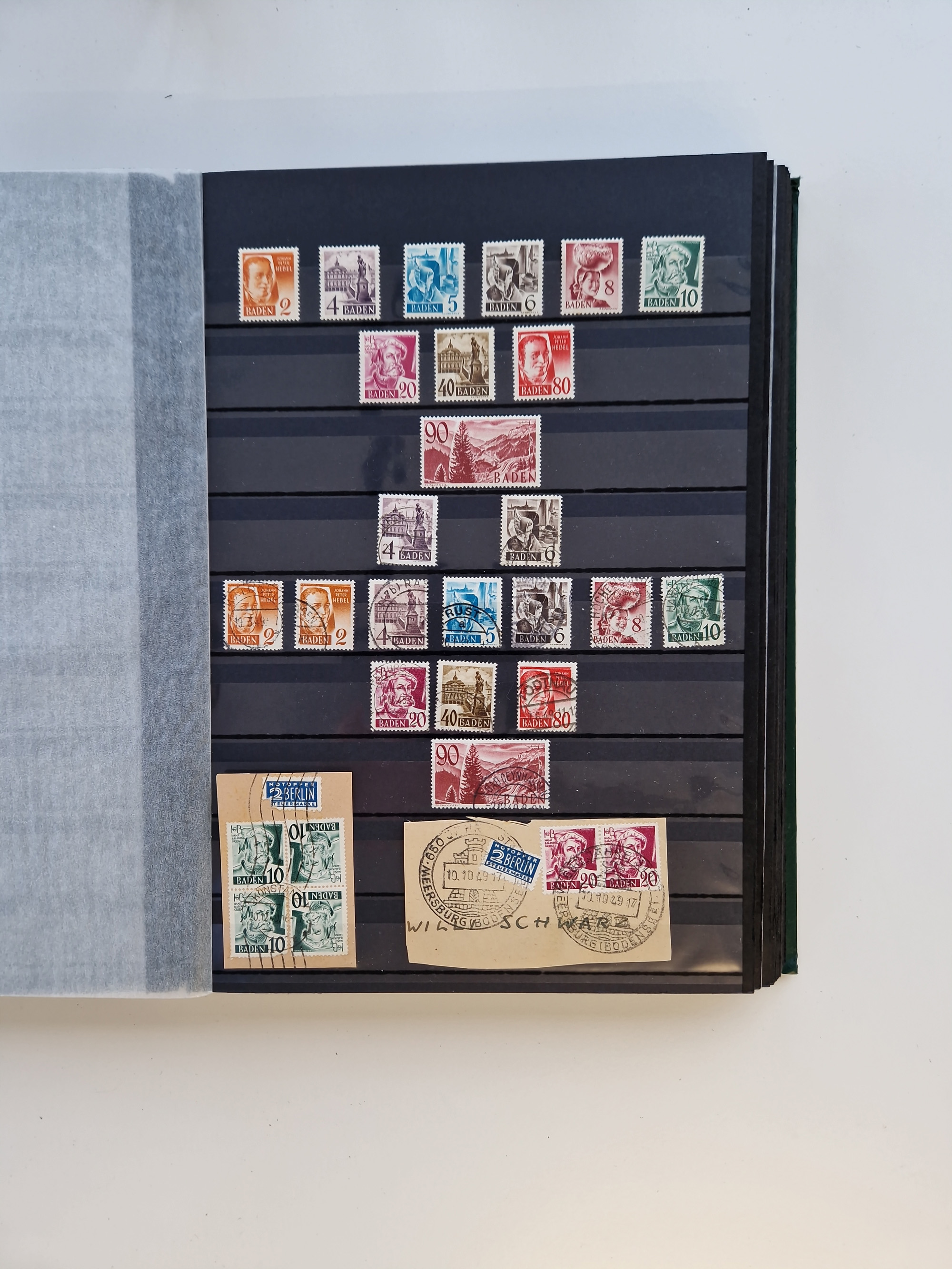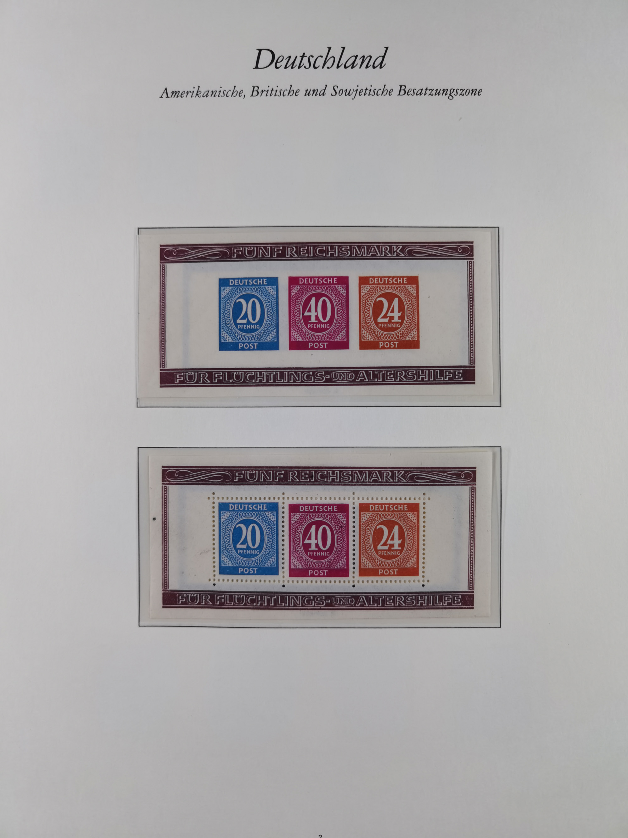 1945/50, interessanter Bestand mit fast nur besseren Sätzen, Block-Ausgaben und Briefen. Dabei u.a. SBZ Bl.1xa postfrisch (FA Ströh BPP), Bl.2t gestempelt (FA Dr. Jasch BPP) und Bl. 4ay gestempelt (FA Ströh BPP), Berlin Mi.-Nr. 1-20 gestempelt (sign. Schlegel BPP mit FA) und Bl. 1I gestempelt (FA D. Schlegel BPP), Saarland Bl.1-2 postfrisch (sign. Ney BPP), Baden Bl. 2 mit rotem SST (sign. Schlegel BPP) und Bund mit besseren Anfangsausgaben und Briefen mit u.a. Mi.-Nr. 116 Br.