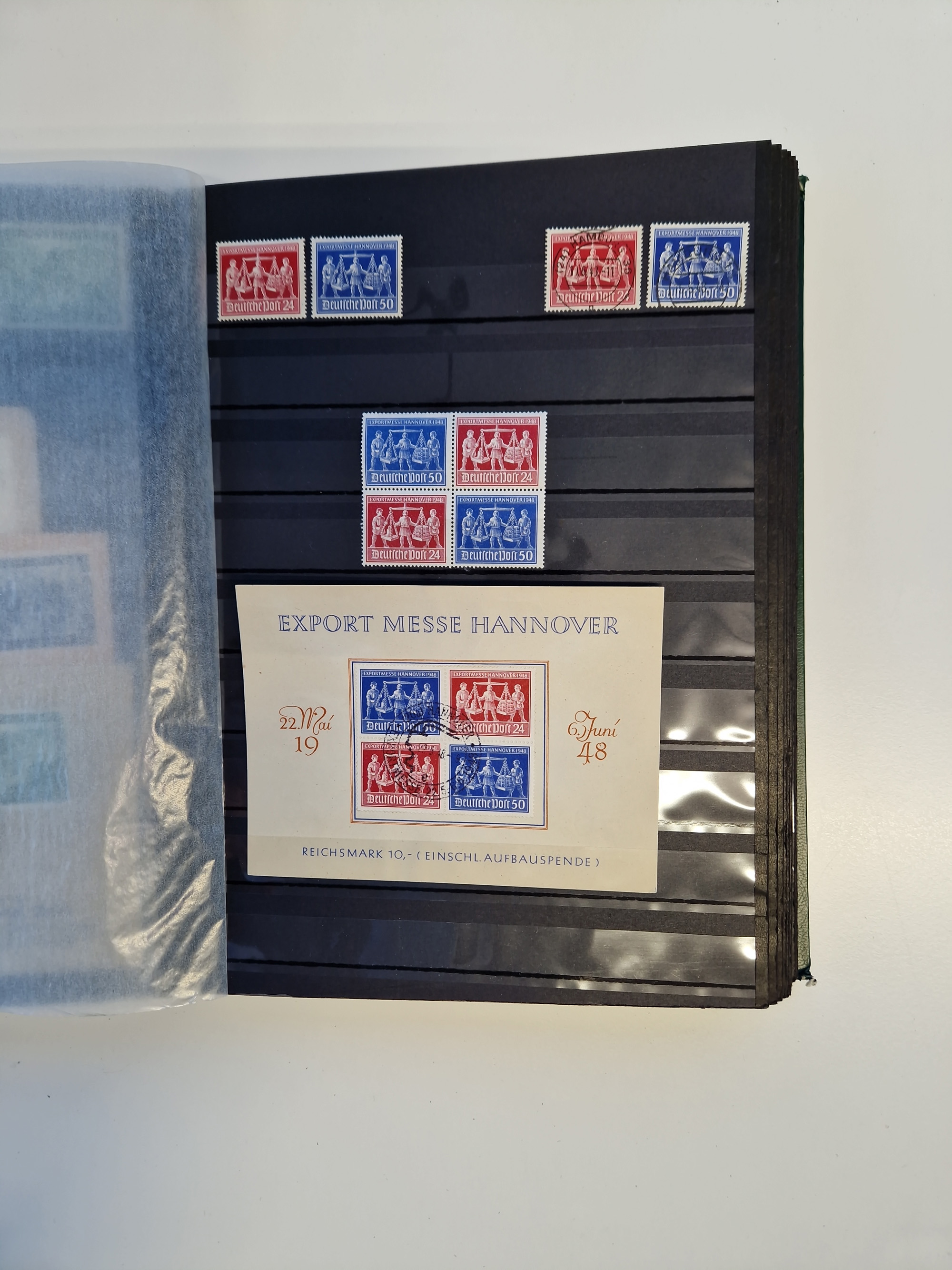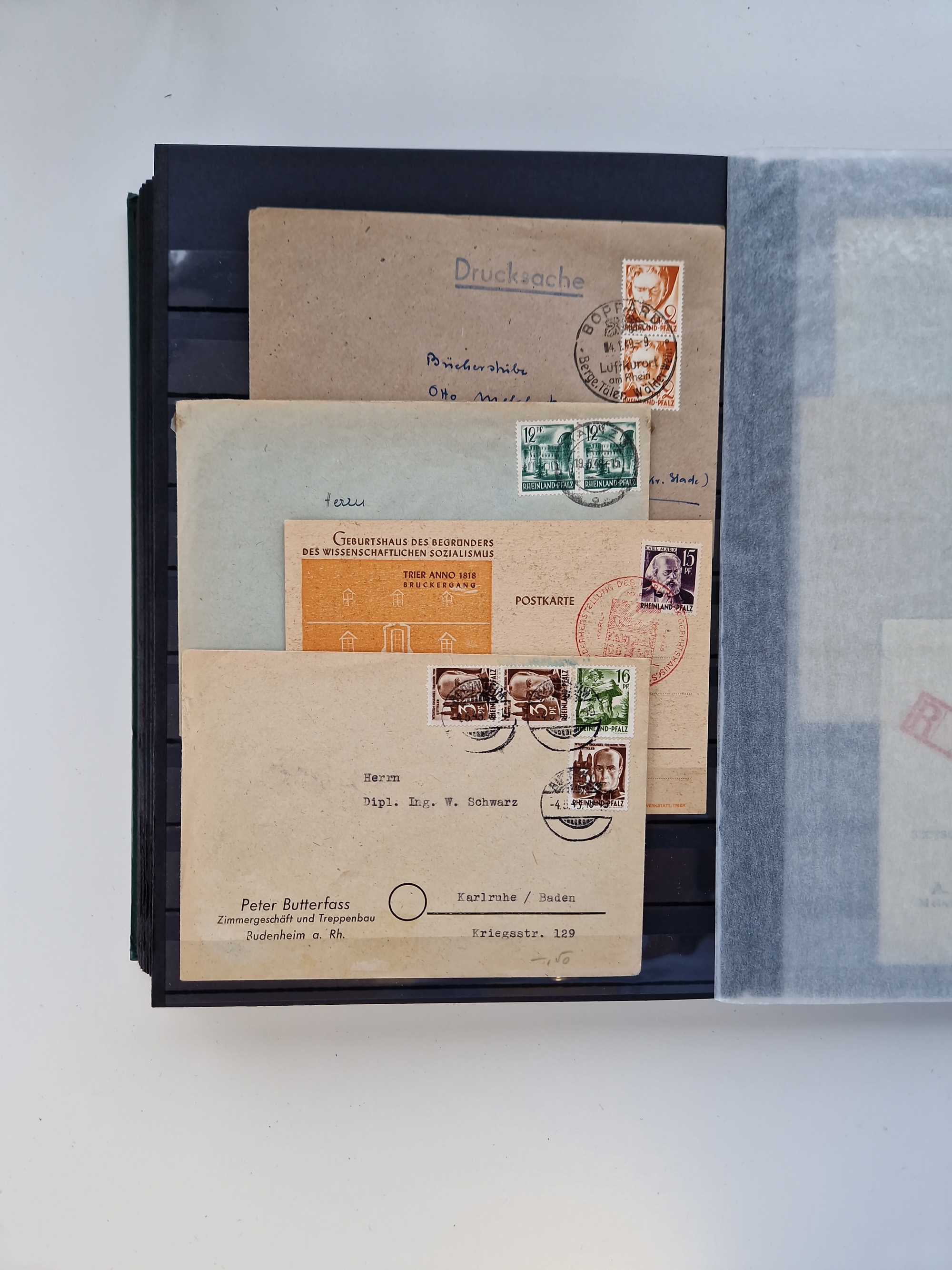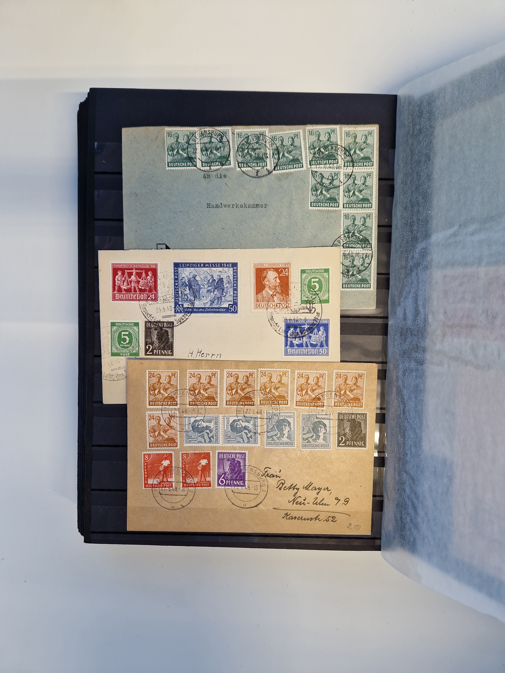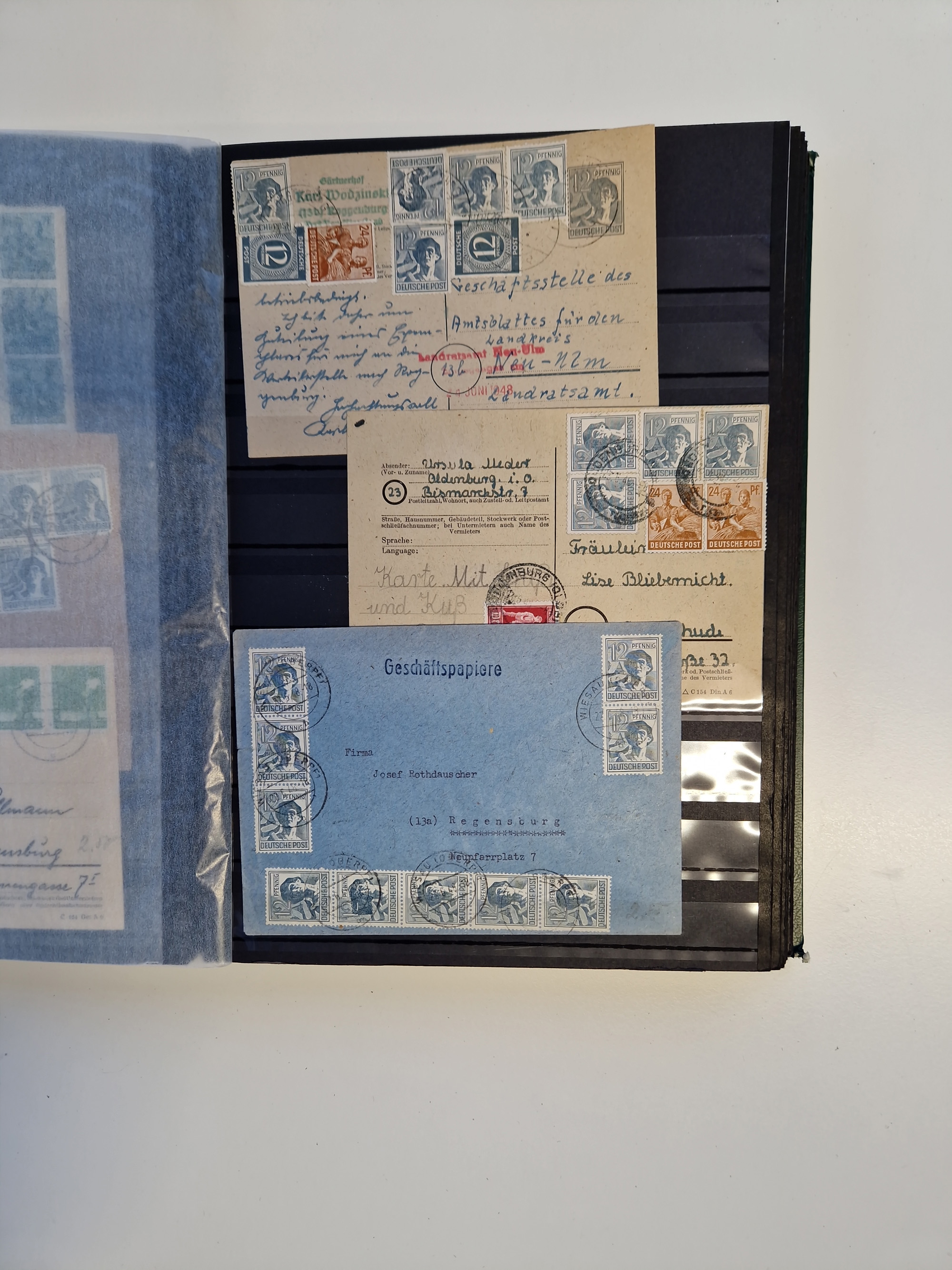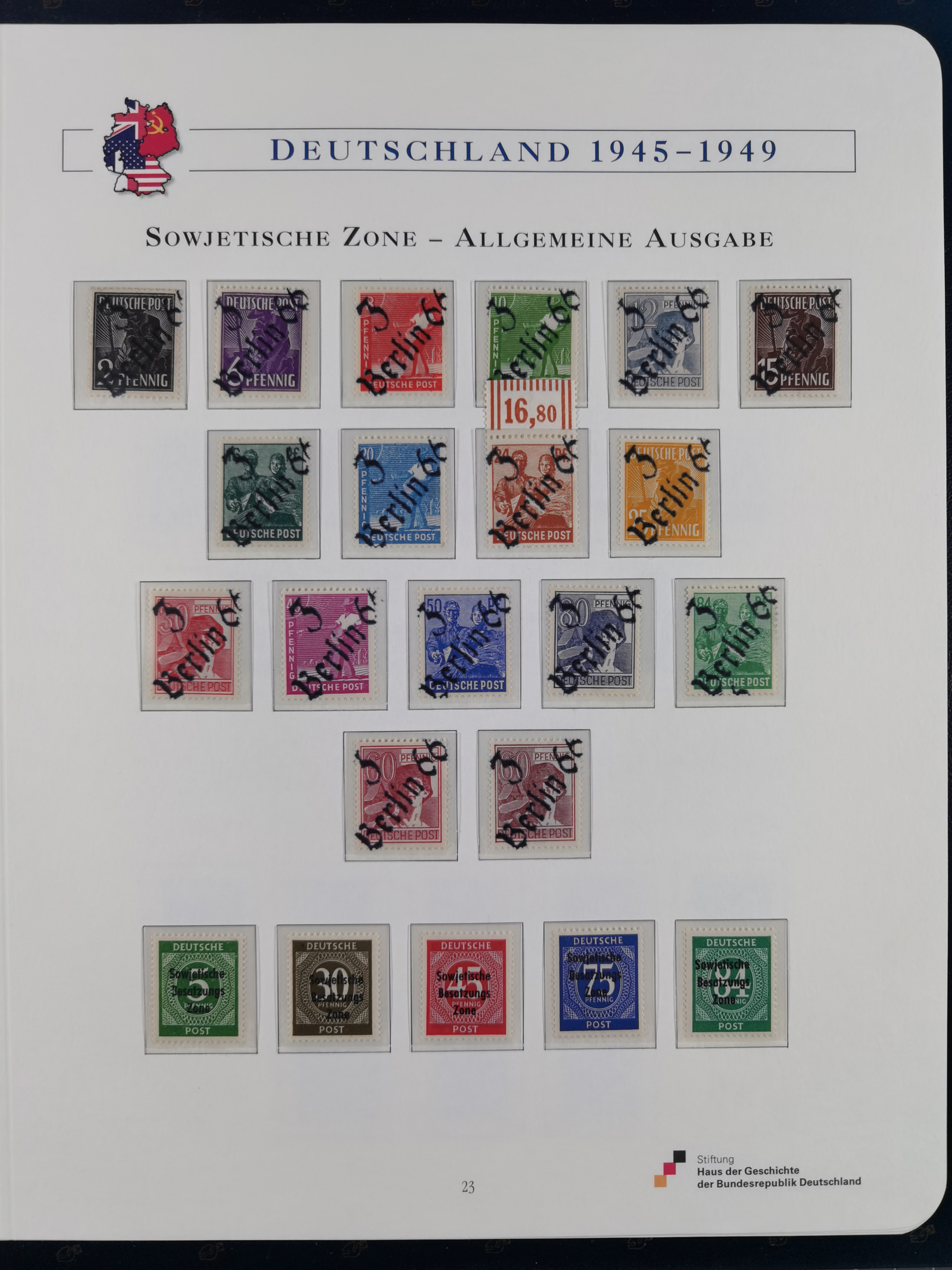 1945/50, interessanter Bestand mit fast nur besseren Sätzen, Block-Ausgaben und Briefen. Dabei u.a. SBZ Bl.1xa postfrisch (FA Ströh BPP), Bl.2t gestempelt (FA Dr. Jasch BPP) und Bl. 4ay gestempelt (FA Ströh BPP), Berlin Mi.-Nr. 1-20 gestempelt (sign. Schlegel BPP mit FA) und Bl. 1I gestempelt (FA D. Schlegel BPP), Saarland Bl.1-2 postfrisch (sign. Ney BPP), Baden Bl. 2 mit rotem SST (sign. Schlegel BPP) und Bund mit besseren Anfangsausgaben und Briefen mit u.a. Mi.-Nr. 116 Br.