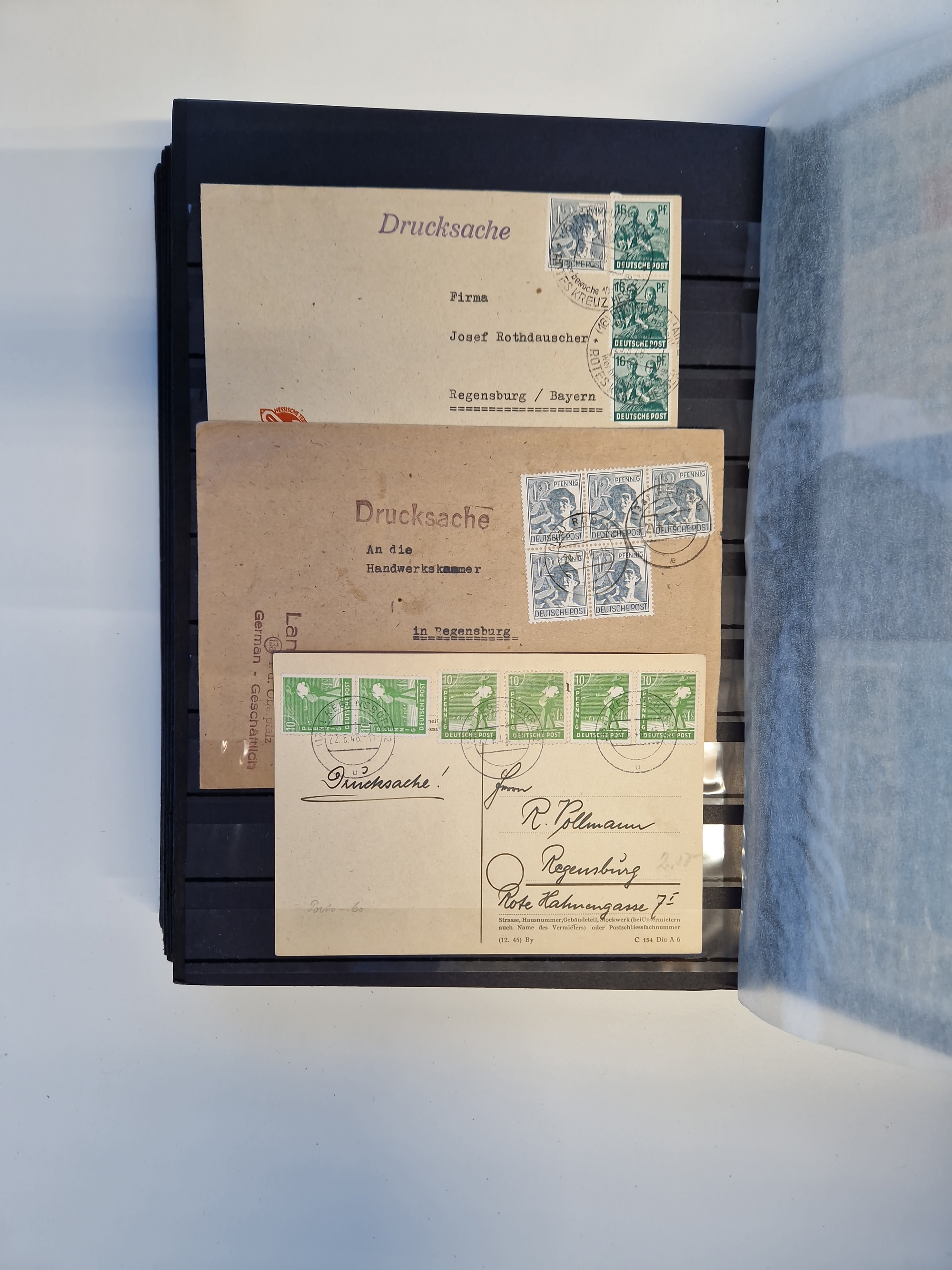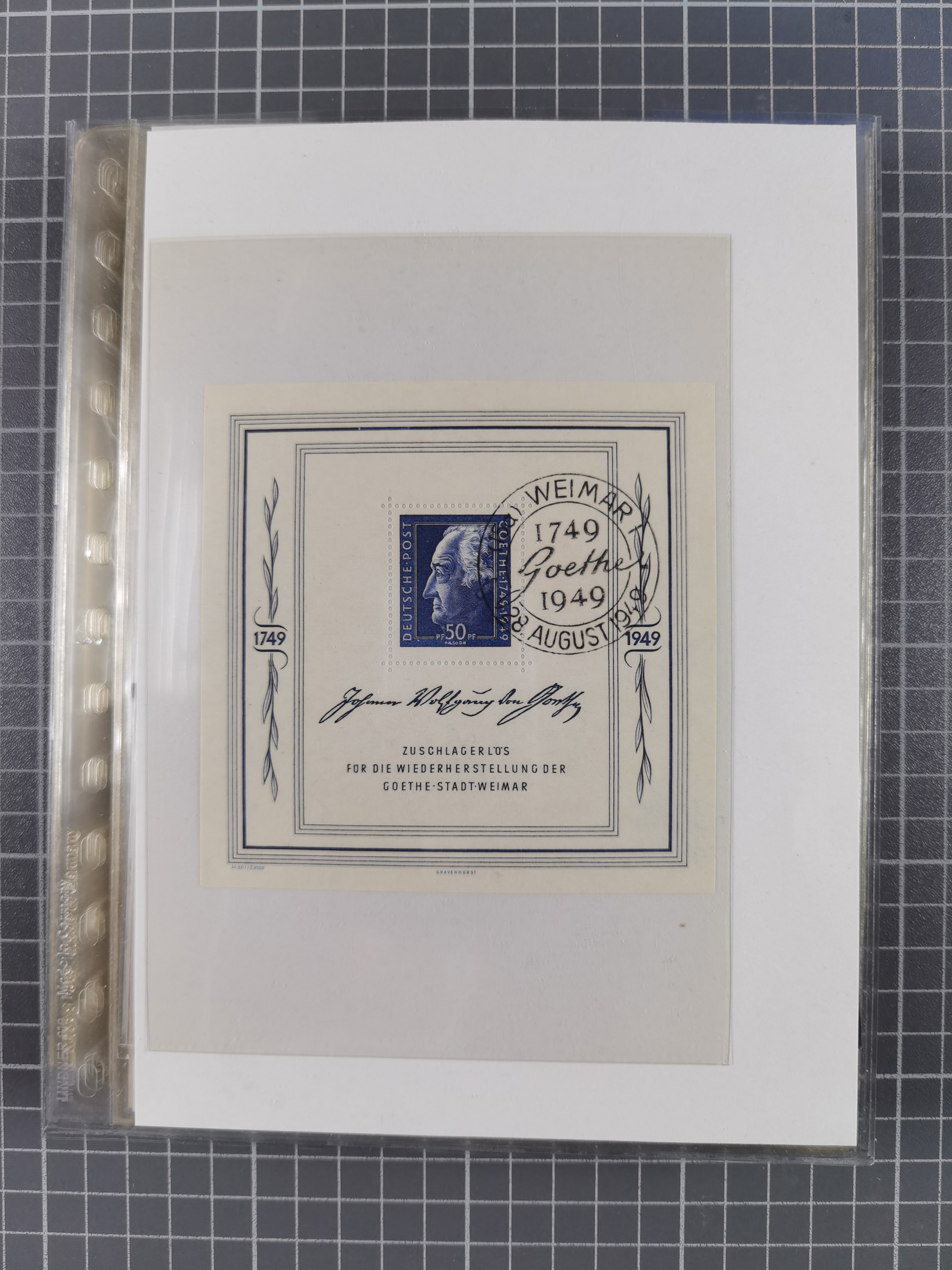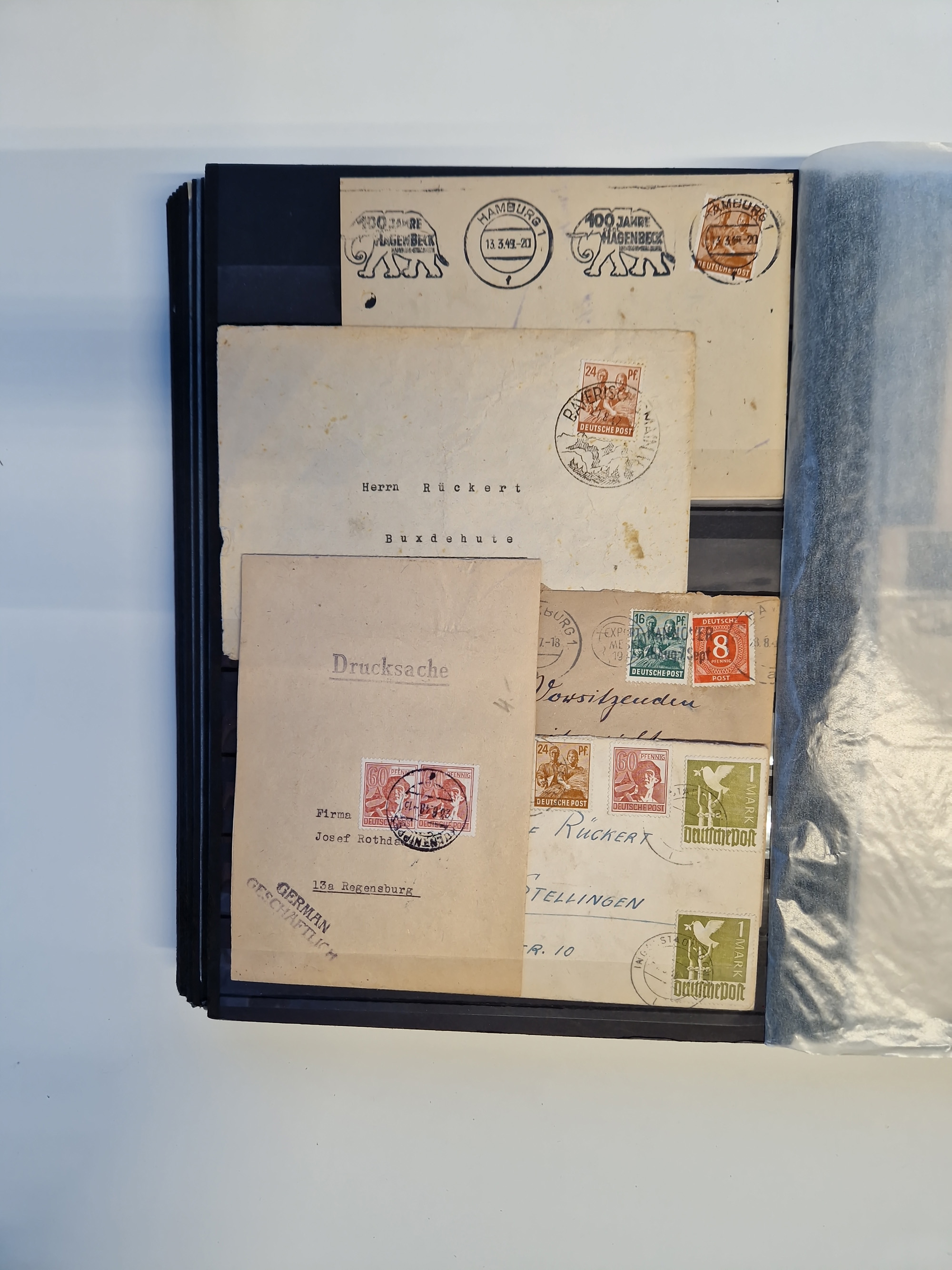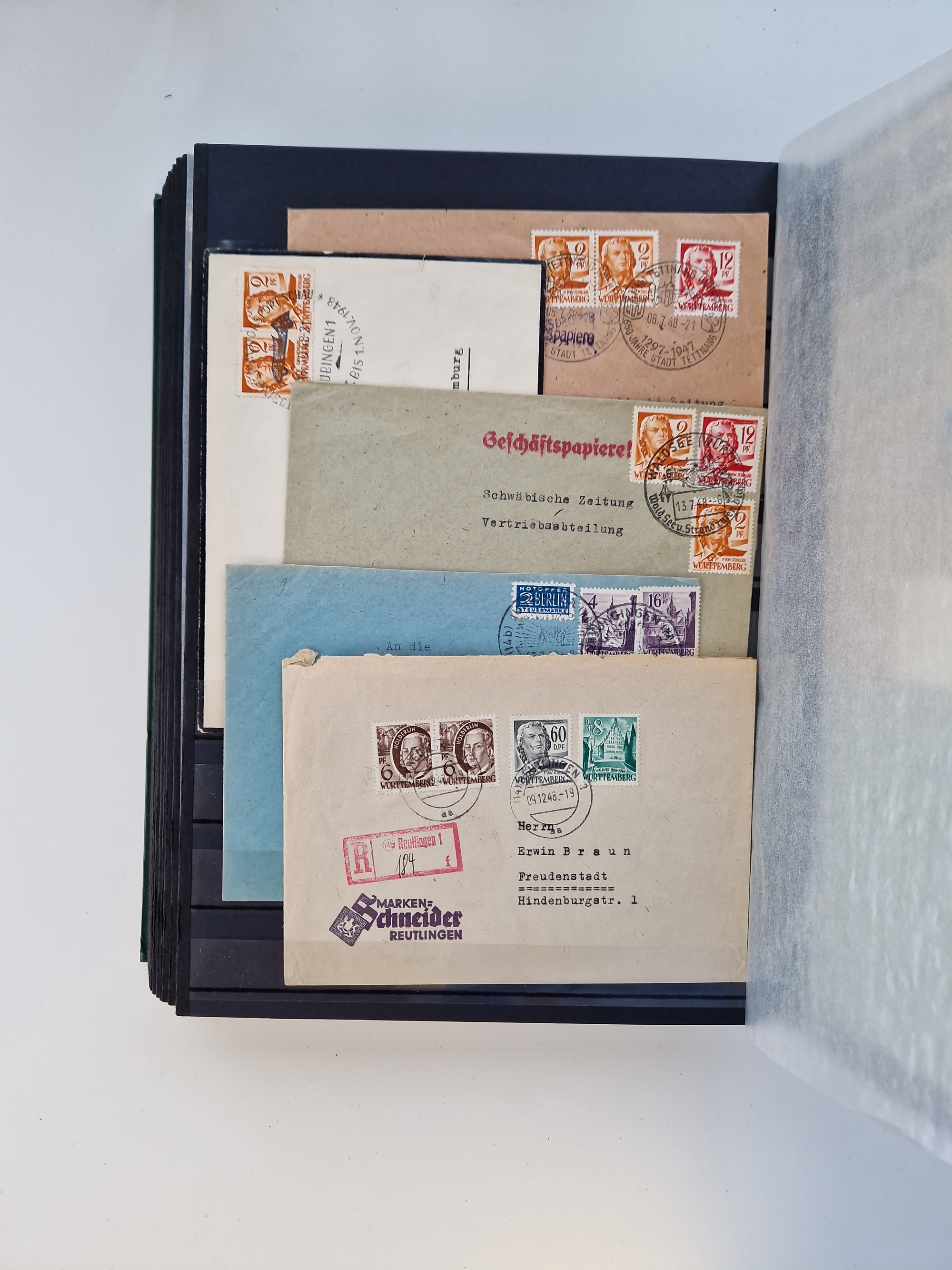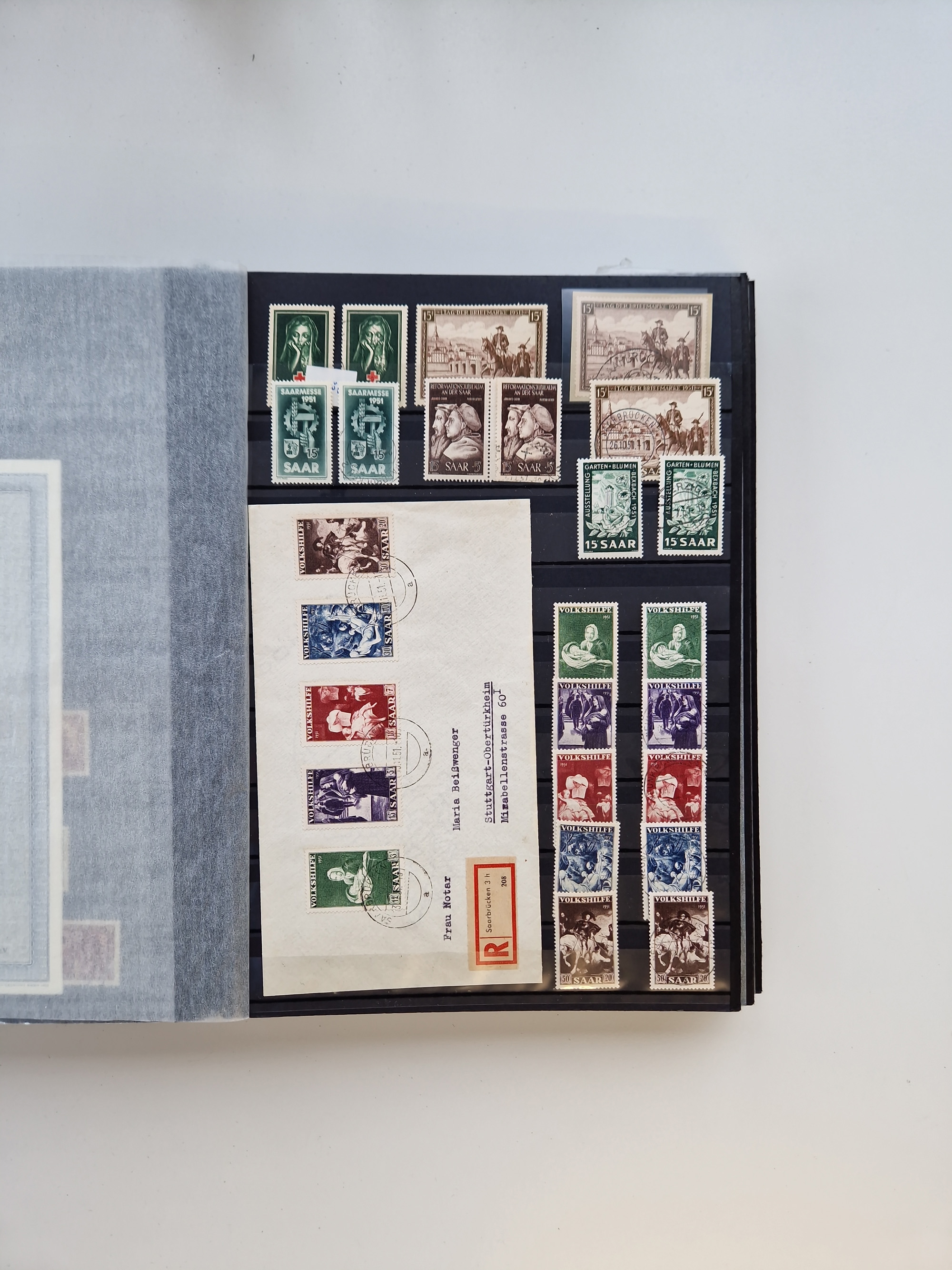 1945/50, interessanter Bestand mit fast nur besseren Sätzen, Block-Ausgaben und Briefen. Dabei u.a. SBZ Bl.1xa postfrisch (FA Ströh BPP), Bl.2t gestempelt (FA Dr. Jasch BPP) und Bl. 4ay gestempelt (FA Ströh BPP), Berlin Mi.-Nr. 1-20 gestempelt (sign. Schlegel BPP mit FA) und Bl. 1I gestempelt (FA D. Schlegel BPP), Saarland Bl.1-2 postfrisch (sign. Ney BPP), Baden Bl. 2 mit rotem SST (sign. Schlegel BPP) und Bund mit besseren Anfangsausgaben und Briefen mit u.a. Mi.-Nr. 116 Br.