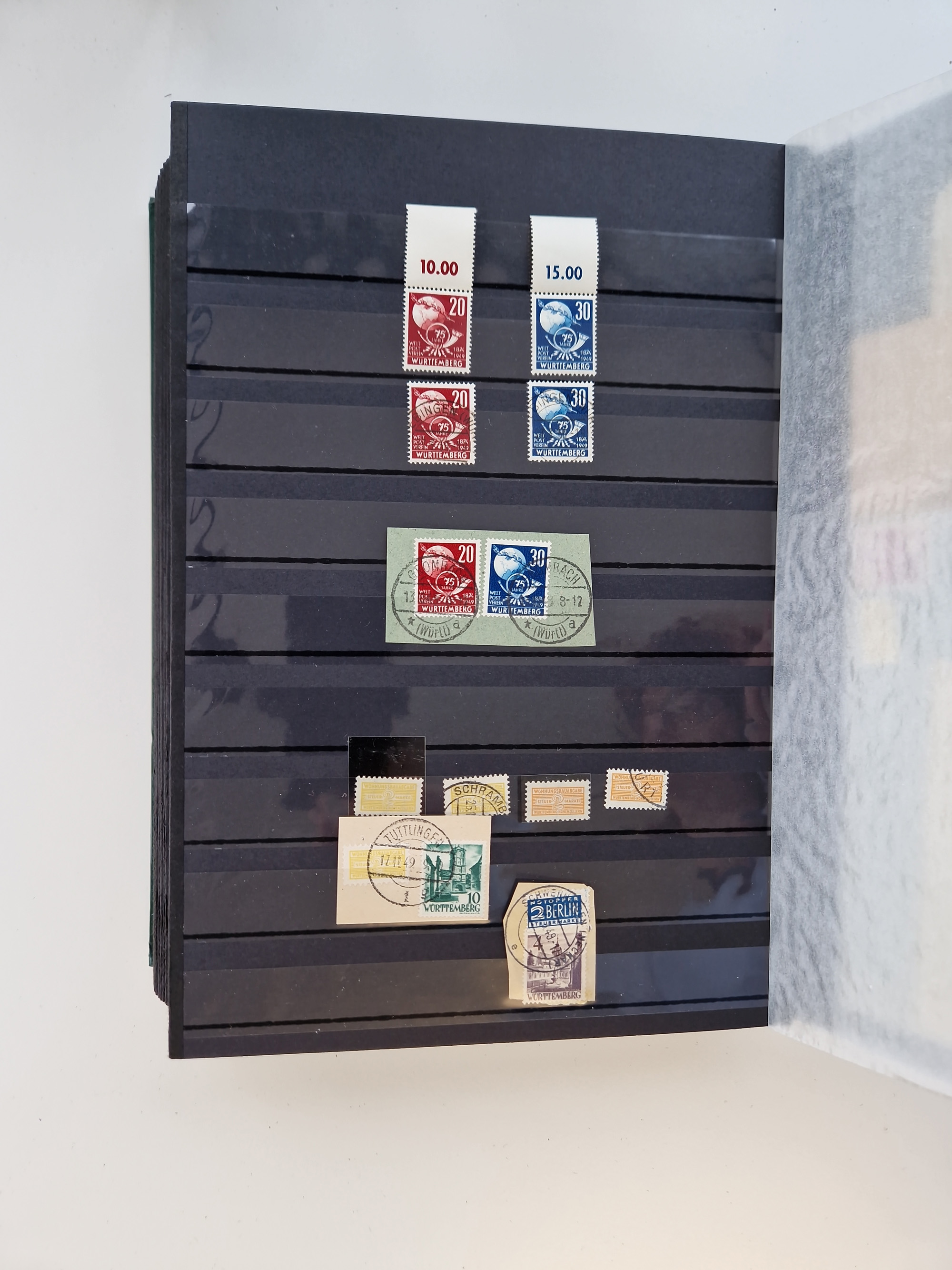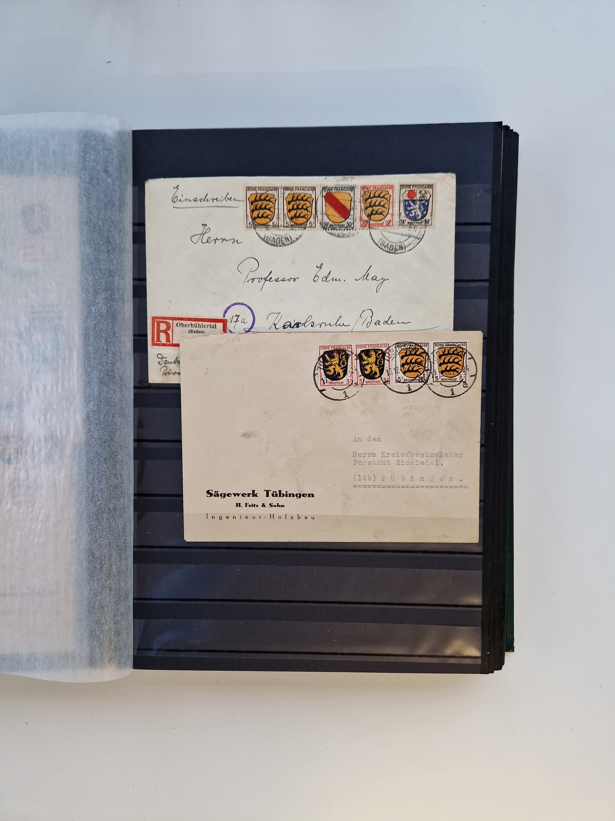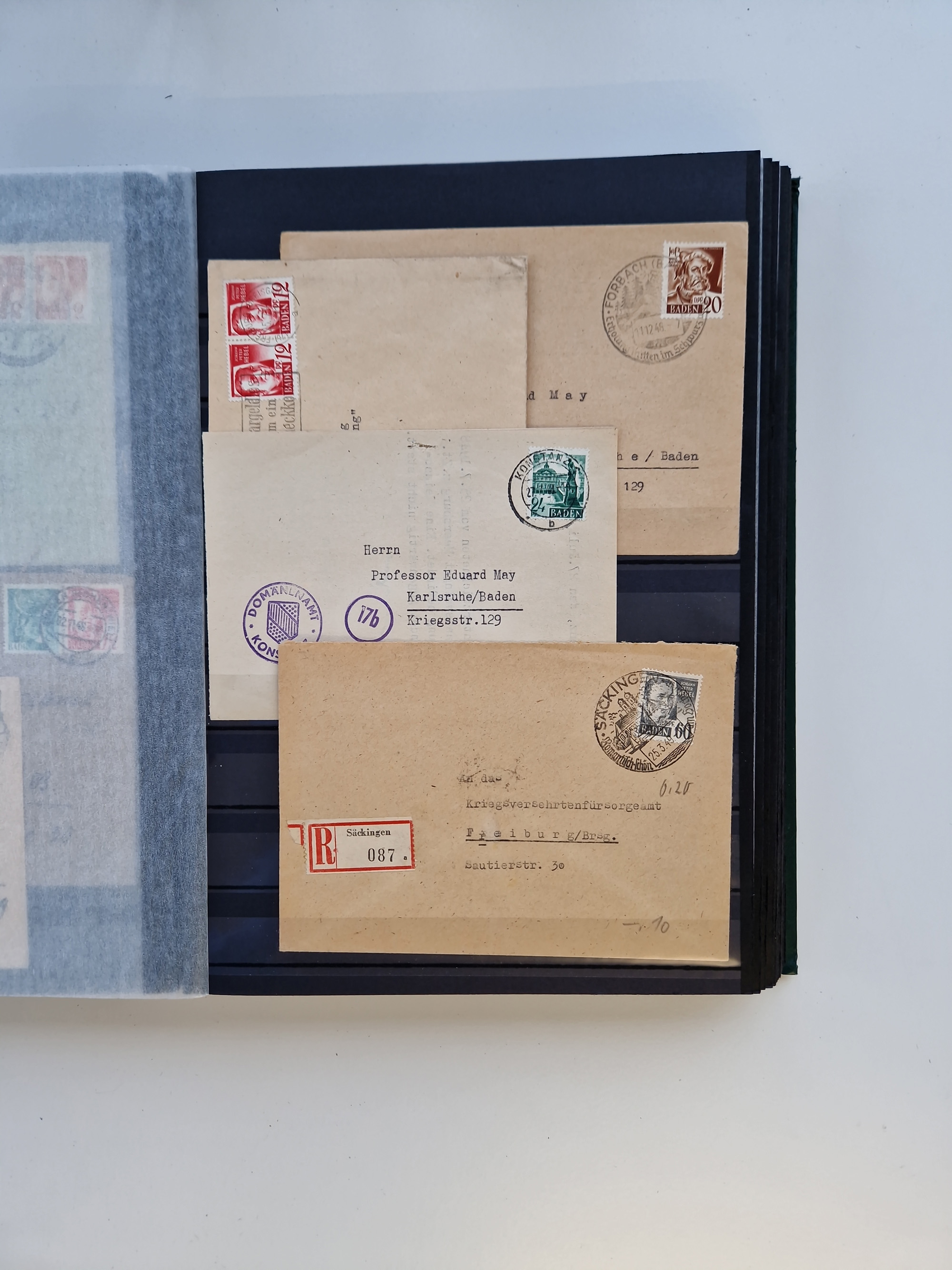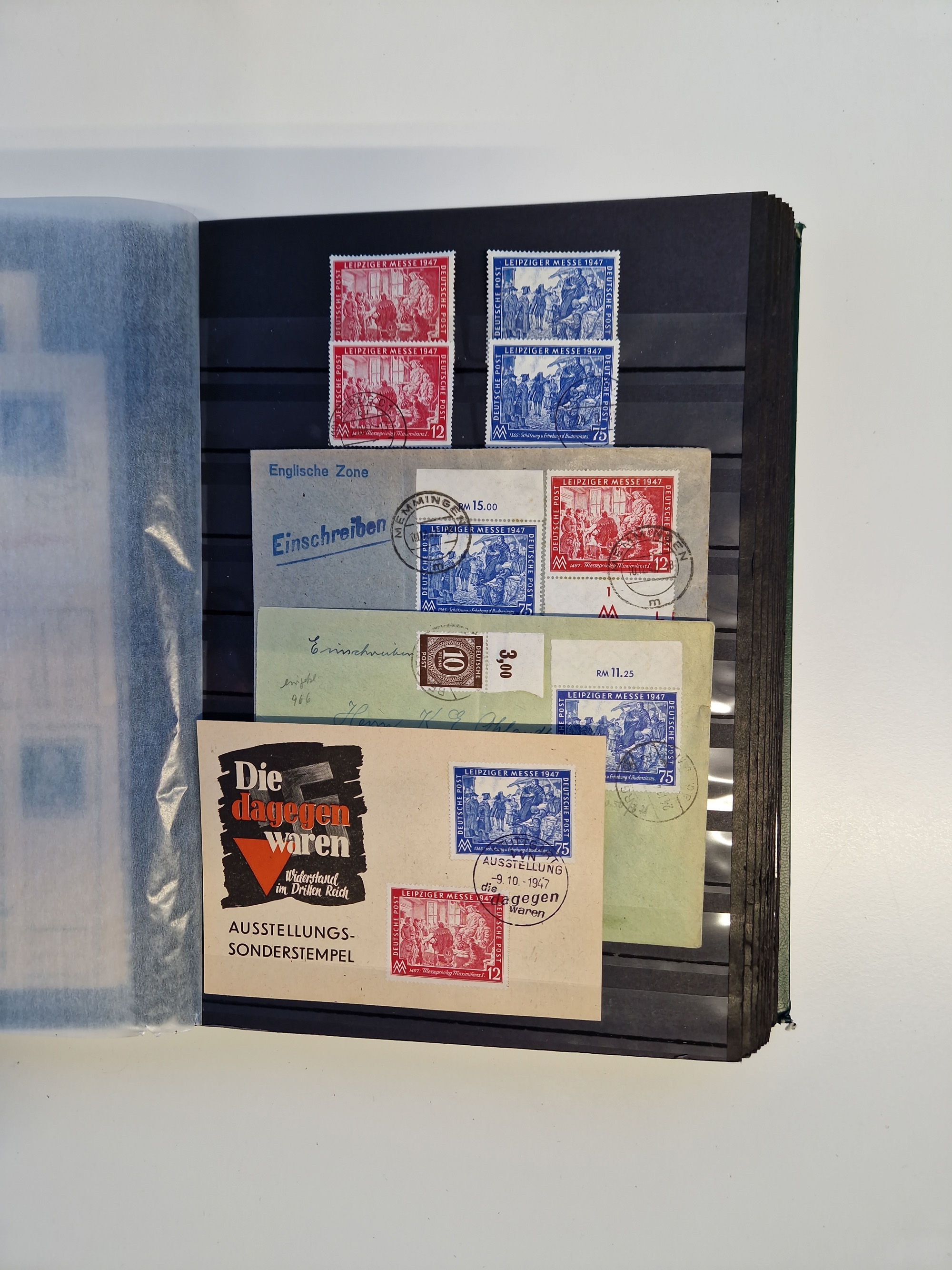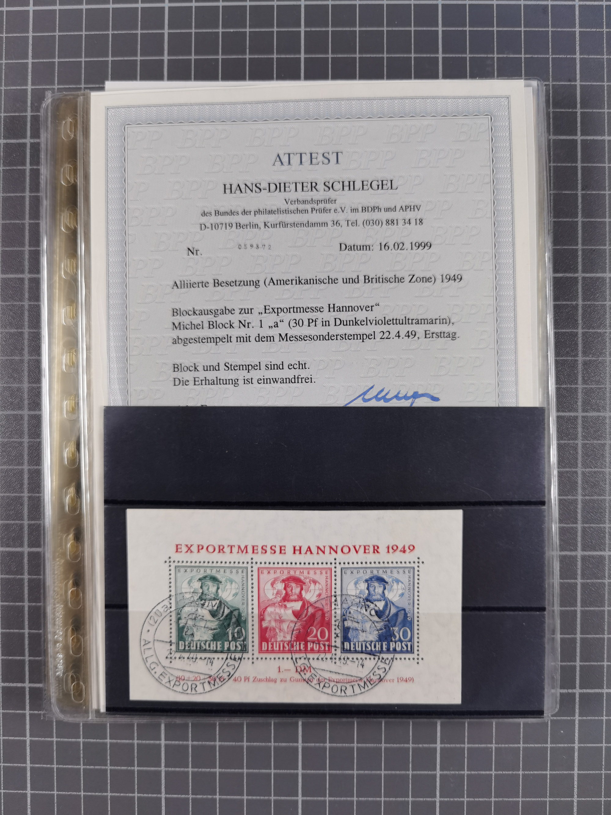1945/50, interessanter Bestand mit fast nur besseren Sätzen, Block-Ausgaben und Briefen. Dabei u.a. SBZ Bl.1xa postfrisch (FA Ströh BPP), Bl.2t gestempelt (FA Dr. Jasch BPP) und Bl. 4ay gestempelt (FA Ströh BPP), Berlin Mi.-Nr. 1-20 gestempelt (sign. Schlegel BPP mit FA) und Bl. 1I gestempelt (FA D. Schlegel BPP), Saarland Bl.1-2 postfrisch (sign. Ney BPP), Baden Bl. 2 mit rotem SST (sign. Schlegel BPP) und Bund mit besseren Anfangsausgaben und Briefen mit u.a. Mi.-Nr. 116 Br.