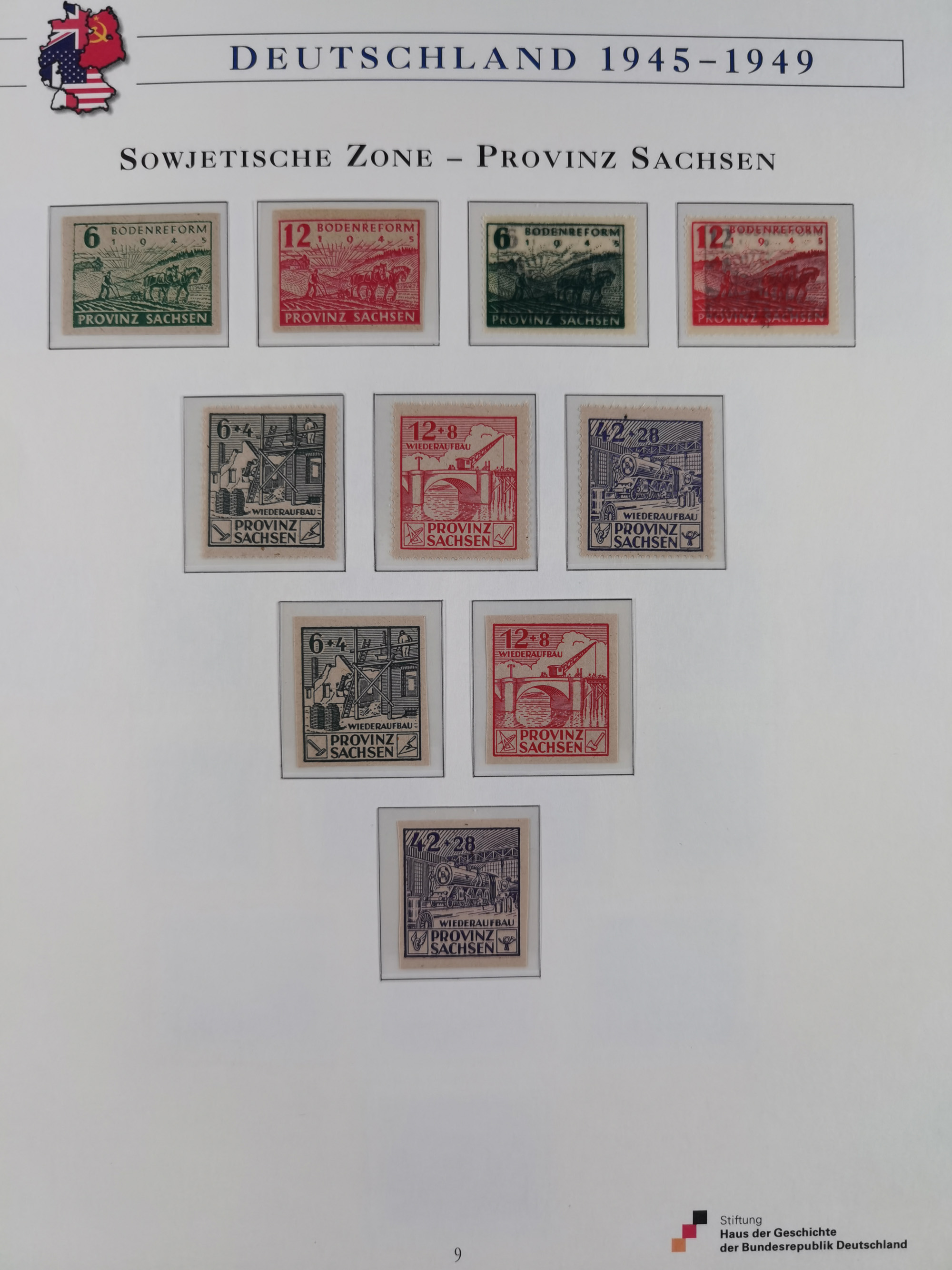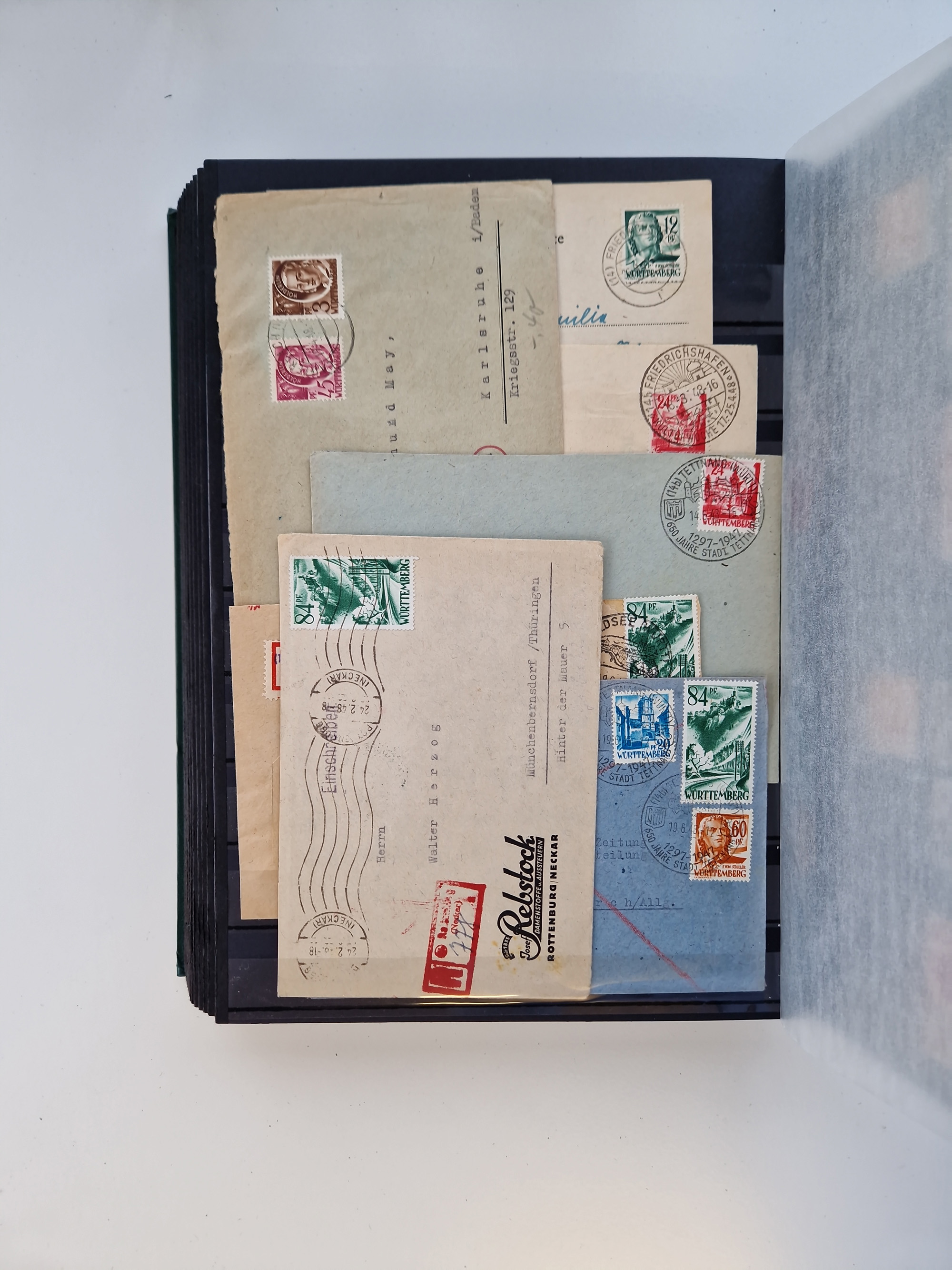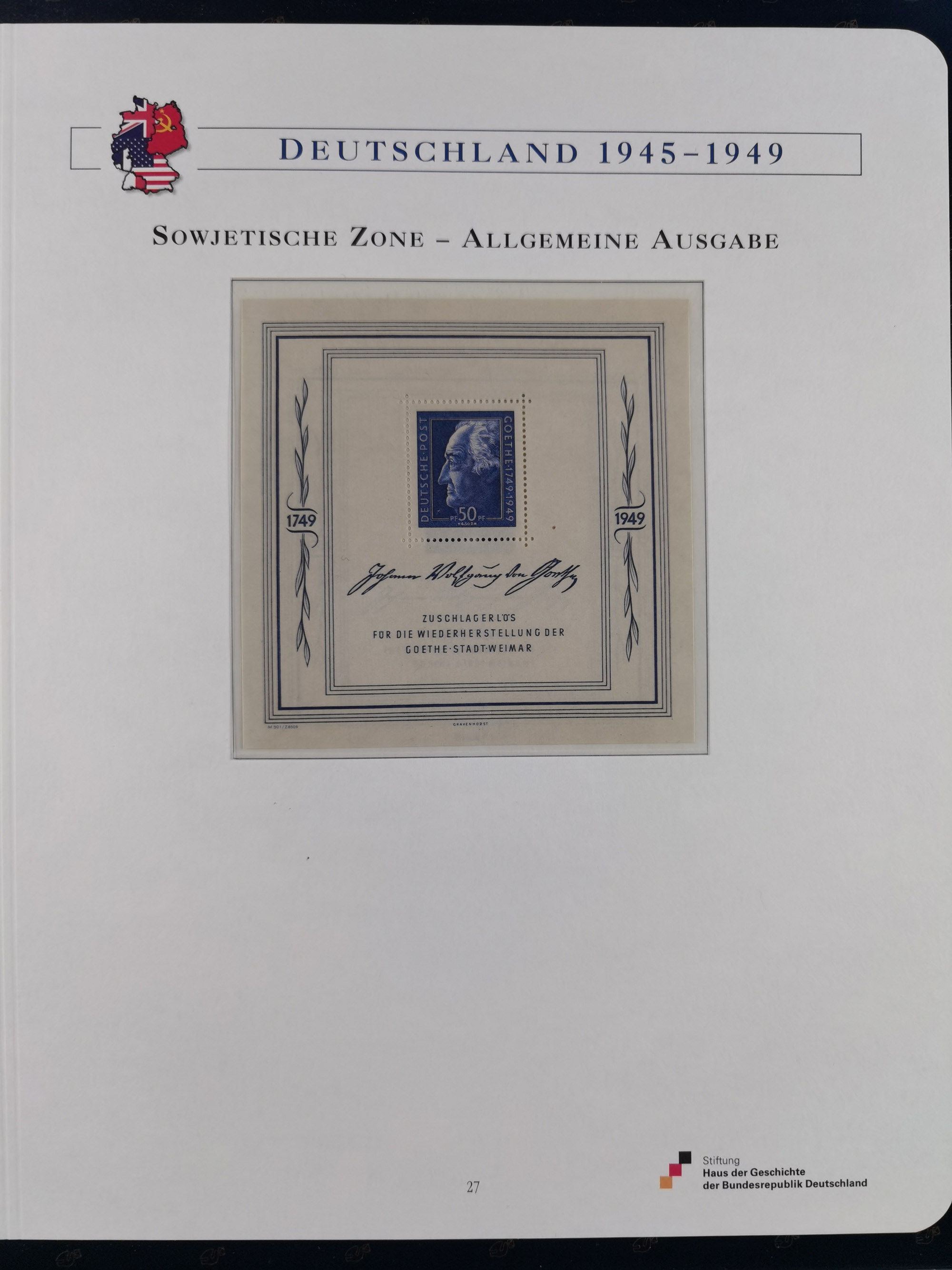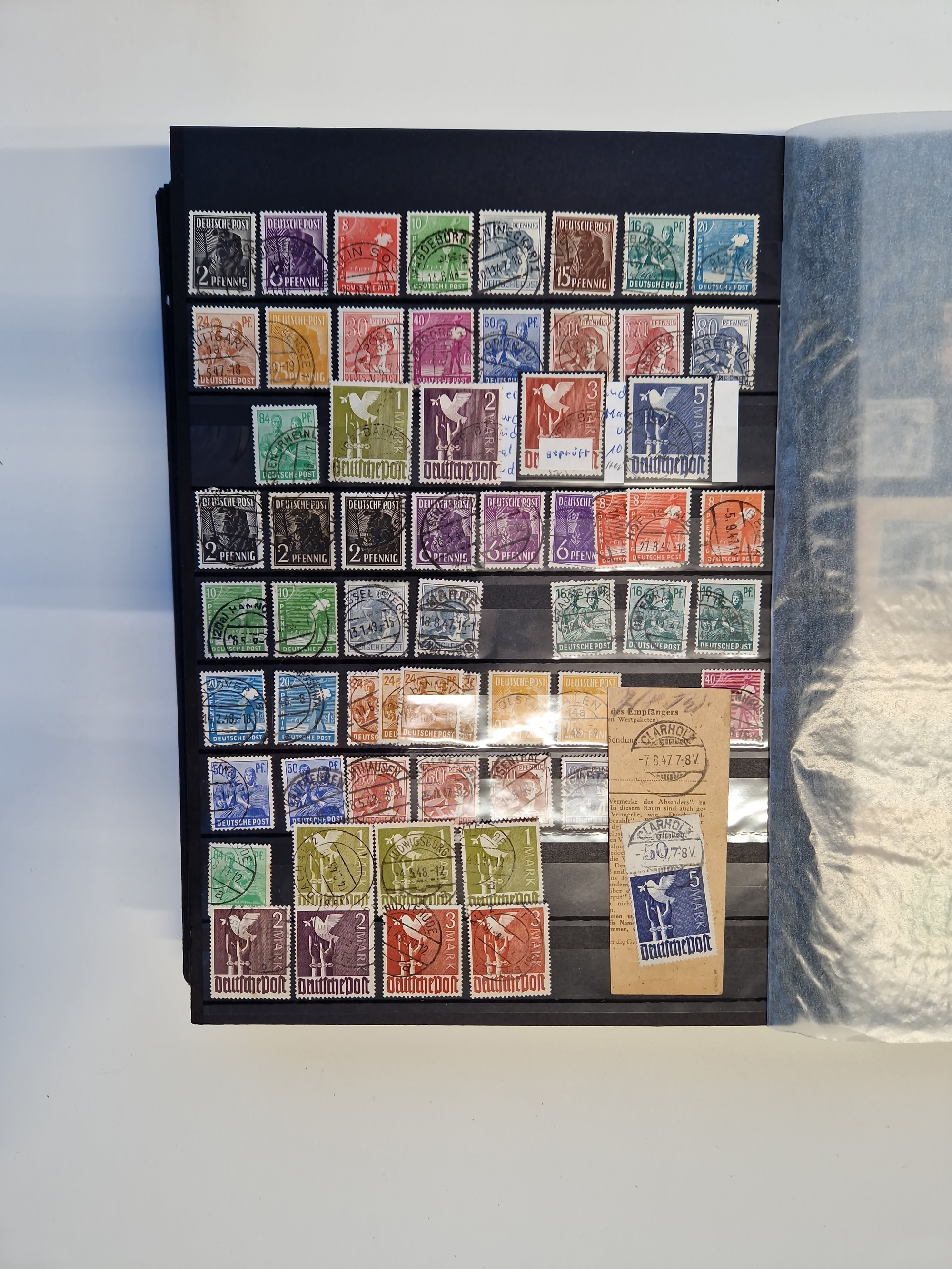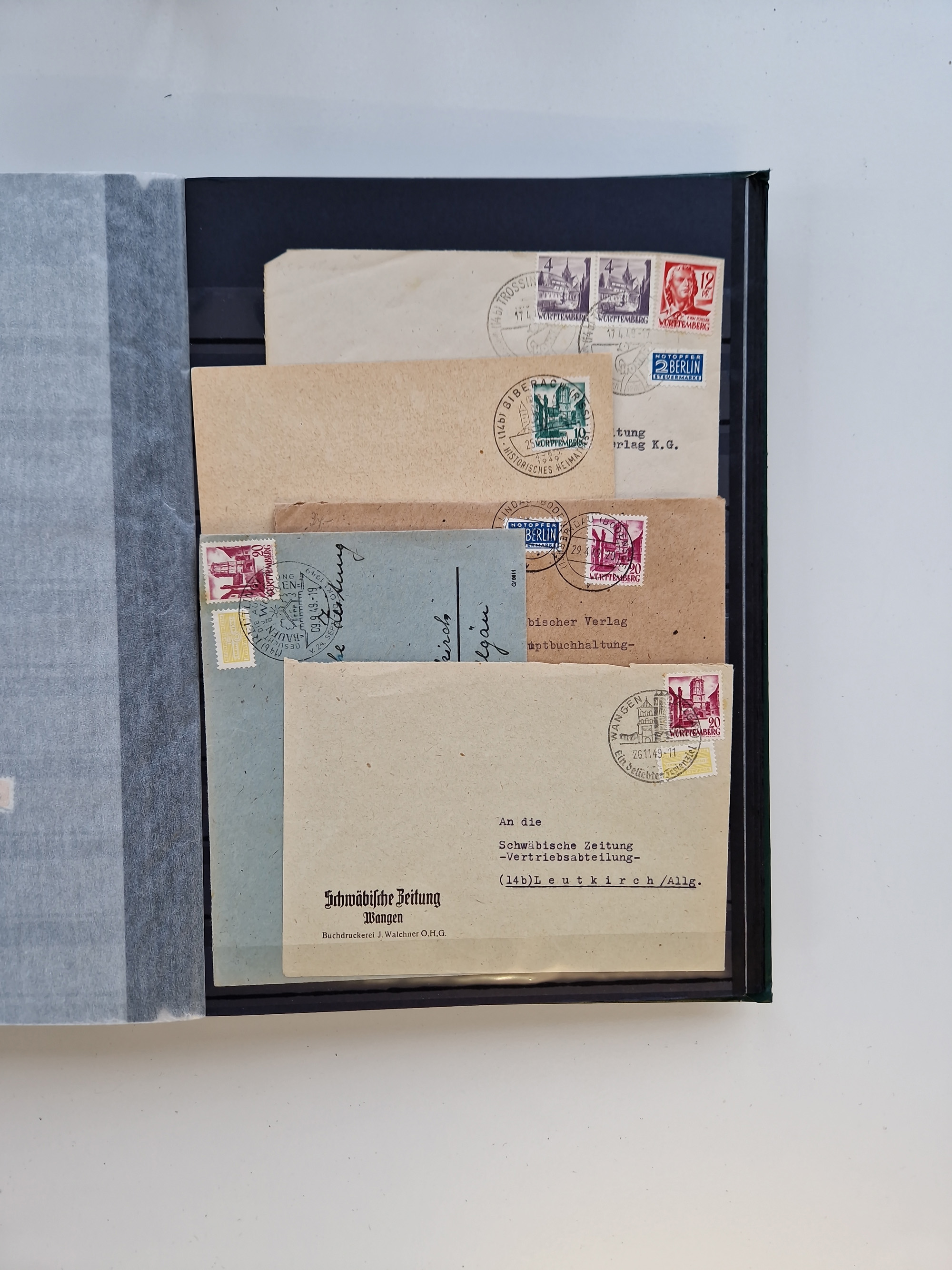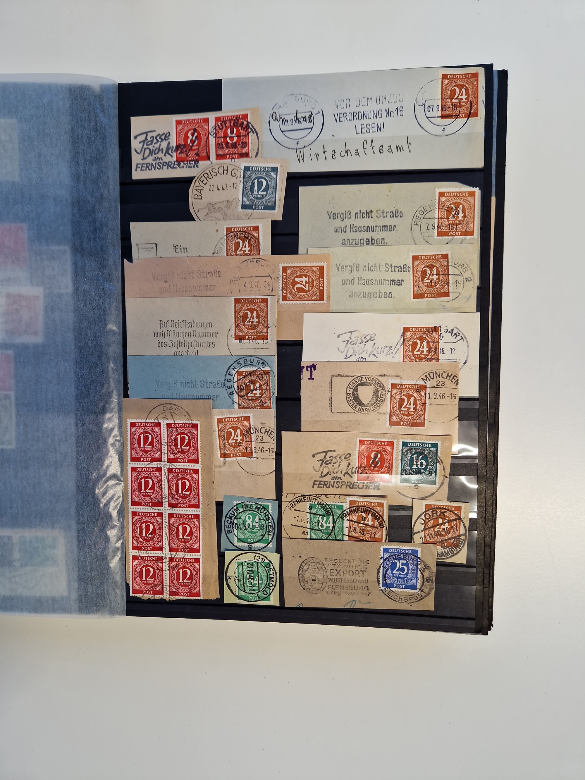 1945/50, interessanter Bestand mit fast nur besseren Sätzen, Block-Ausgaben und Briefen. Dabei u.a. SBZ Bl.1xa postfrisch (FA Ströh BPP), Bl.2t gestempelt (FA Dr. Jasch BPP) und Bl. 4ay gestempelt (FA Ströh BPP), Berlin Mi.-Nr. 1-20 gestempelt (sign. Schlegel BPP mit FA) und Bl. 1I gestempelt (FA D. Schlegel BPP), Saarland Bl.1-2 postfrisch (sign. Ney BPP), Baden Bl. 2 mit rotem SST (sign. Schlegel BPP) und Bund mit besseren Anfangsausgaben und Briefen mit u.a. Mi.-Nr. 116 Br.
