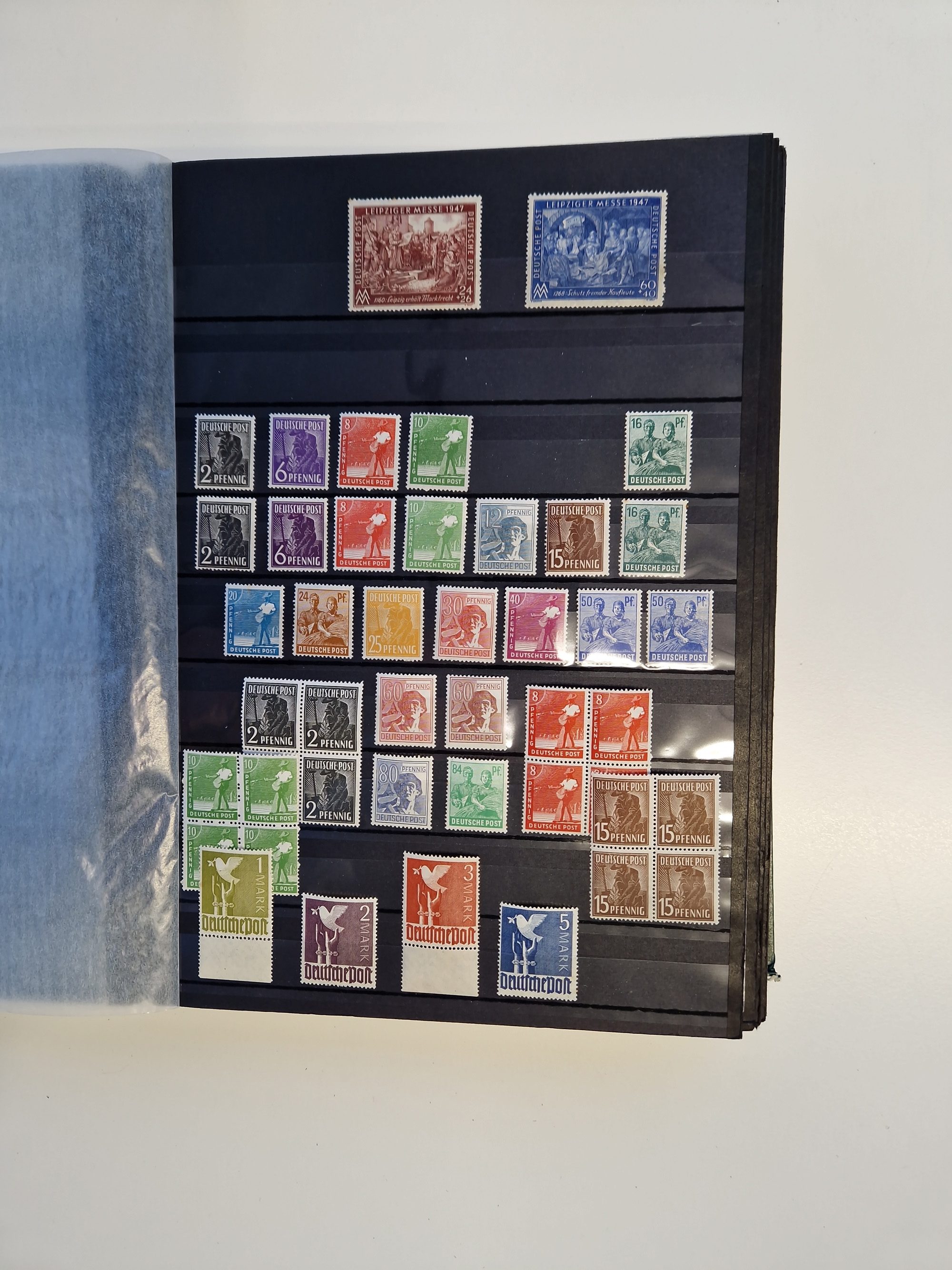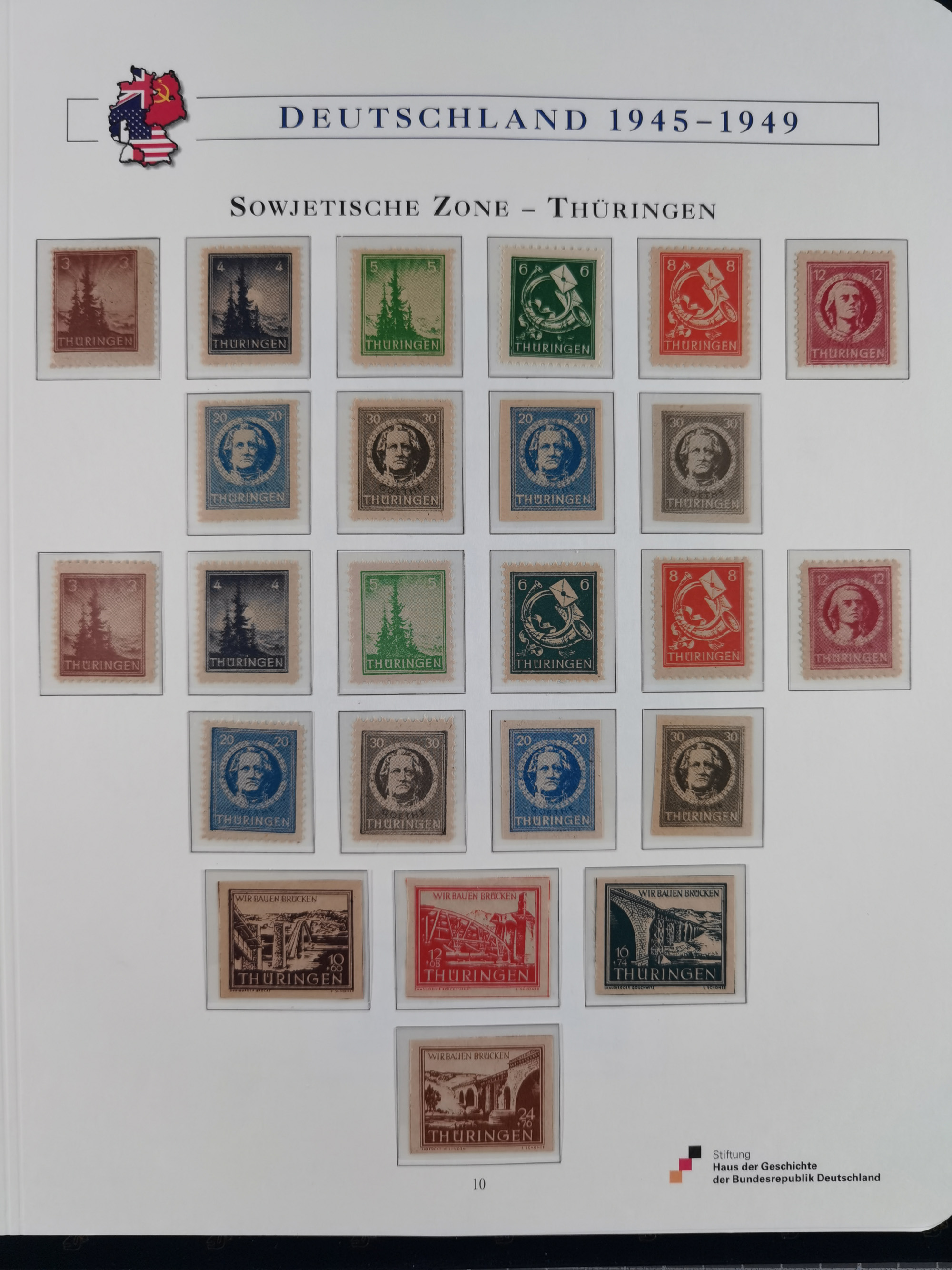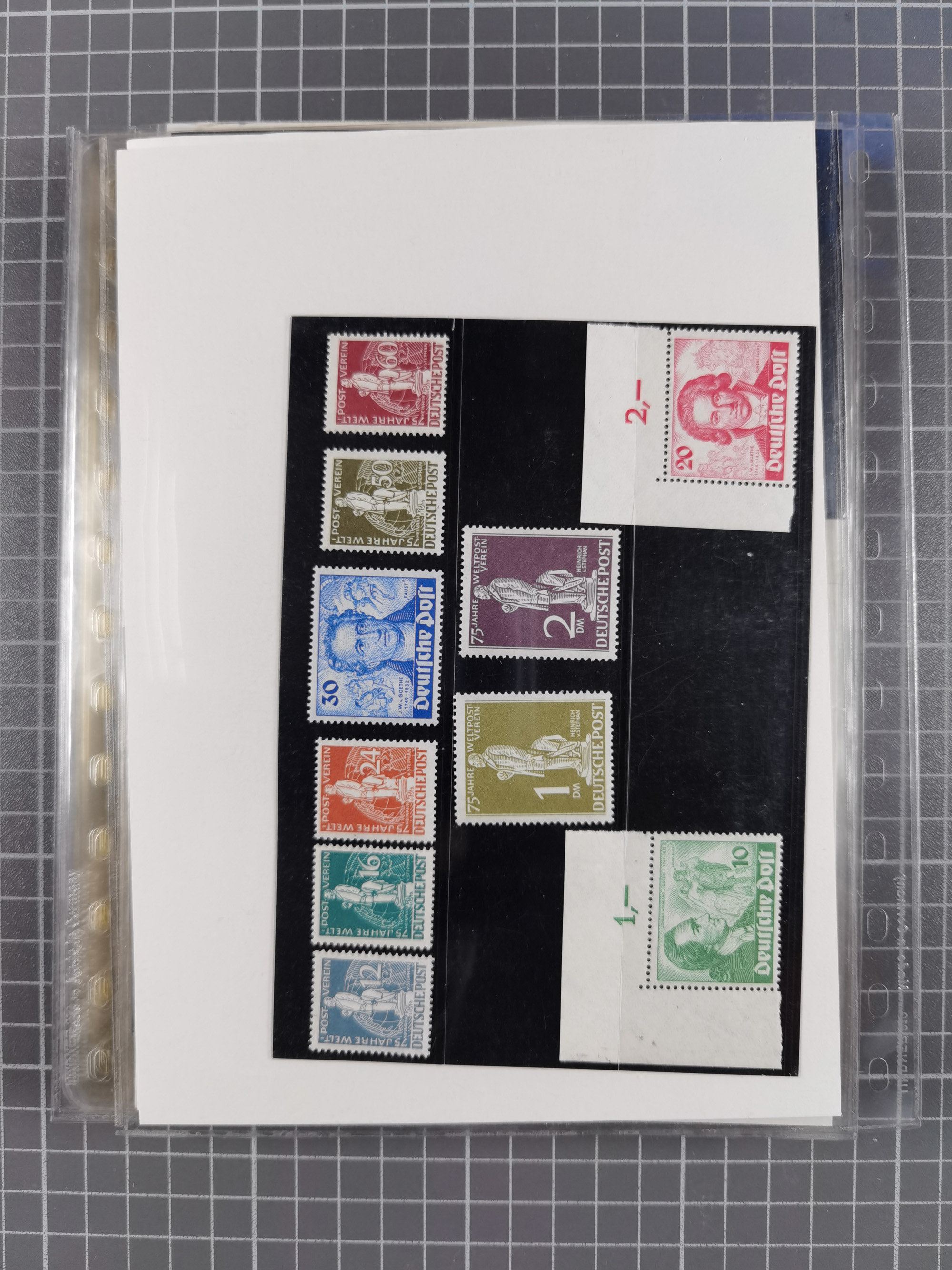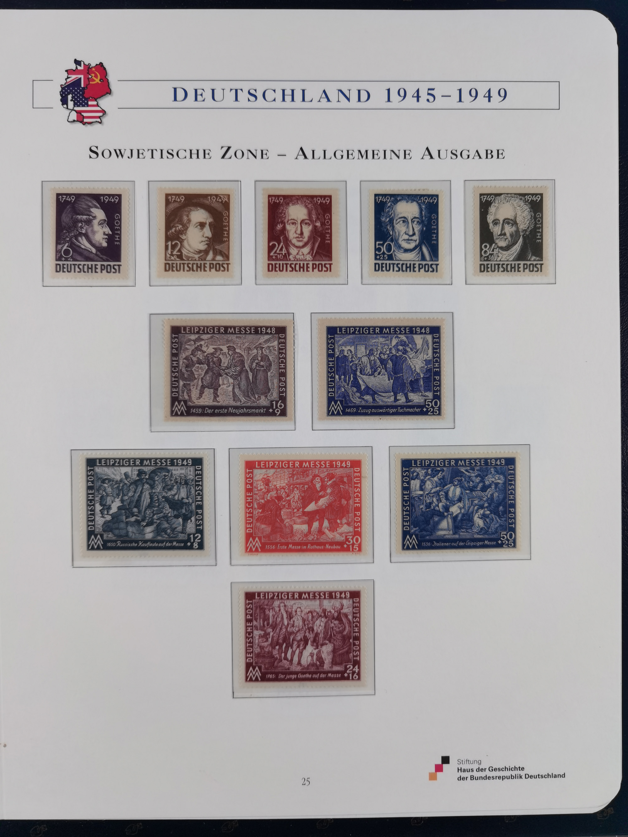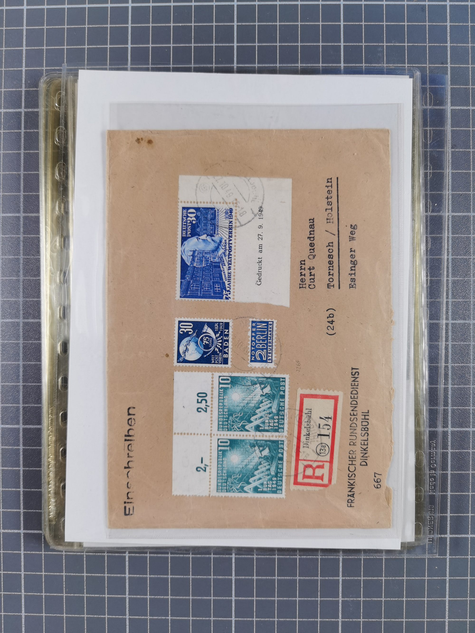 1945/50, interessanter Bestand mit fast nur besseren Sätzen, Block-Ausgaben und Briefen. Dabei u.a. SBZ Bl.1xa postfrisch (FA Ströh BPP), Bl.2t gestempelt (FA Dr. Jasch BPP) und Bl. 4ay gestempelt (FA Ströh BPP), Berlin Mi.-Nr. 1-20 gestempelt (sign. Schlegel BPP mit FA) und Bl. 1I gestempelt (FA D. Schlegel BPP), Saarland Bl.1-2 postfrisch (sign. Ney BPP), Baden Bl. 2 mit rotem SST (sign. Schlegel BPP) und Bund mit besseren Anfangsausgaben und Briefen mit u.a. Mi.-Nr. 116 Br.