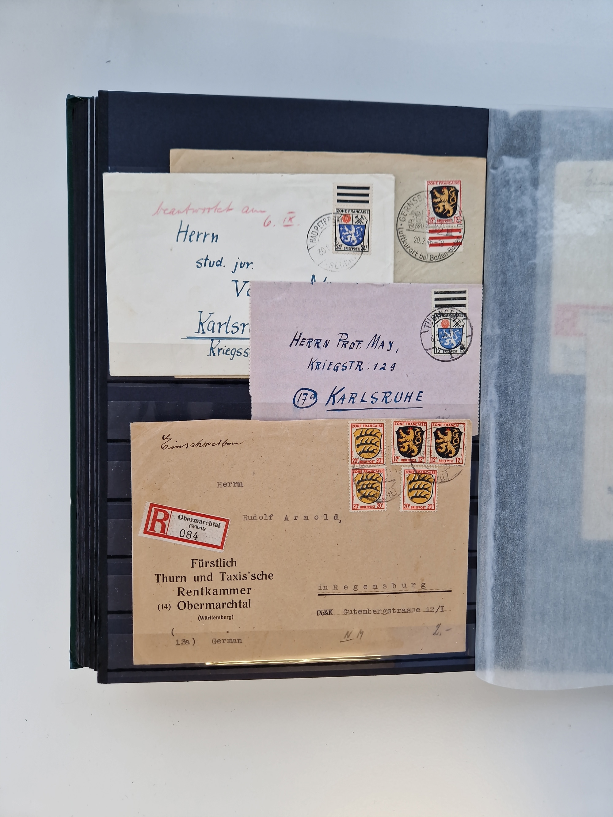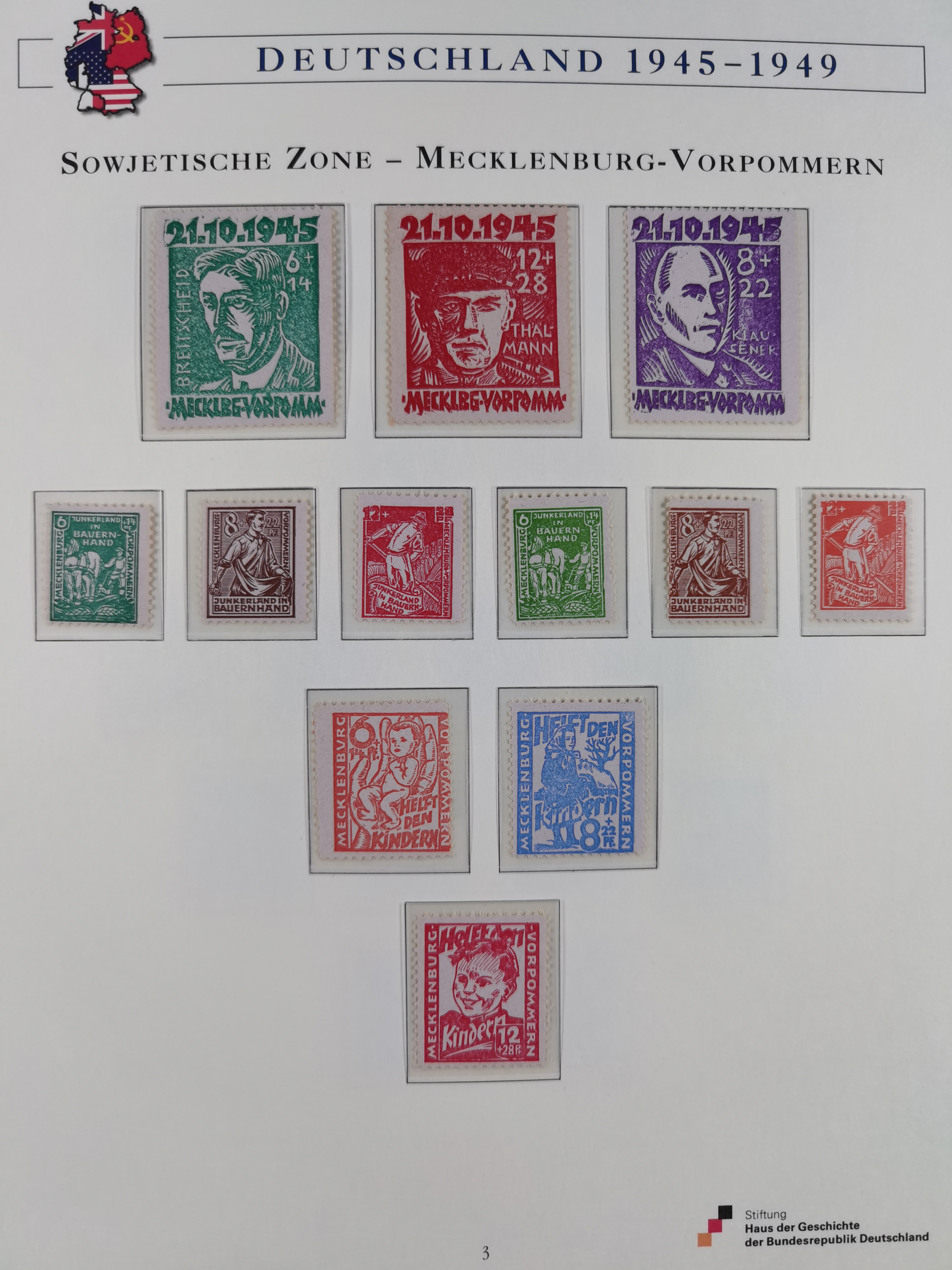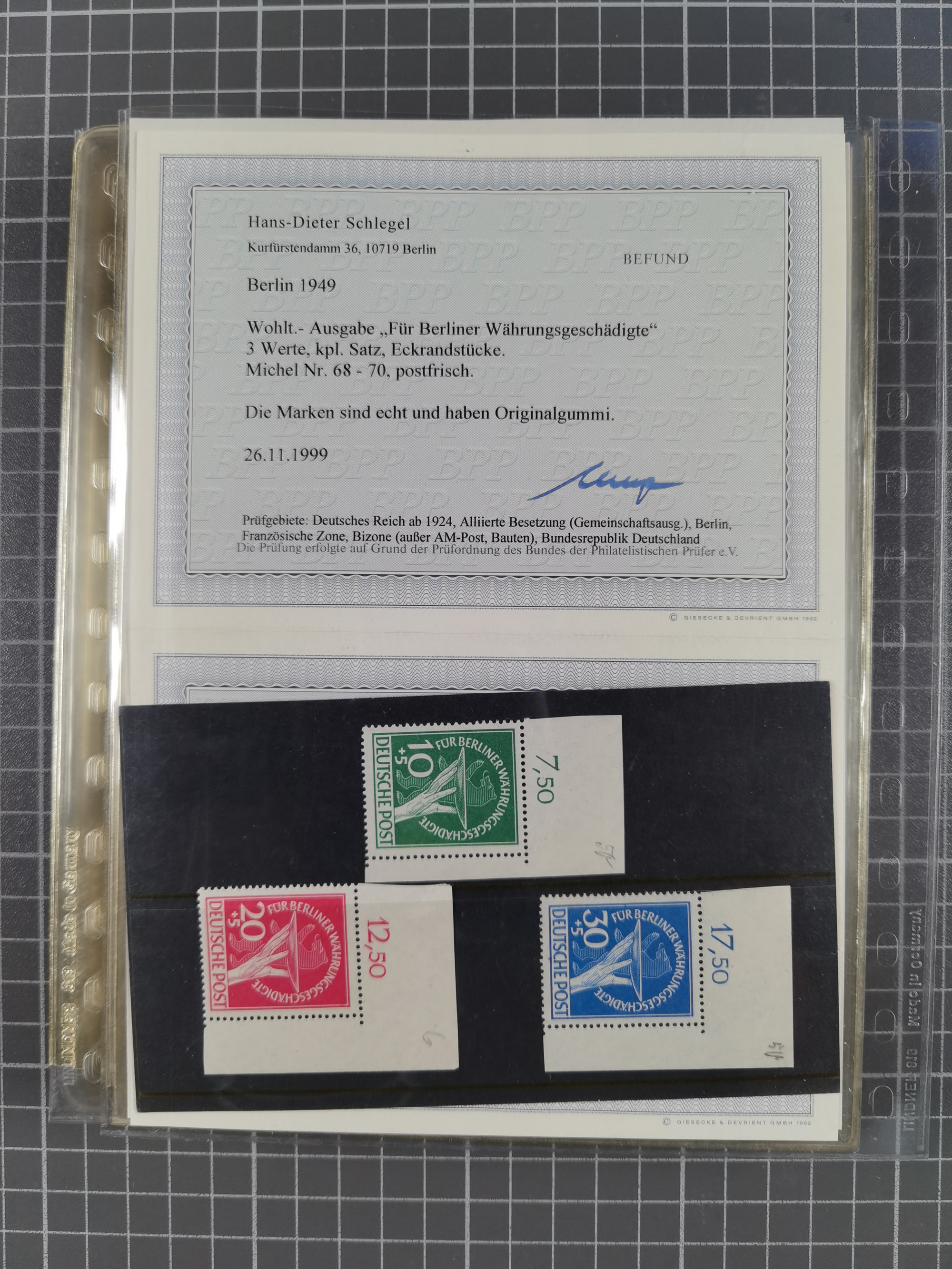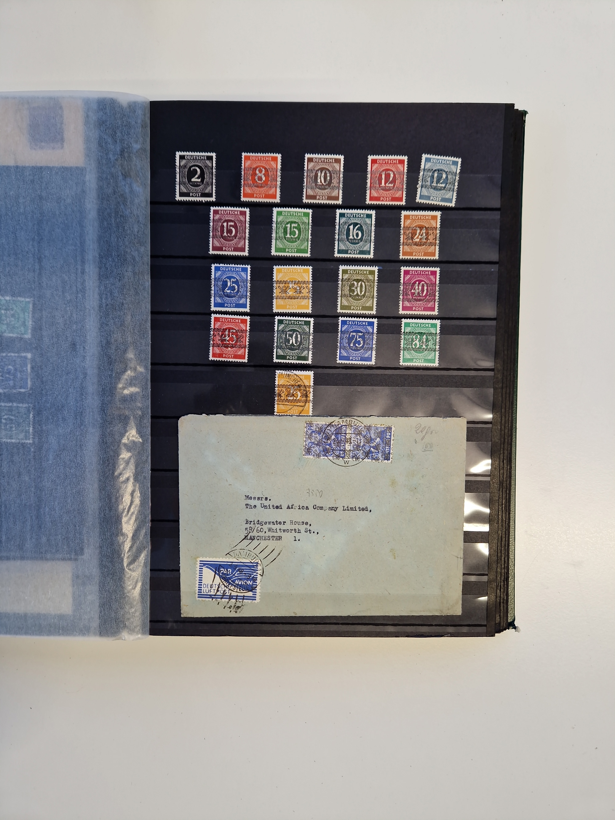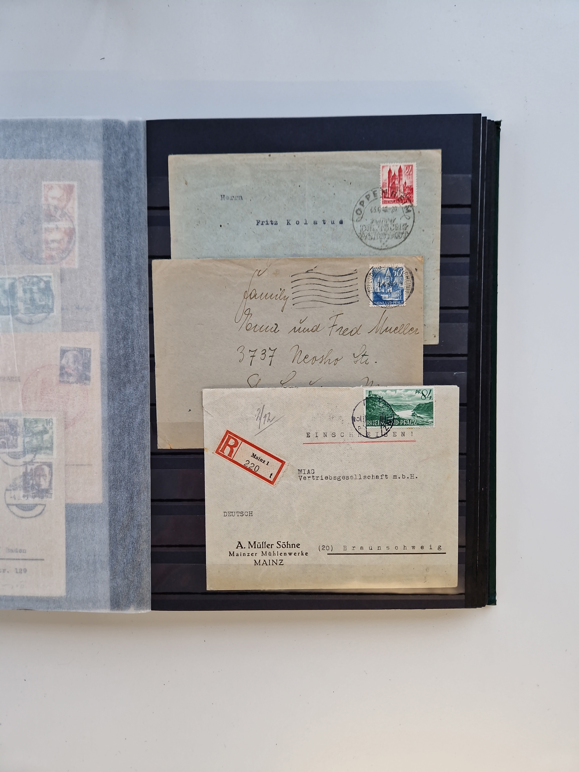 1945/50, interessanter Bestand mit fast nur besseren Sätzen, Block-Ausgaben und Briefen. Dabei u.a. SBZ Bl.1xa postfrisch (FA Ströh BPP), Bl.2t gestempelt (FA Dr. Jasch BPP) und Bl. 4ay gestempelt (FA Ströh BPP), Berlin Mi.-Nr. 1-20 gestempelt (sign. Schlegel BPP mit FA) und Bl. 1I gestempelt (FA D. Schlegel BPP), Saarland Bl.1-2 postfrisch (sign. Ney BPP), Baden Bl. 2 mit rotem SST (sign. Schlegel BPP) und Bund mit besseren Anfangsausgaben und Briefen mit u.a. Mi.-Nr. 116 Br.