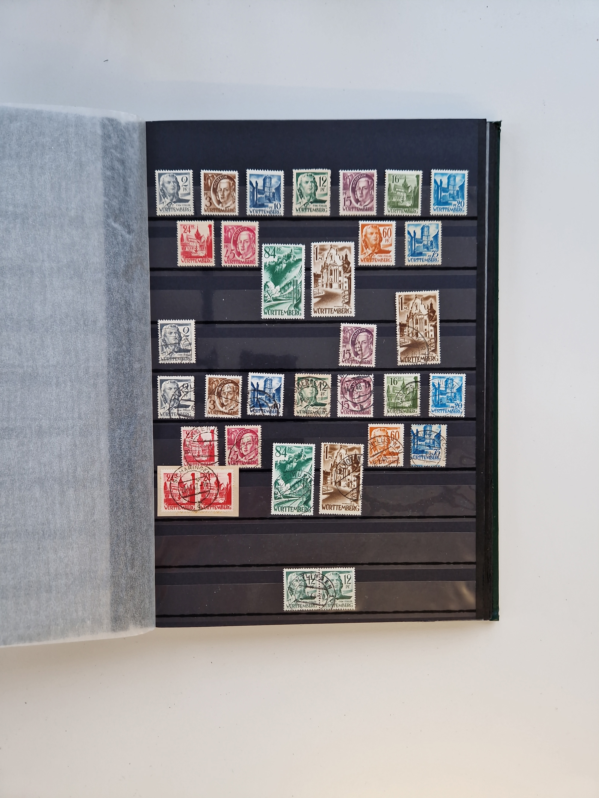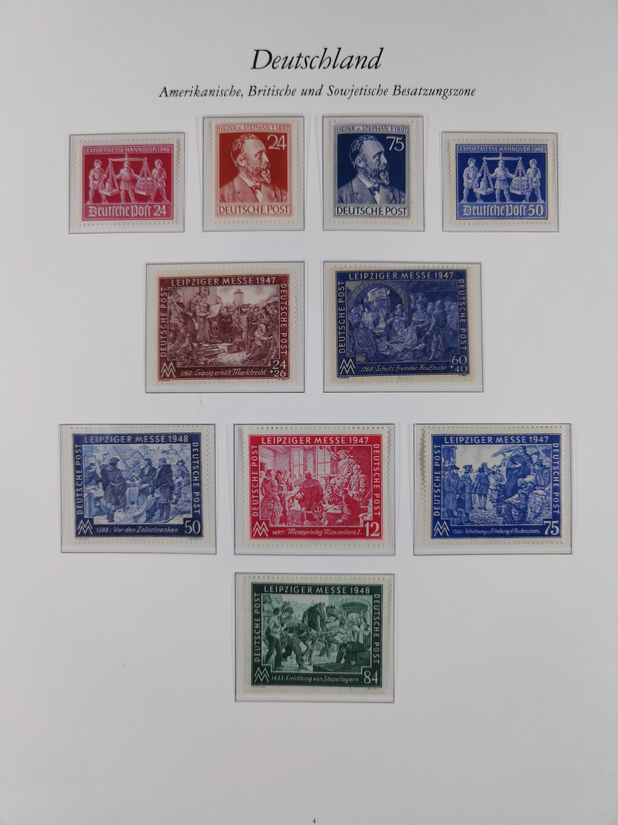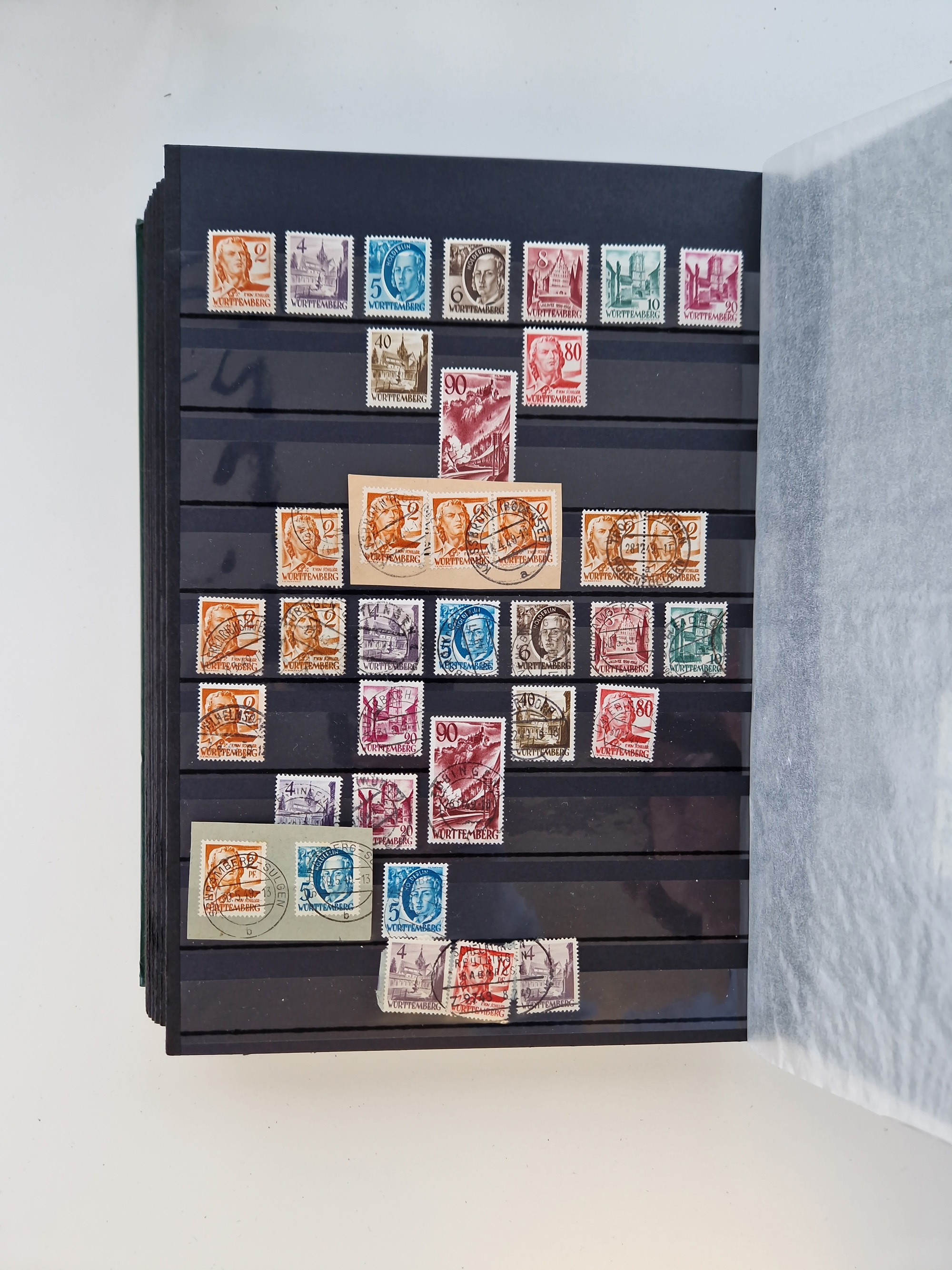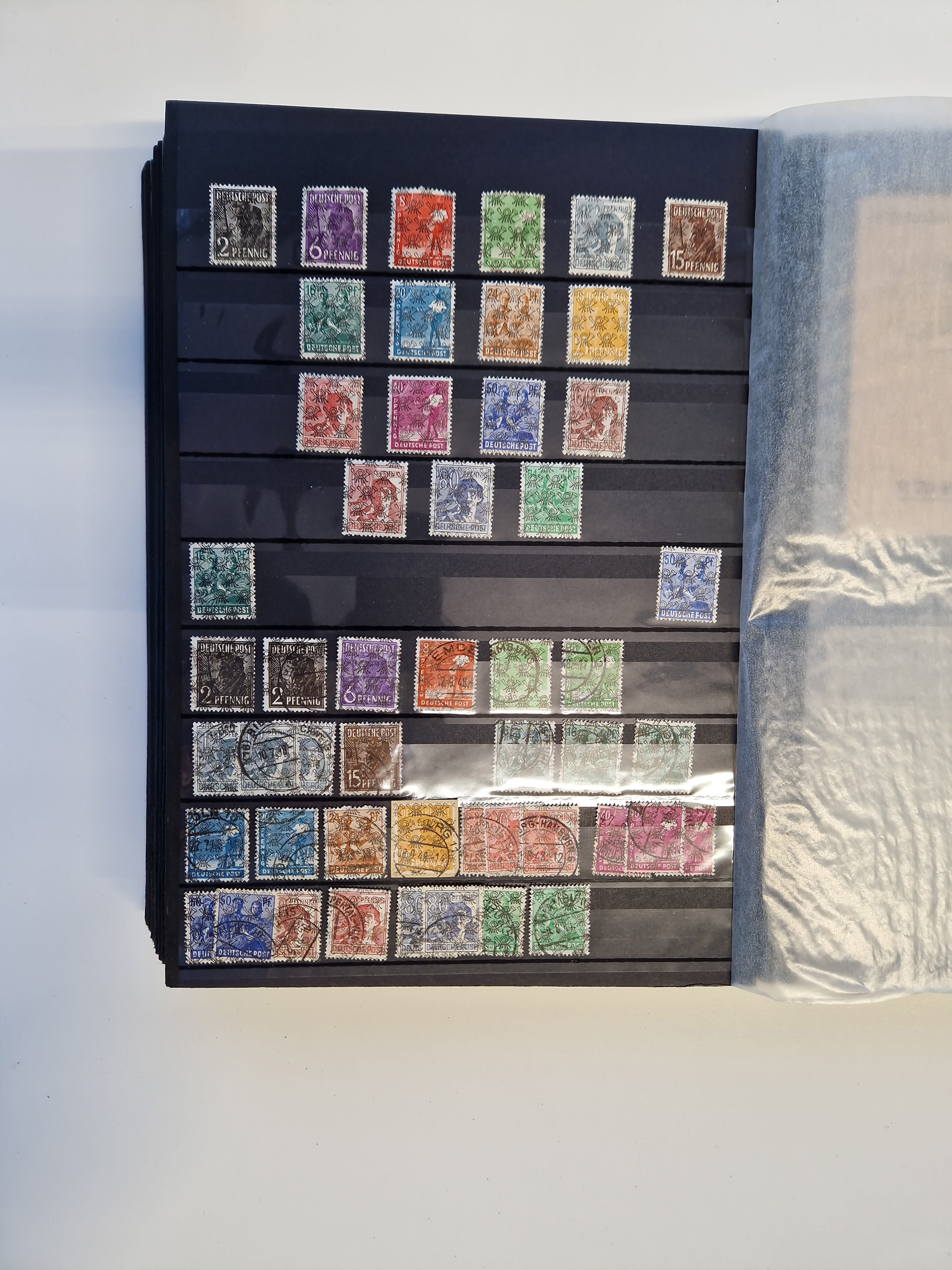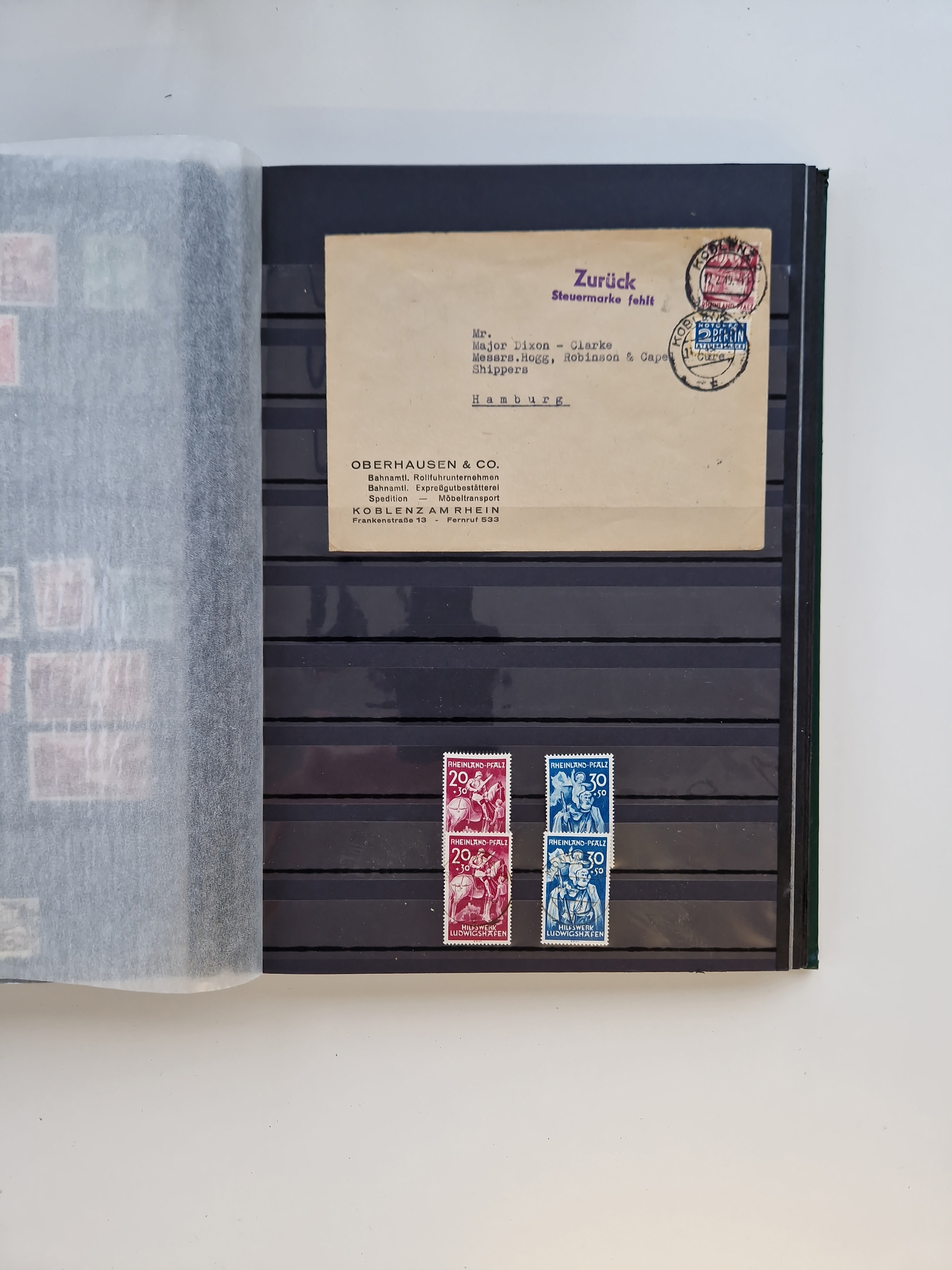 1945/50, interessanter Bestand mit fast nur besseren Sätzen, Block-Ausgaben und Briefen. Dabei u.a. SBZ Bl.1xa postfrisch (FA Ströh BPP), Bl.2t gestempelt (FA Dr. Jasch BPP) und Bl. 4ay gestempelt (FA Ströh BPP), Berlin Mi.-Nr. 1-20 gestempelt (sign. Schlegel BPP mit FA) und Bl. 1I gestempelt (FA D. Schlegel BPP), Saarland Bl.1-2 postfrisch (sign. Ney BPP), Baden Bl. 2 mit rotem SST (sign. Schlegel BPP) und Bund mit besseren Anfangsausgaben und Briefen mit u.a. Mi.-Nr. 116 Br.