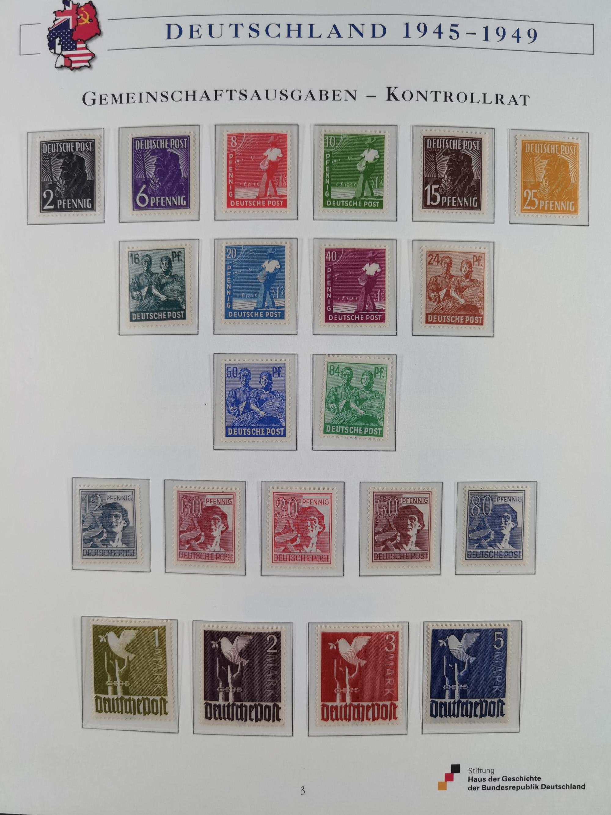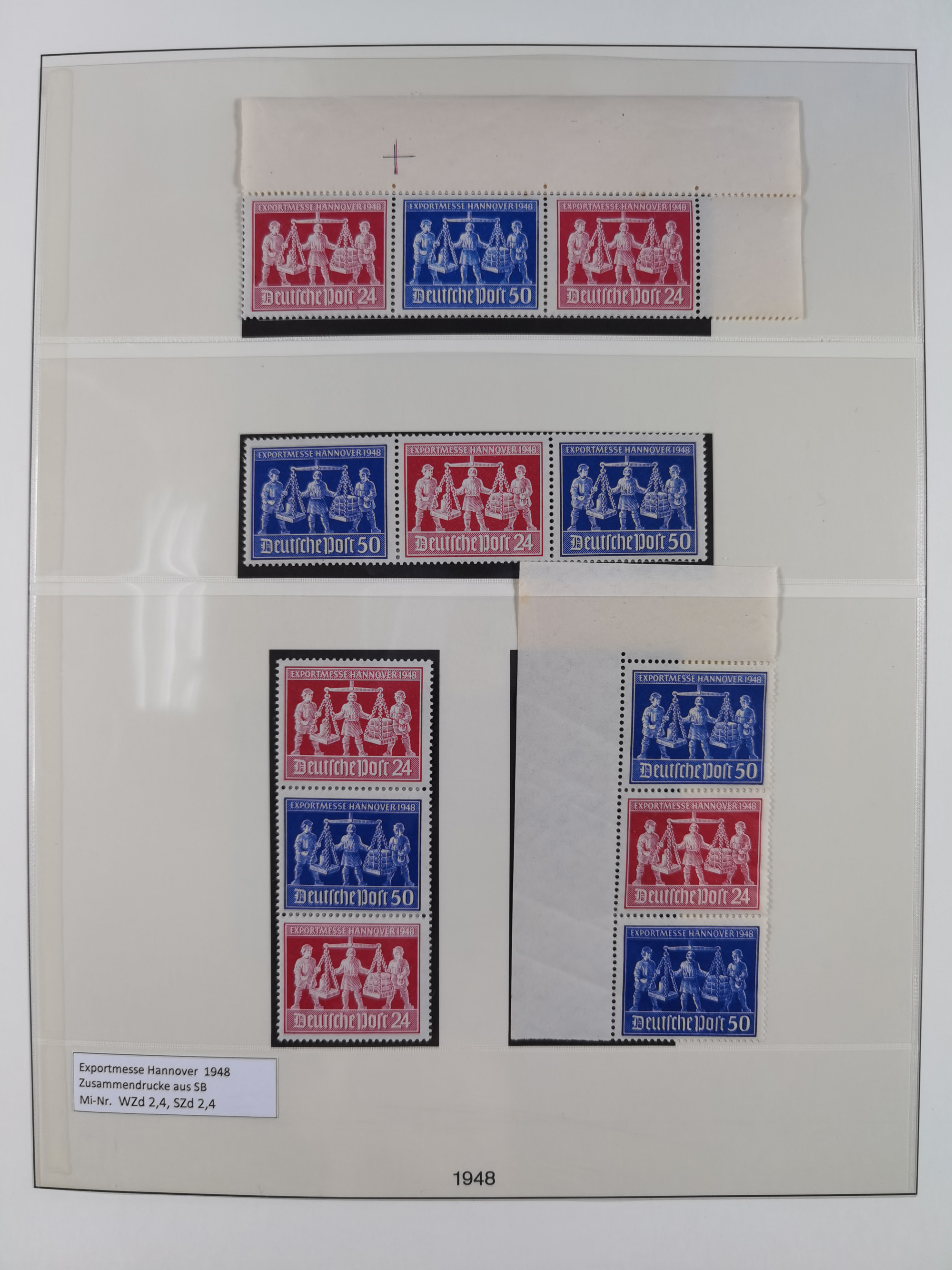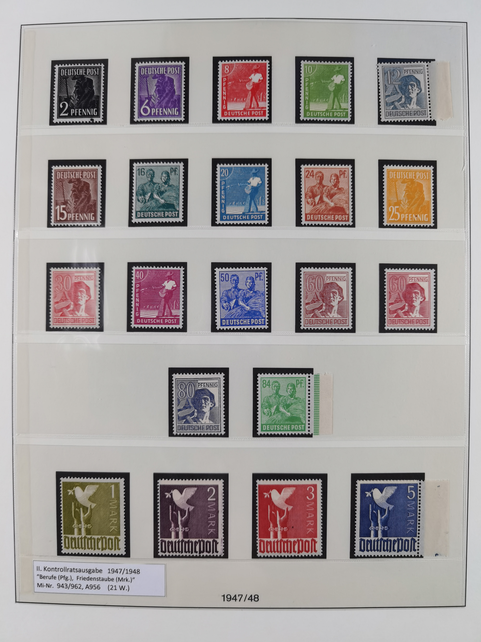 1945/49, ungebraucht/postfrische Sammlung SBZ, Frz. Zone und Kontrollrat/Bizone mit vielen Doubletten, Marken mit Rändern und Farben, in drei Alben