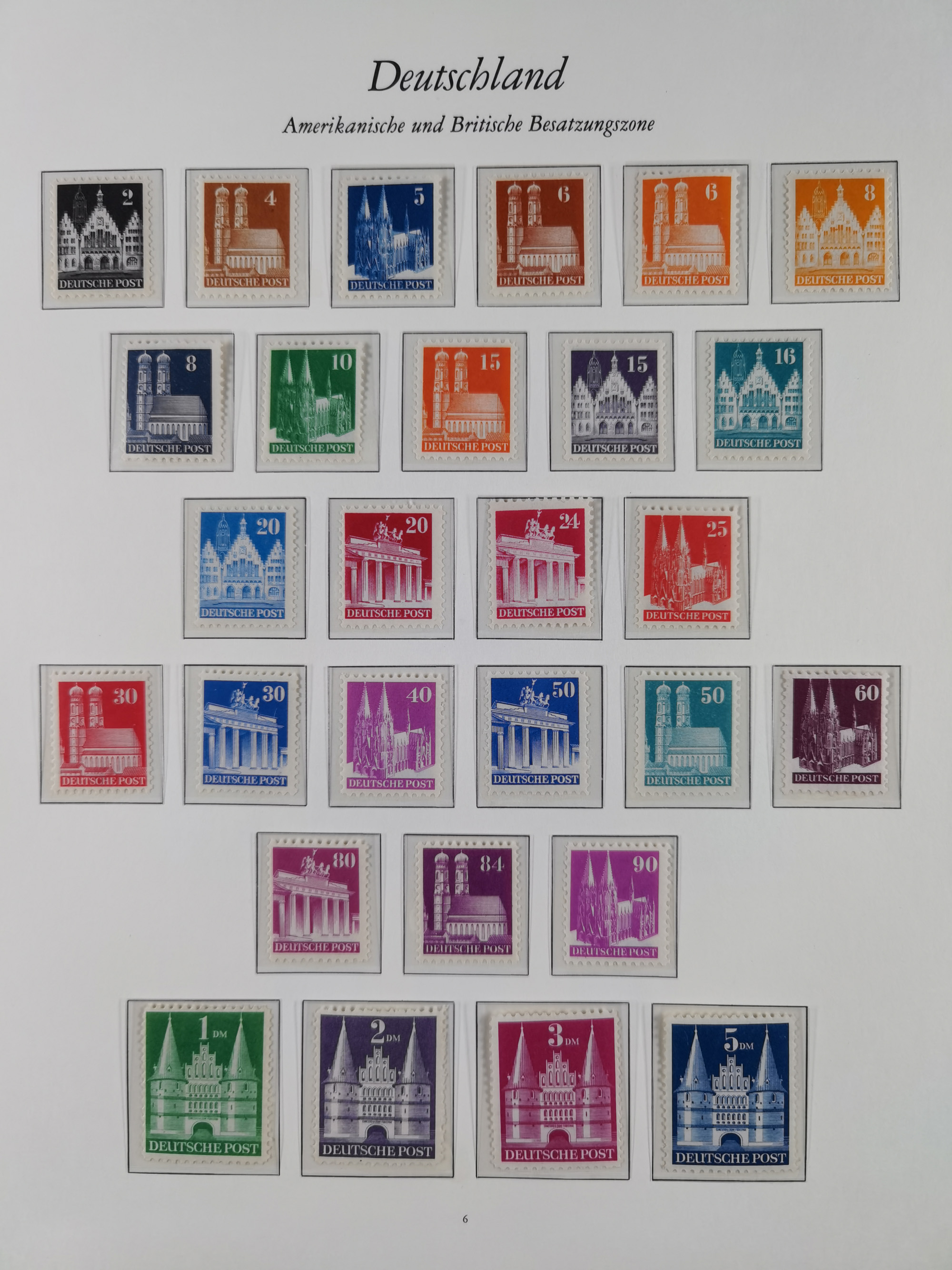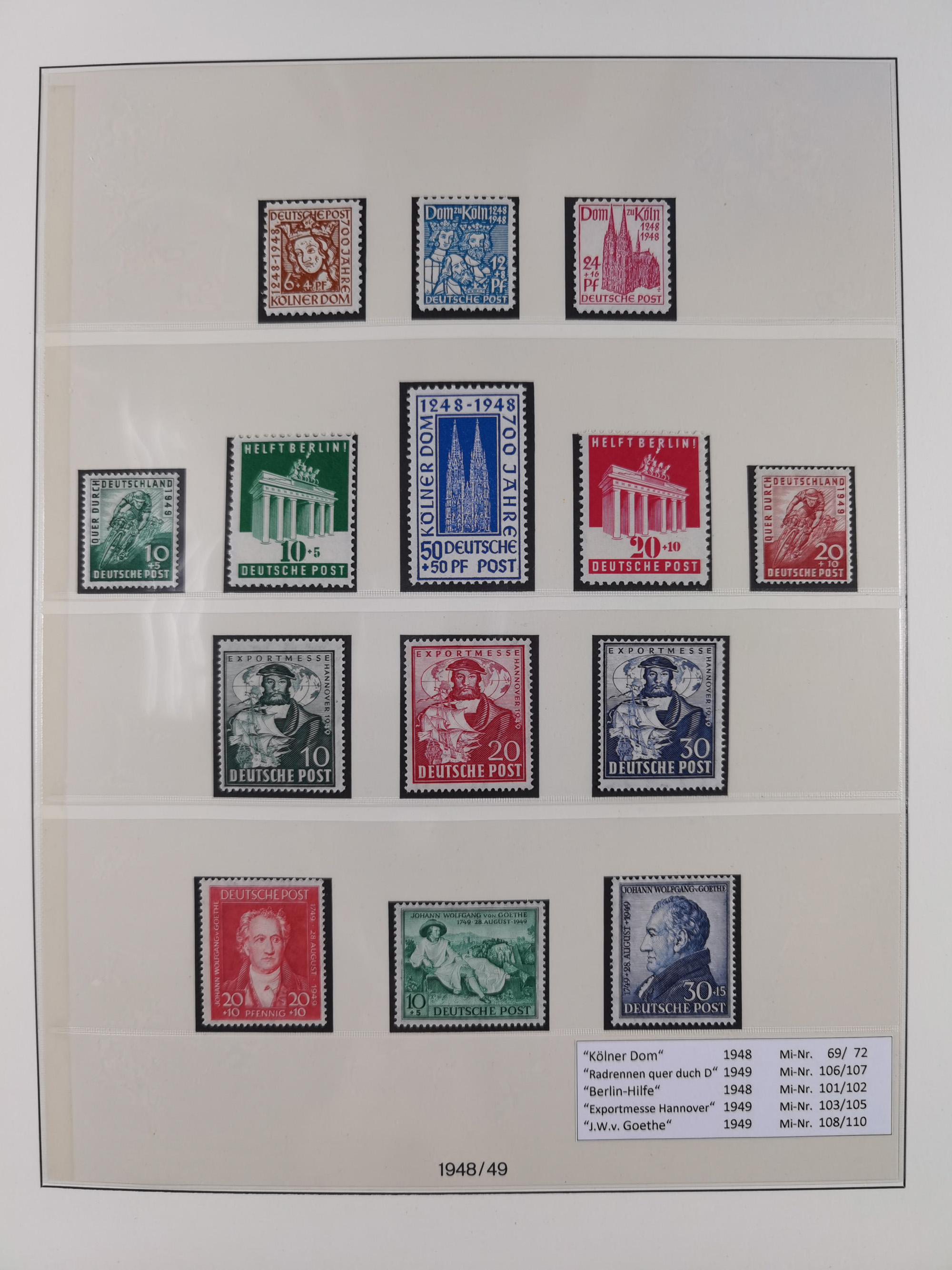 1948/90, in den Hauptnummern bis 1960 komplette postfrische Sammlungen Berlin 1948-90 inkl. Schwarzaufdruck, Rotaufdruck sign. Dub und Block 1, Bundesrepublik 1949-72 inkl. Posthornsatz, sowie DDR 1949-71 inkl. ausgiebigen Teilen Zusammendrucke, es fehlen bei den späten modernen Ausgaben teils einzelne Werte oder Sätze, gute Erhaltung, Alben mit Lagerspuren, in 11 Vordruckalben