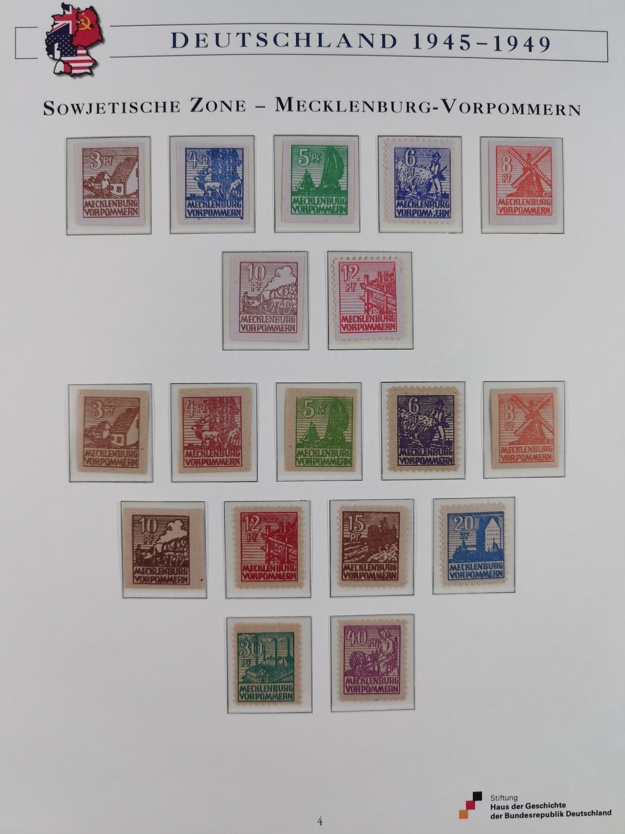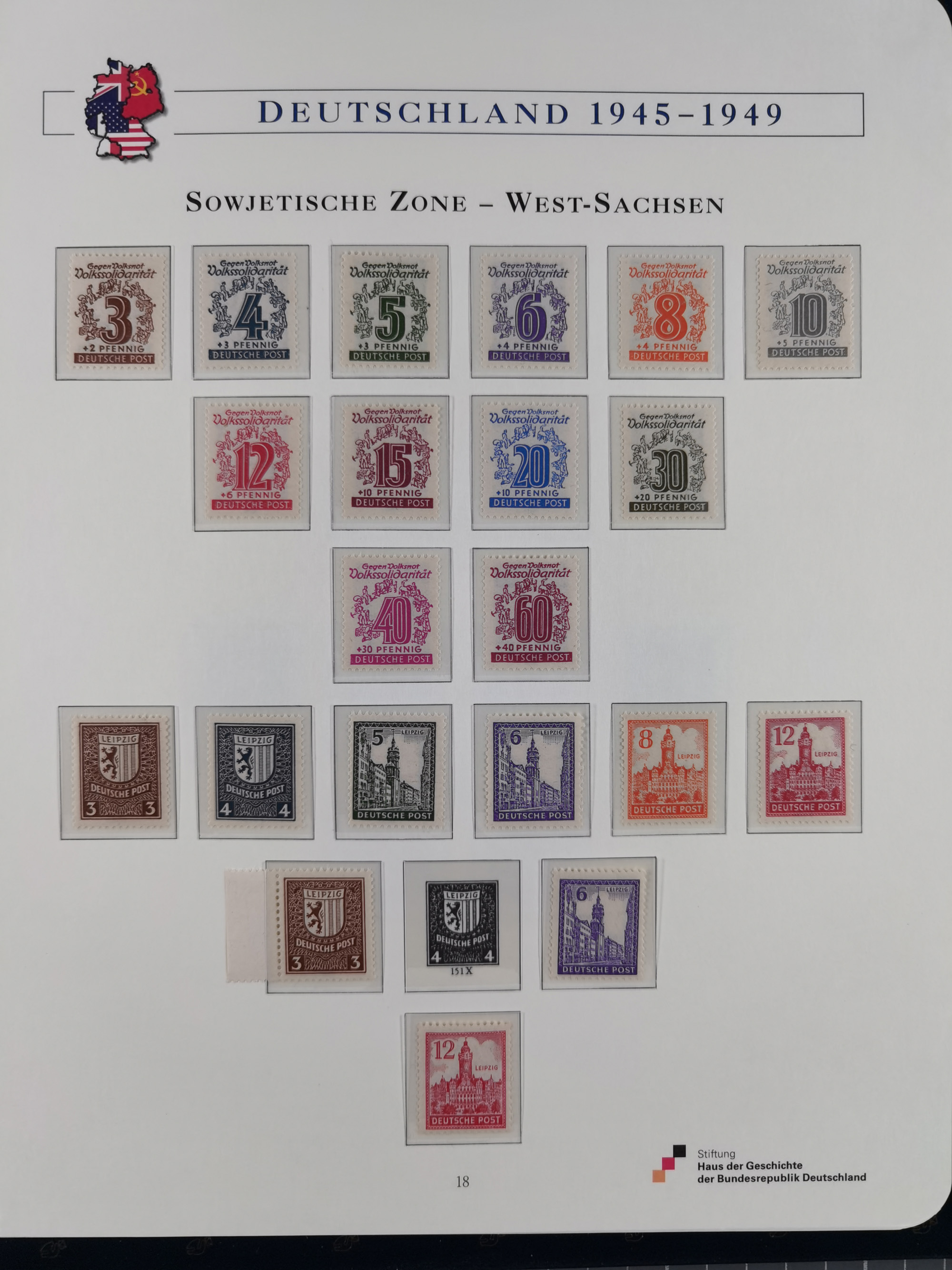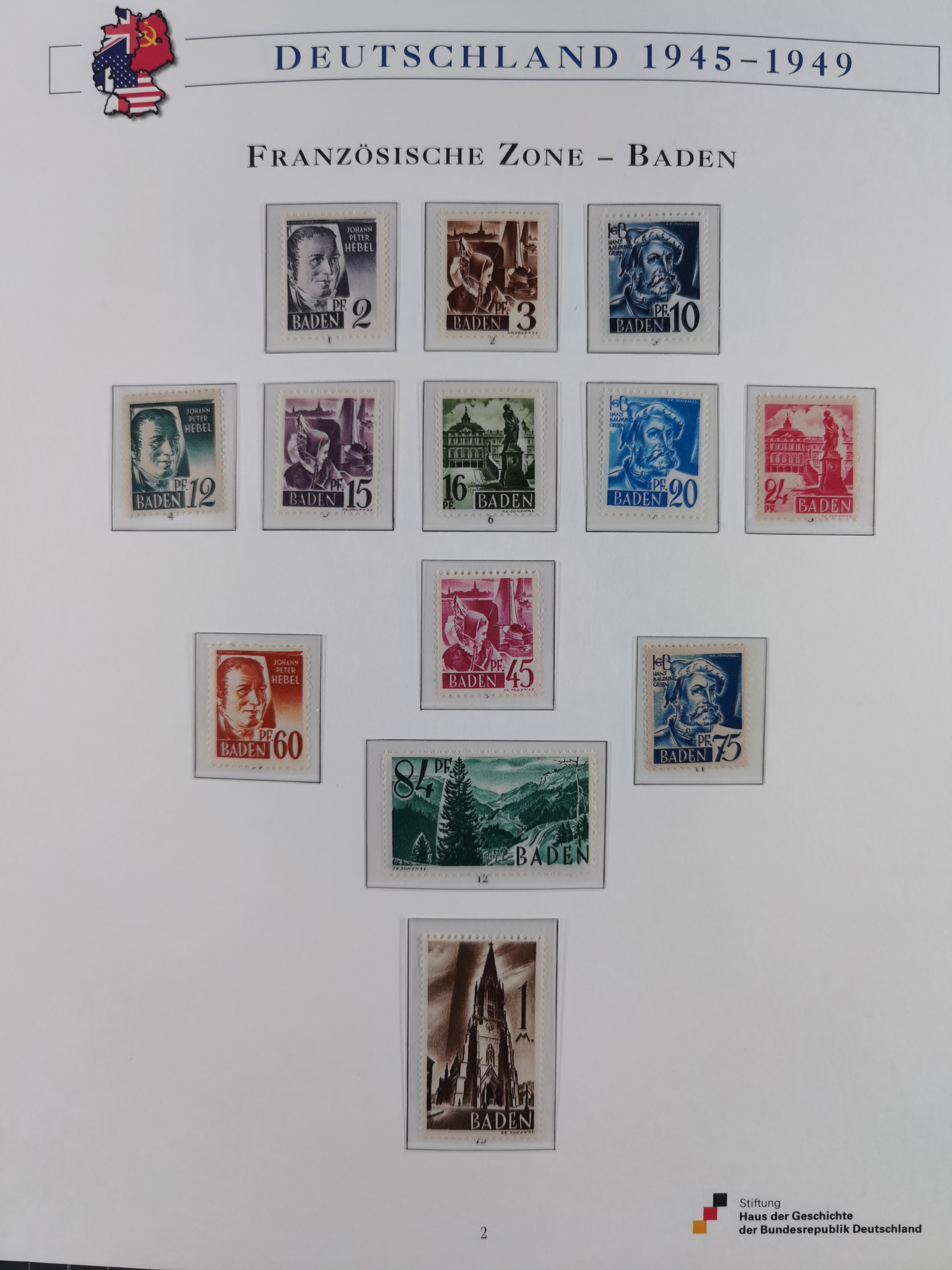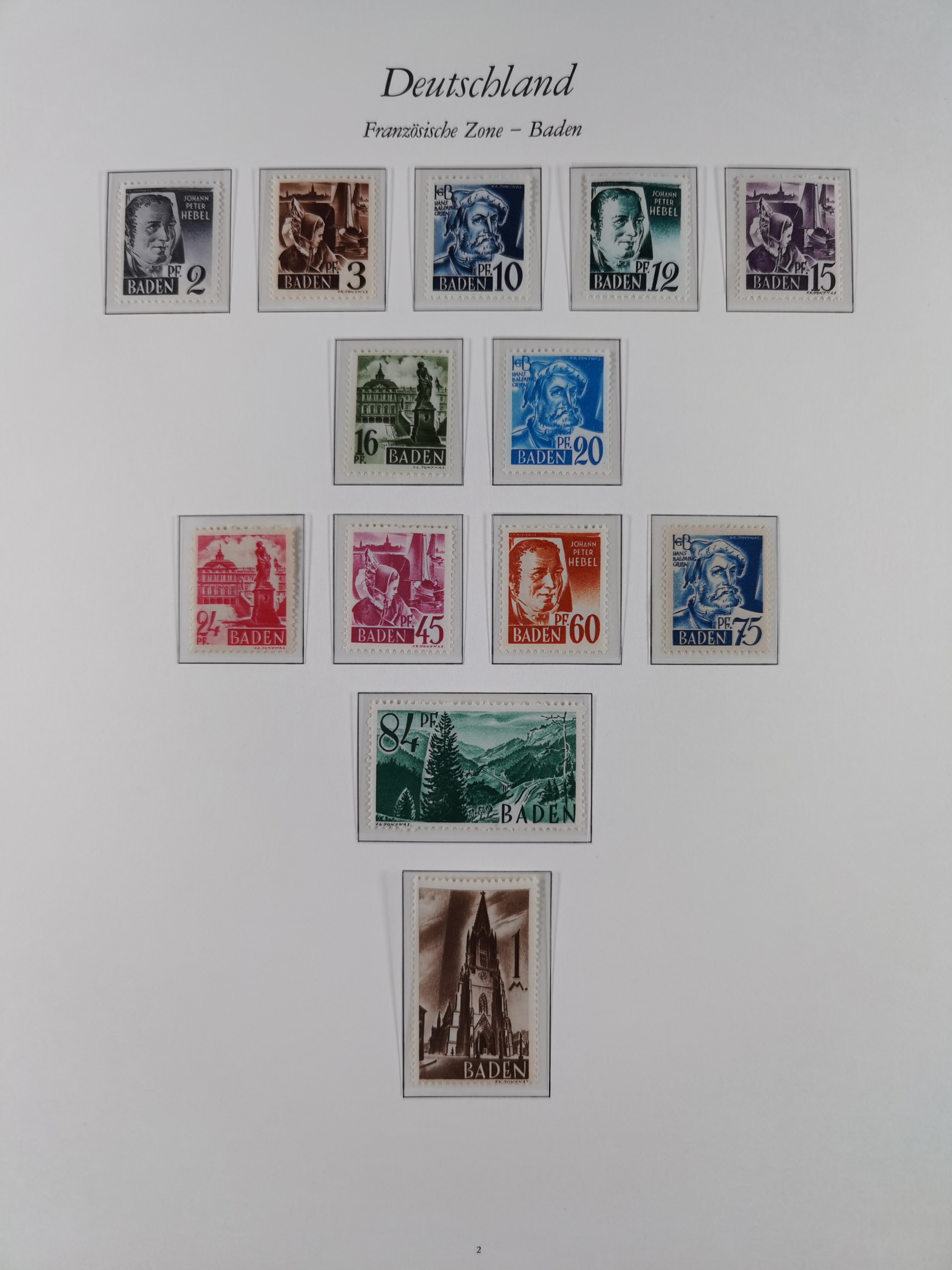 1945/49, in den Hauptnummern augenscheinlich bis auf Potschta (verlaufene Gummierung) postfrische komplette Sammlungen SBZ inkl. Blocks mit Bl. 1t und Französische Zone, inkl. Blocks mit Baden Mi.-Nr. 46II postfrisch sign. Schlegel BPP, dort einiges sign. Schlegel BPP, gute Erhaltung, im Vordruckalbum