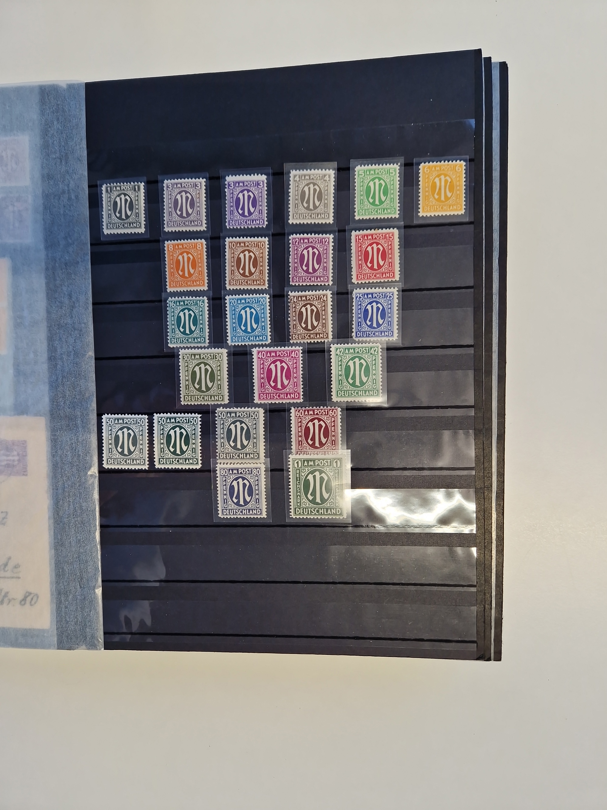 1945/49, umfangreicher Sammlungsbestand ohne Saar mit viel postfrisches Material inkl. Viererblocks und Einheiten, Marken mit Rändern und Besonderheiten. Dabei viel SBZ und Bizone mit AM-Post, Teil-Sammlungen, Steckbuch mit Notopfer-Marken und vieles mehr in ca. 30 Alben