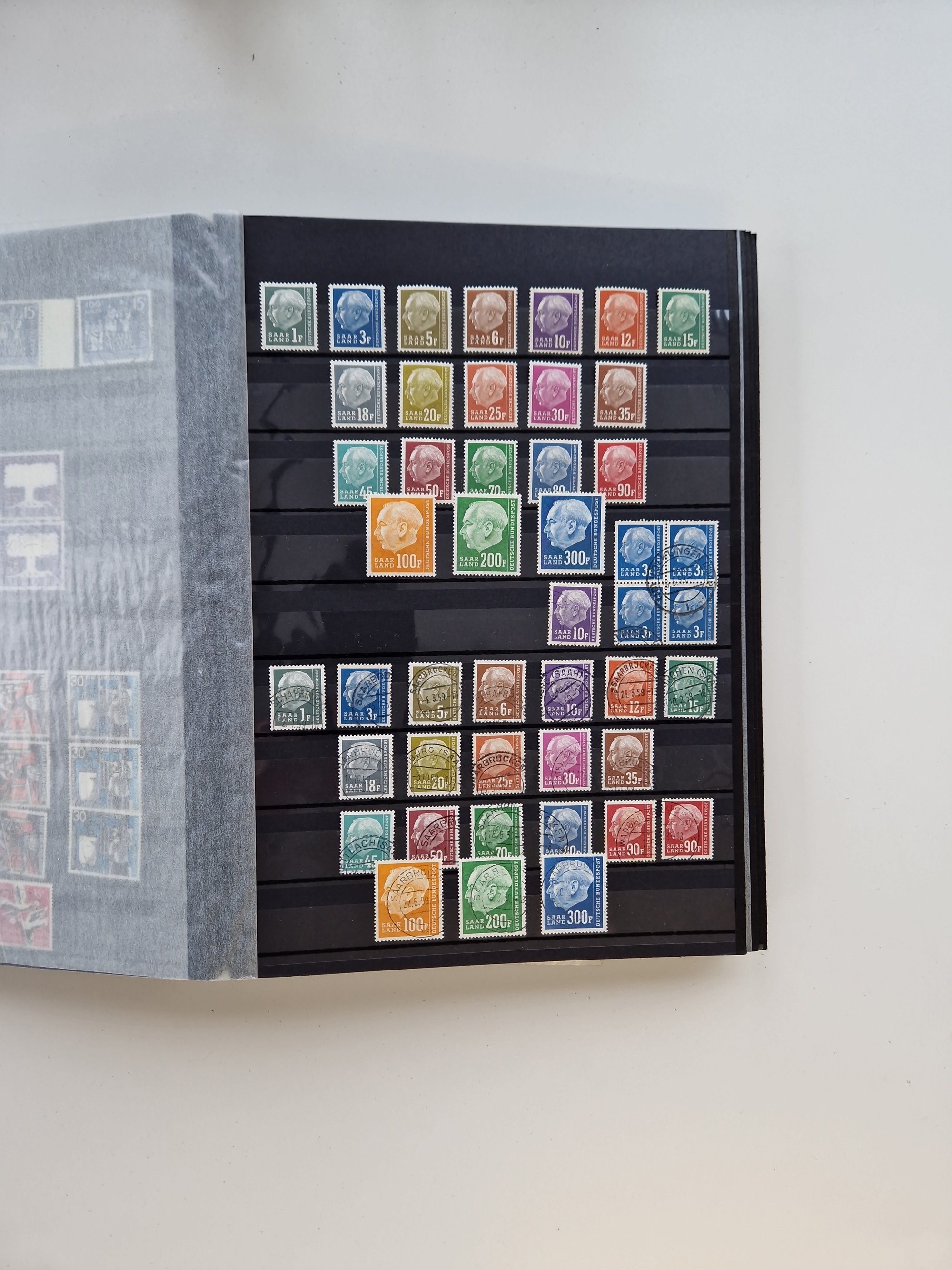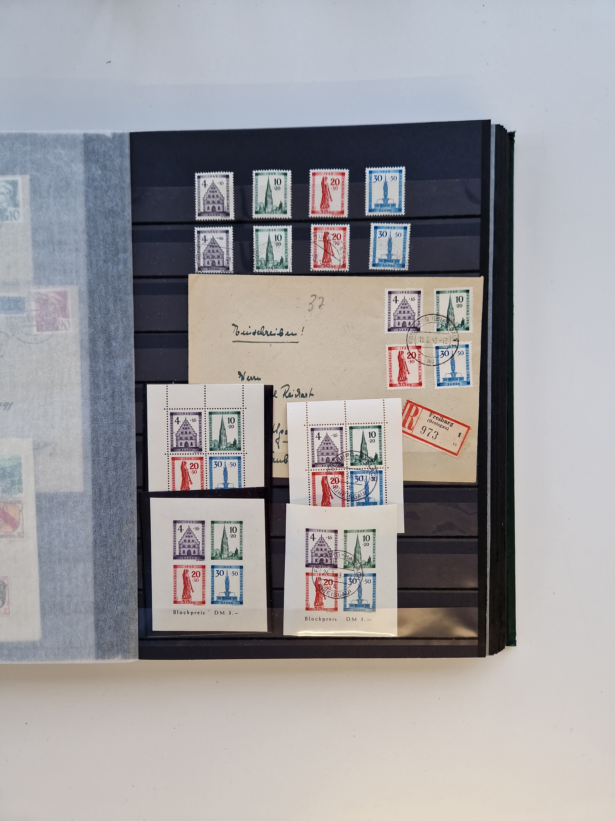 1948/78 (ca.), postfrische sowie gestempelte je doppelt geführte Sammlungen Bundesrepublik, Berlin und DDR, bis auf einige frühe Ausgaben in den Hauptnummern komplett, dabei Zusammendrucke, Heuss ZD, sowie immer wieder bessere Briefe, u.a. Berlin Mi.-Nr. 106-09, DDR Mi.-Nr. Bl. 8B und 9B je auf R-Brief, etc., ferner etwas Alliierte Besetzung, in 37 Alben