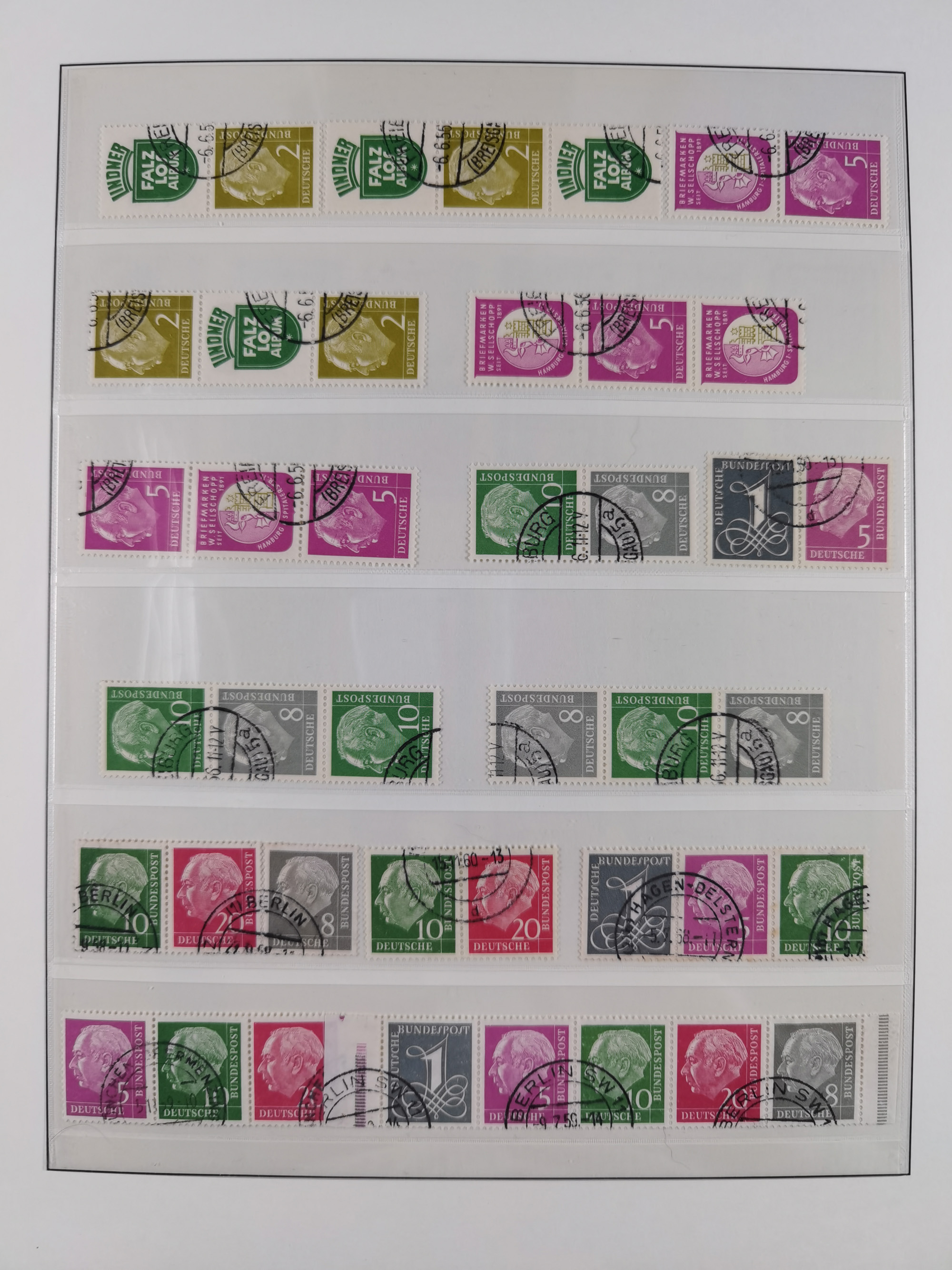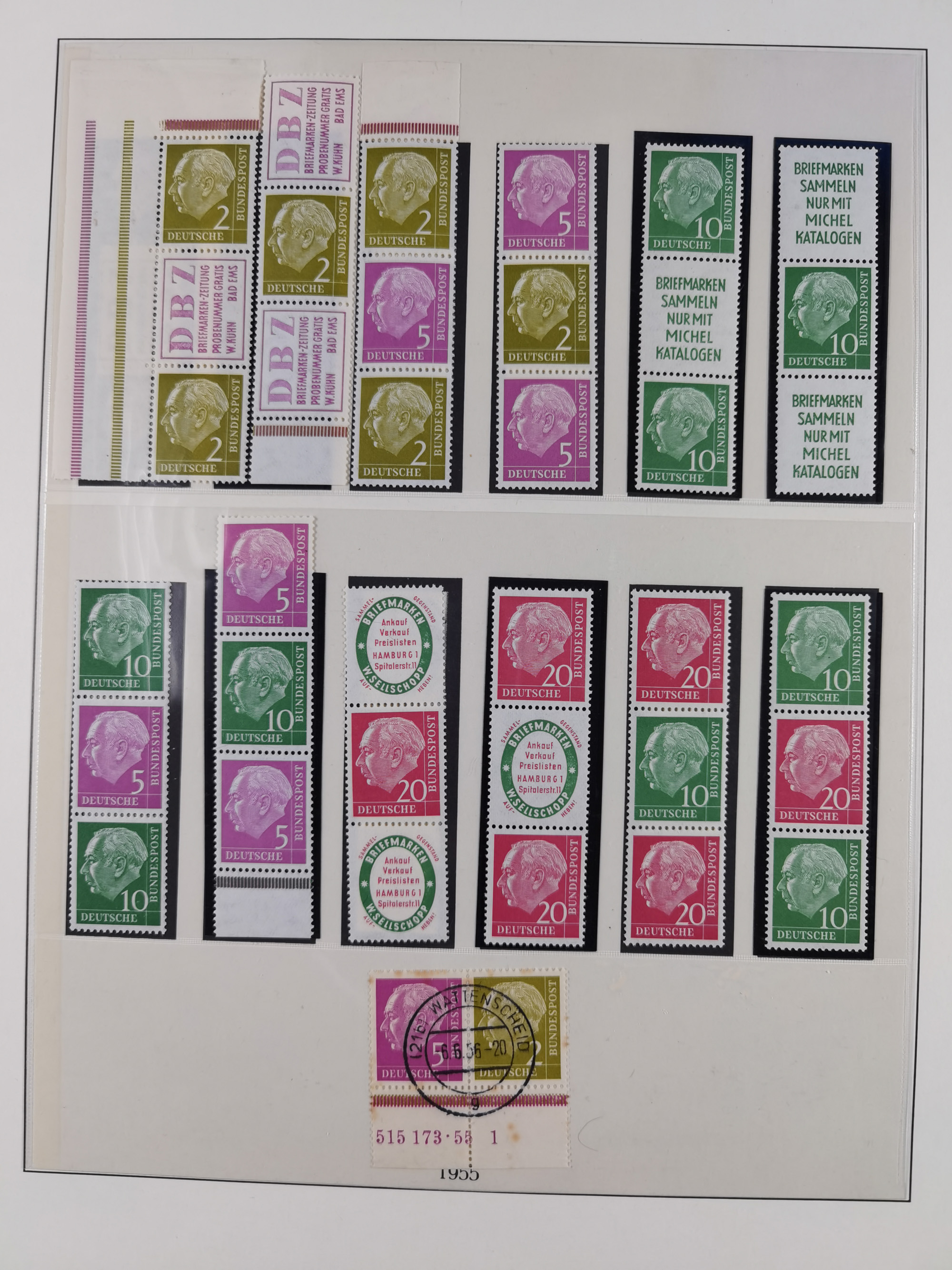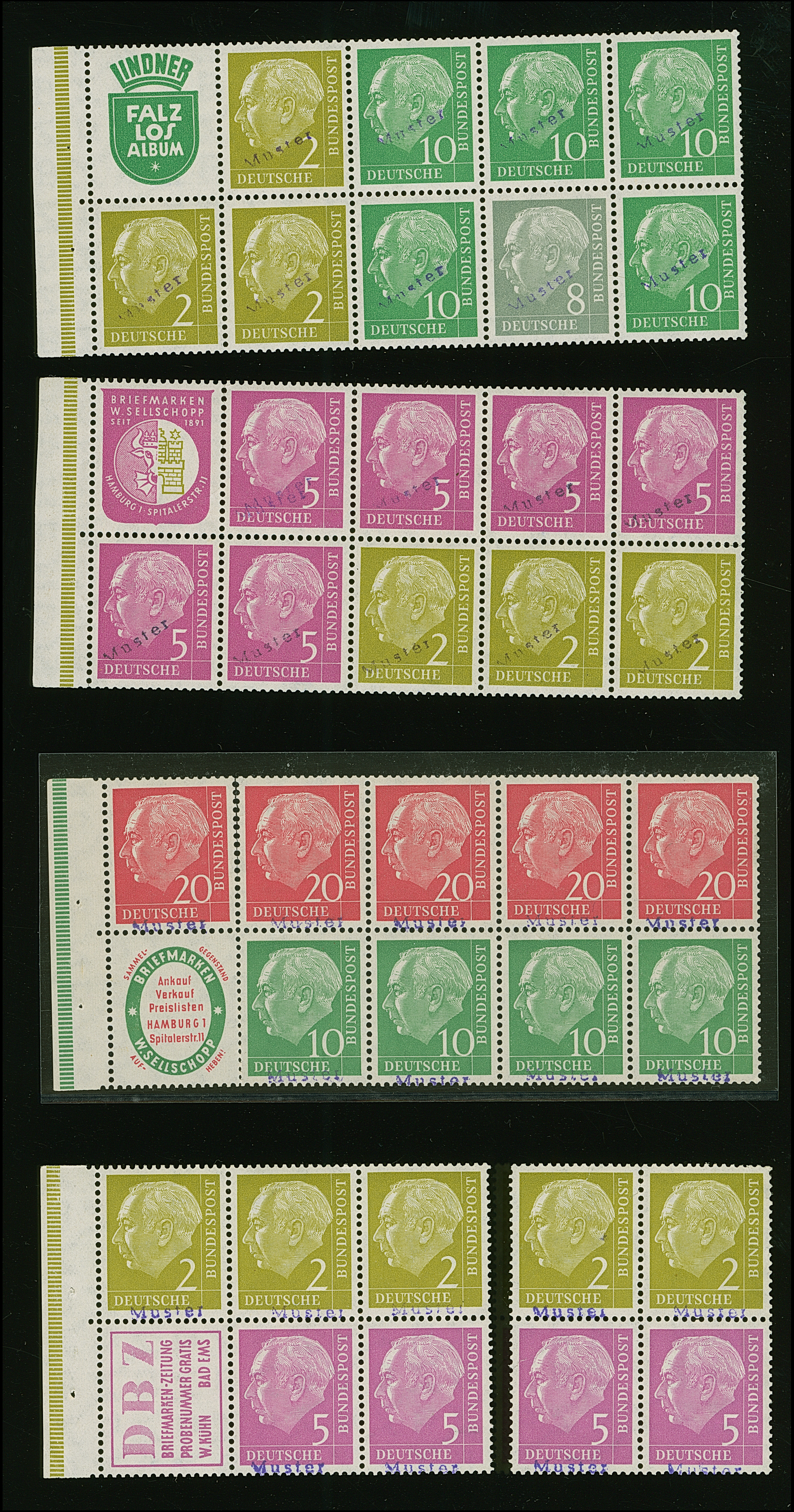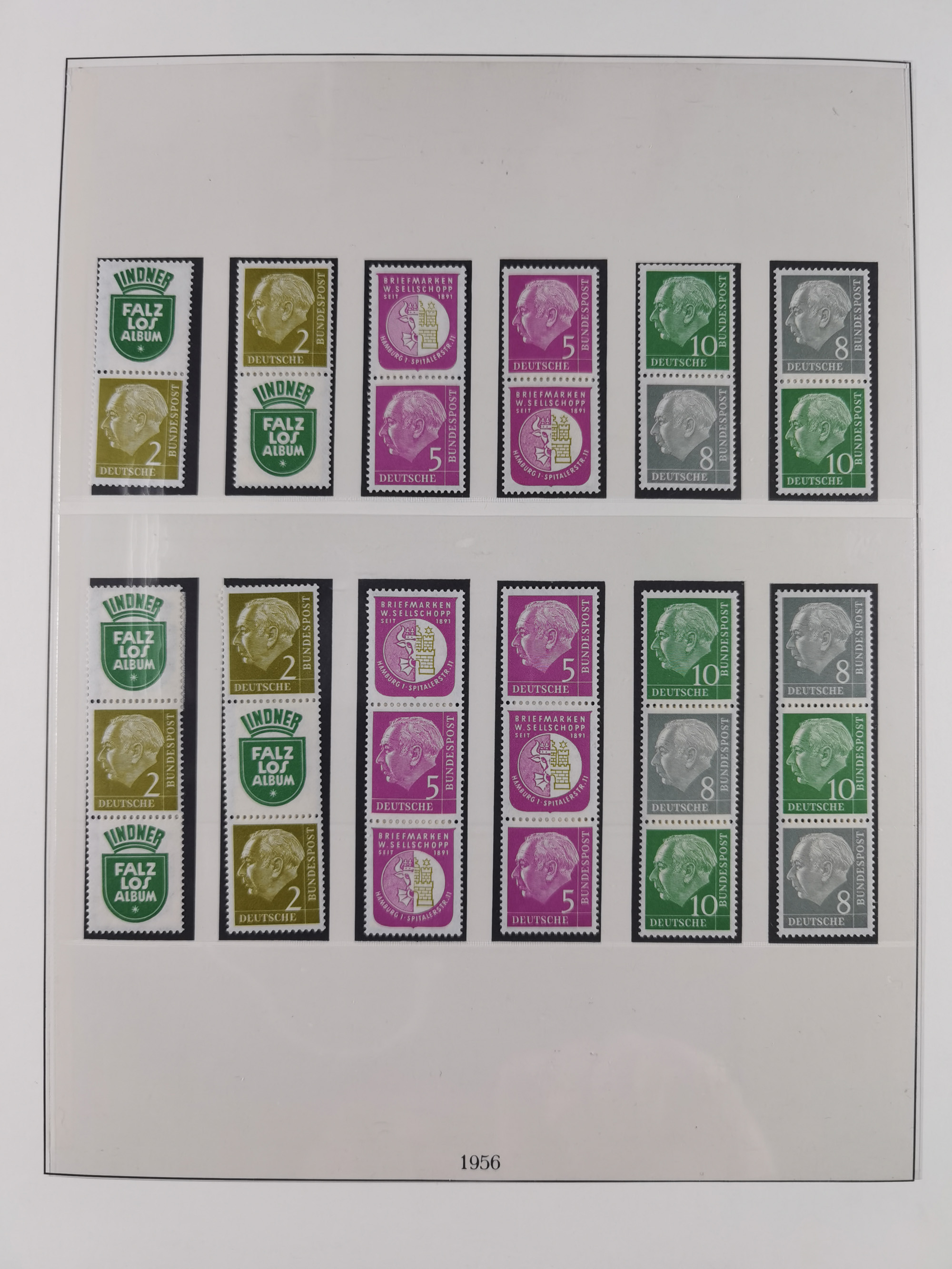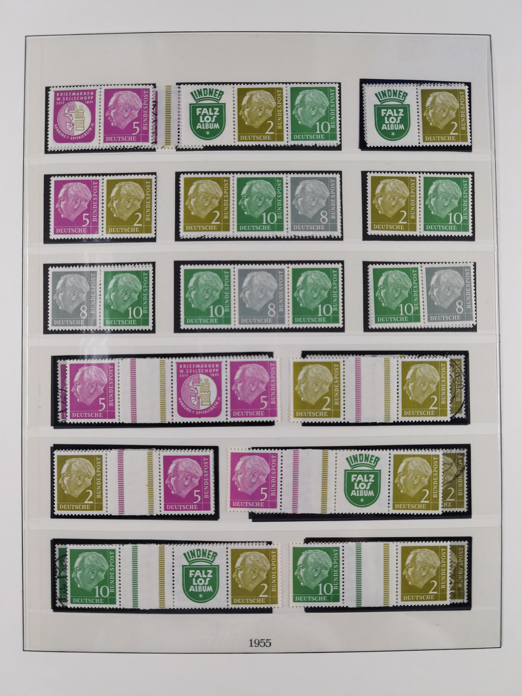 1951/54, gestempelte und meist postfrische Sammlung Zusammendrucke Posthorn und Heuss mit vielen geprüften Stücken wie H-Bl. 1 gestempelt Attest A. Schlegel BPP, S8PFI postfrisch, Attest H-D. Schlegel BPP, Mi. S6 postfrisch, Attest H.-D. Schlegel BPP, Mi. S6 und S7 gestempelt, je Befund A. Schlegel BPP, H.-Bl. 2 Befund H.- D. Schlegel BPP, WZ4 postfrisch, Befund H.-D. Schlegel BPP und W1/S9 postfrisch Befund H.-D. Schlegel BPP.
