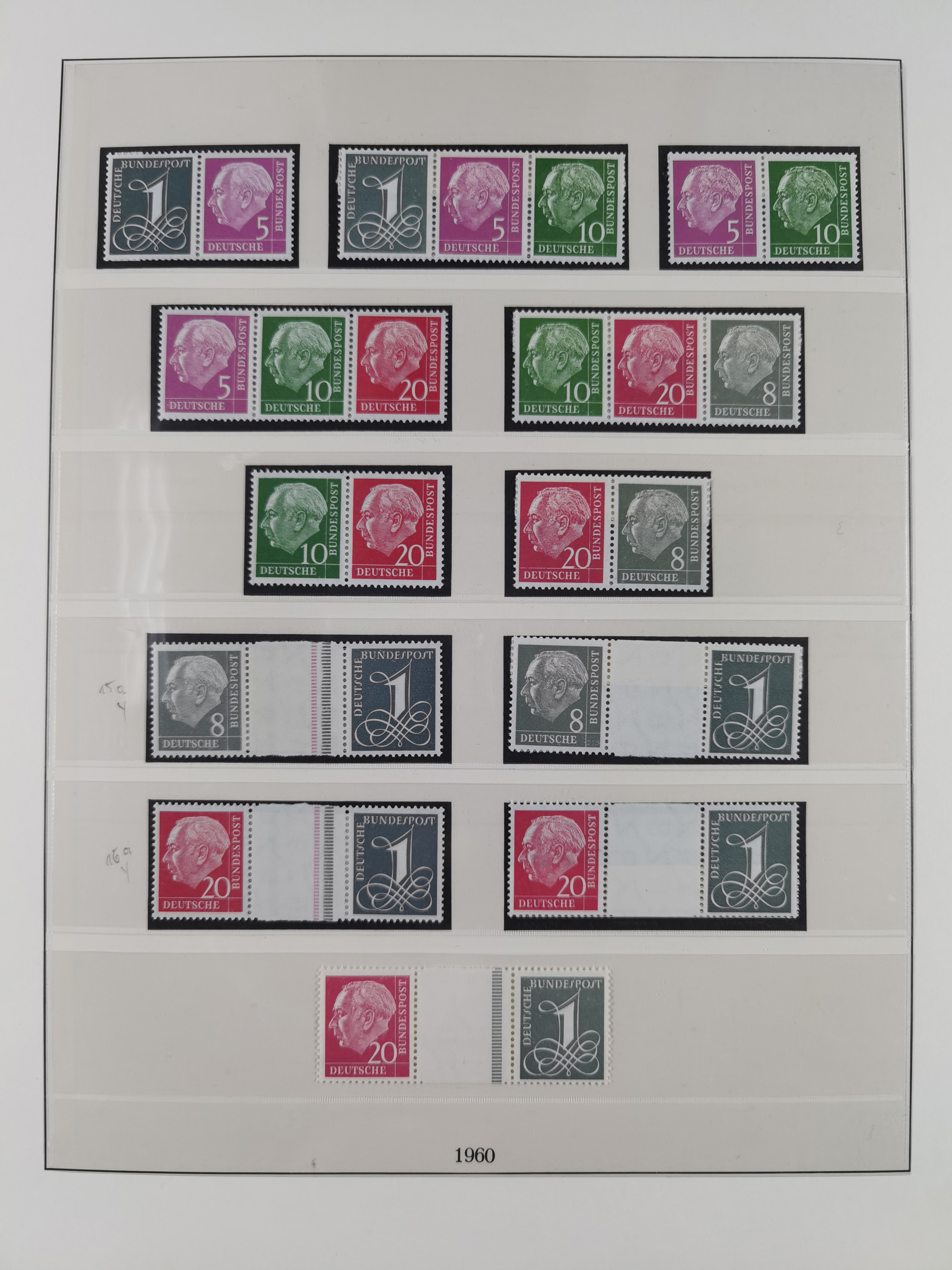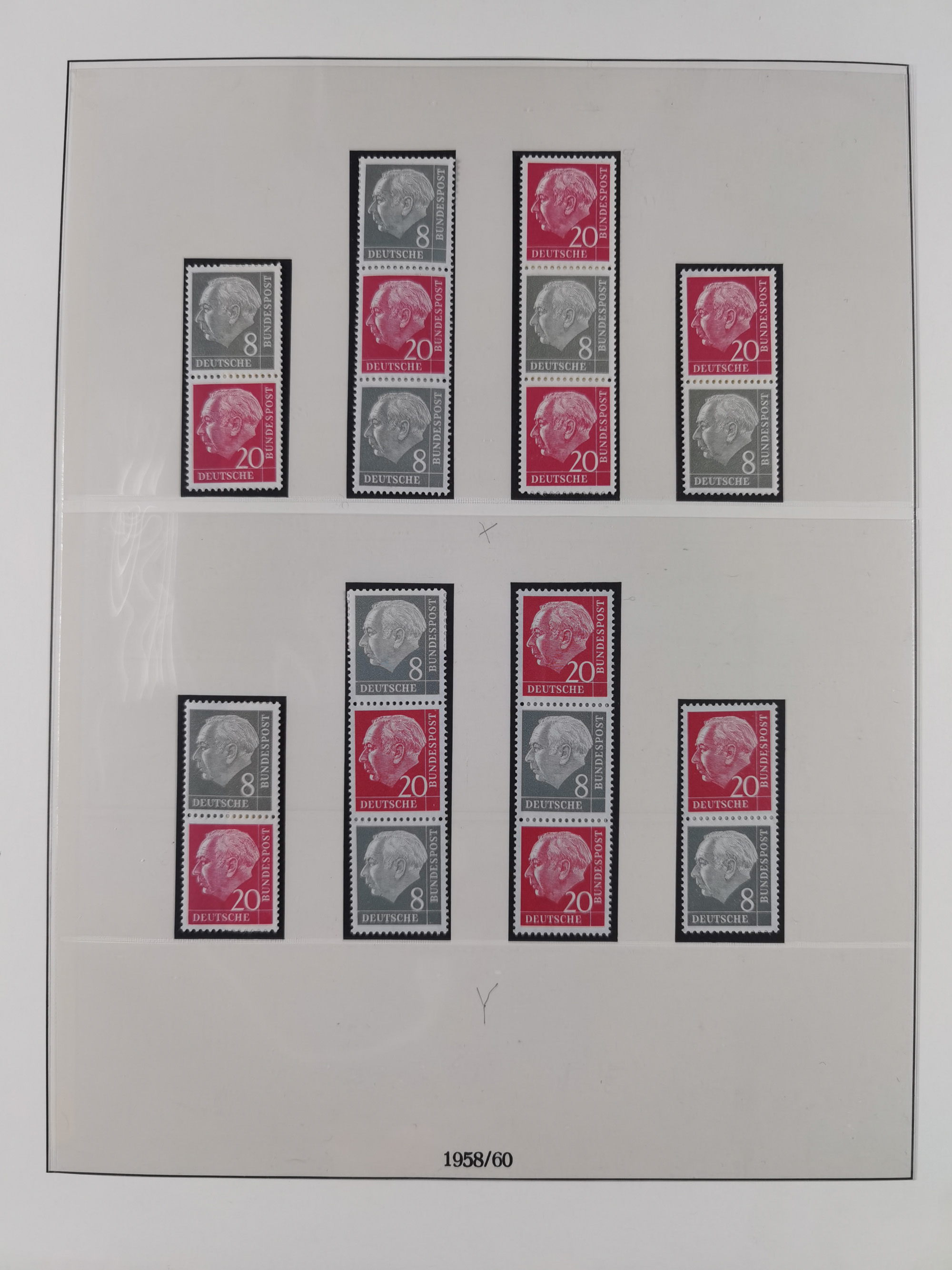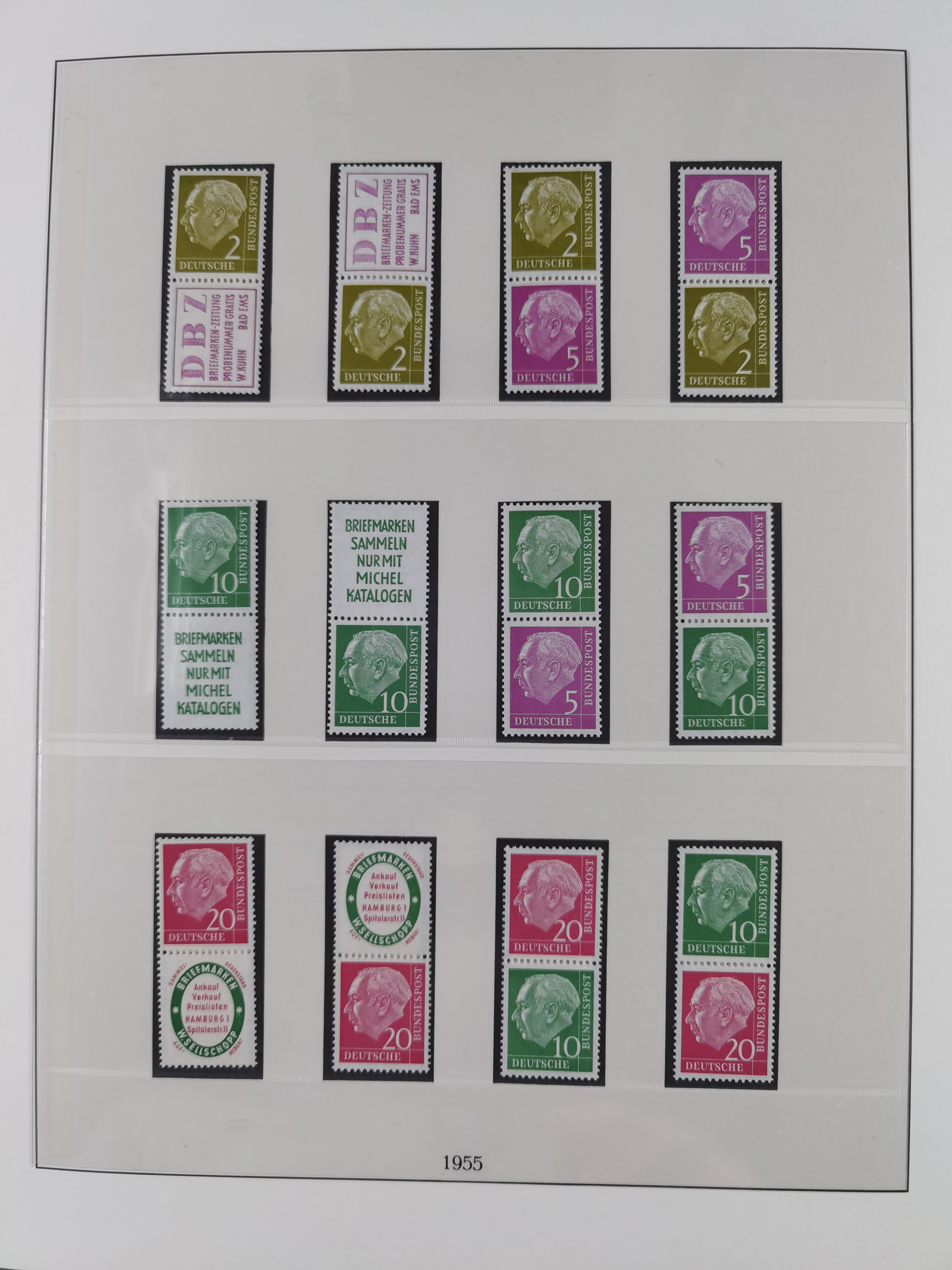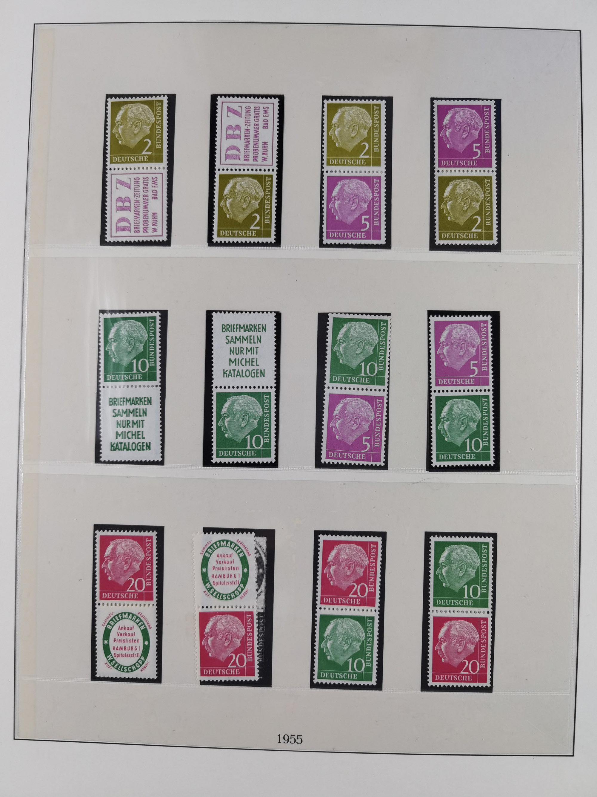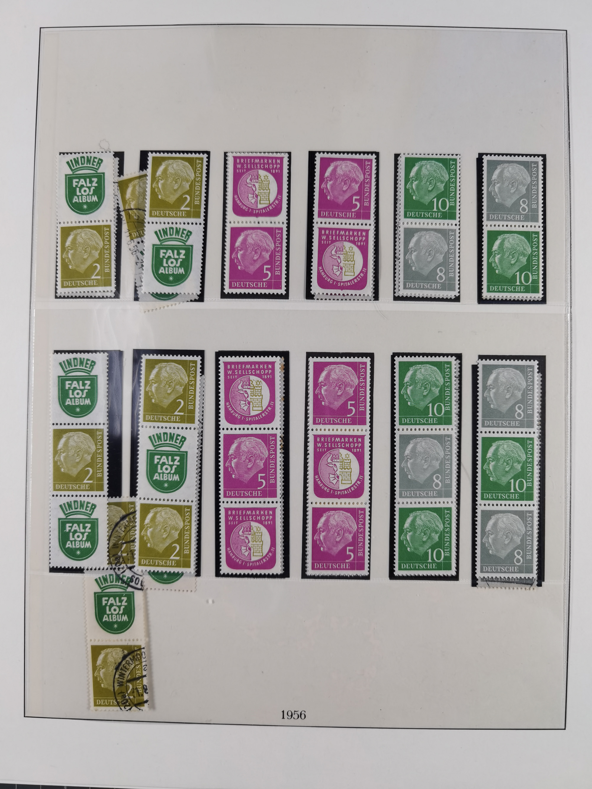 1951/54, gestempelte und meist postfrische Sammlung Zusammendrucke Posthorn und Heuss mit vielen geprüften Stücken wie H-Bl. 1 gestempelt Attest A. Schlegel BPP, S8PFI postfrisch, Attest H-D. Schlegel BPP, Mi. S6 postfrisch, Attest H.-D. Schlegel BPP, Mi. S6 und S7 gestempelt, je Befund A. Schlegel BPP, H.-Bl. 2 Befund H.- D. Schlegel BPP, WZ4 postfrisch, Befund H.-D. Schlegel BPP und W1/S9 postfrisch Befund H.-D. Schlegel BPP.