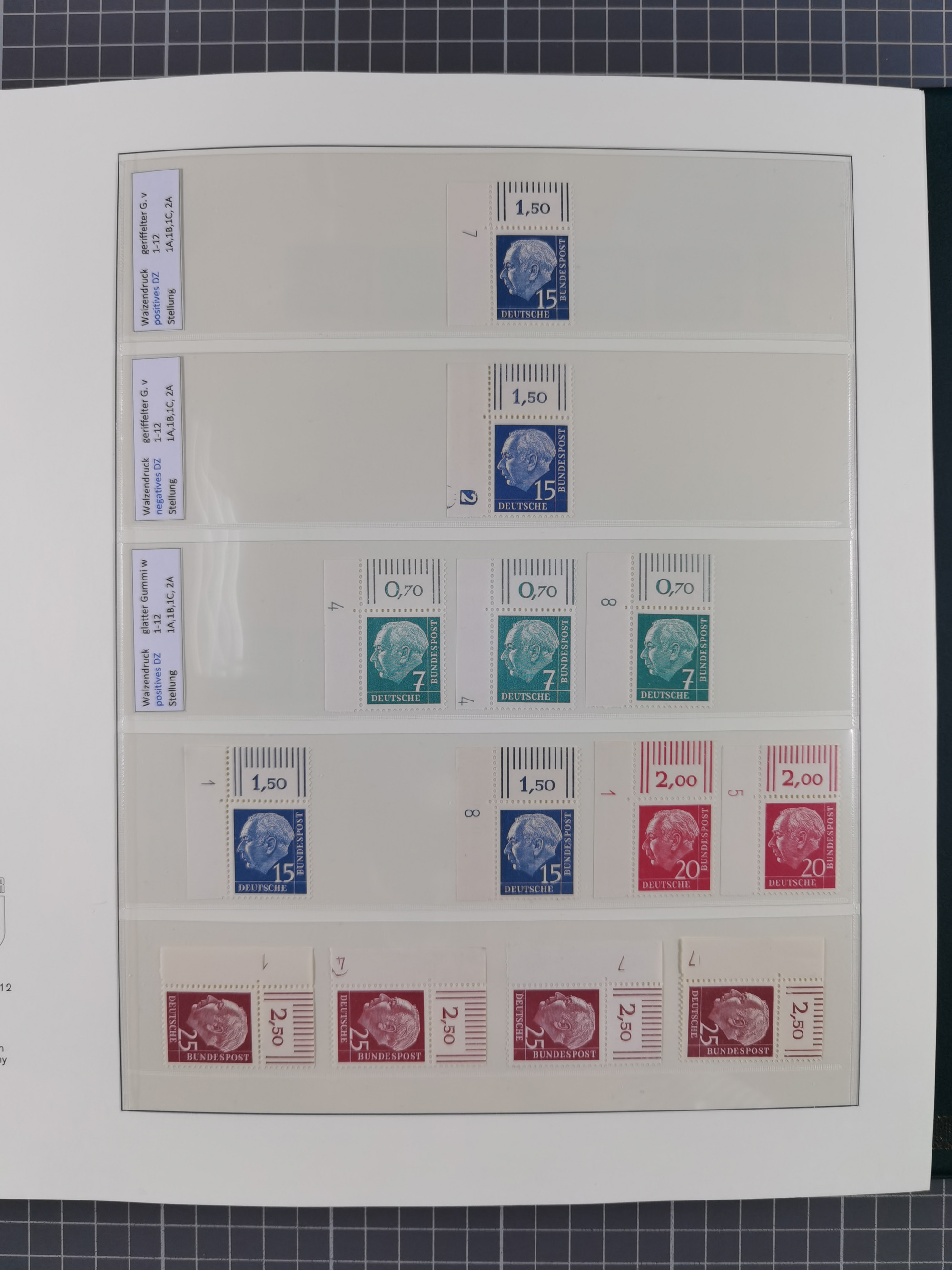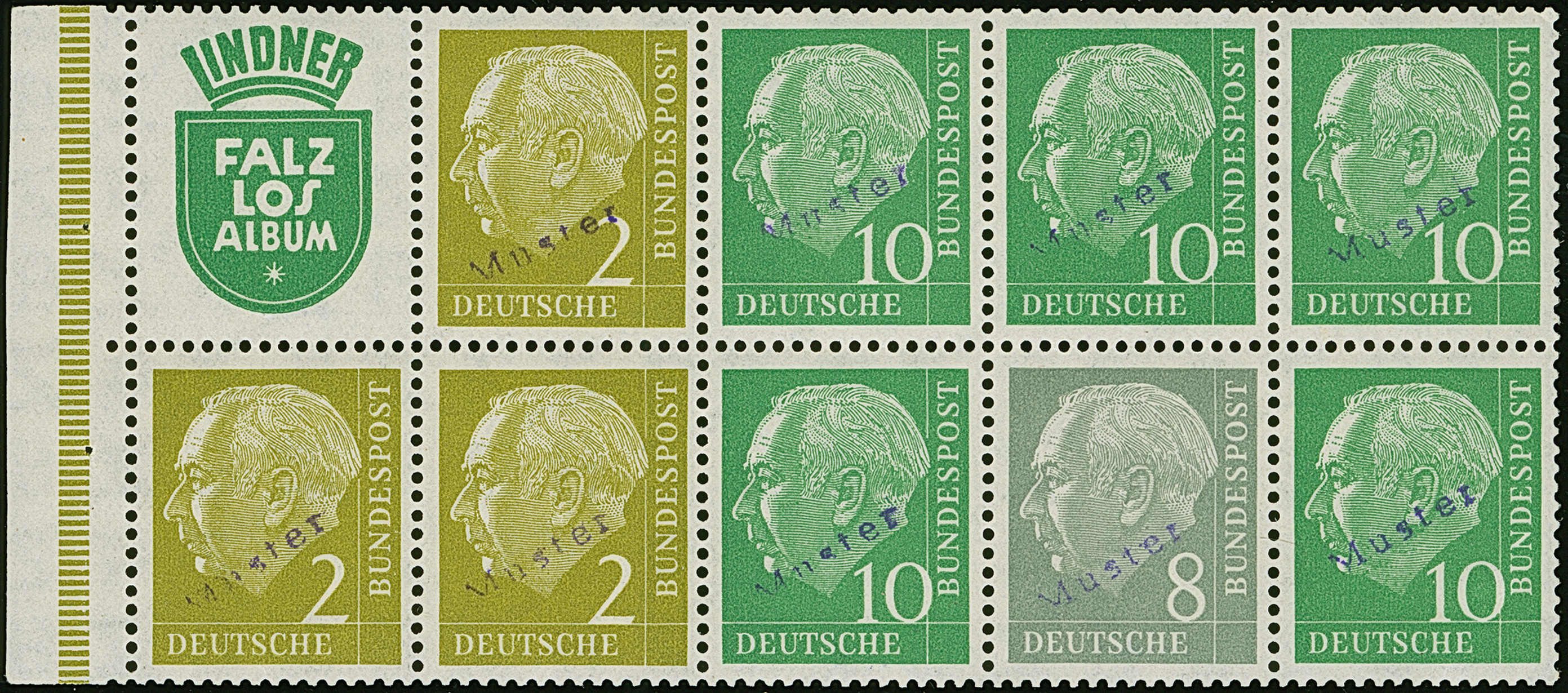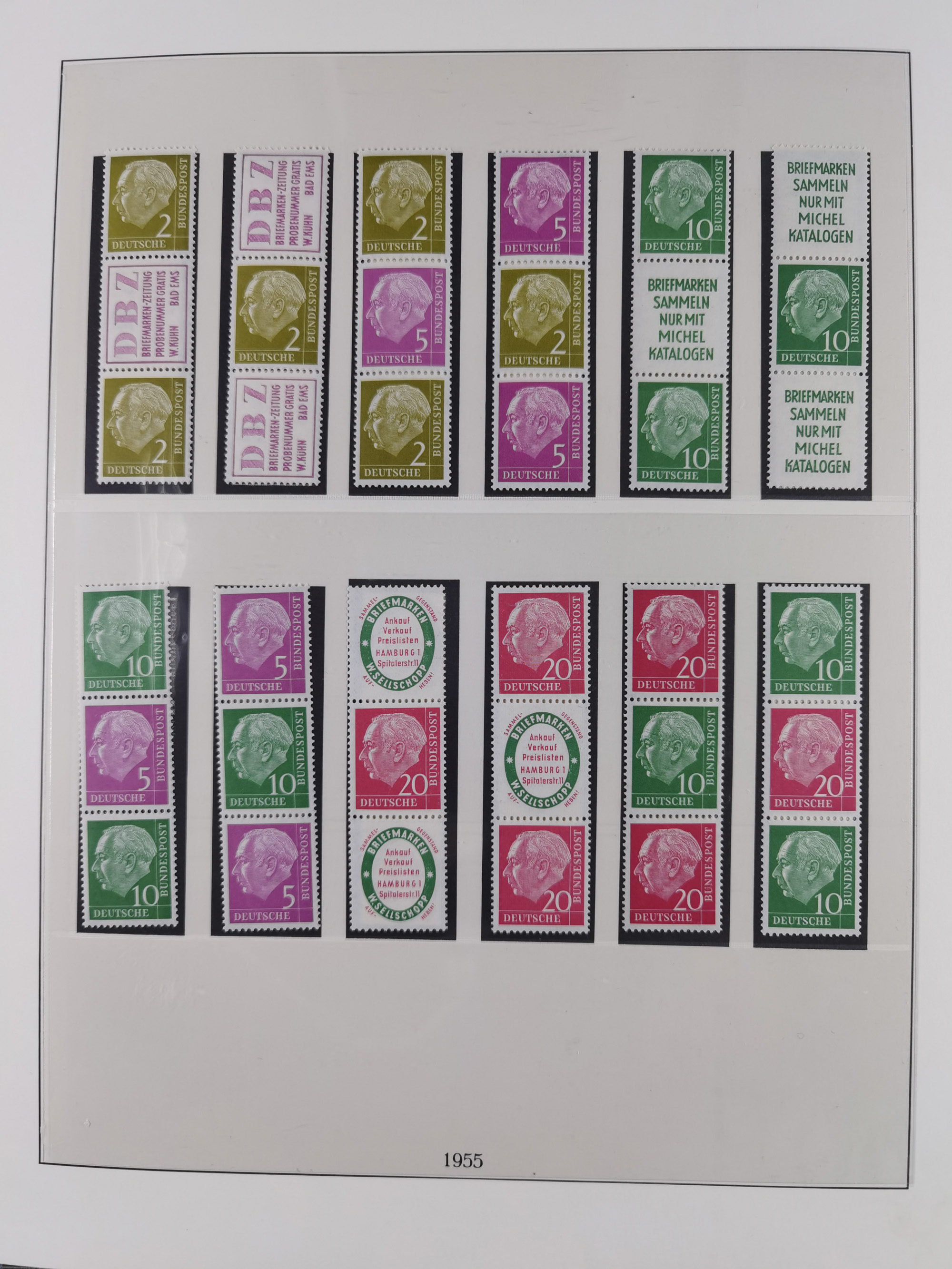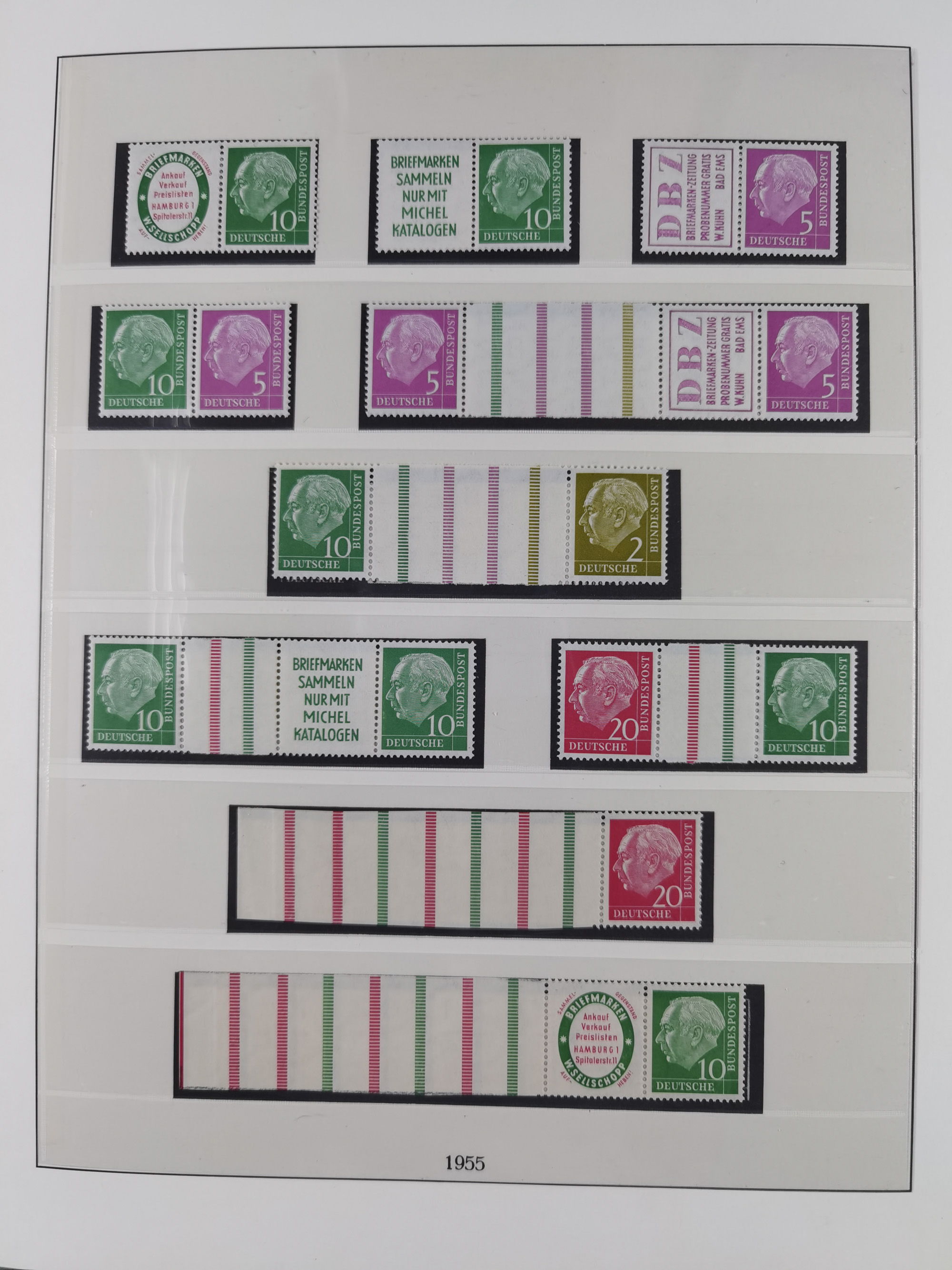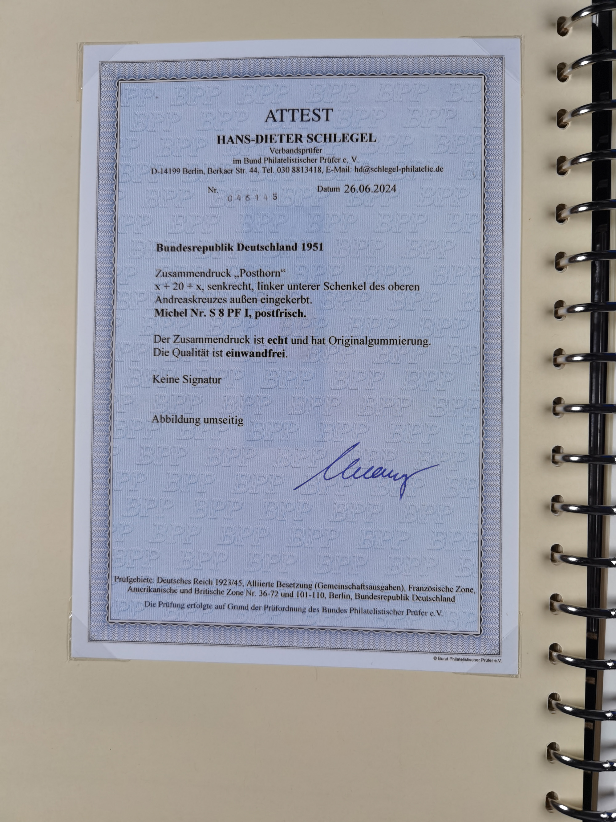 1951/54, gestempelte und meist postfrische Sammlung Zusammendrucke Posthorn und Heuss mit vielen geprüften Stücken wie H-Bl. 1 gestempelt Attest A. Schlegel BPP, S8PFI postfrisch, Attest H-D. Schlegel BPP, Mi. S6 postfrisch, Attest H.-D. Schlegel BPP, Mi. S6 und S7 gestempelt, je Befund A. Schlegel BPP, H.-Bl. 2 Befund H.- D. Schlegel BPP, WZ4 postfrisch, Befund H.-D. Schlegel BPP und W1/S9 postfrisch Befund H.-D. Schlegel BPP.