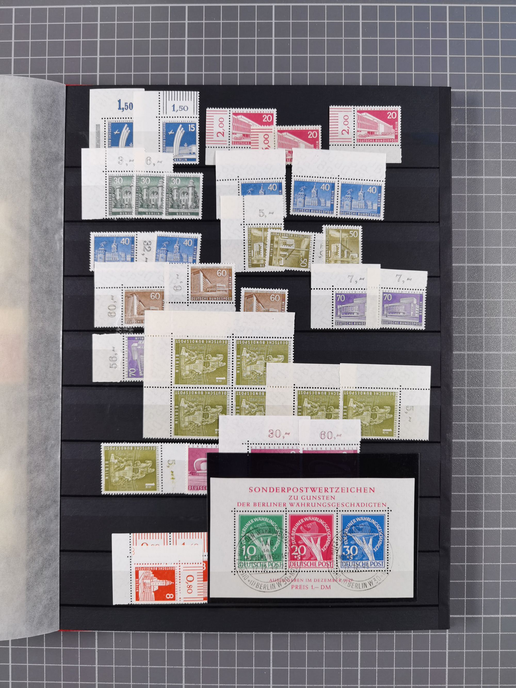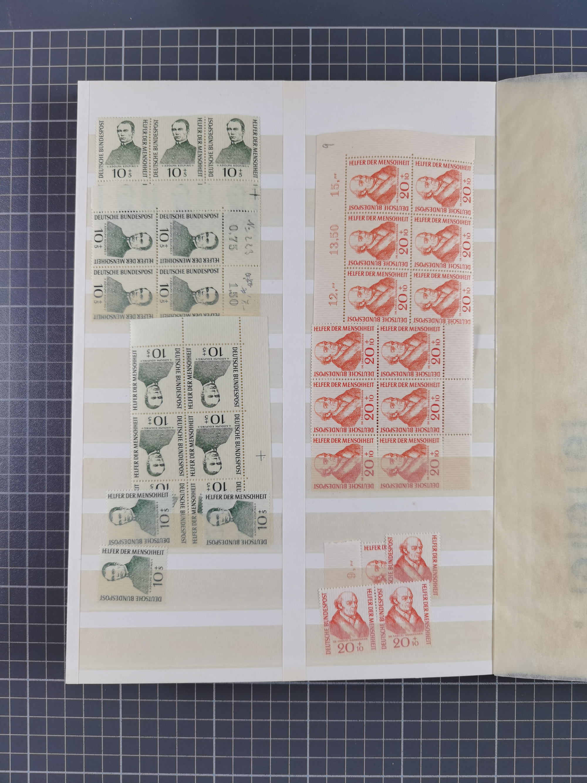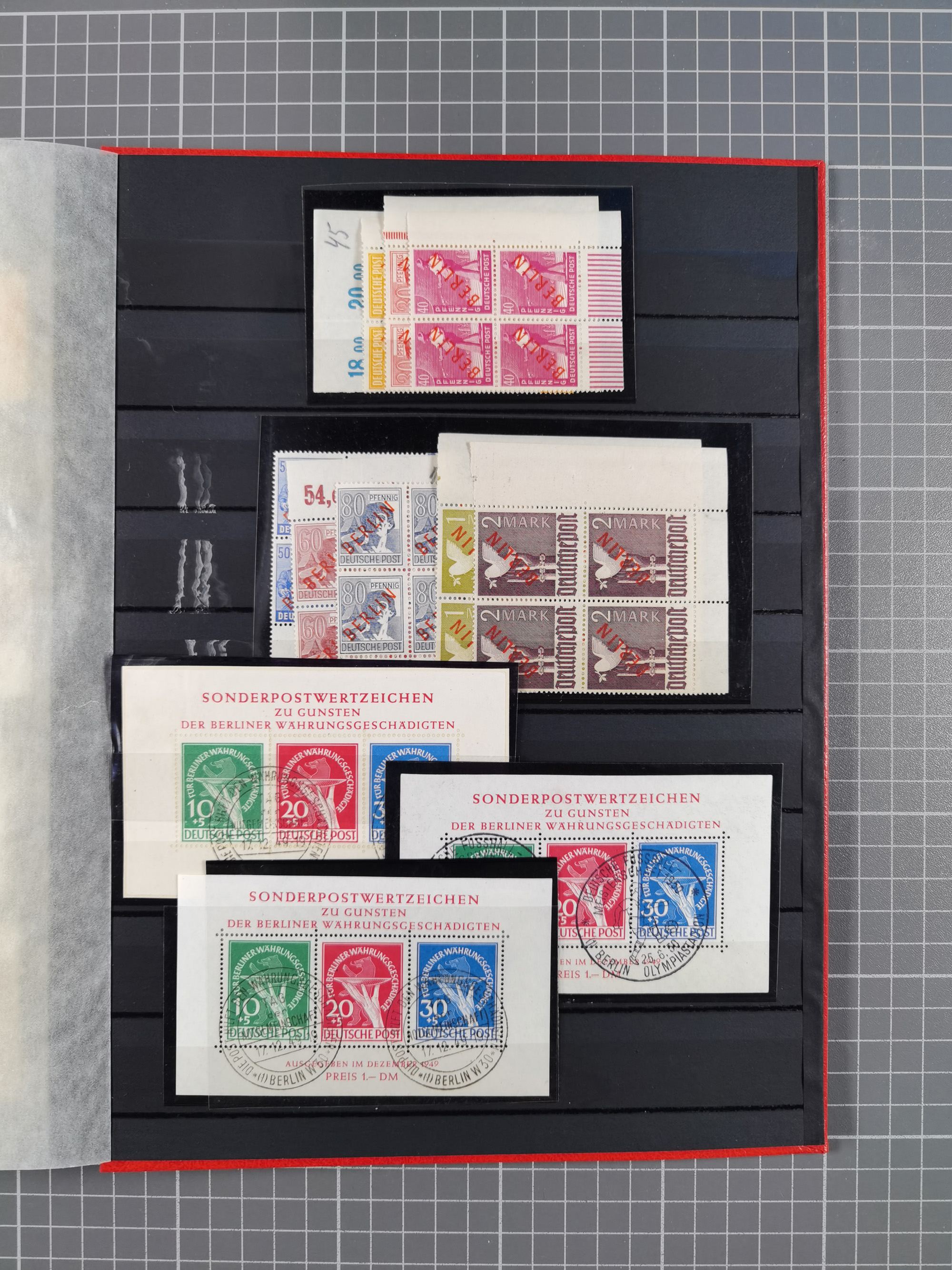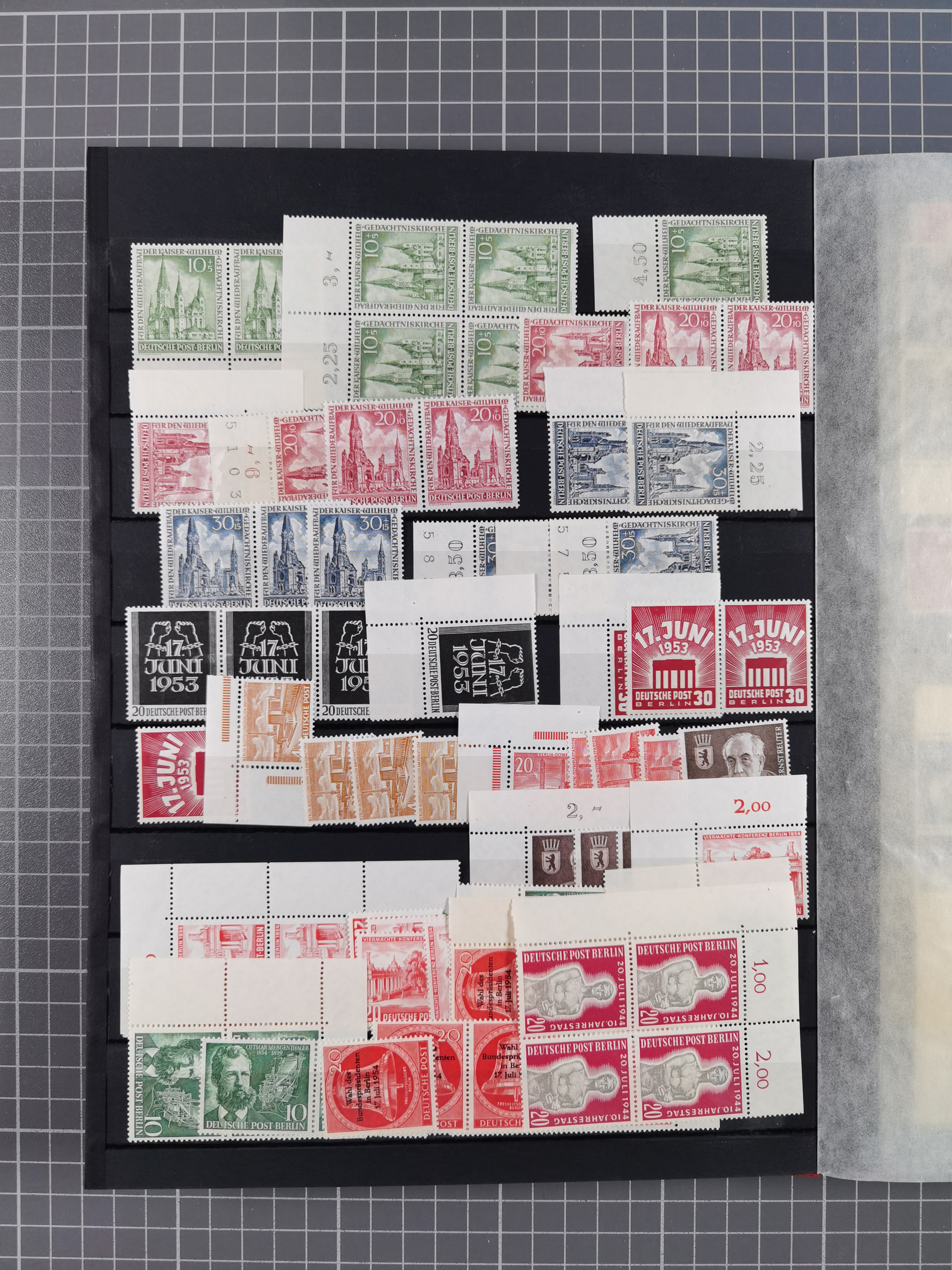 1949/60, Bestand auf Steckkarten mit Berlin Schwarzaufdrucke geprüft Schlegel, Goethe signiert Bühler, Helfer der Menschheit in Viererblöcken etc., meist sehr sauber erhalten.