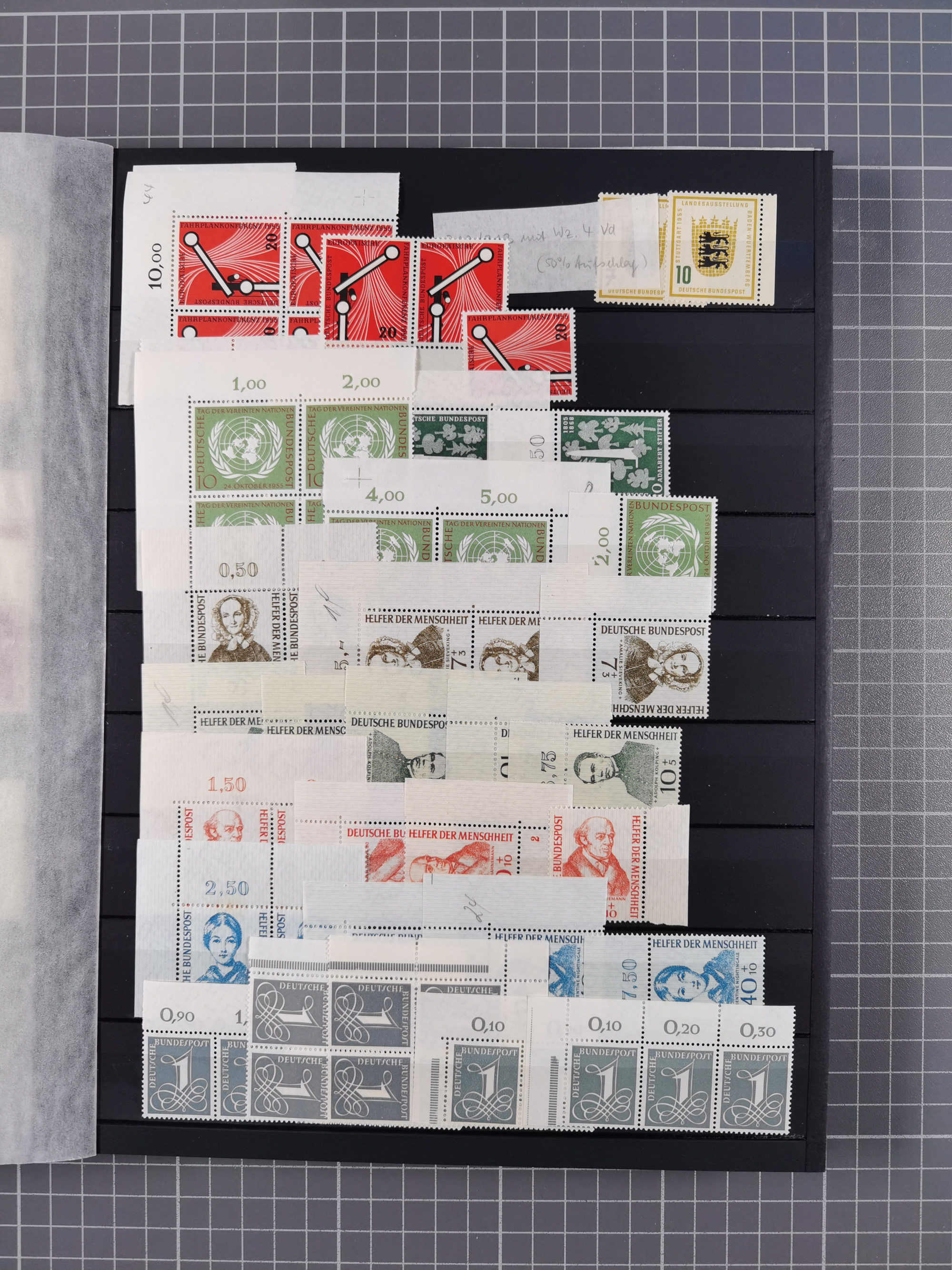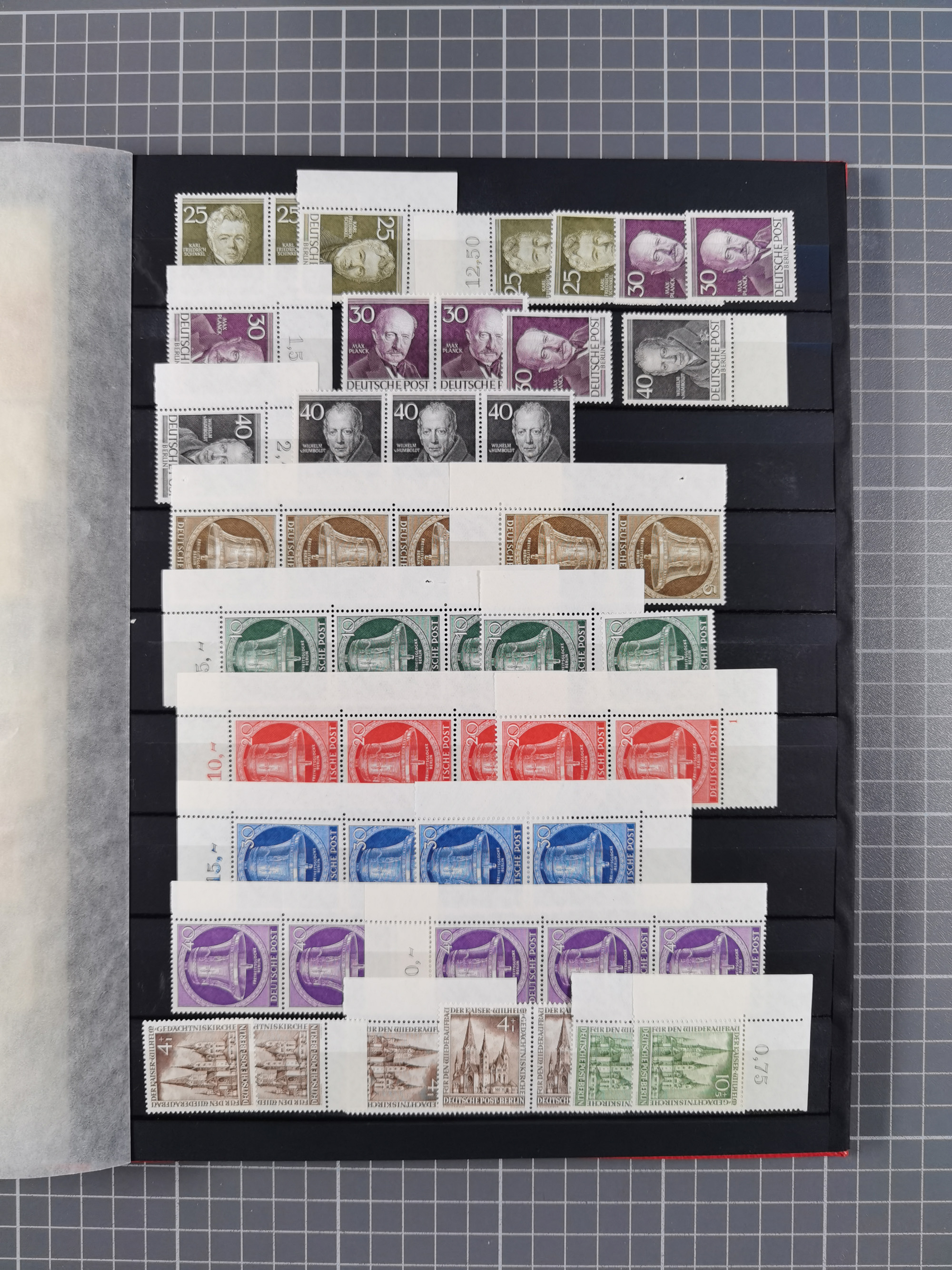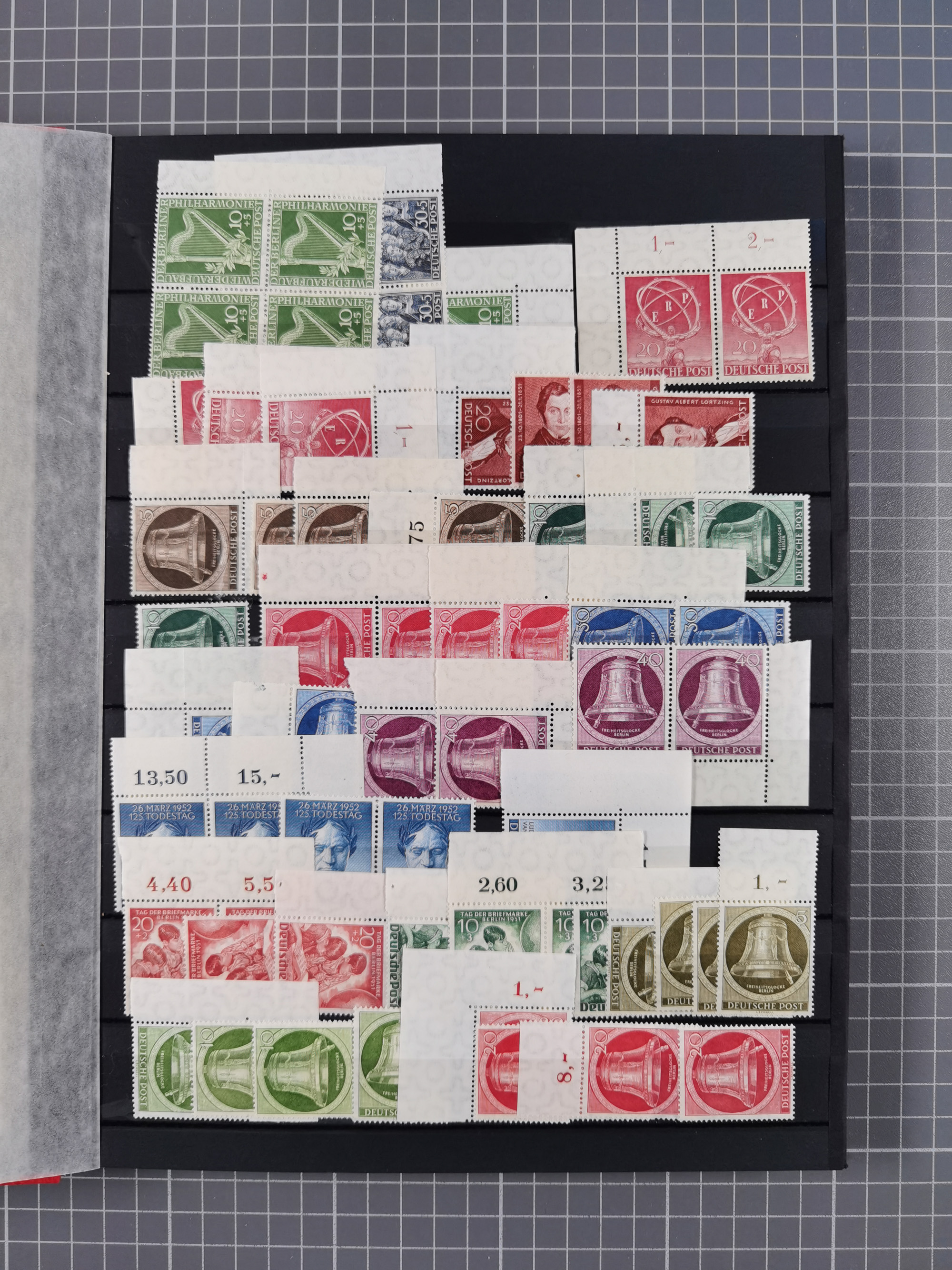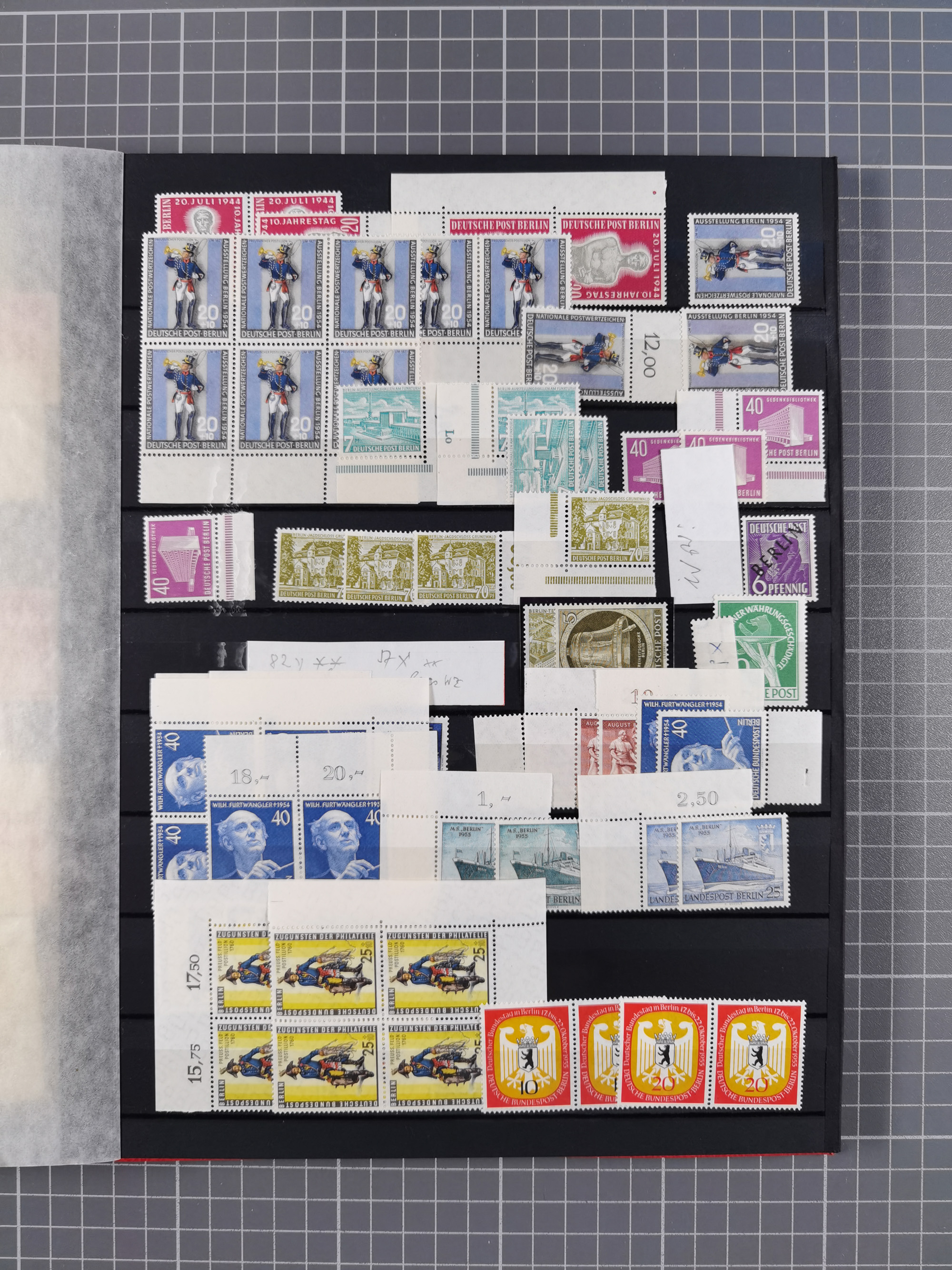 1949/60, Bestand auf Steckkarten mit Berlin Schwarzaufdrucke geprüft Schlegel, Goethe signiert Bühler, Helfer der Menschheit in Viererblöcken etc., meist sehr sauber erhalten.