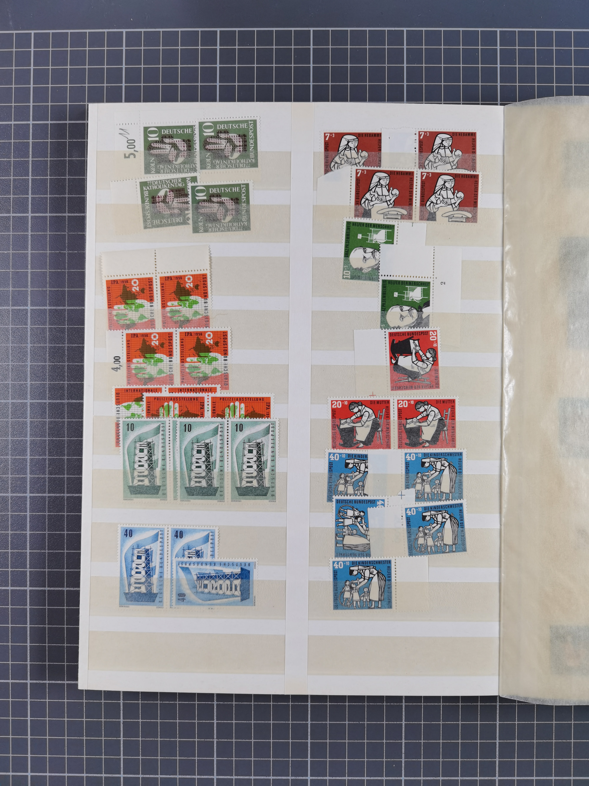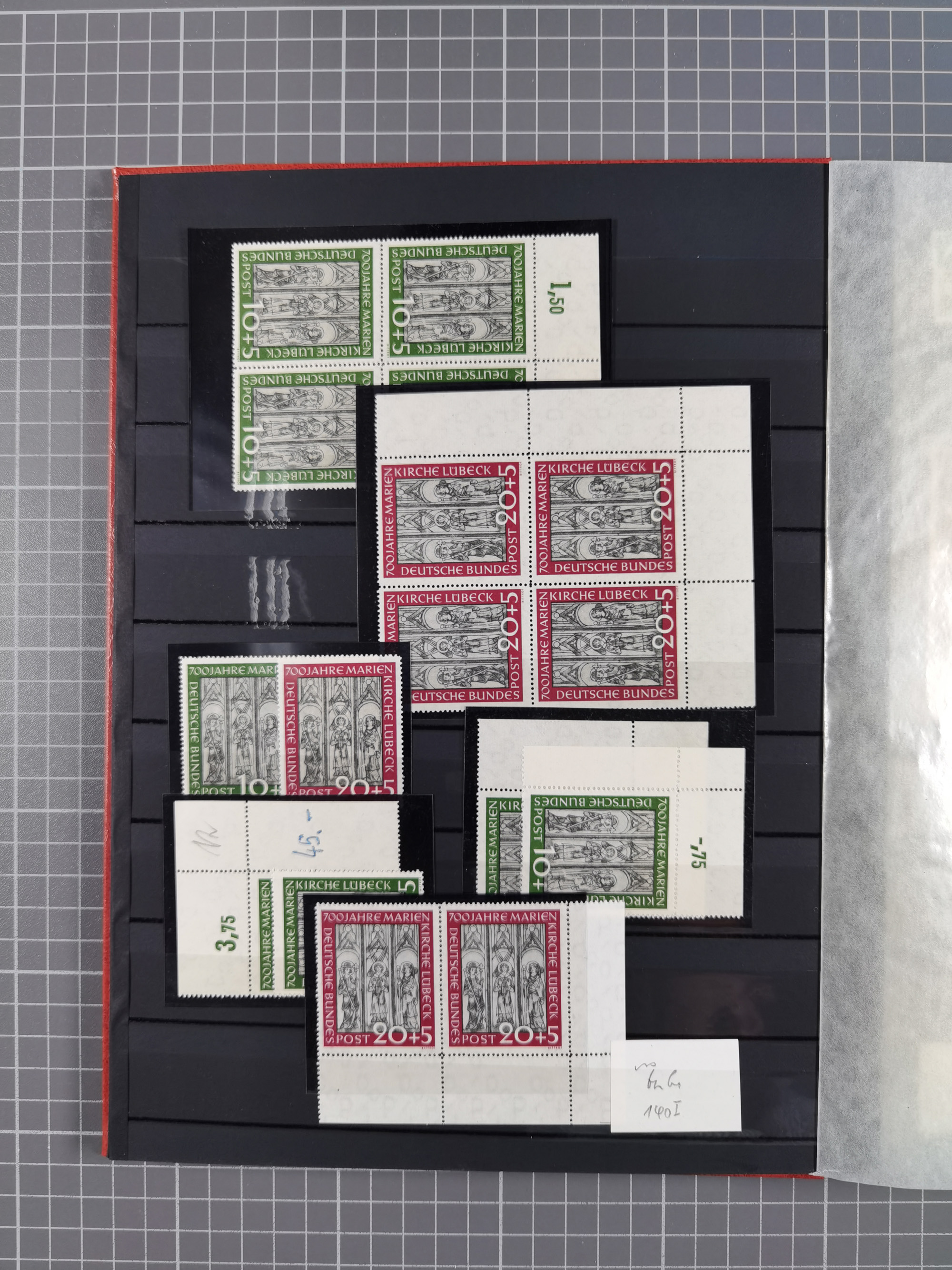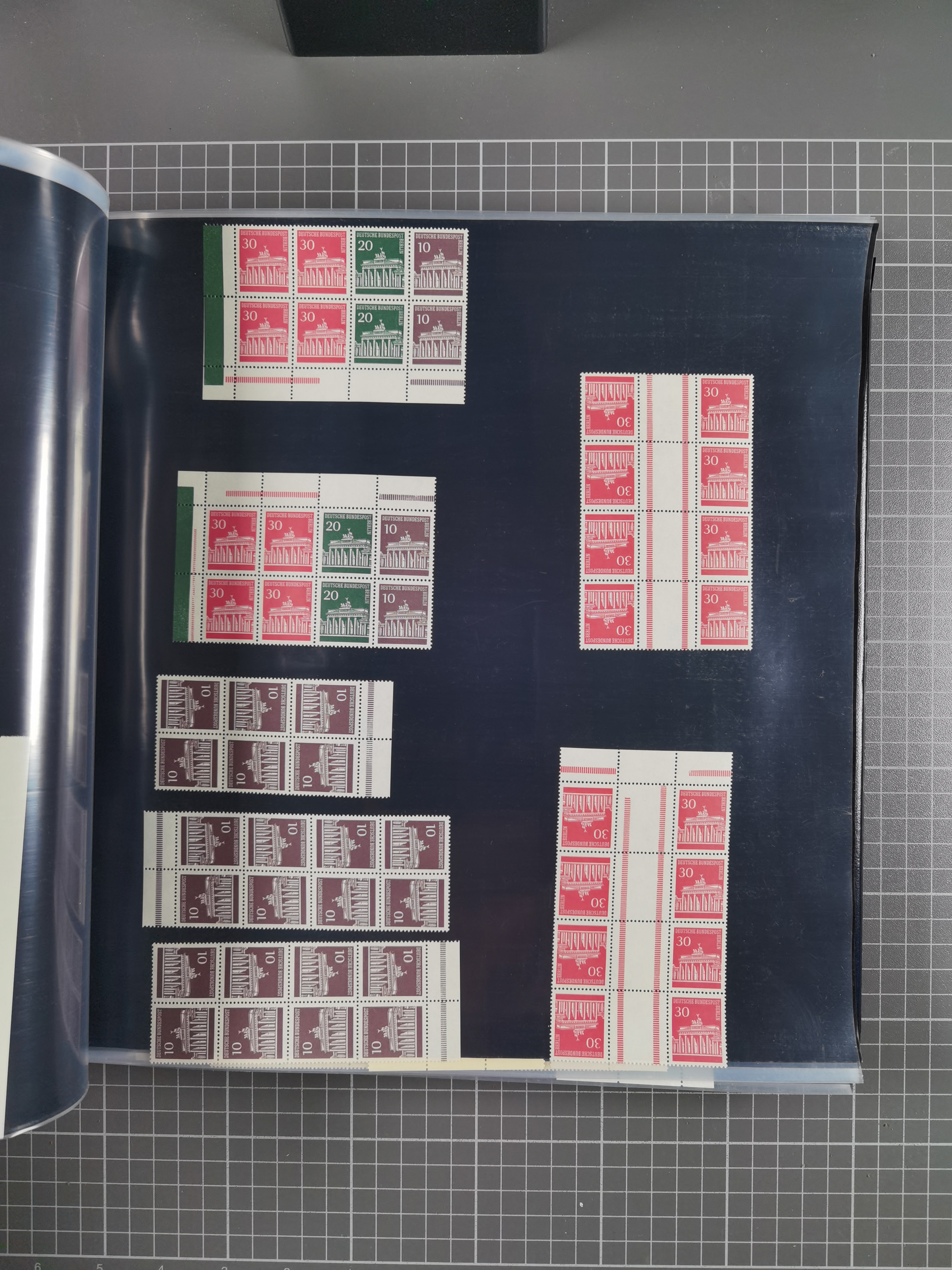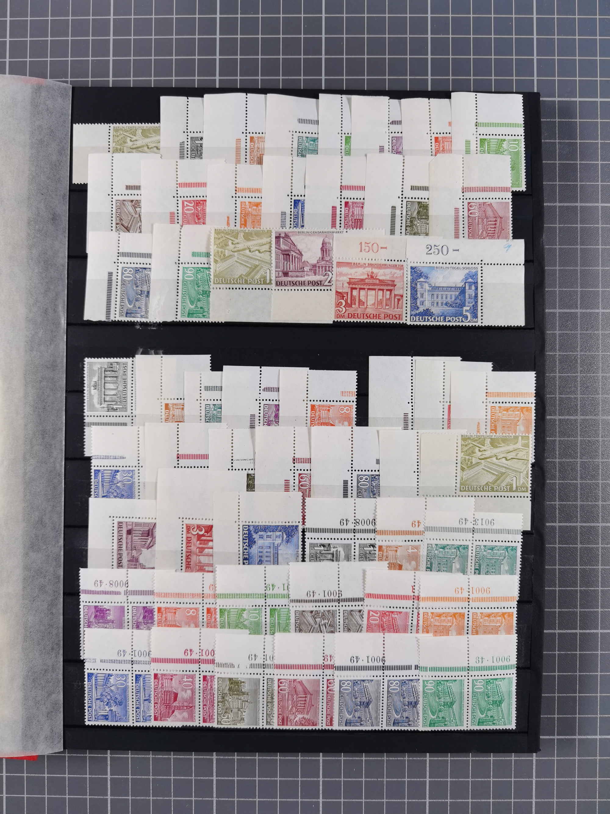 1949/60, Bestand auf Steckkarten mit Berlin Schwarzaufdrucke geprüft Schlegel, Goethe signiert Bühler, Helfer der Menschheit in Viererblöcken etc., meist sehr sauber erhalten.
