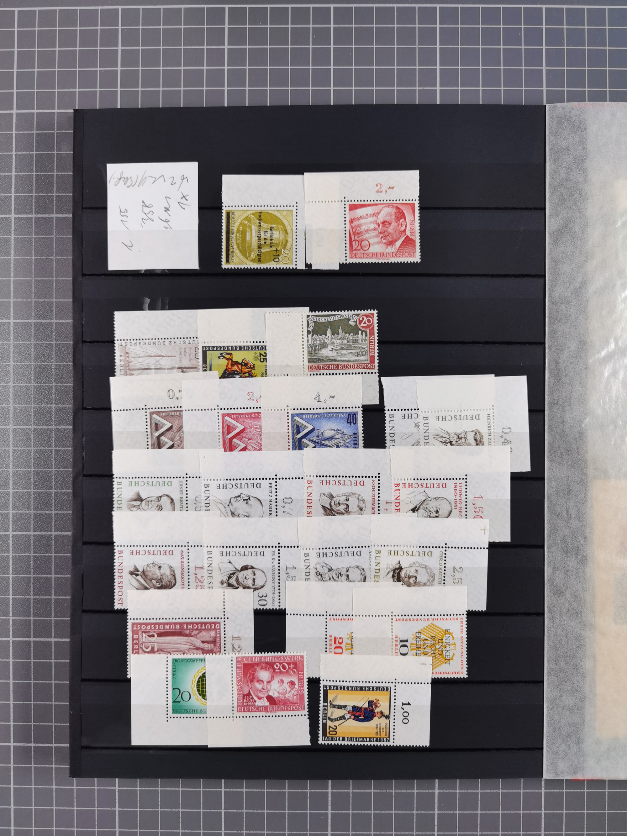 1951/2020, postfrische Sammlung “ Dauerserien Eckrandstücke”, ab Posthornsatz kpl. unsigniert und ungefaltet, einwandfrei (FA H.-D. Schlegel BPP), ferner Heuss inkl. Lumogen, aus Schalterbogen und MHB, HAN, verschiedene Druckereizeichen sowie Zähnungsarten, bis Blumen, eine schöne Sammlung, gute Erhaltung