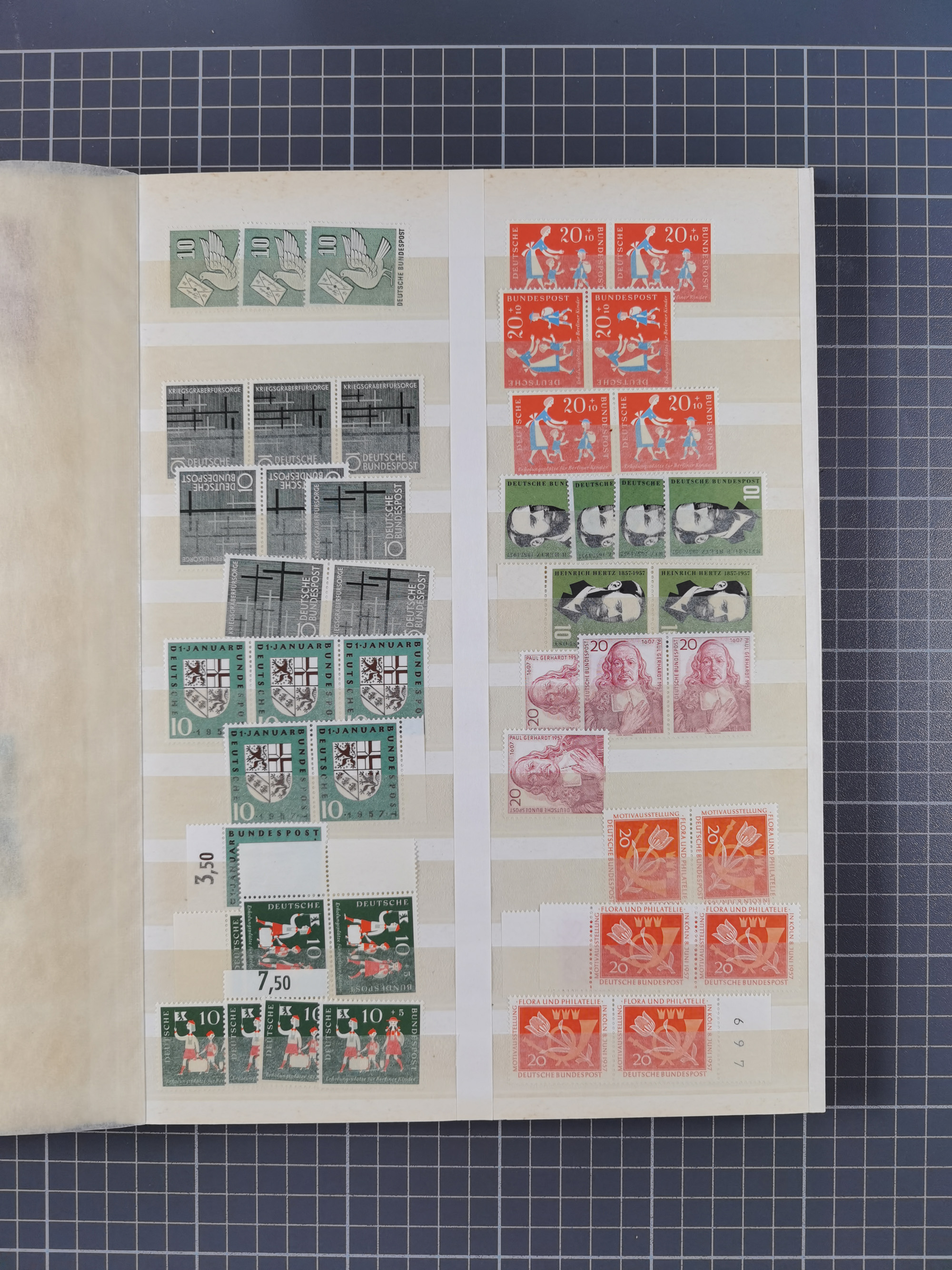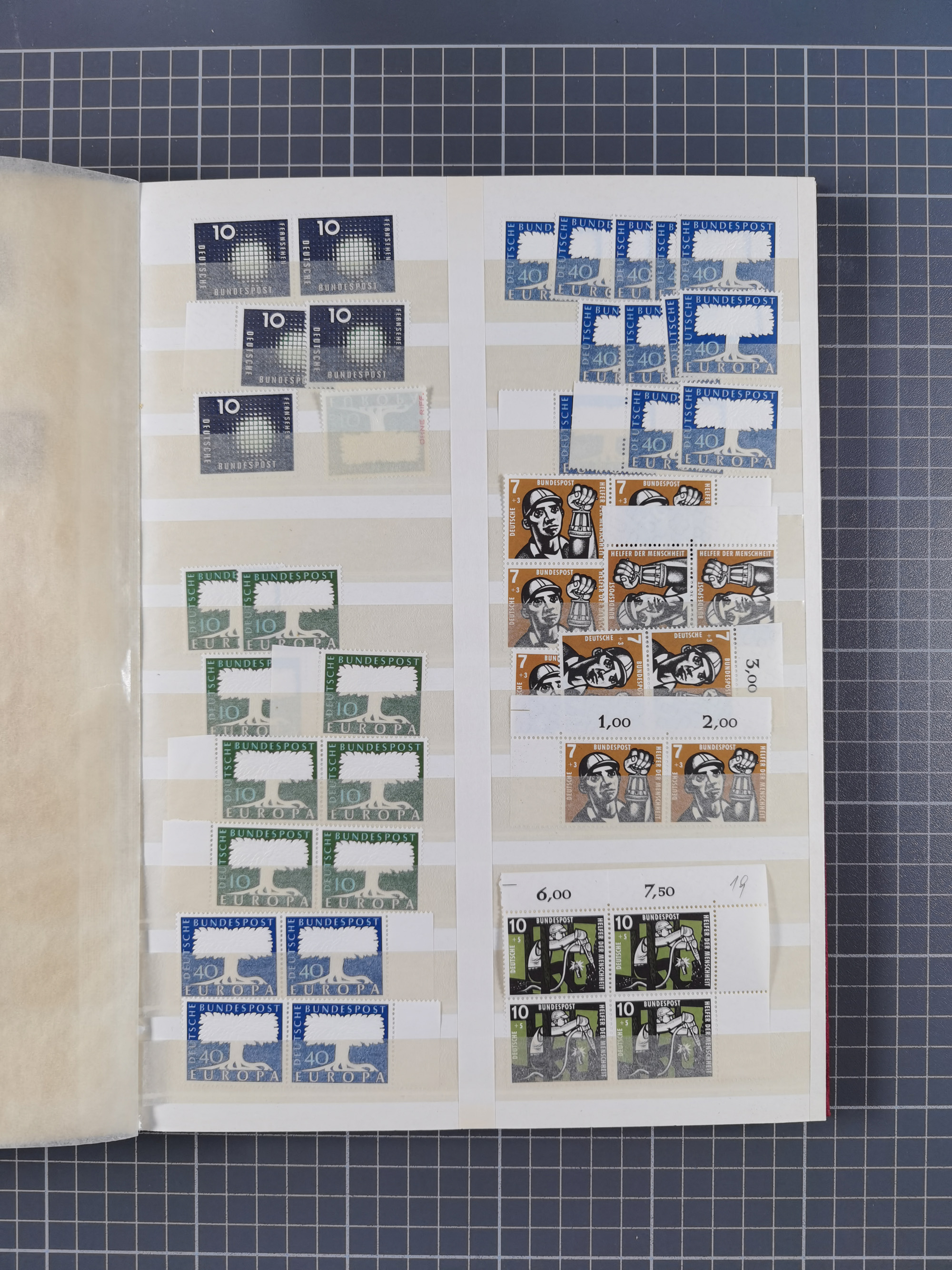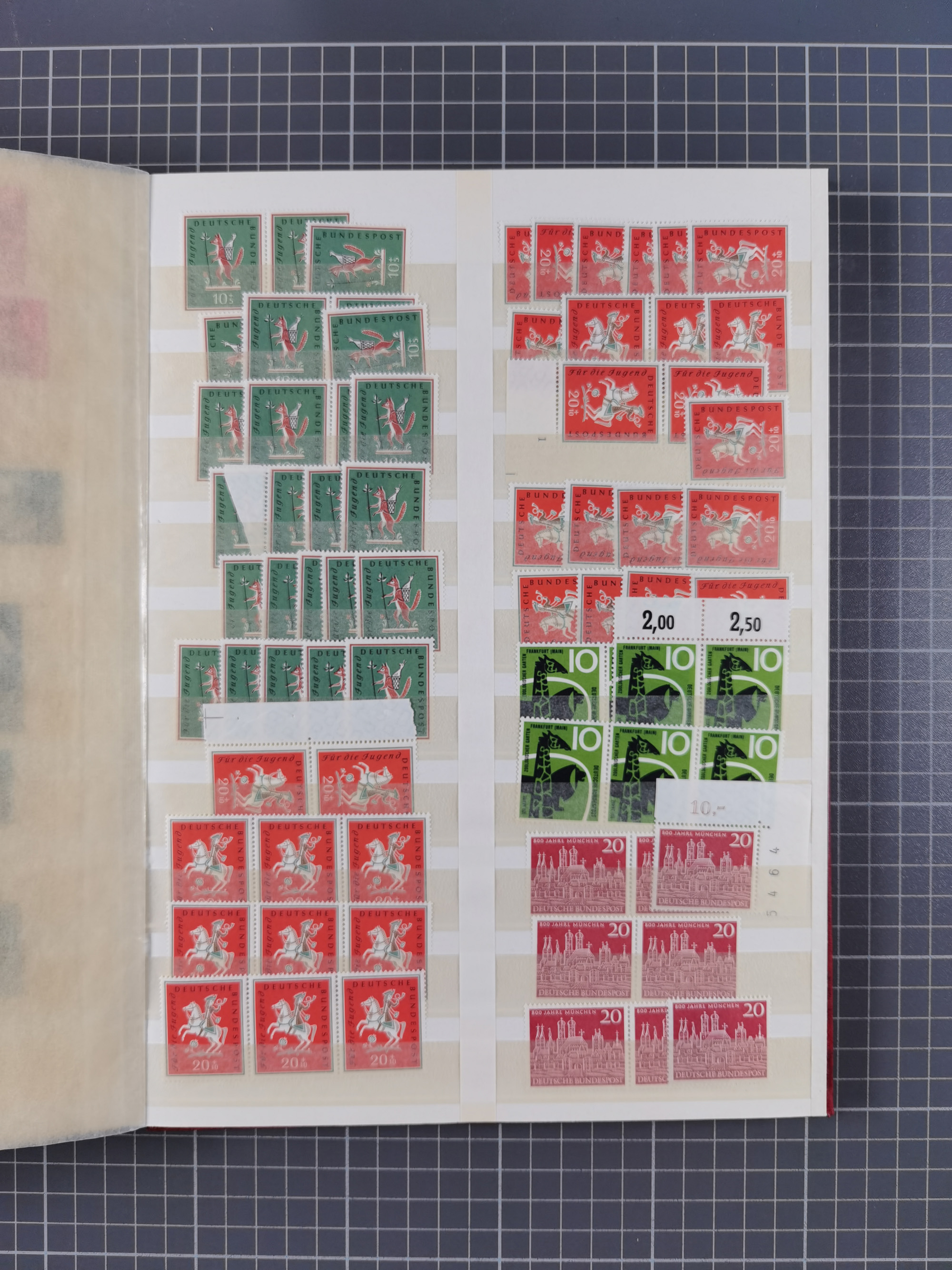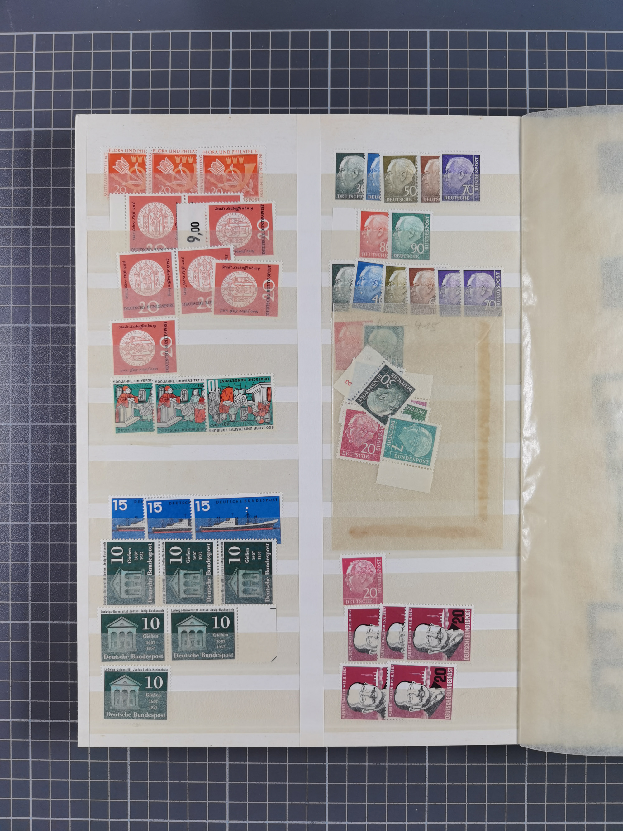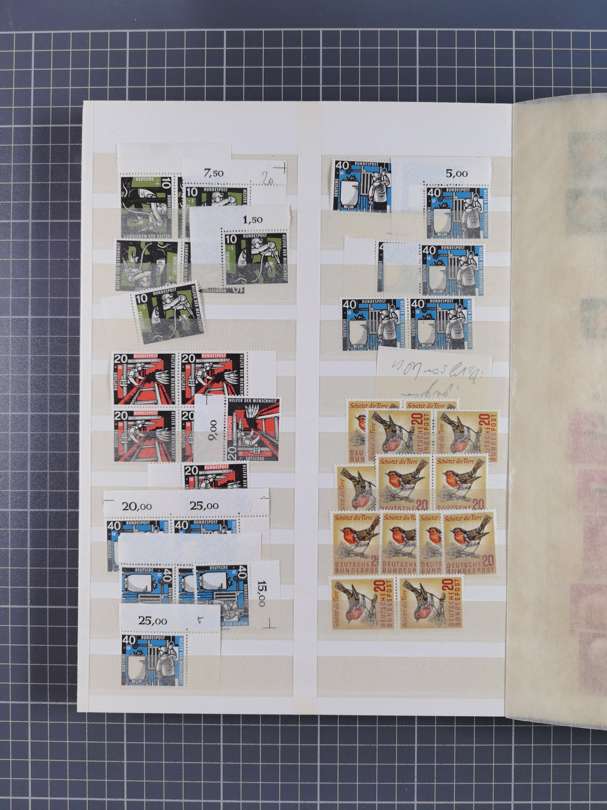 1948/65 (ca.), postfrische, wenig ungebrauchte und gestempelte reichhaltige Partie in vier Steckbüchern, dabei mehrere Posthorn-Sätze, Rotaufdruck im Eckrand-Viererblocksatz, Währungsgeschädigten-Block (5) etc, etc.