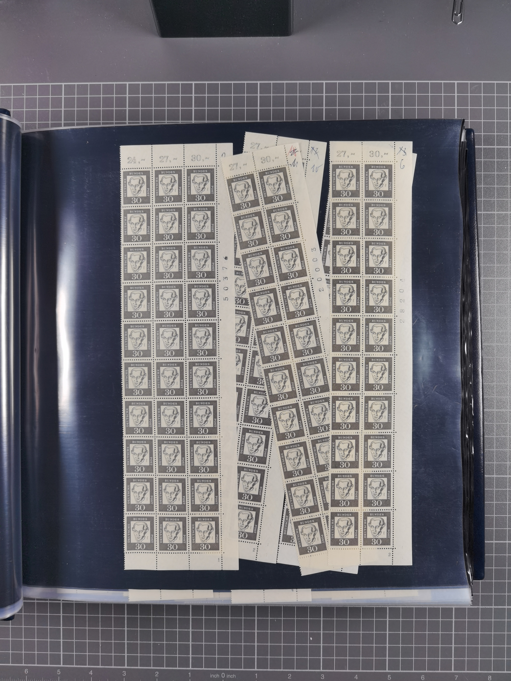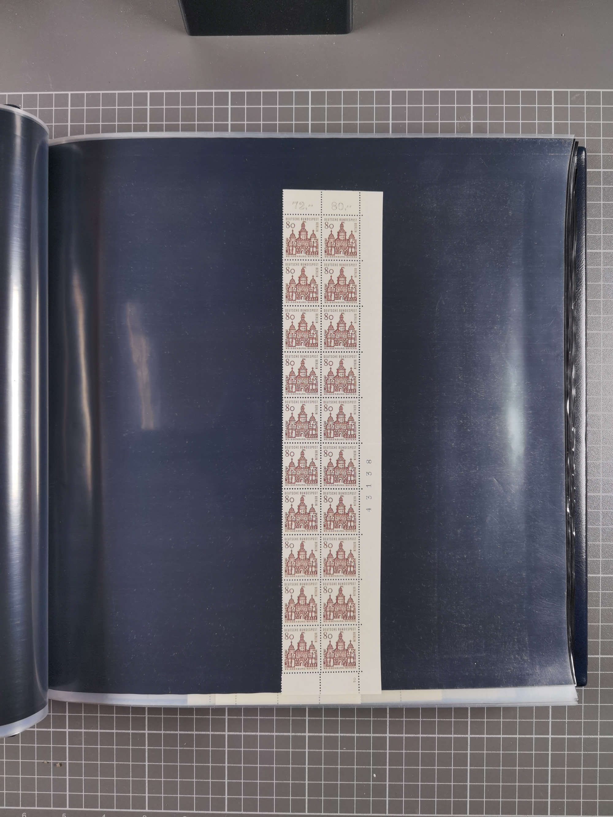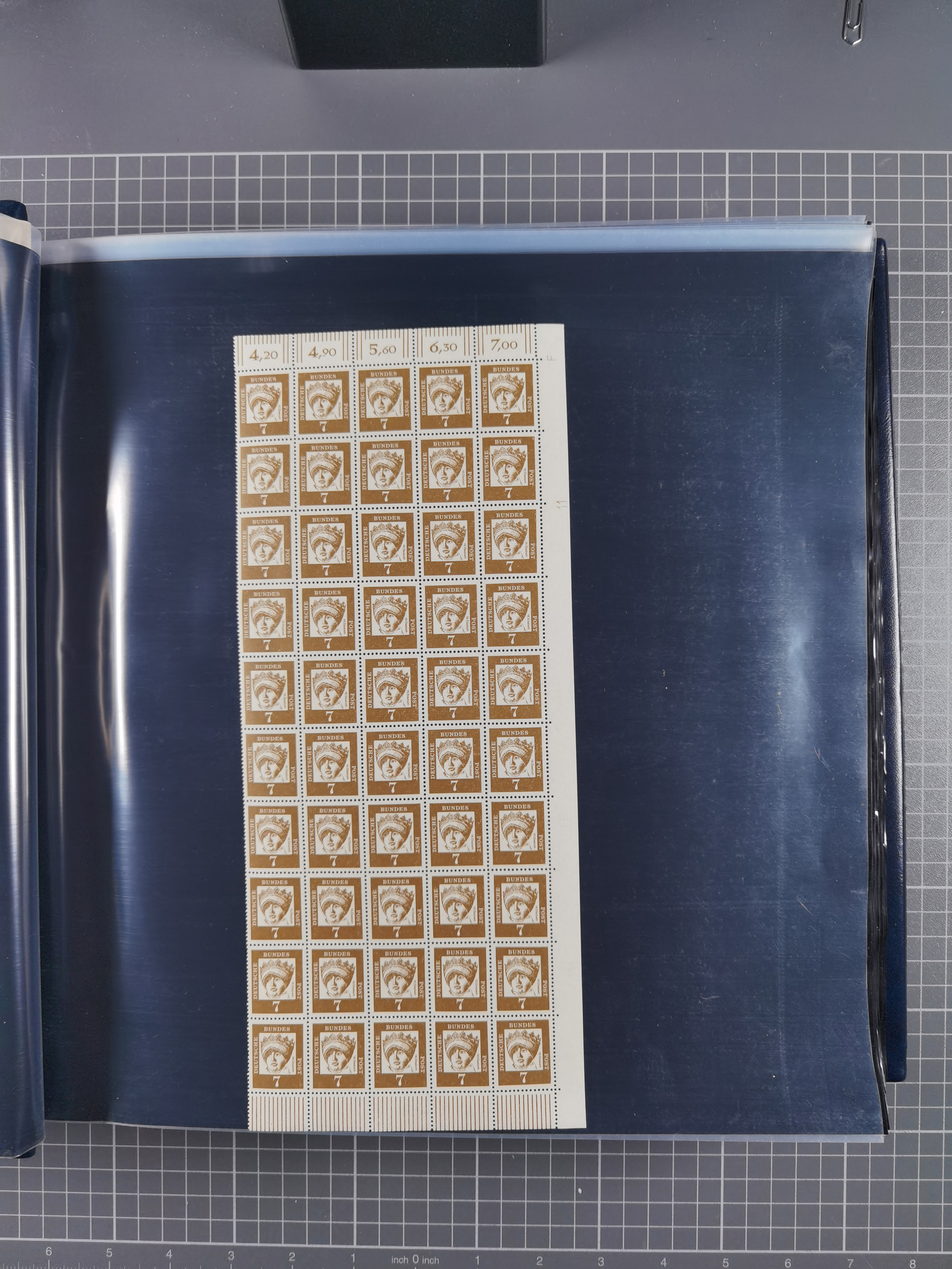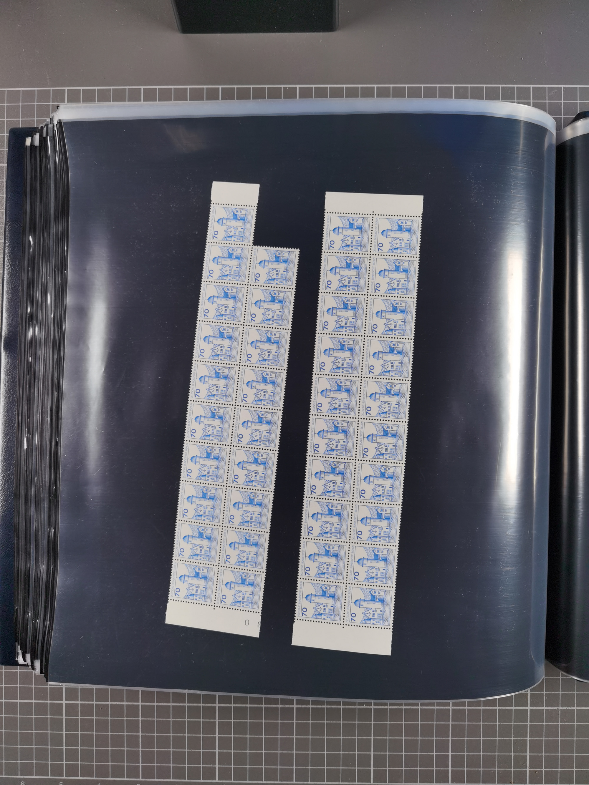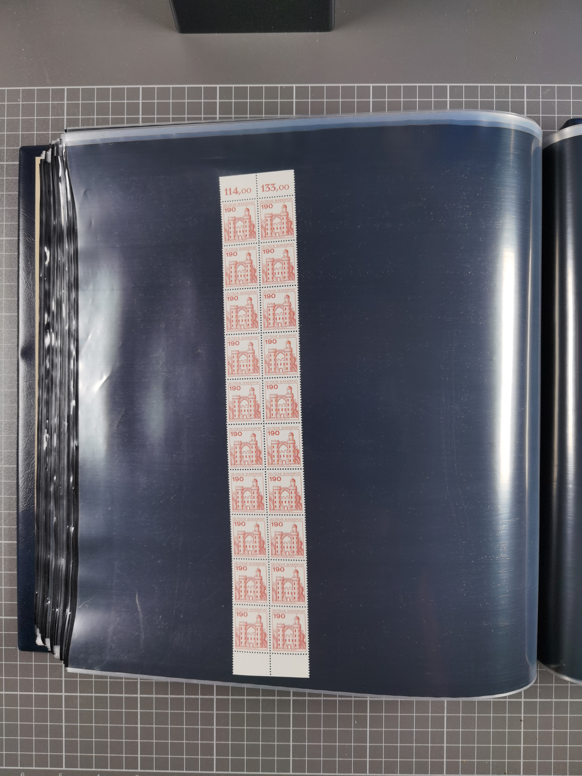 1960/75. postfrische Bogenteile der Dauerserien ab Bedeutende Deutsche, dabei Formnummern und Berlin mit u.a. Mi.-Nr. 246-49 jeweils im 20er-Bogenteil rechts mit 10 waagerechten Paaren, in Bogenmappe