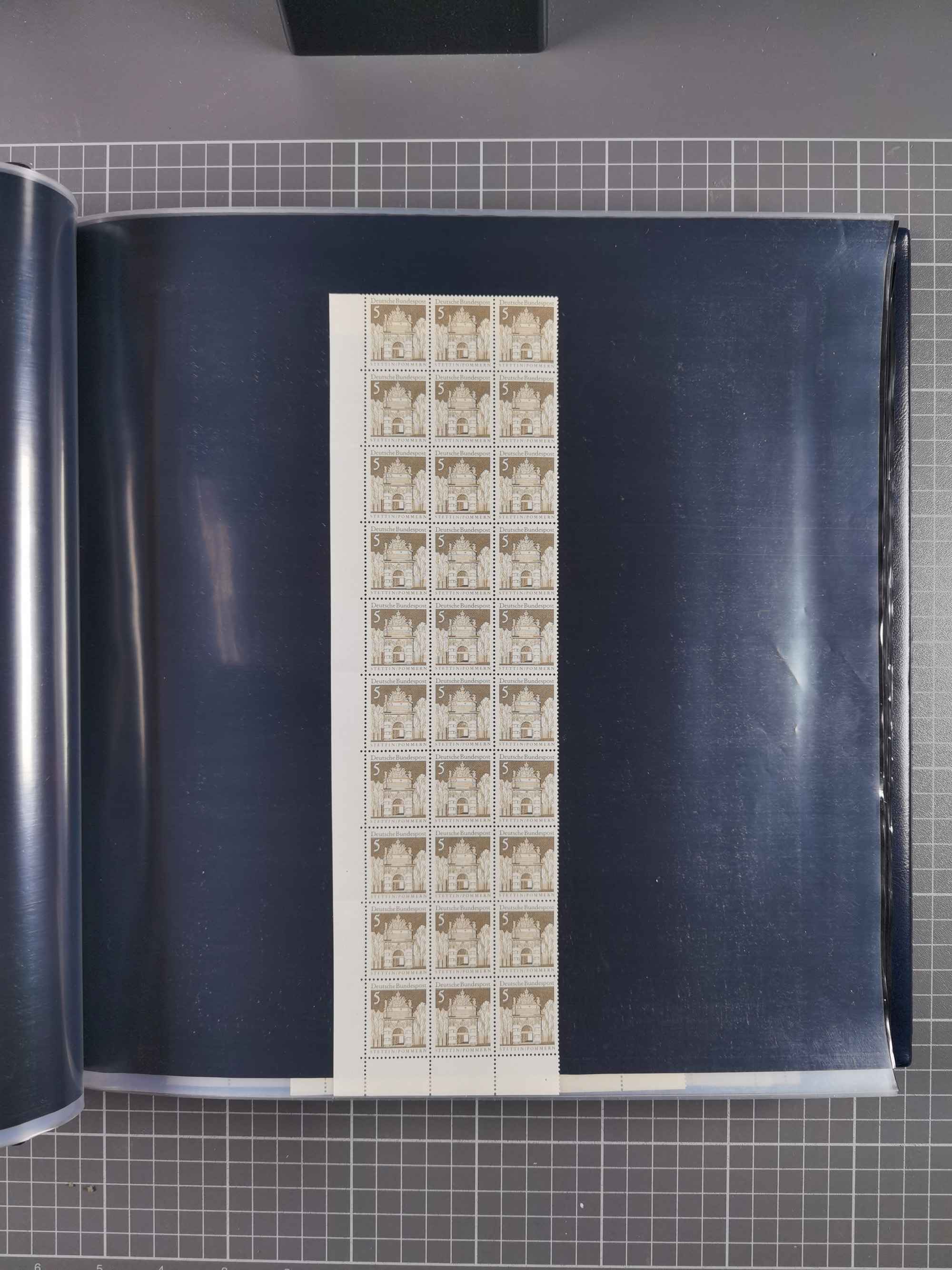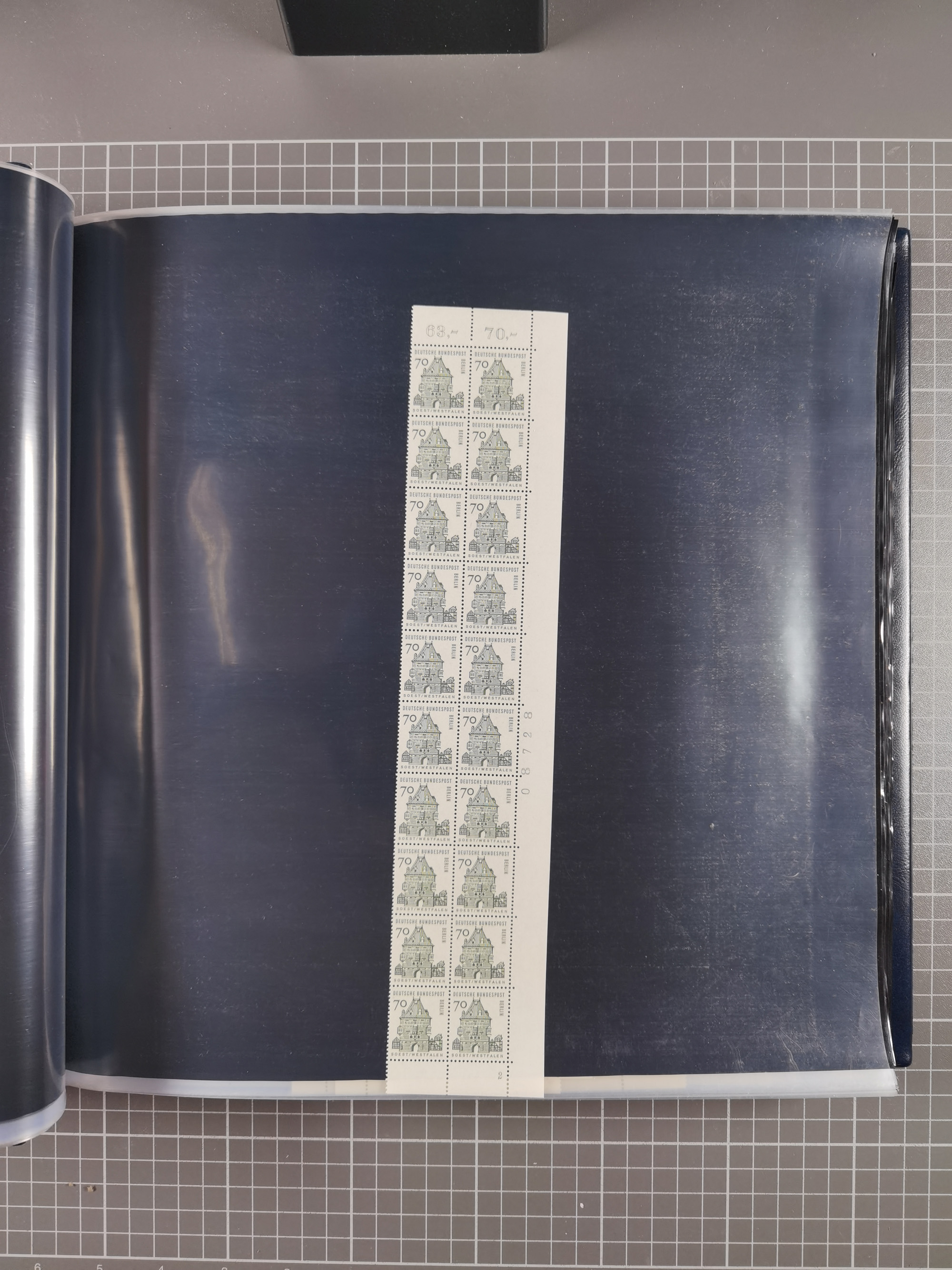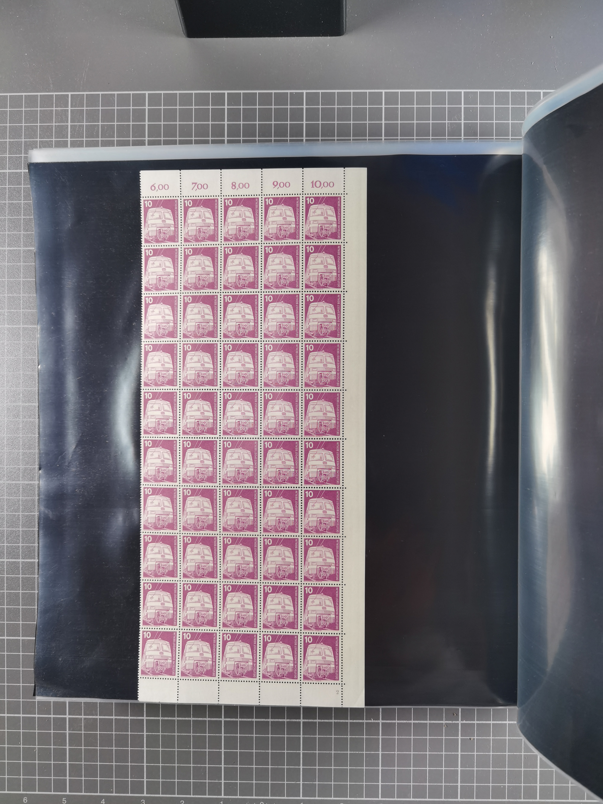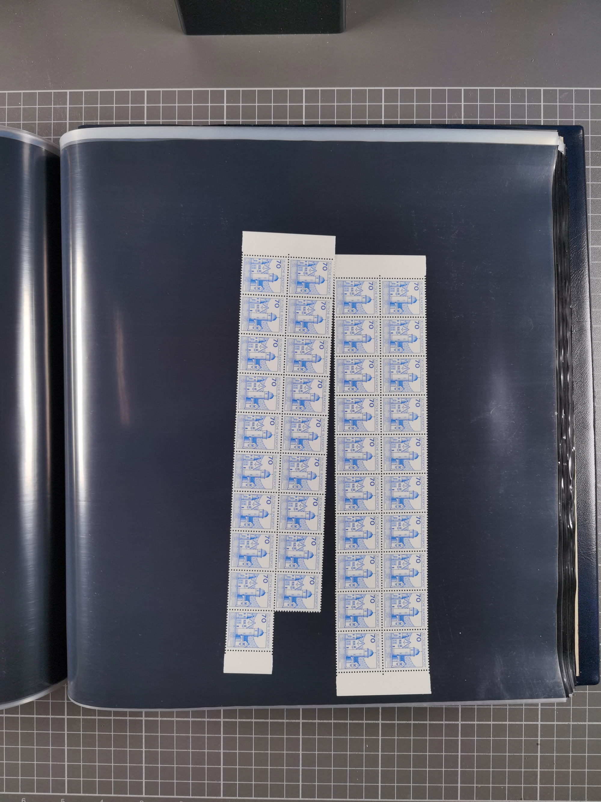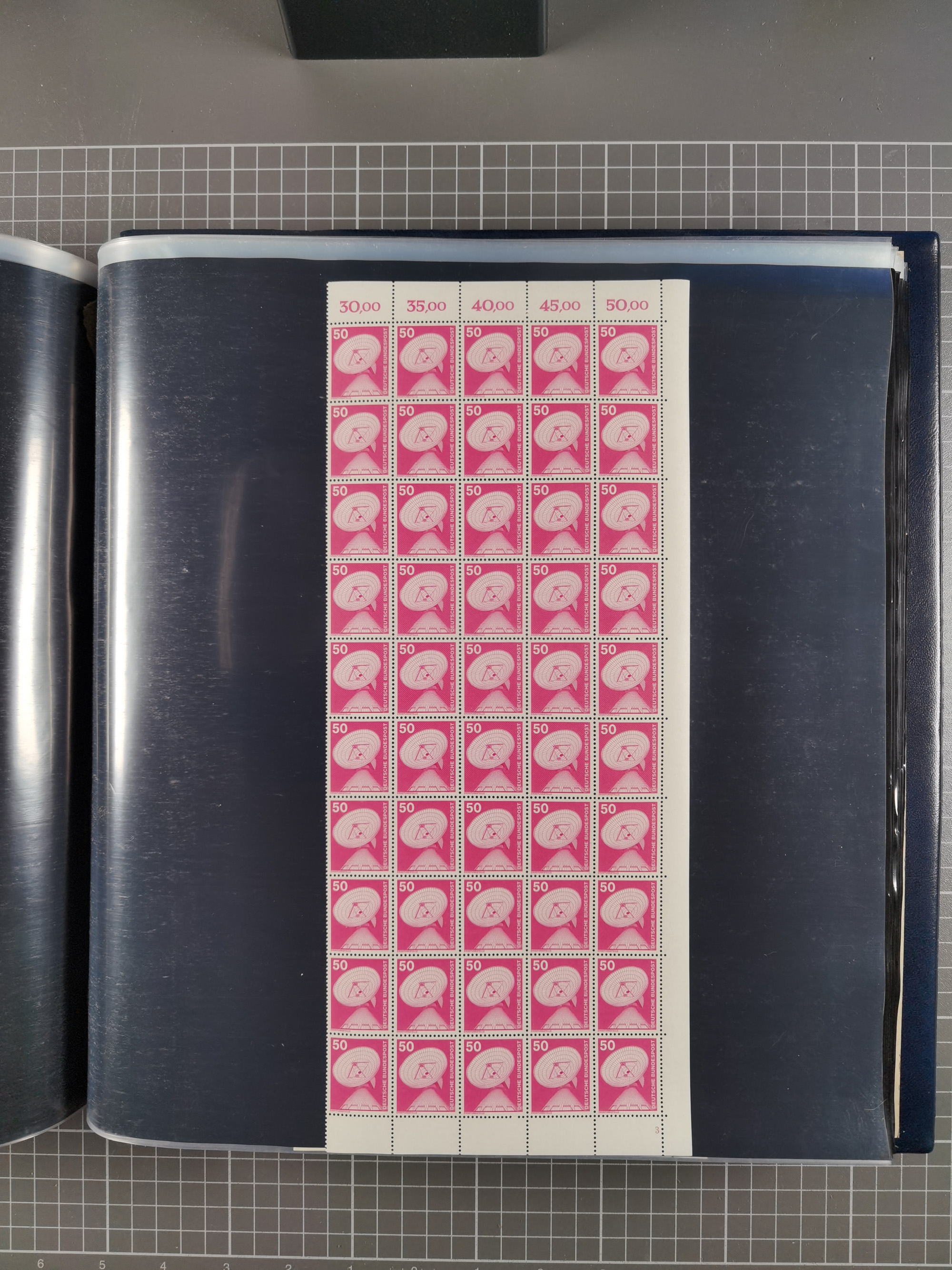 1960/75. postfrische Bogenteile der Dauerserien ab Bedeutende Deutsche, dabei Formnummern und Berlin mit u.a. Mi.-Nr. 246-49 jeweils im 20er-Bogenteil rechts mit 10 waagerechten Paaren, in Bogenmappe