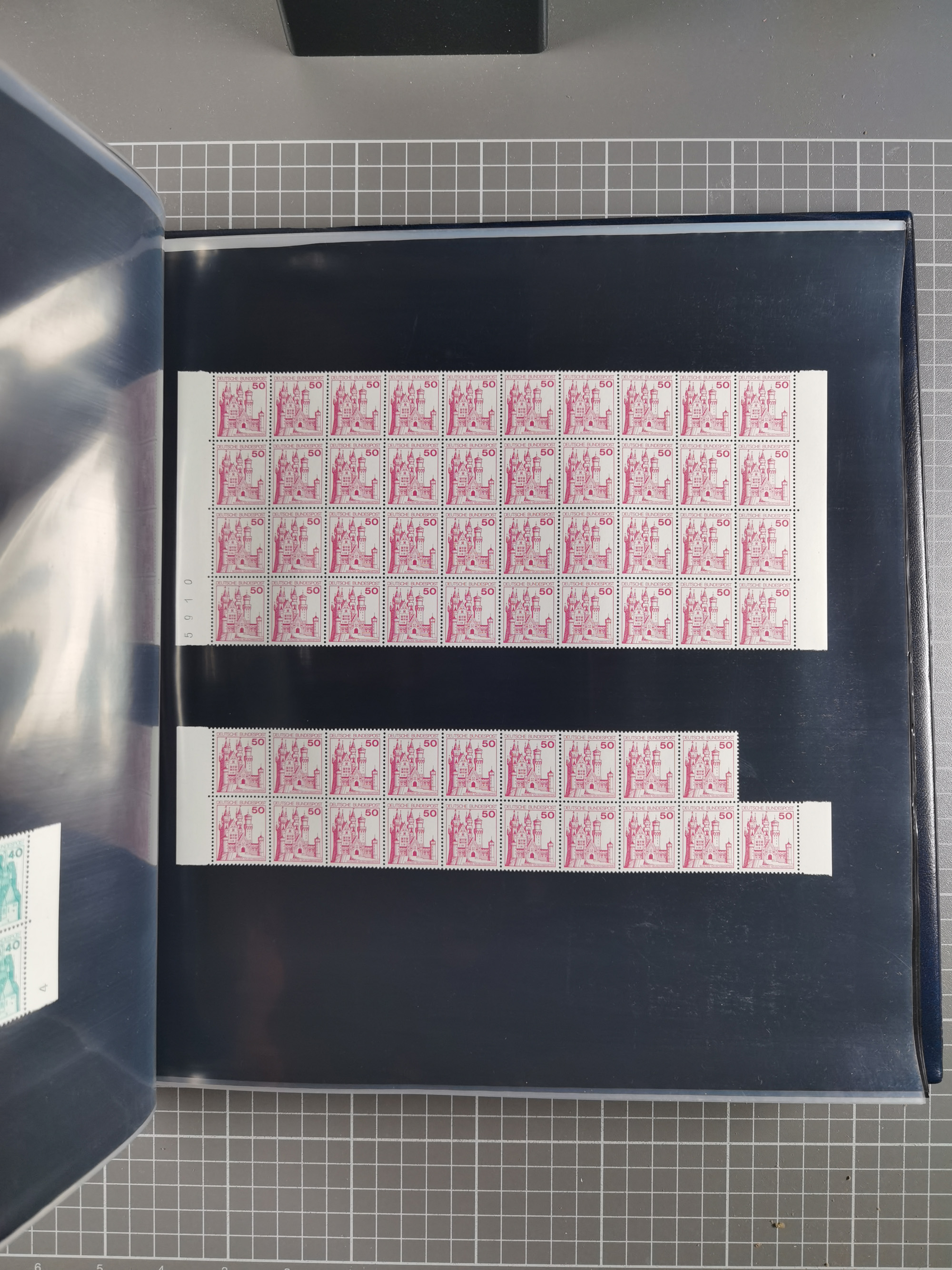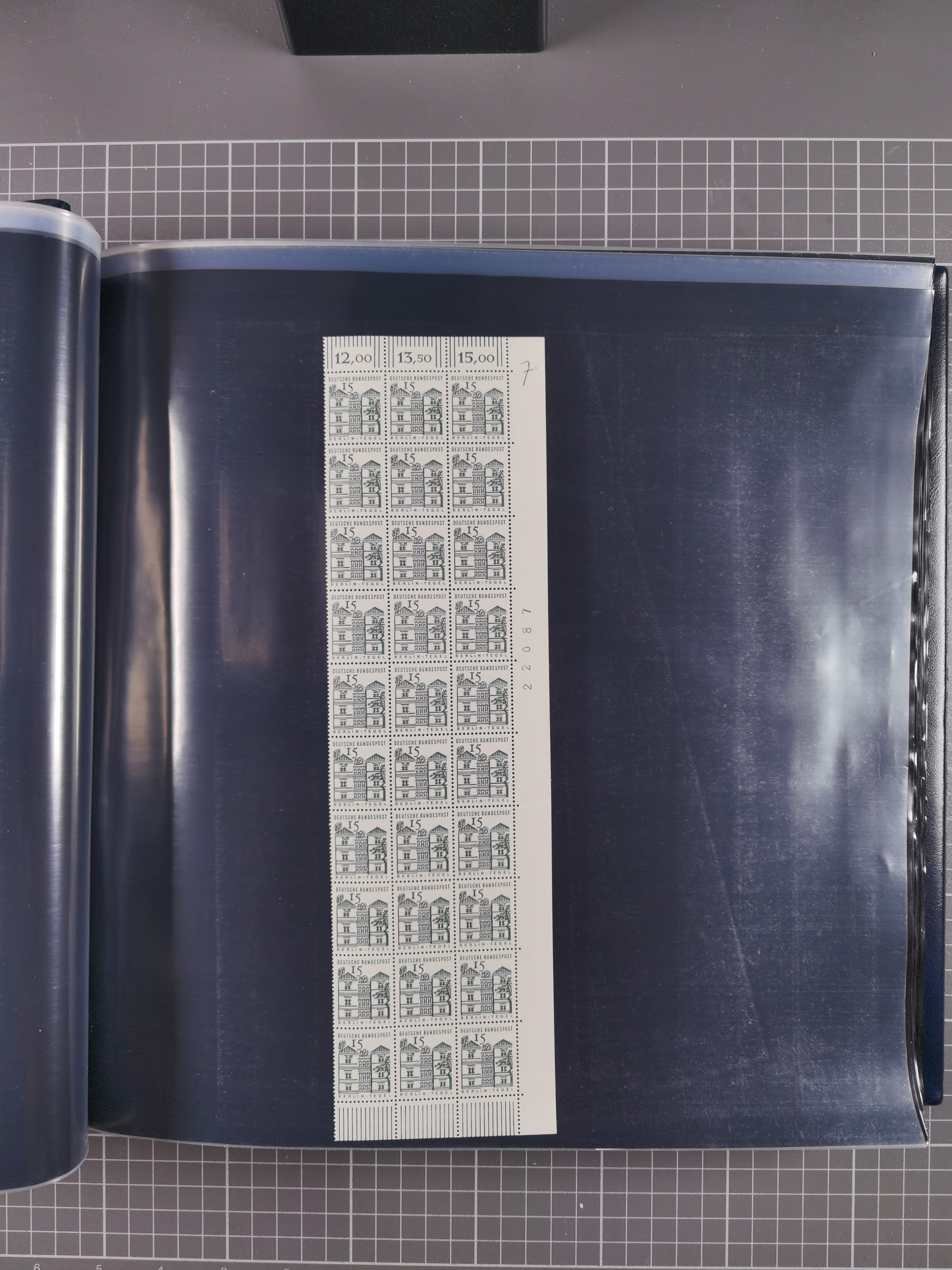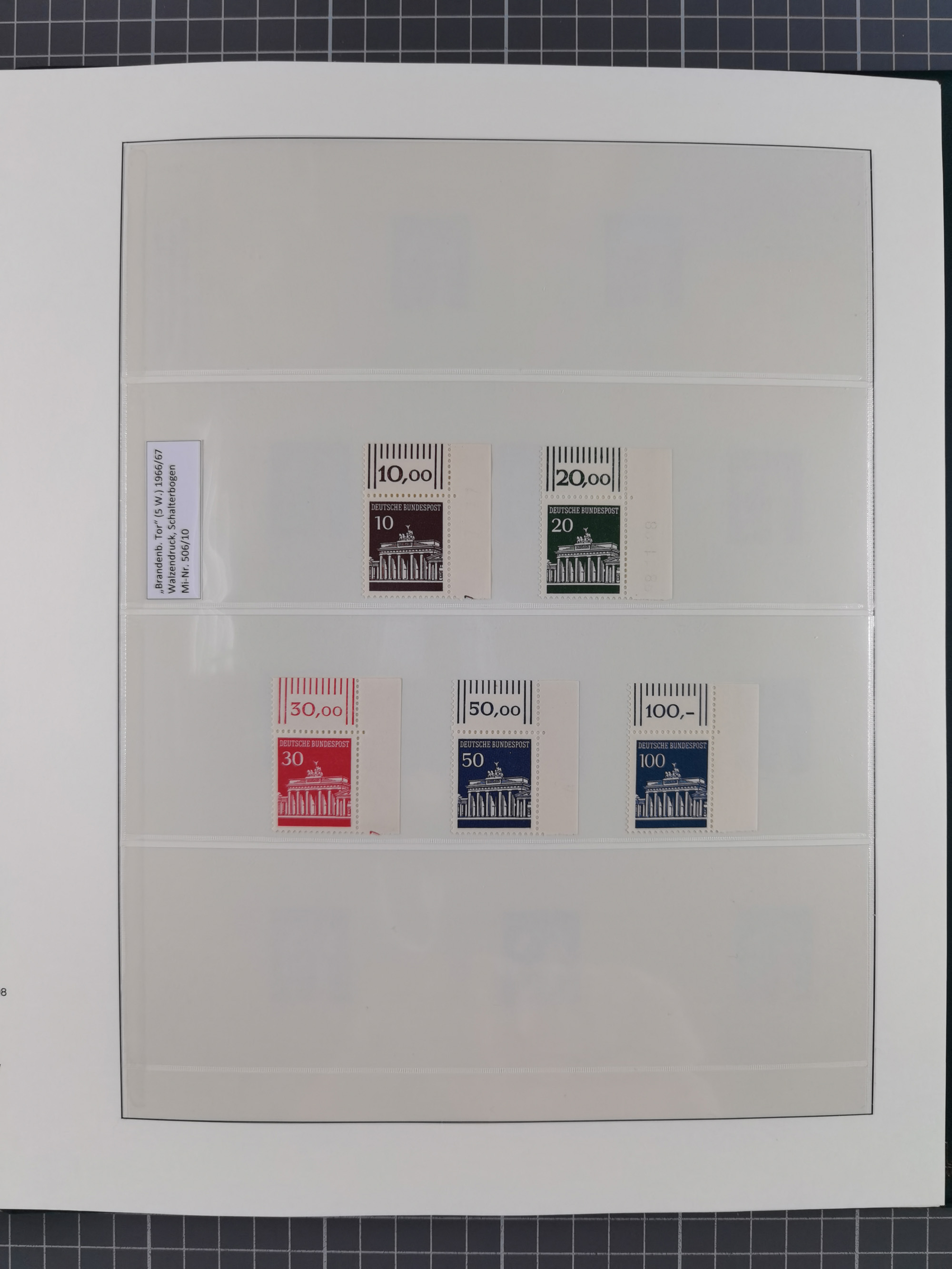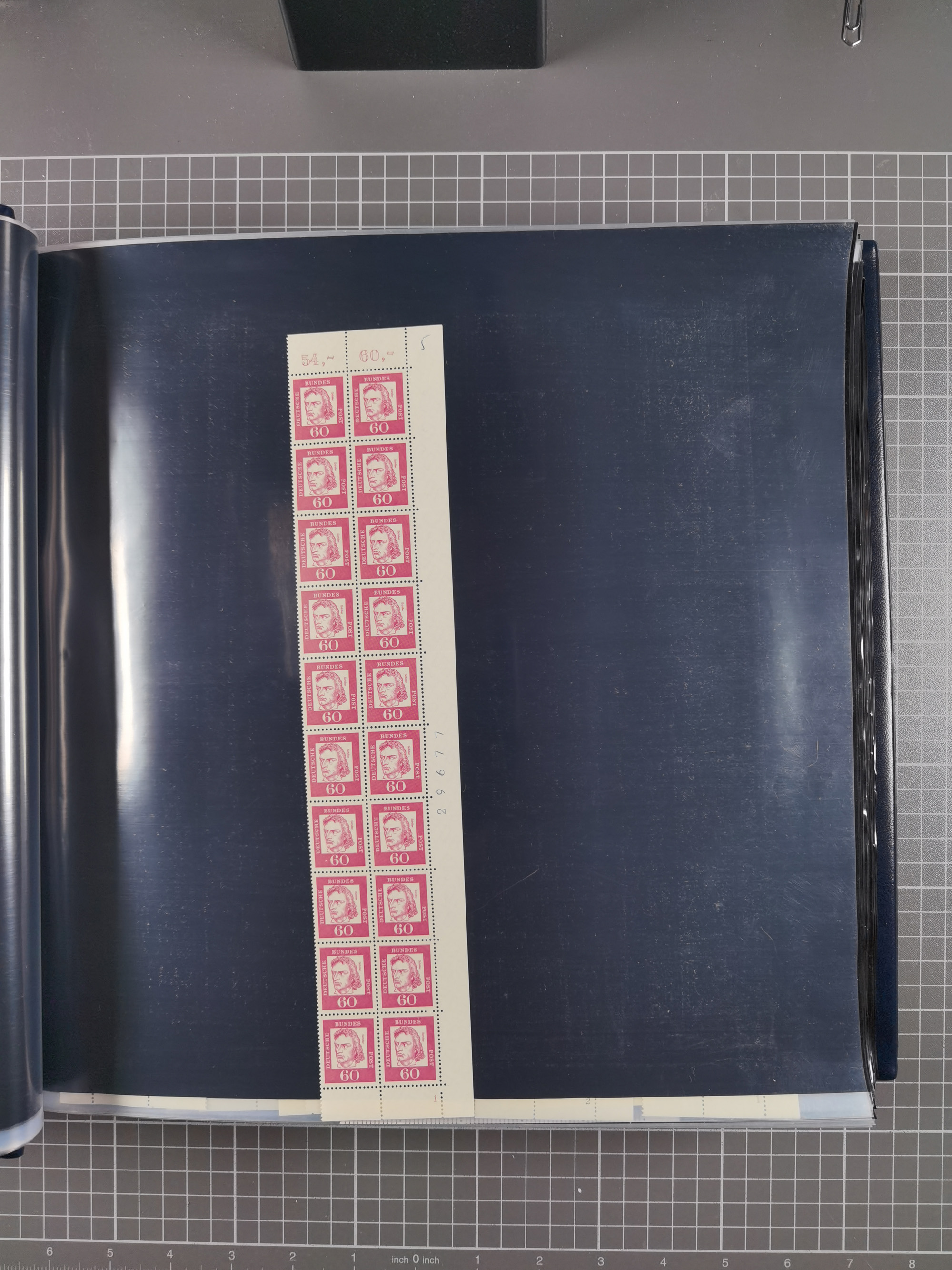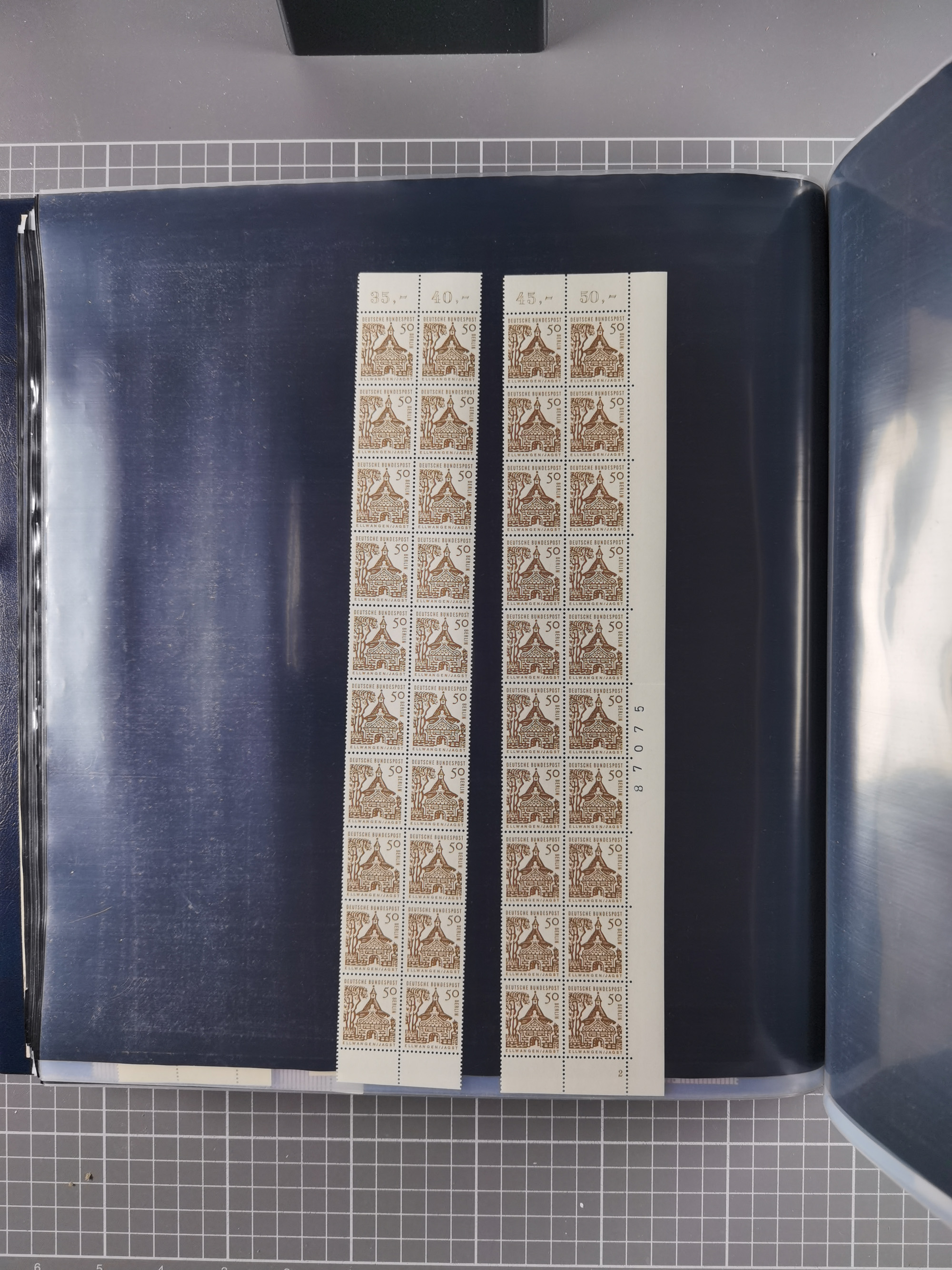 1960/75. postfrische Bogenteile der Dauerserien ab Bedeutende Deutsche, dabei Formnummern und Berlin mit u.a. Mi.-Nr. 246-49 jeweils im 20er-Bogenteil rechts mit 10 waagerechten Paaren, in Bogenmappe