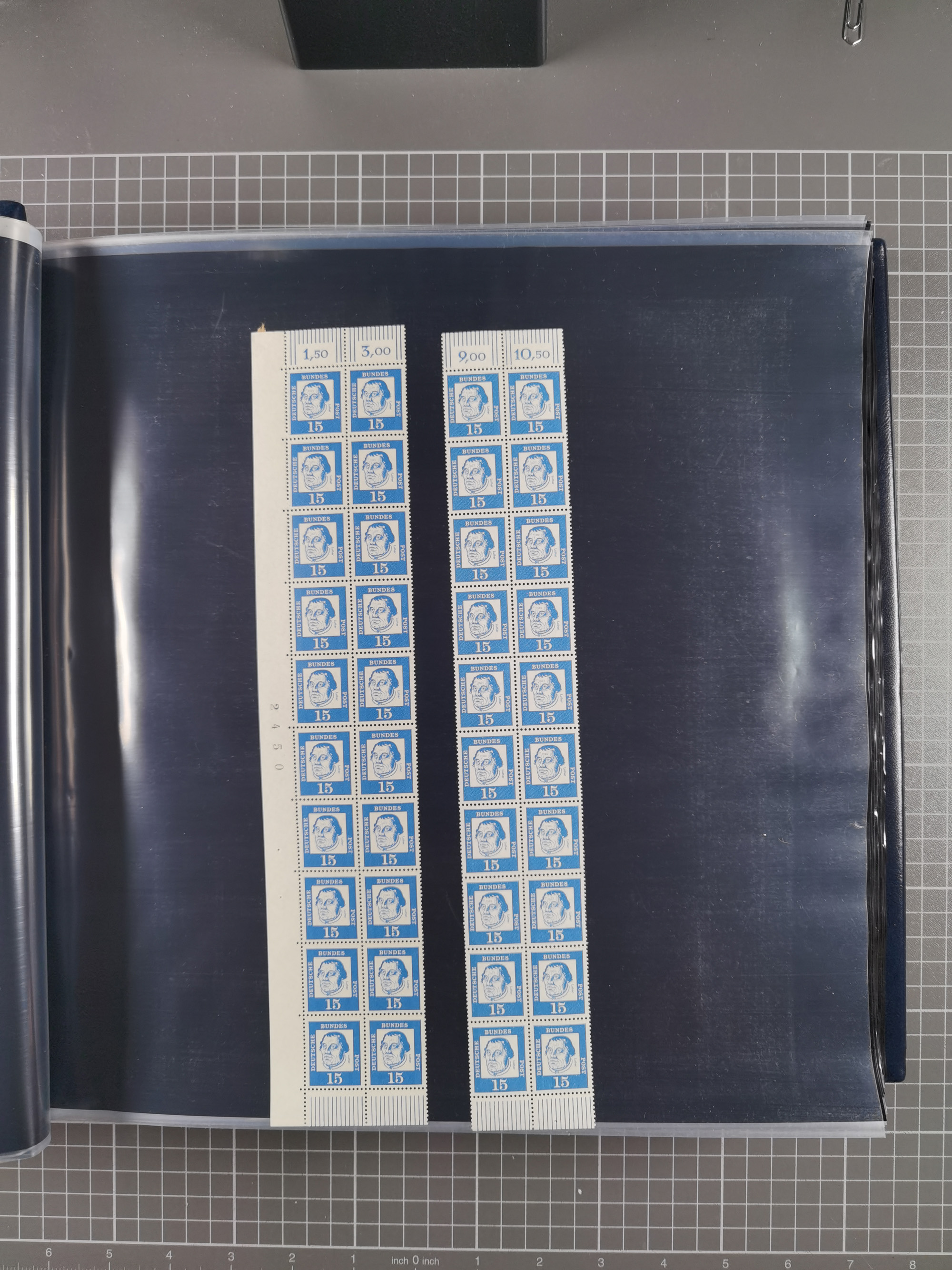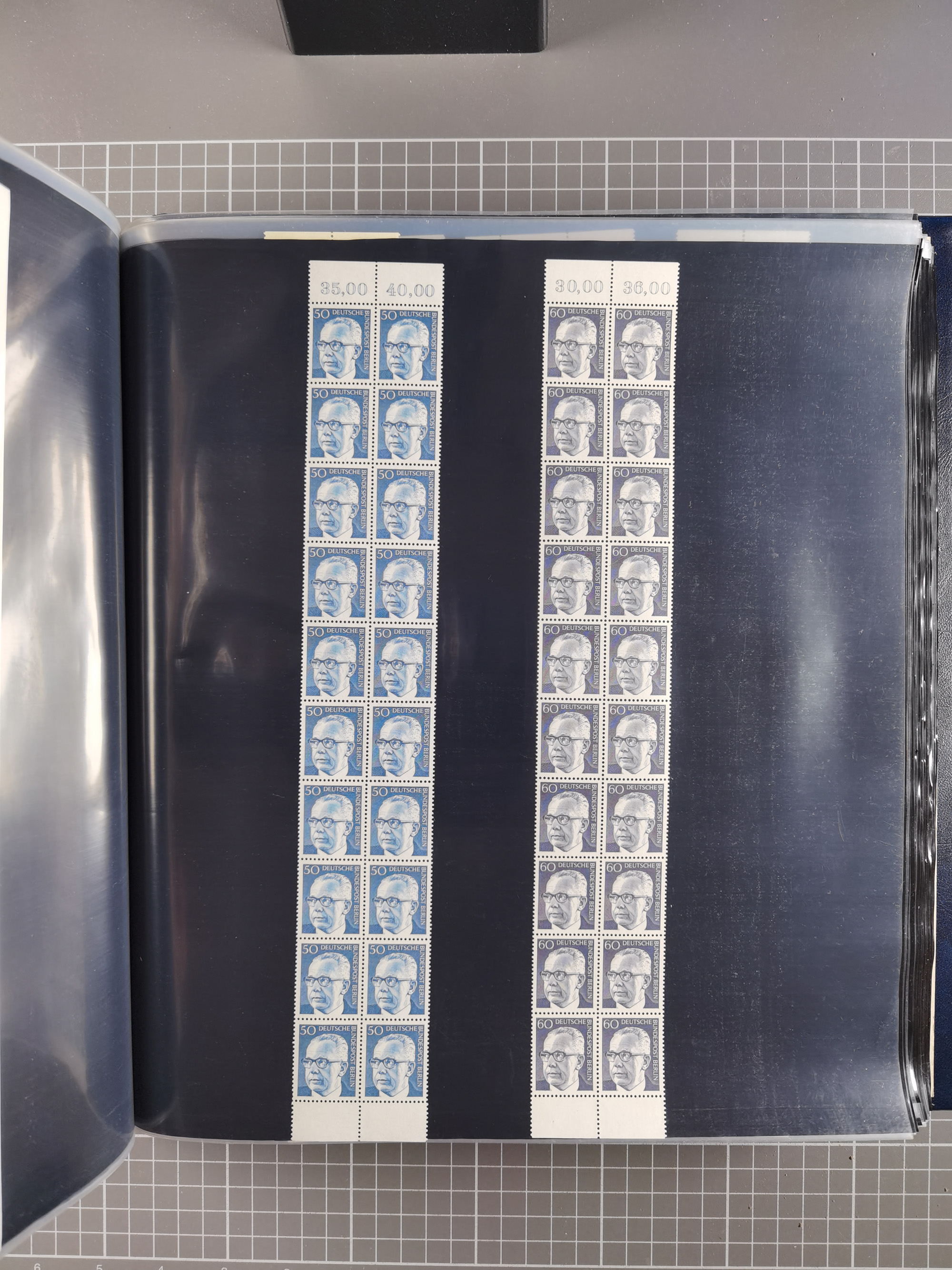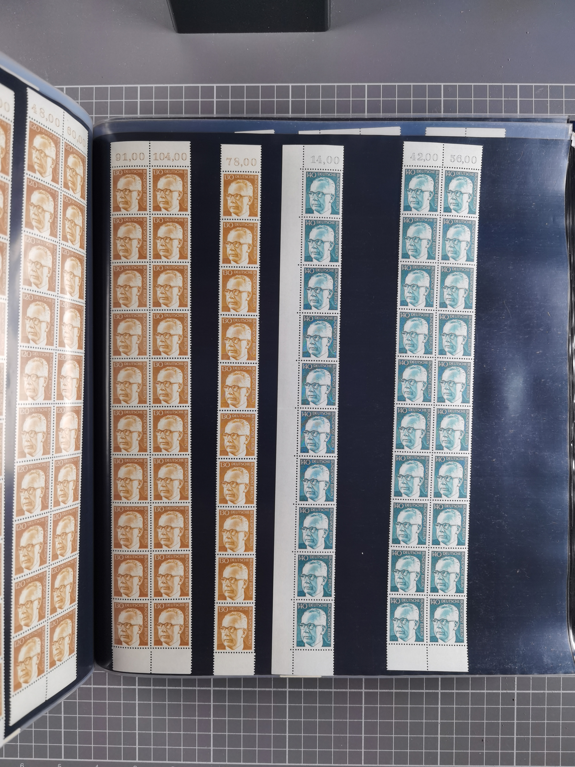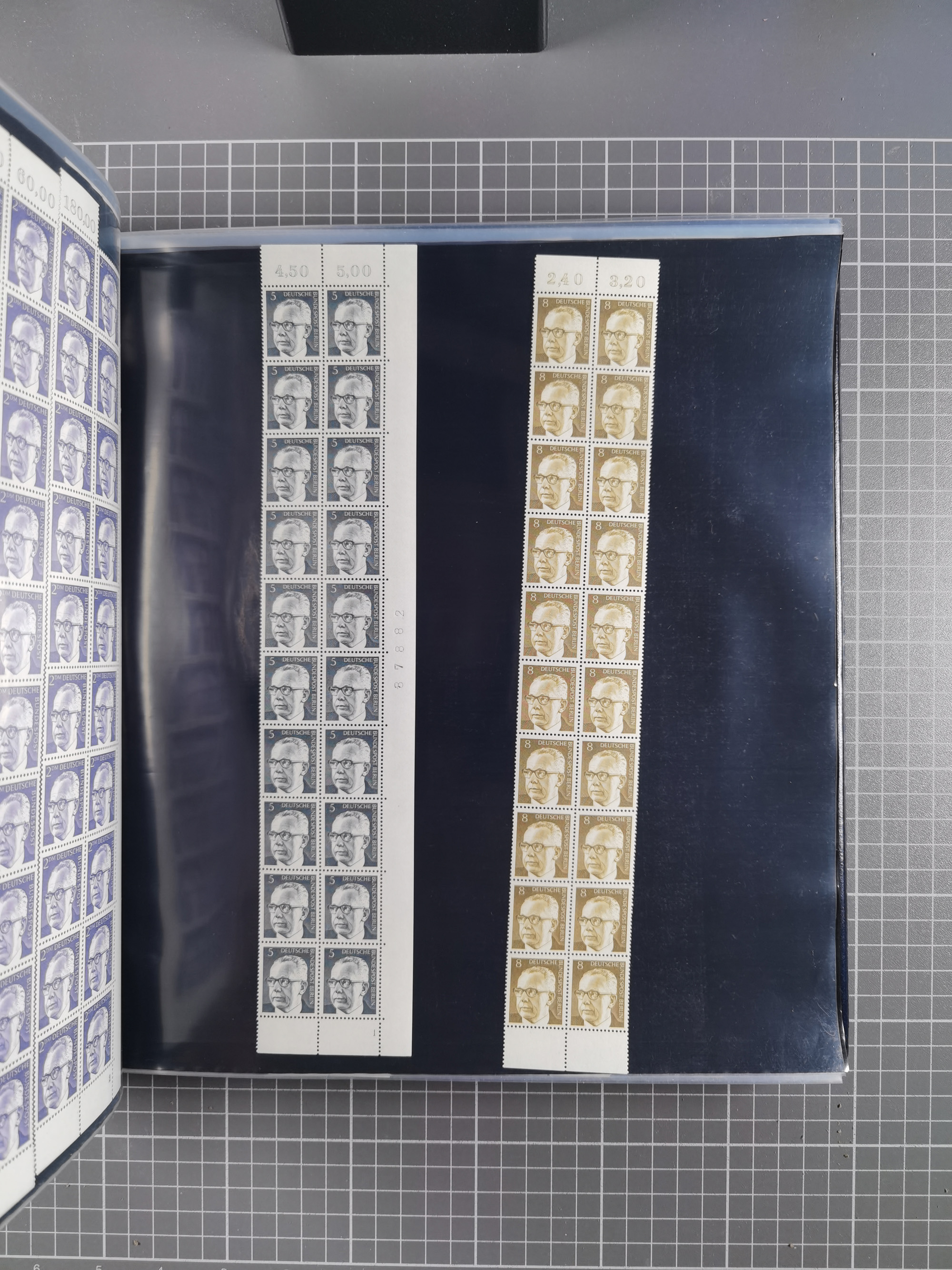 1949/2001, umfangreicher, am Anfang meist ungebrauchter und gestempelter Lagerbestand in 11 dicken Alben. Dazu je ein Album mit meist modernen Rollenmarken inkl. Streifen und Zusammendrucken ab Heuss