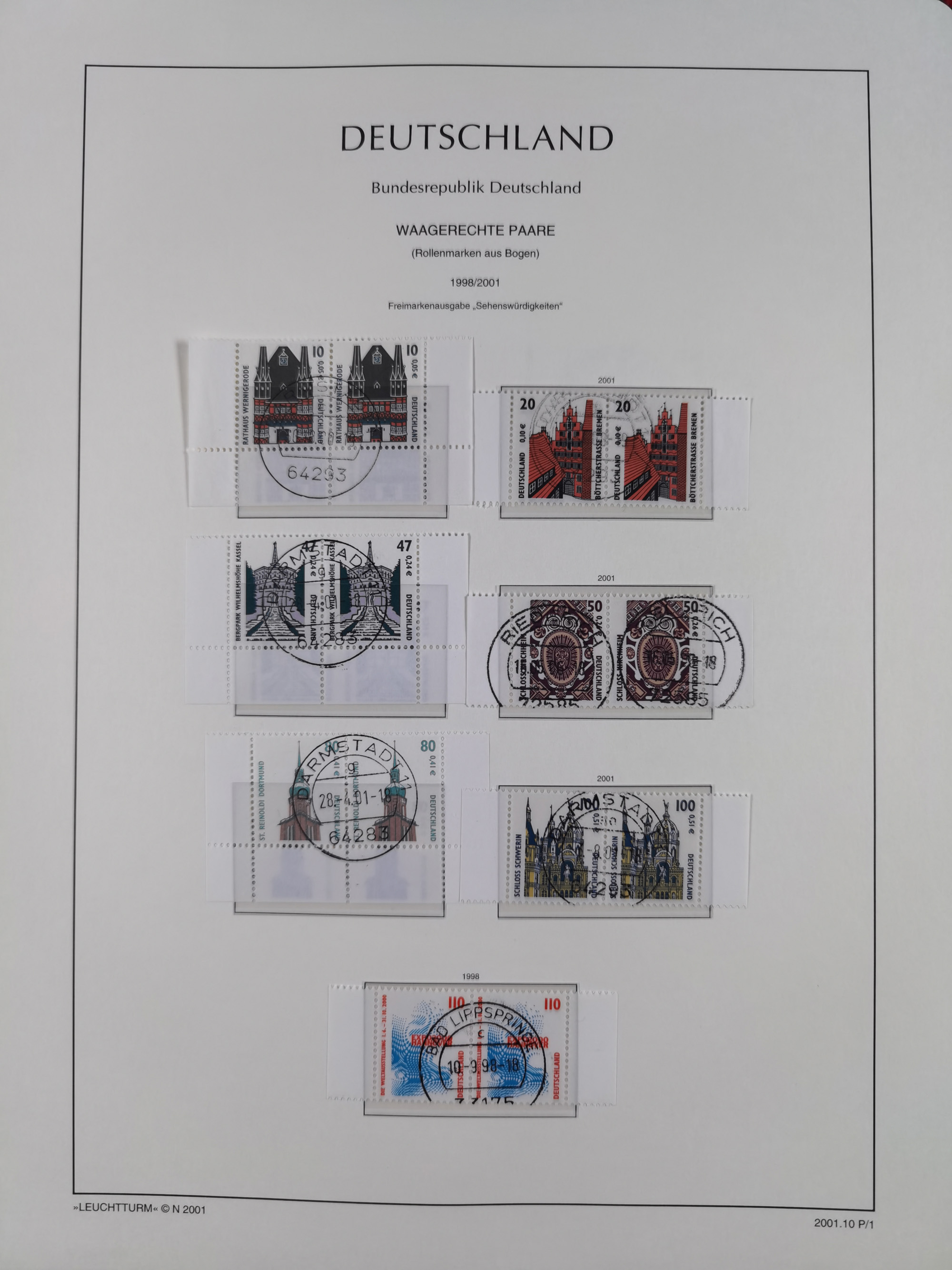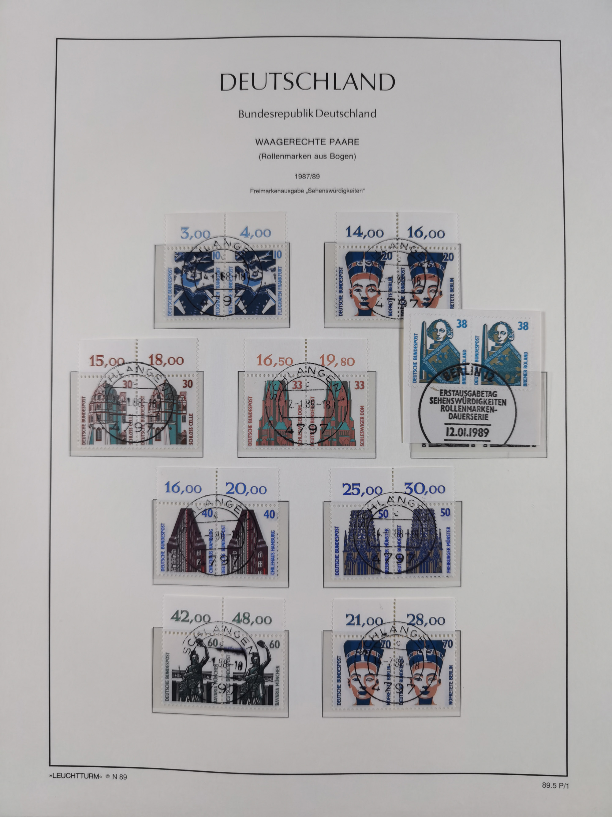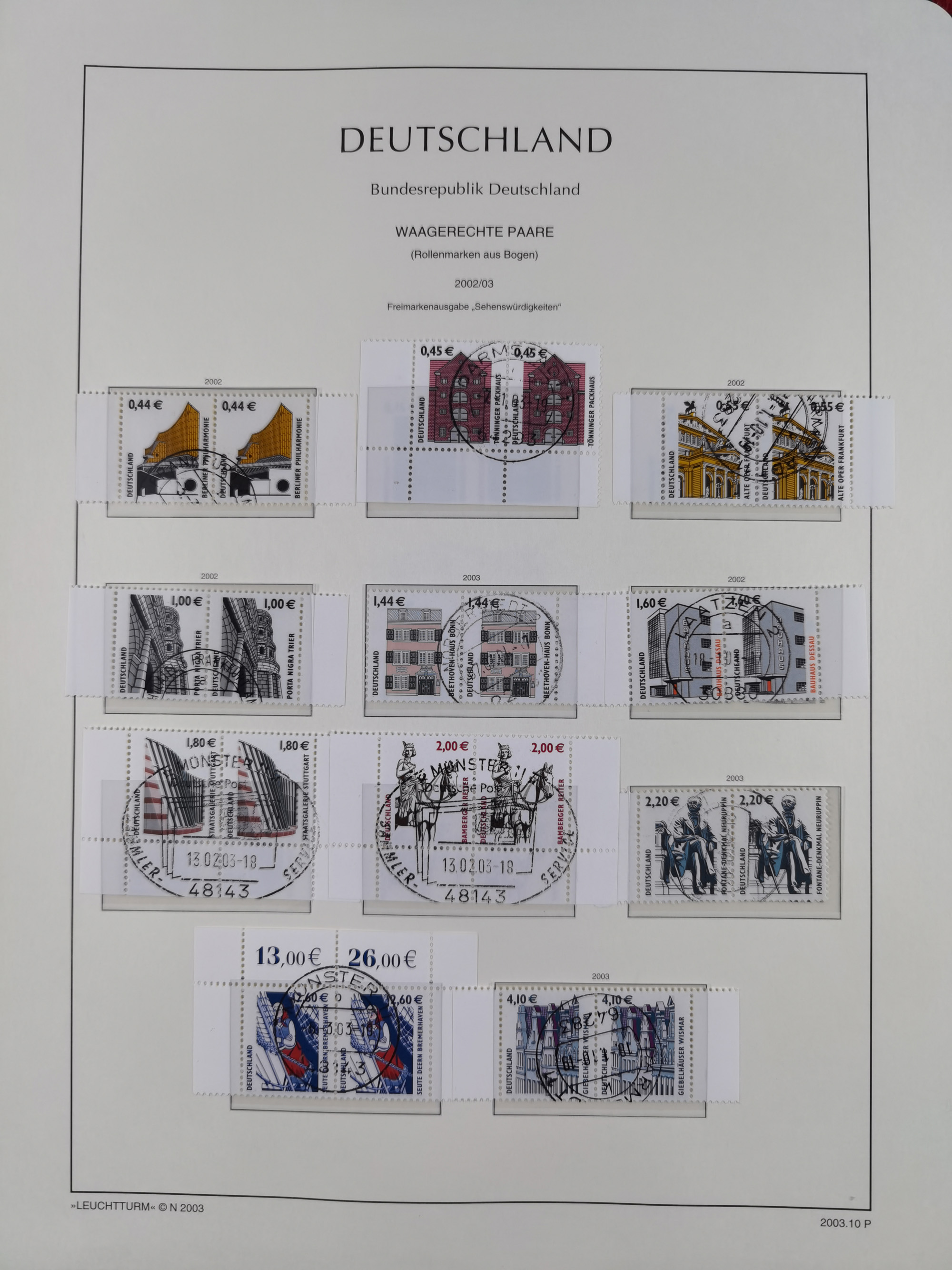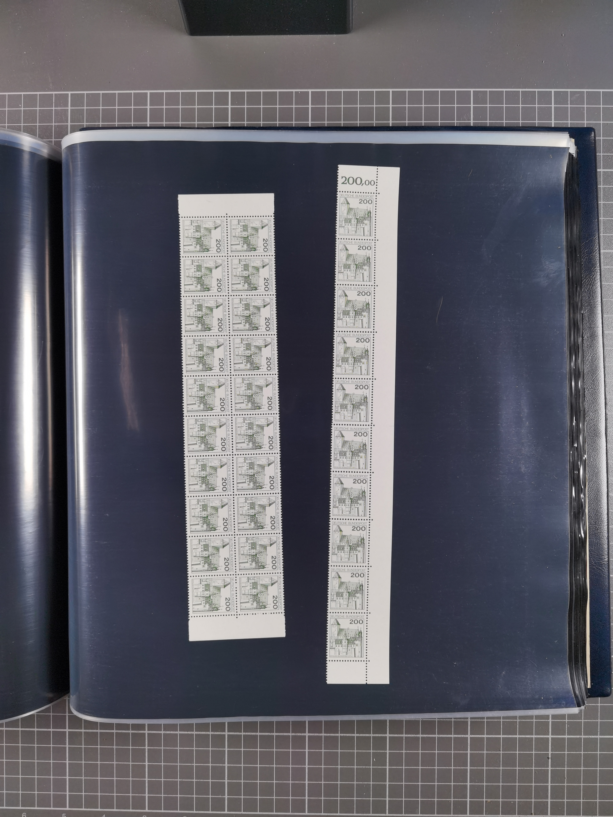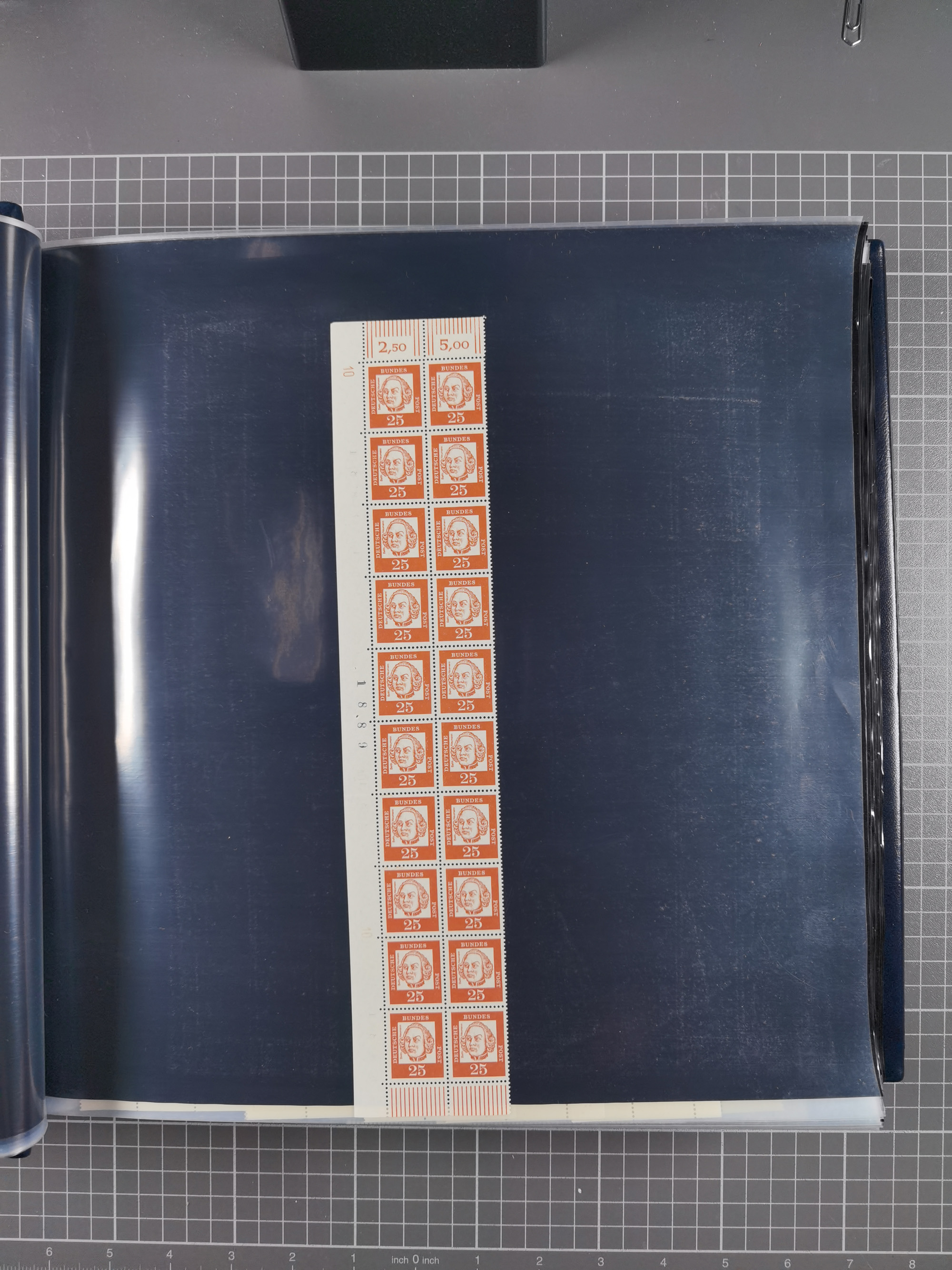 1949/2001, umfangreicher, am Anfang meist ungebrauchter und gestempelter Lagerbestand in 11 dicken Alben. Dazu je ein Album mit meist modernen Rollenmarken inkl. Streifen und Zusammendrucken ab Heuss