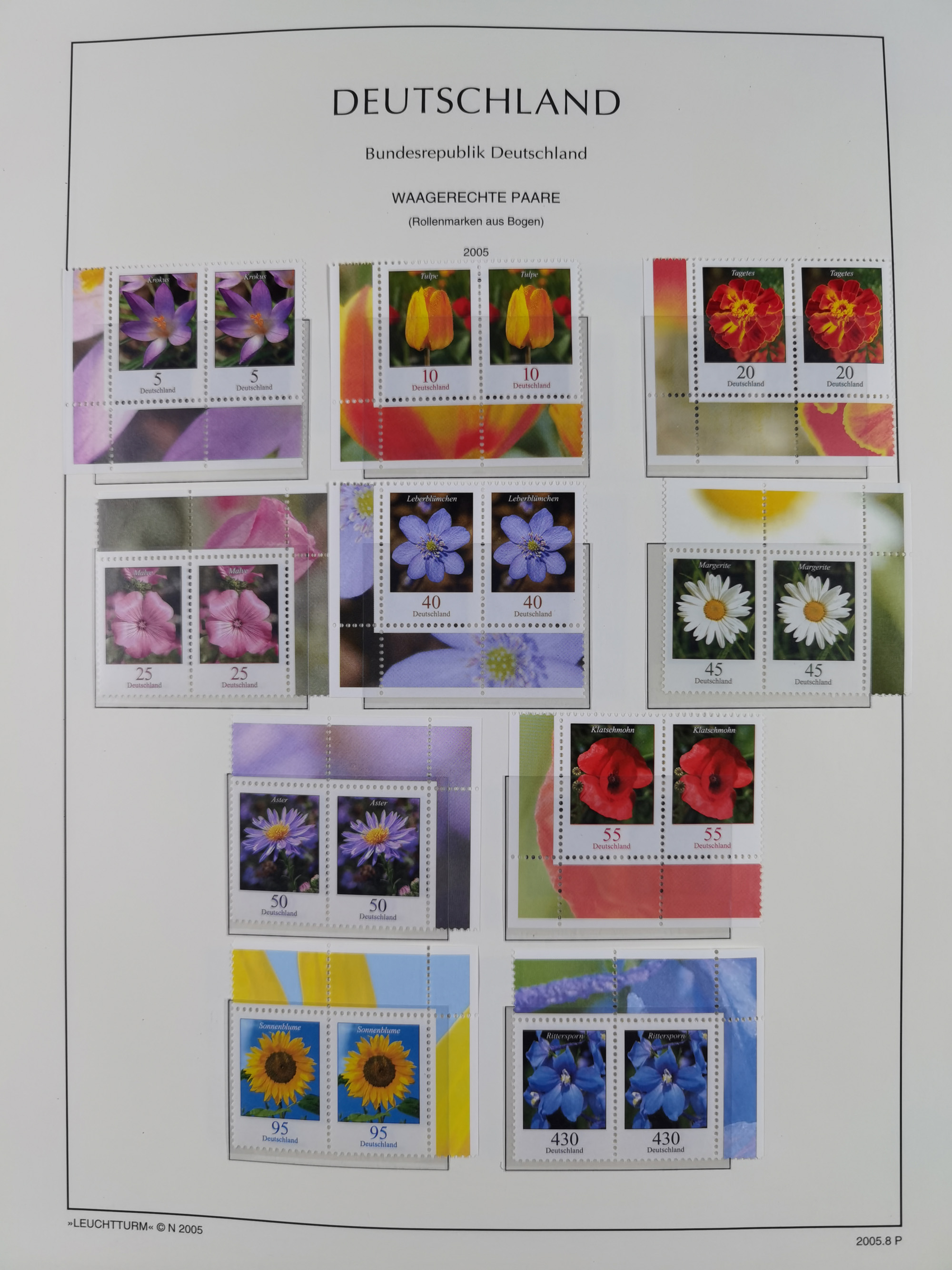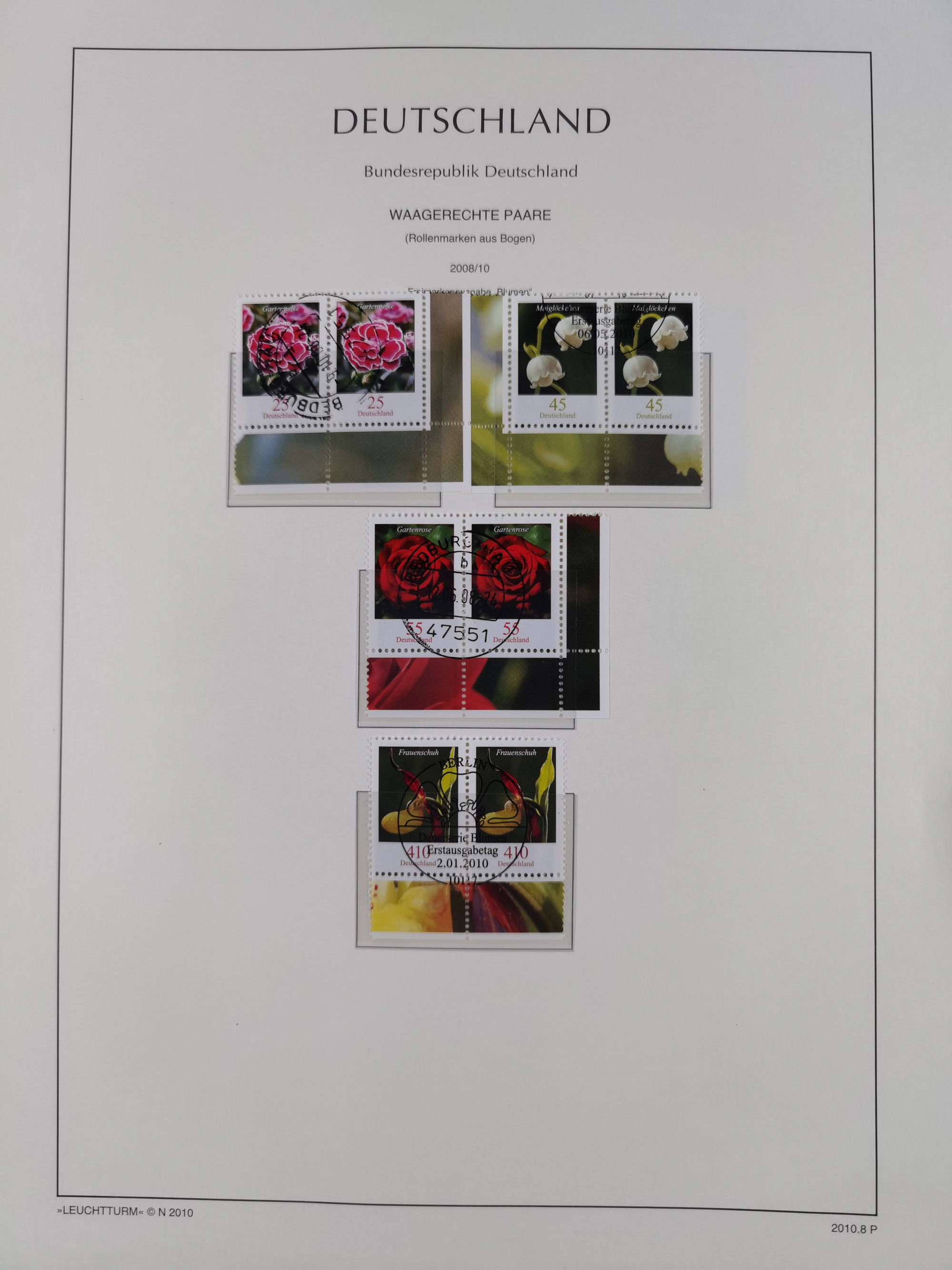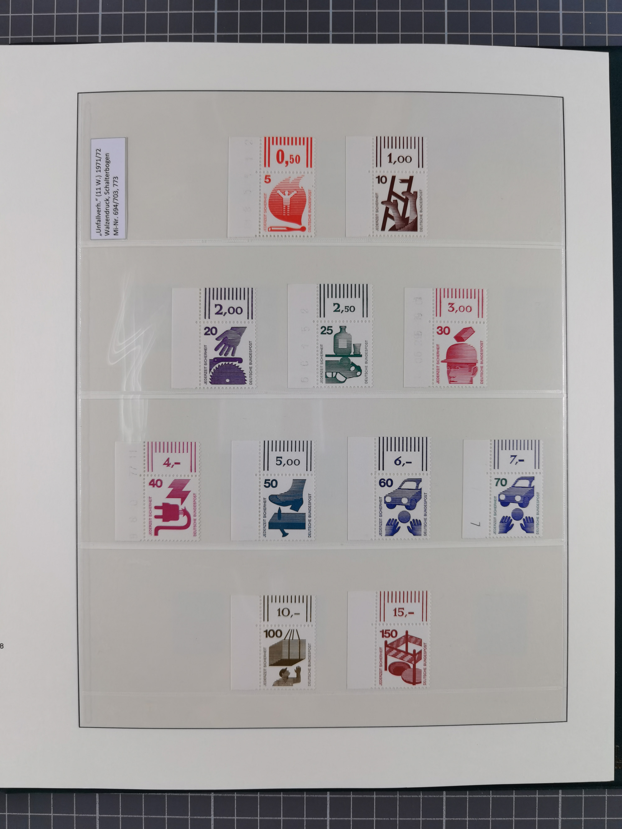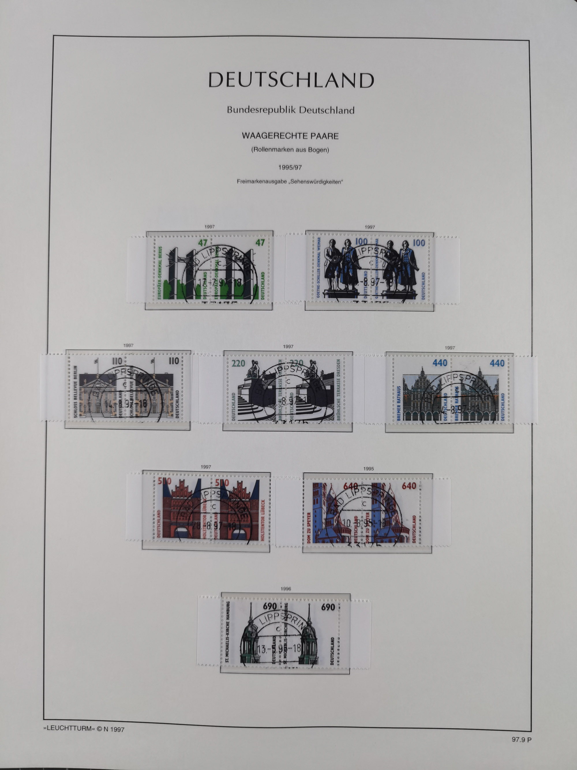 1949/2001, umfangreicher, am Anfang meist ungebrauchter und gestempelter Lagerbestand in 11 dicken Alben. Dazu je ein Album mit meist modernen Rollenmarken inkl. Streifen und Zusammendrucken ab Heuss