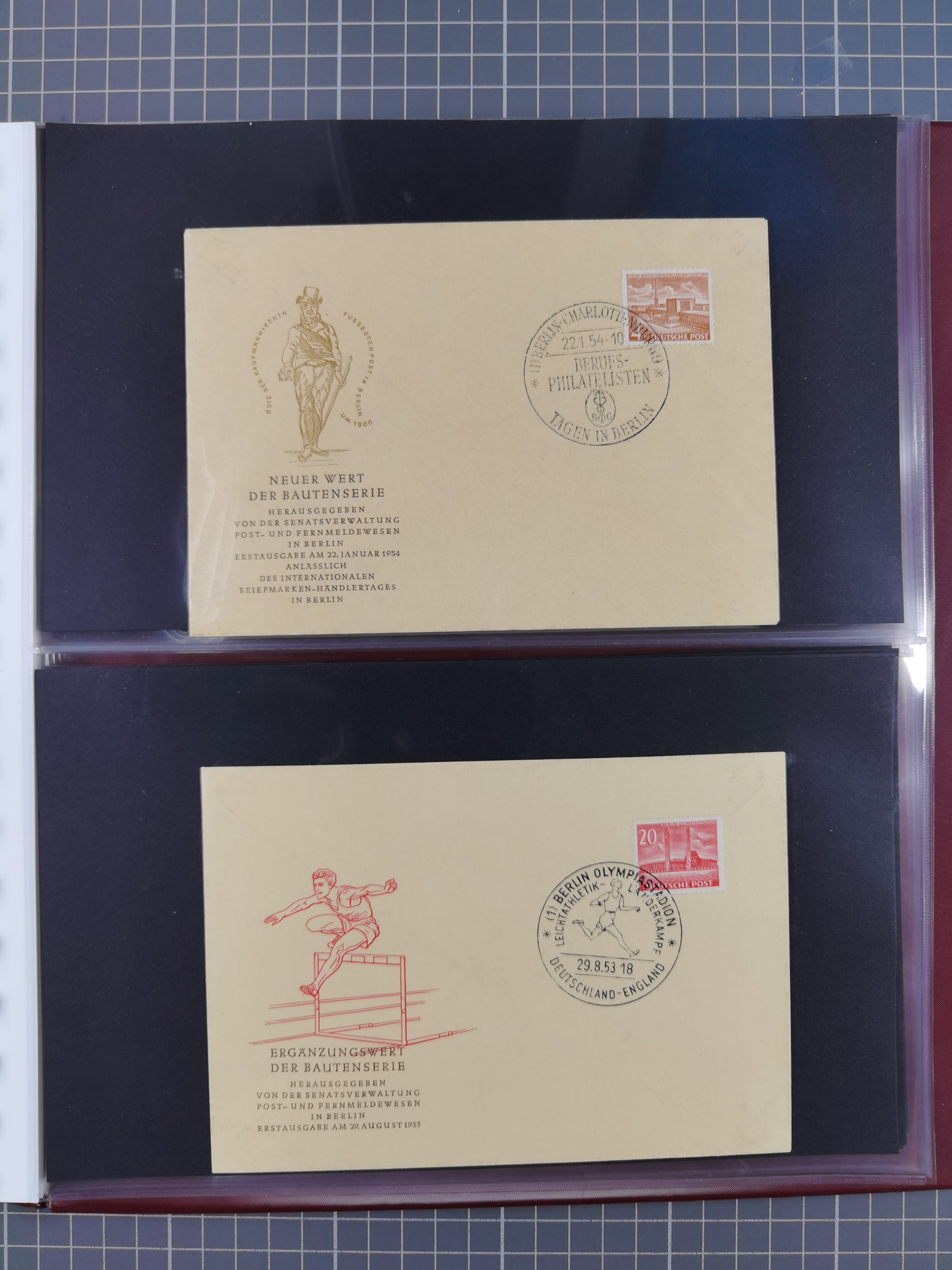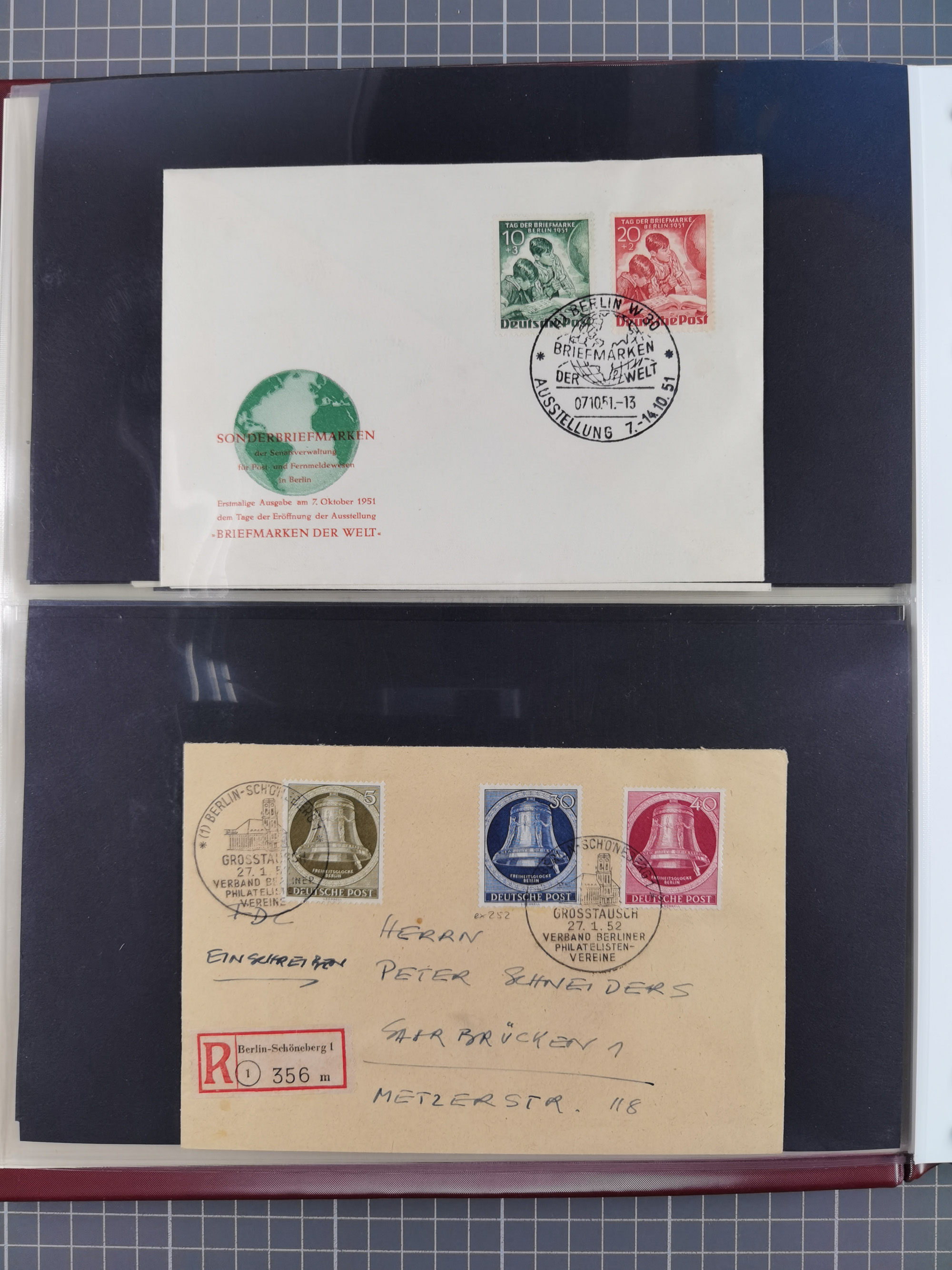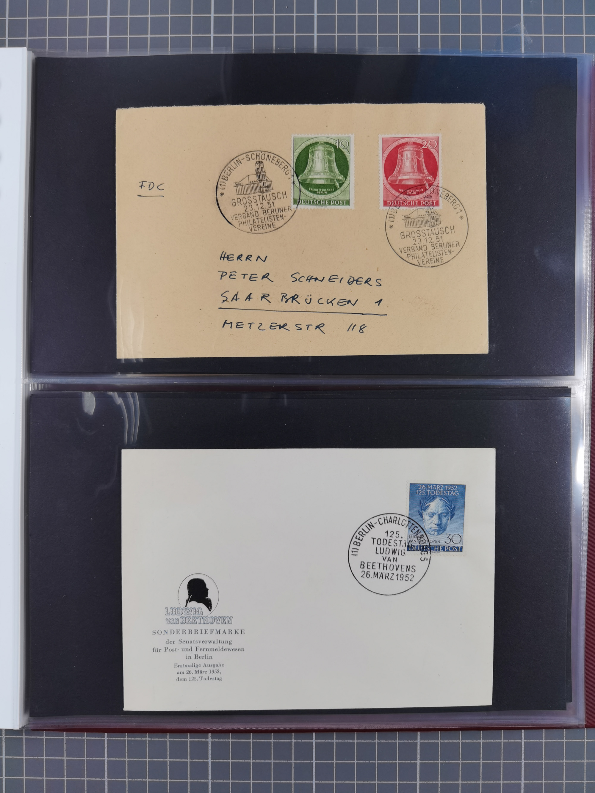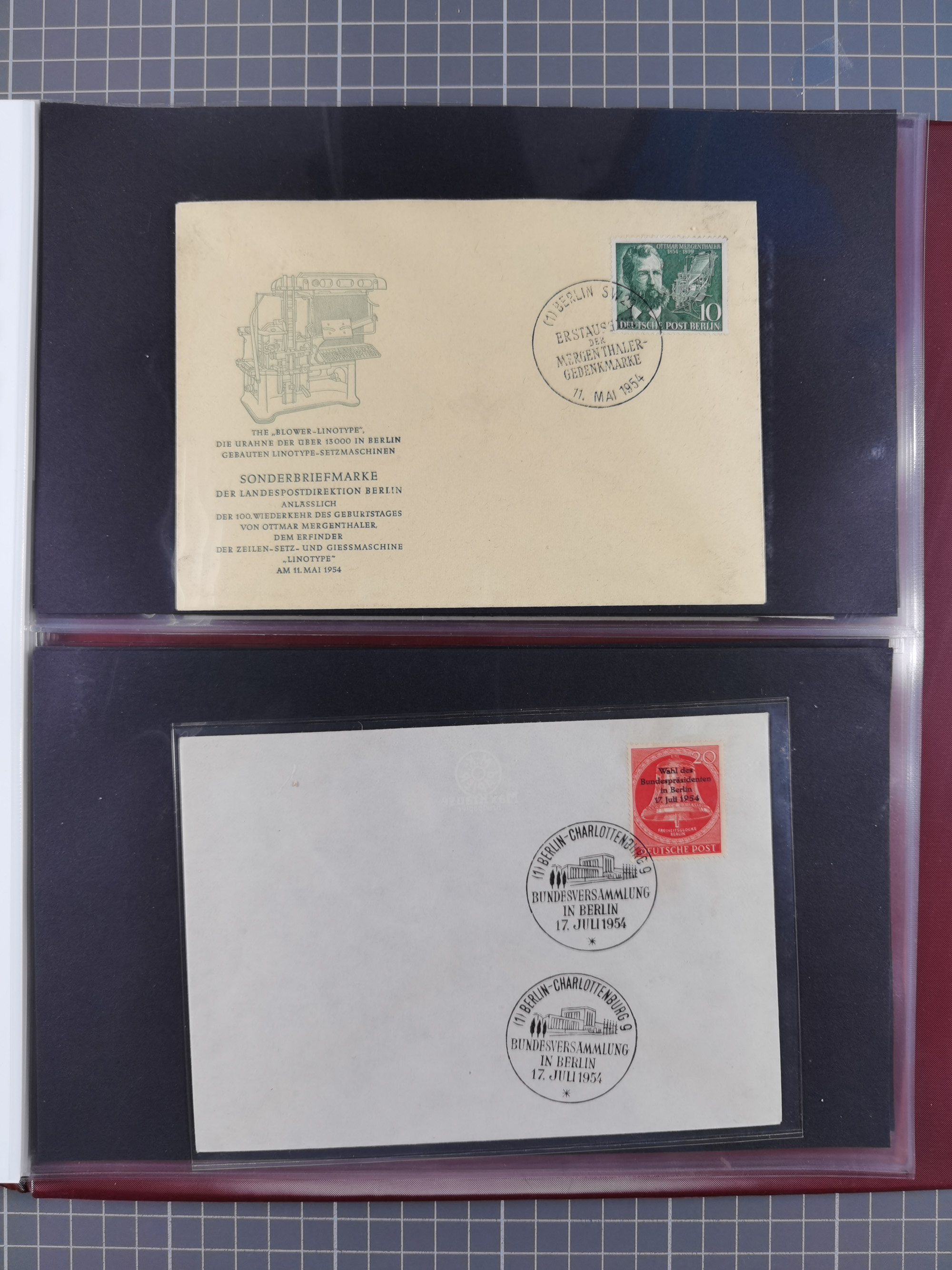 1949/79 (ca.), interessante Sammlung FDC und ETB, dabei U.a. amtliche ETB Berlin sowie FDC Bund Mi. 116, 117-20, 121-22, 143-46 und 147 sowie Berlin 61-63, 82-86 und 123