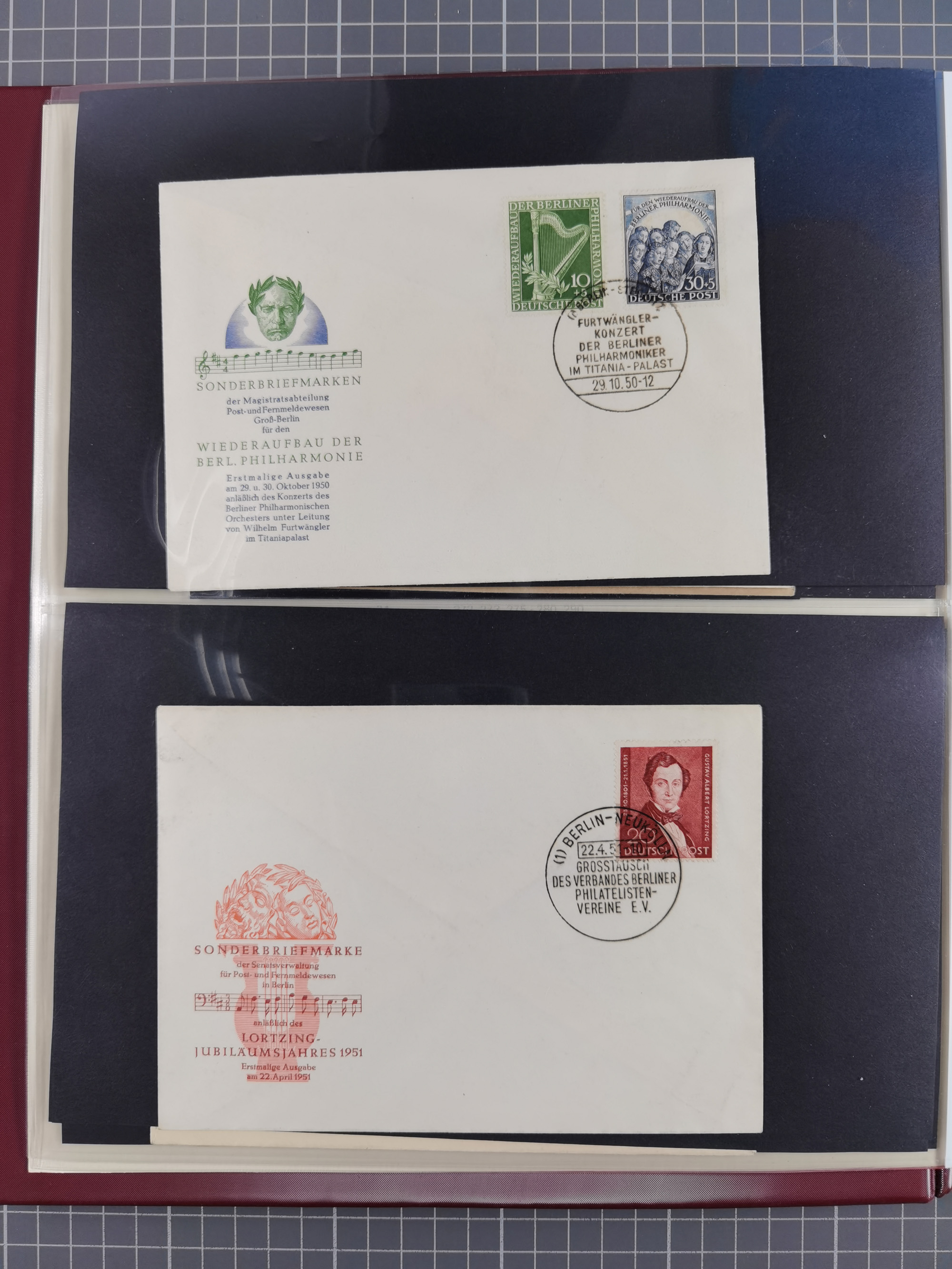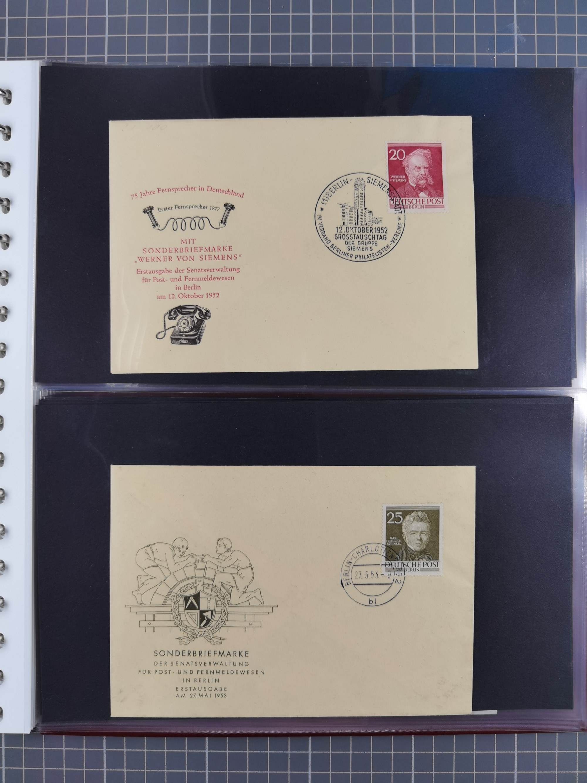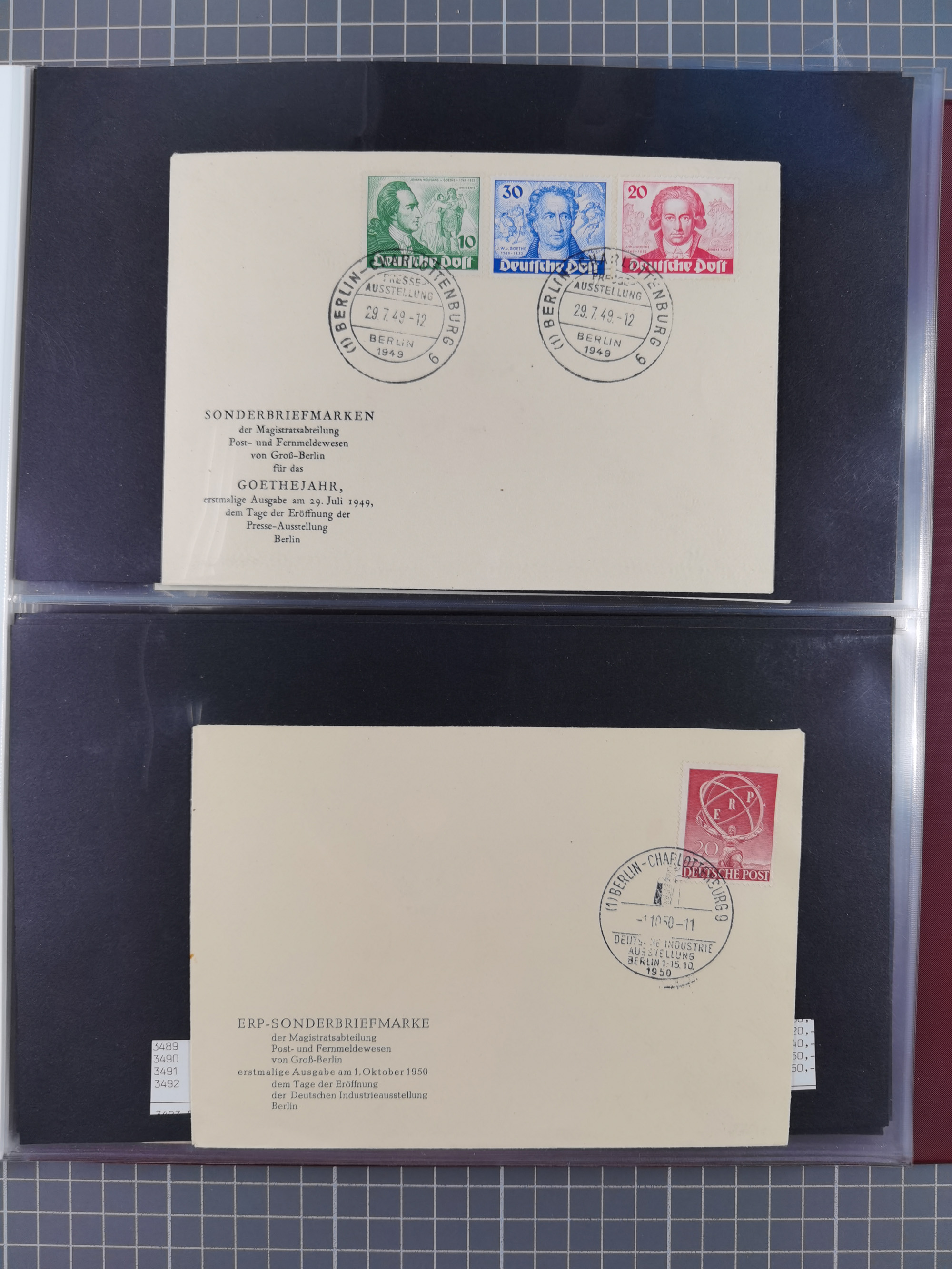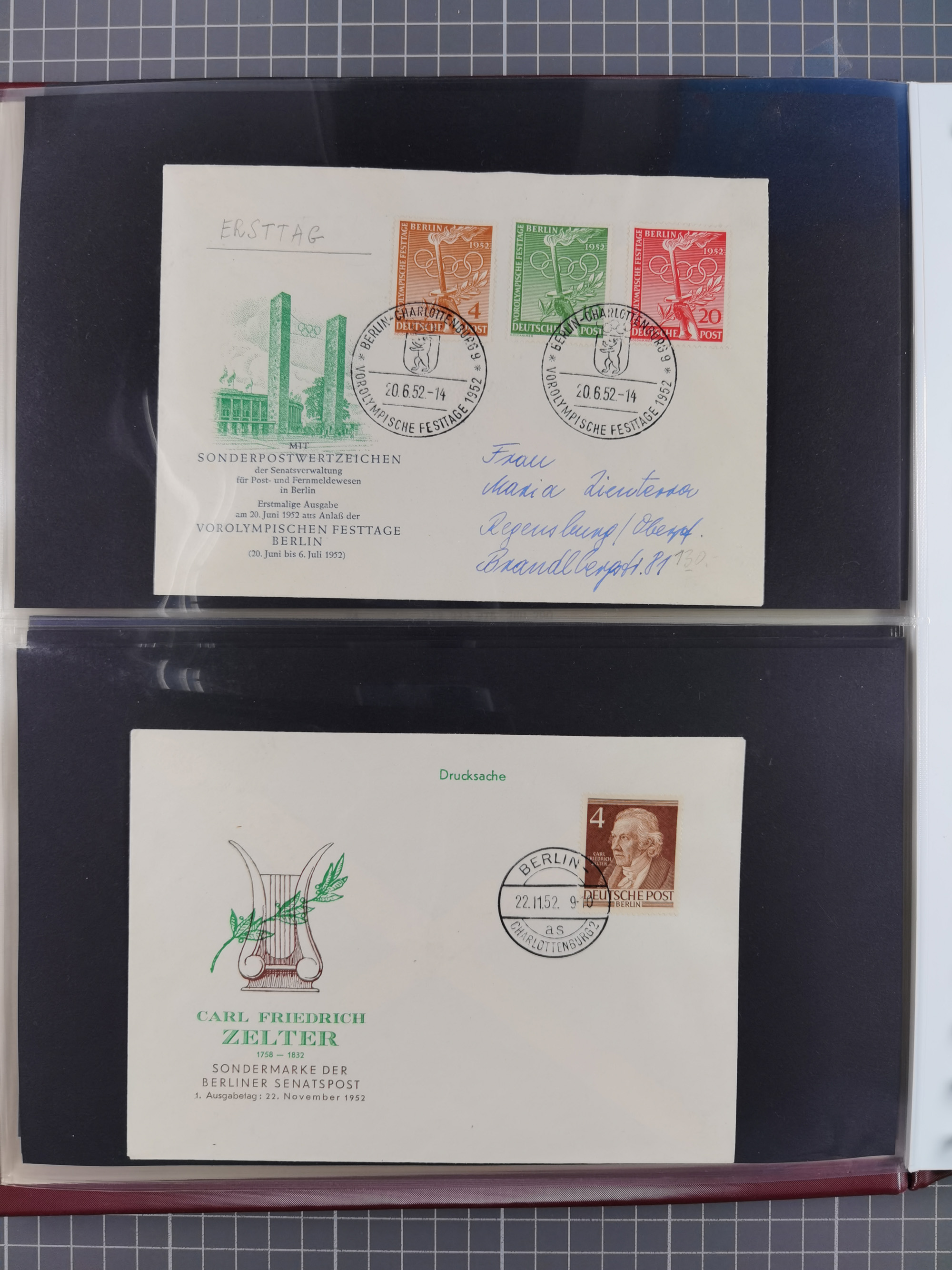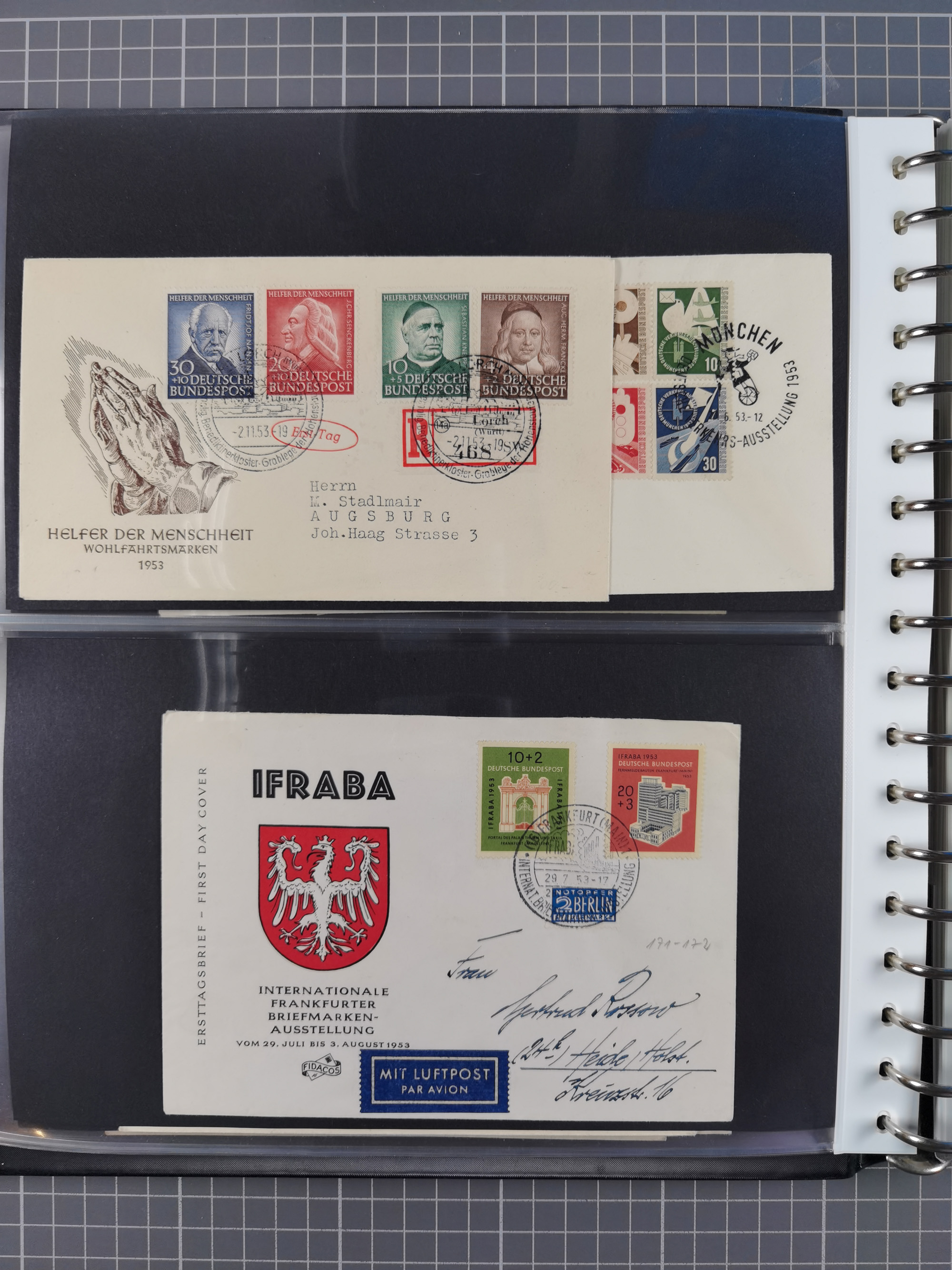 1949/79 (ca.), interessante Sammlung FDC und ETB, dabei U.a. amtliche ETB Berlin sowie FDC Bund Mi. 116, 117-20, 121-22, 143-46 und 147 sowie Berlin 61-63, 82-86 und 123