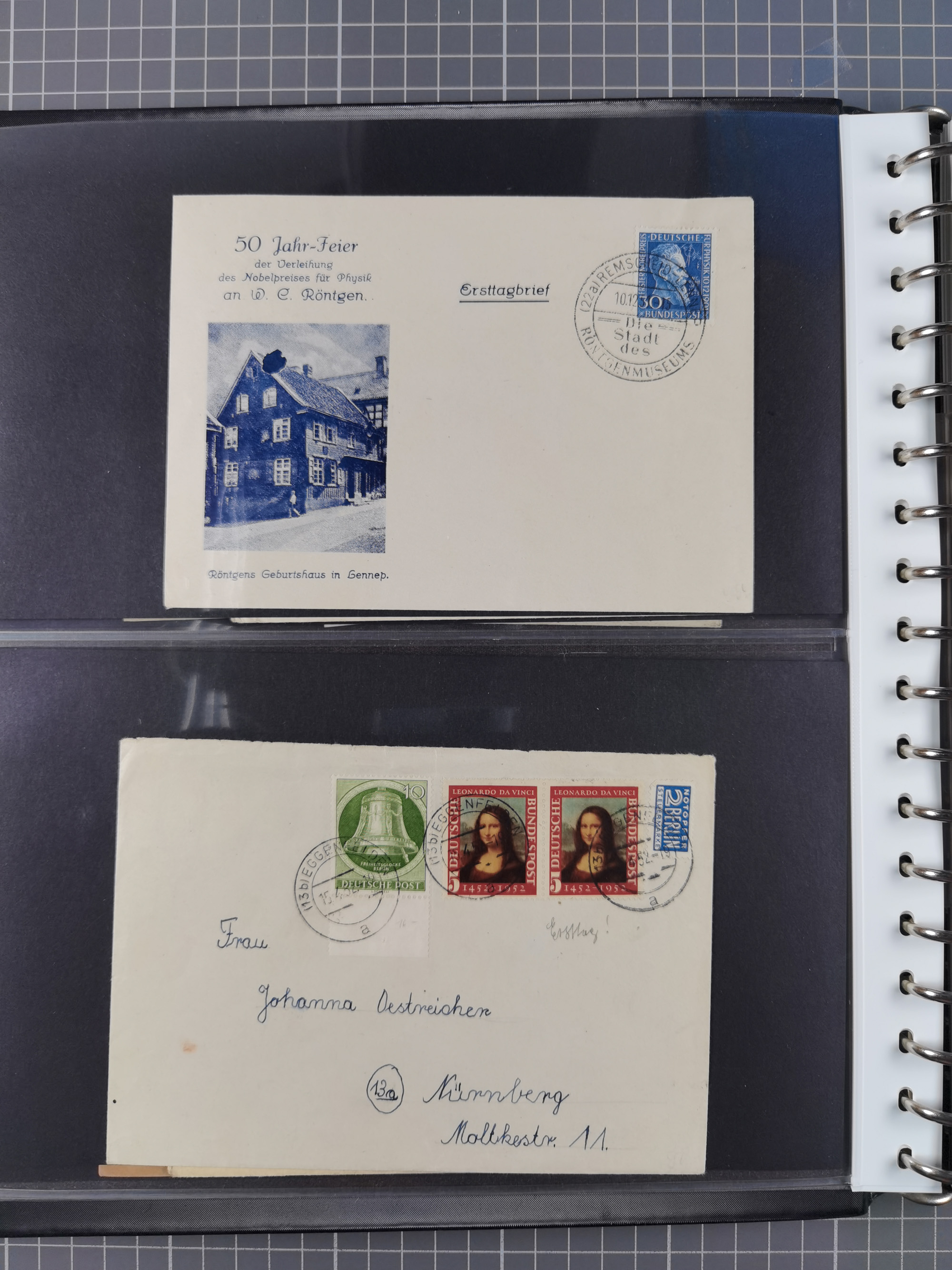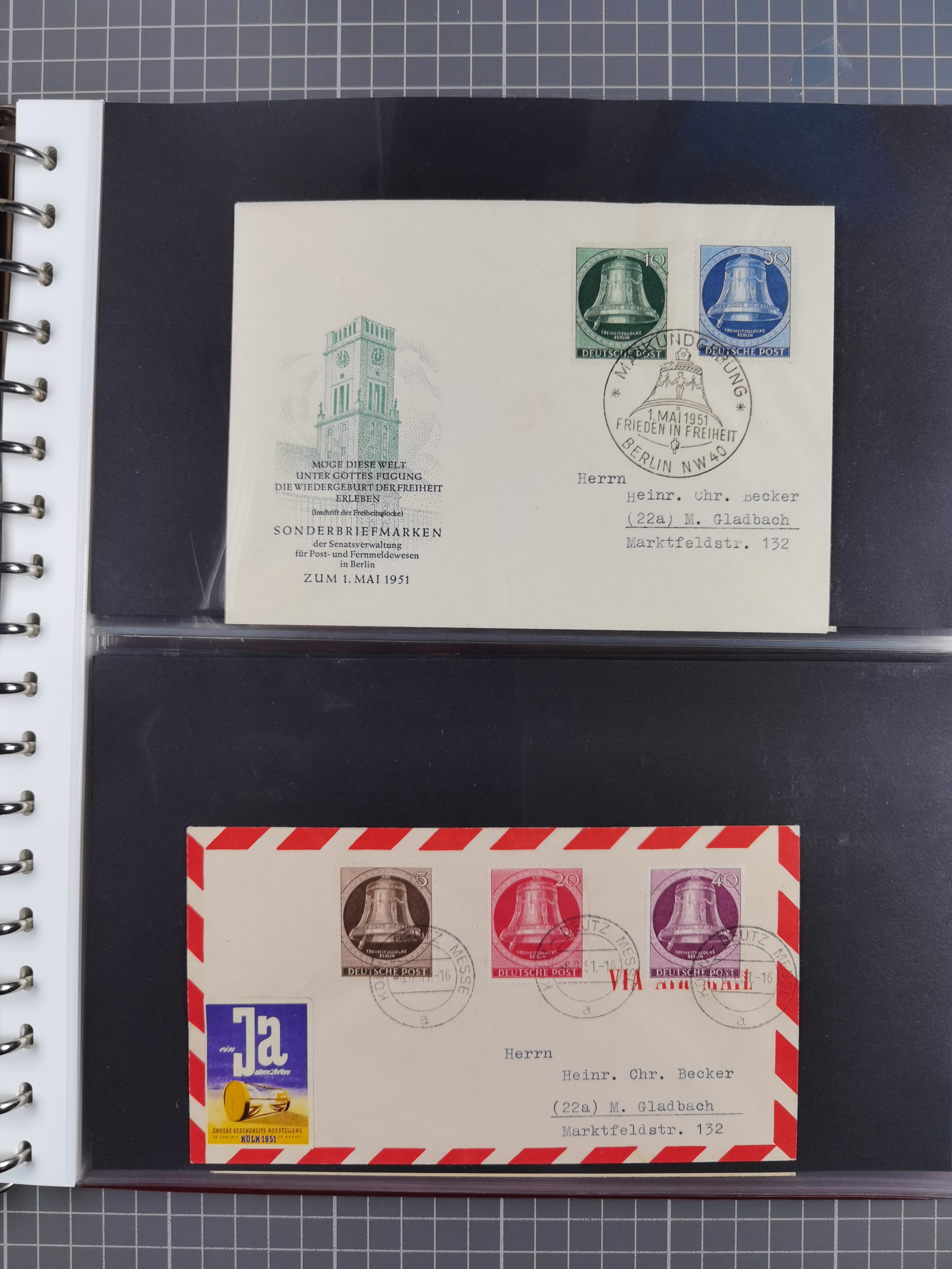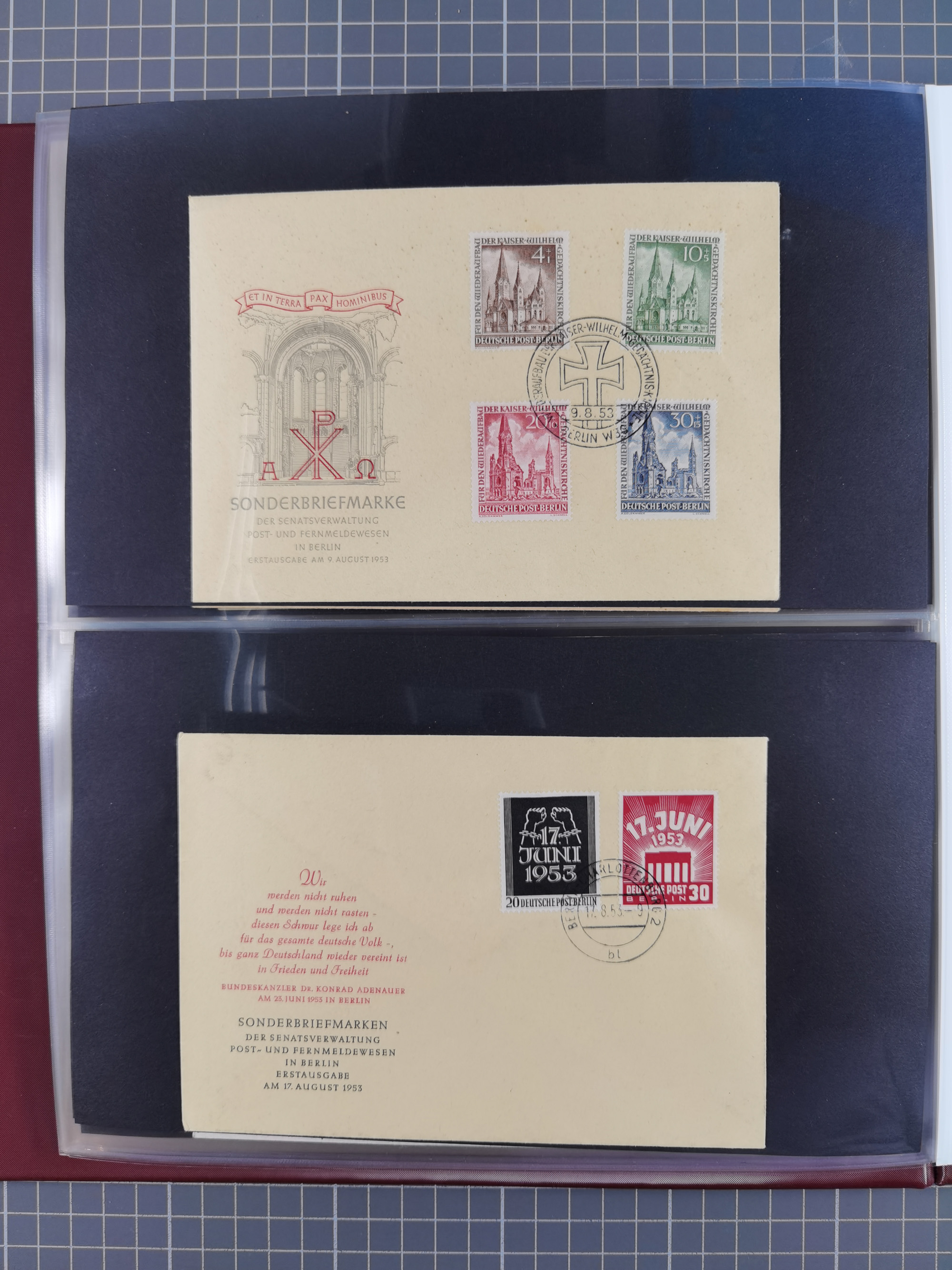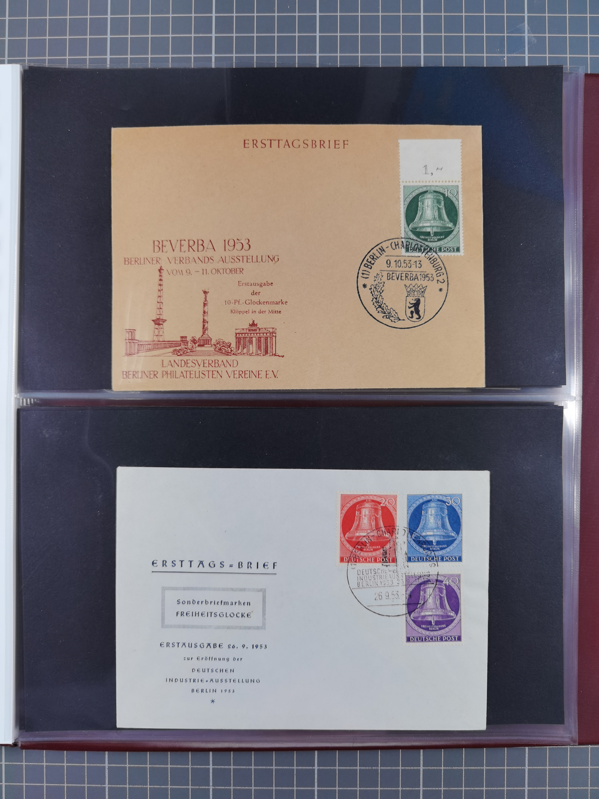 1949/79 (ca.), interessante Sammlung FDC und ETB, dabei U.a. amtliche ETB Berlin sowie FDC Bund Mi. 116, 117-20, 121-22, 143-46 und 147 sowie Berlin 61-63, 82-86 und 123