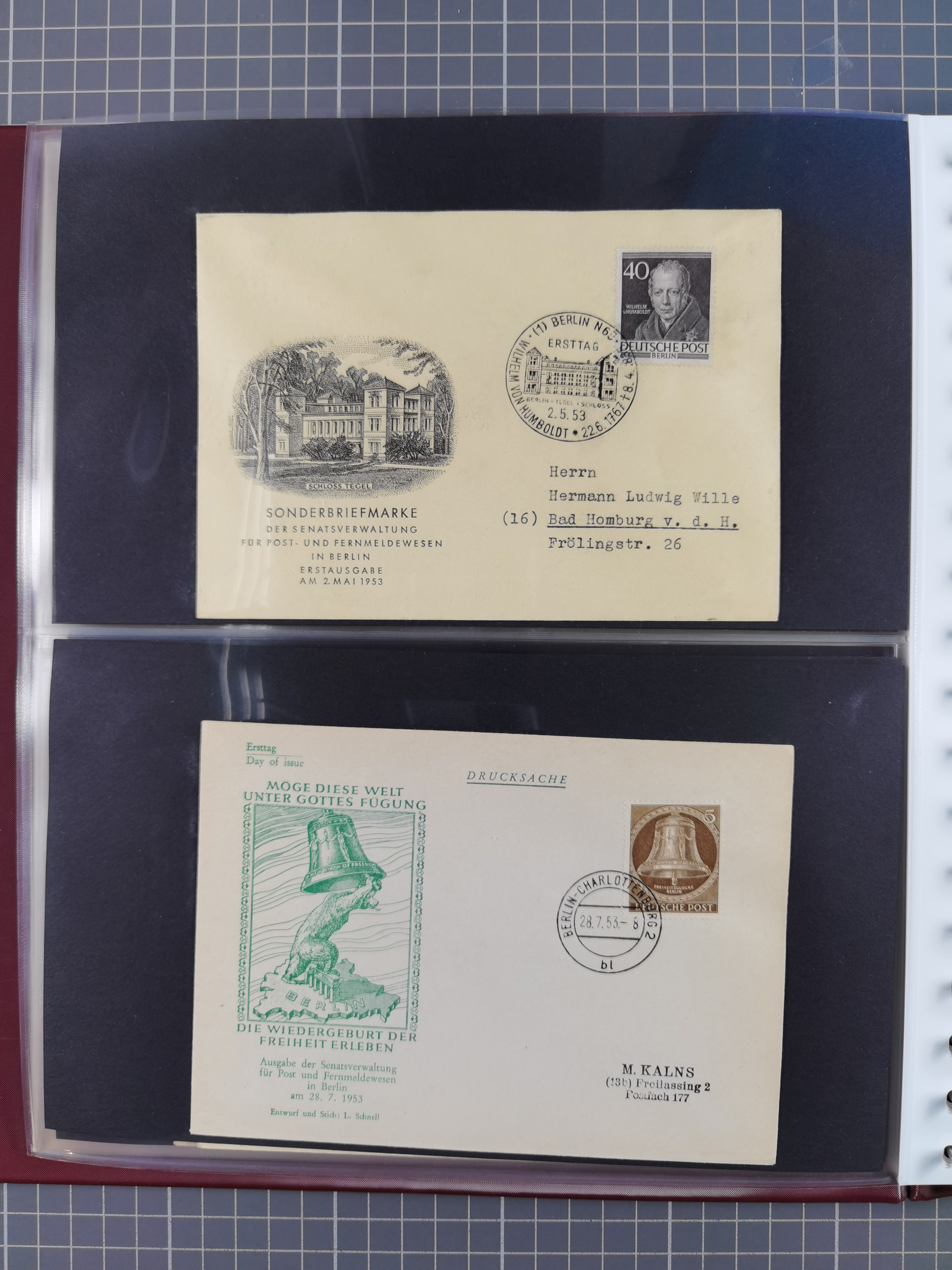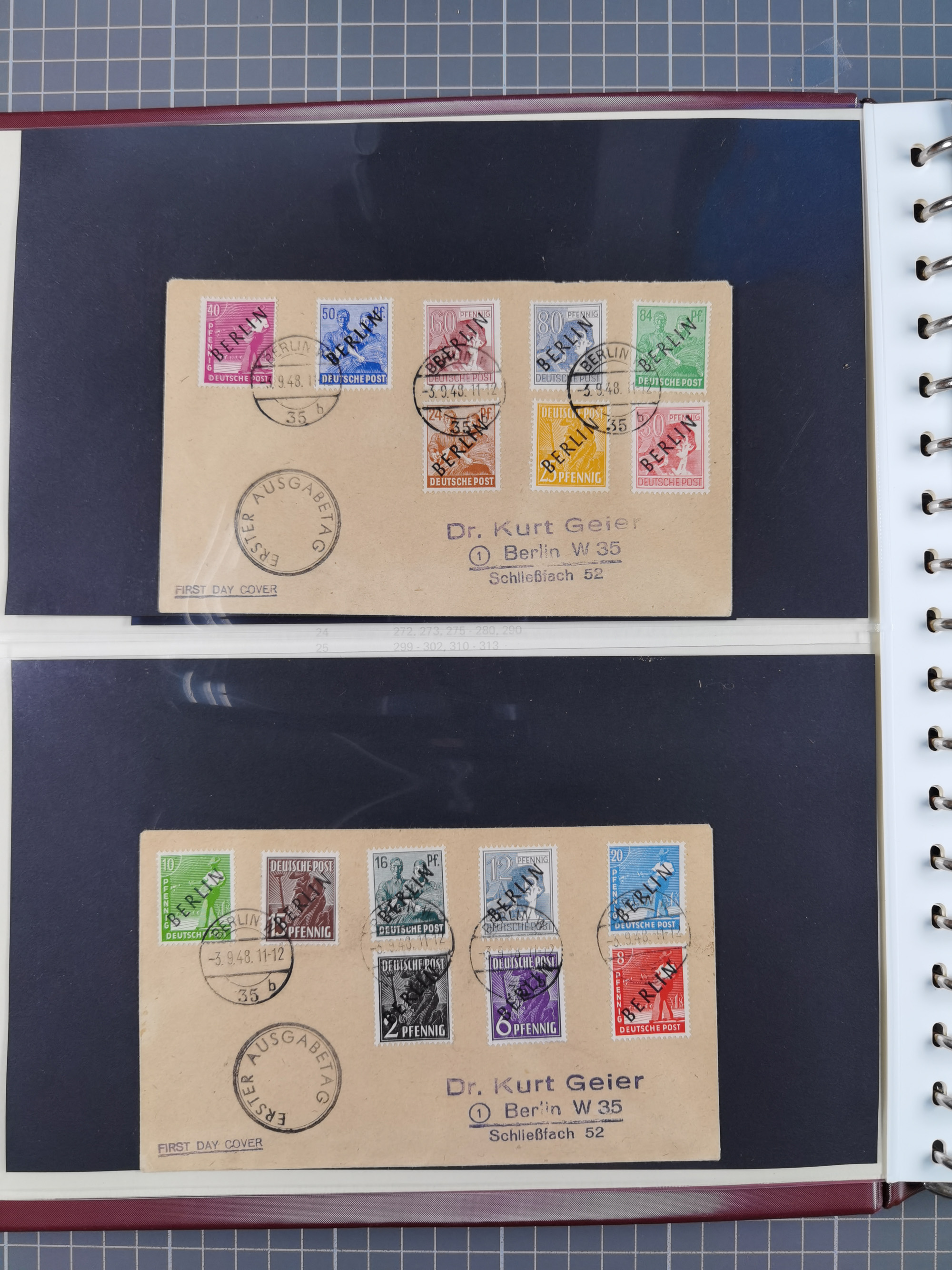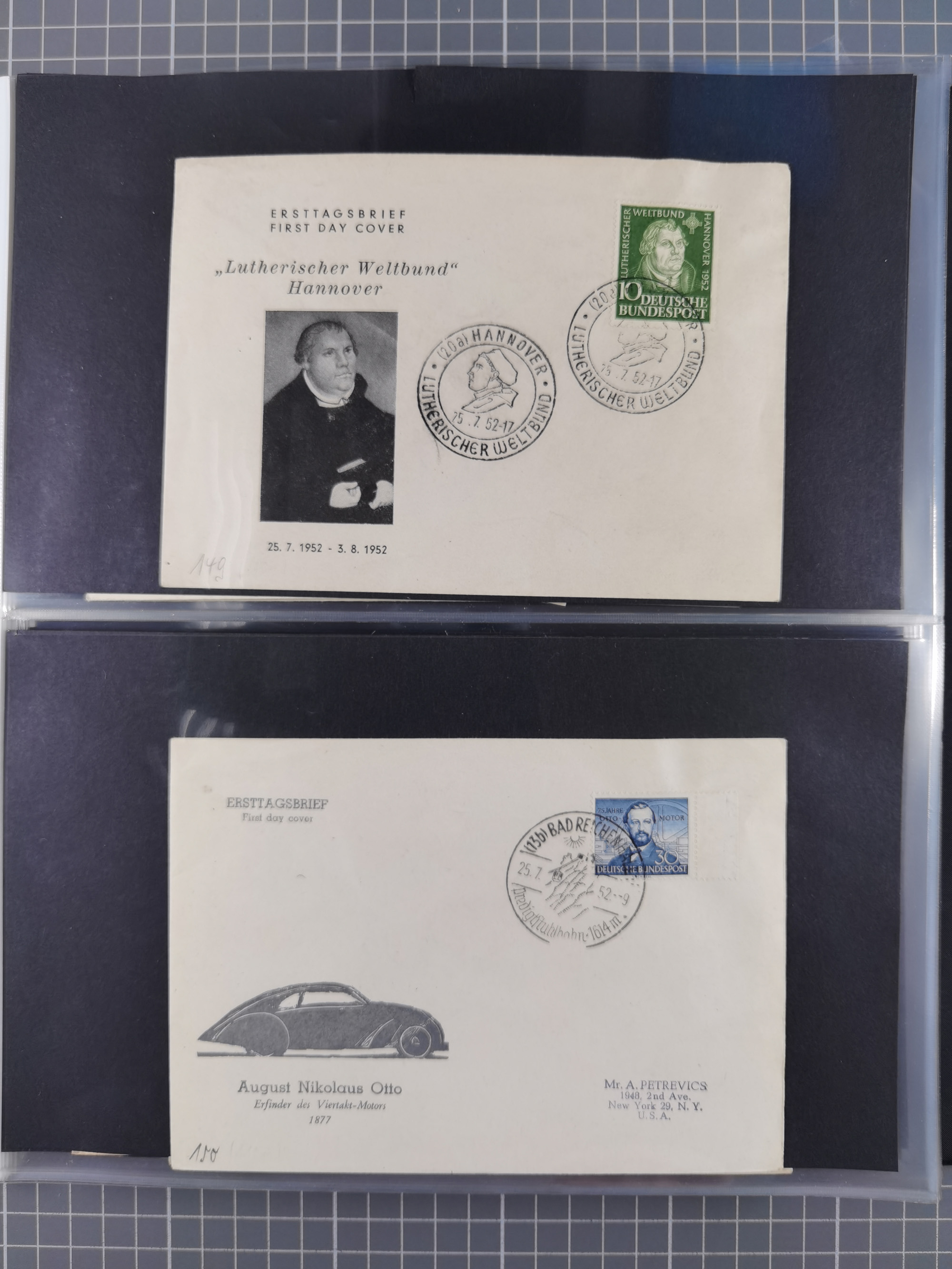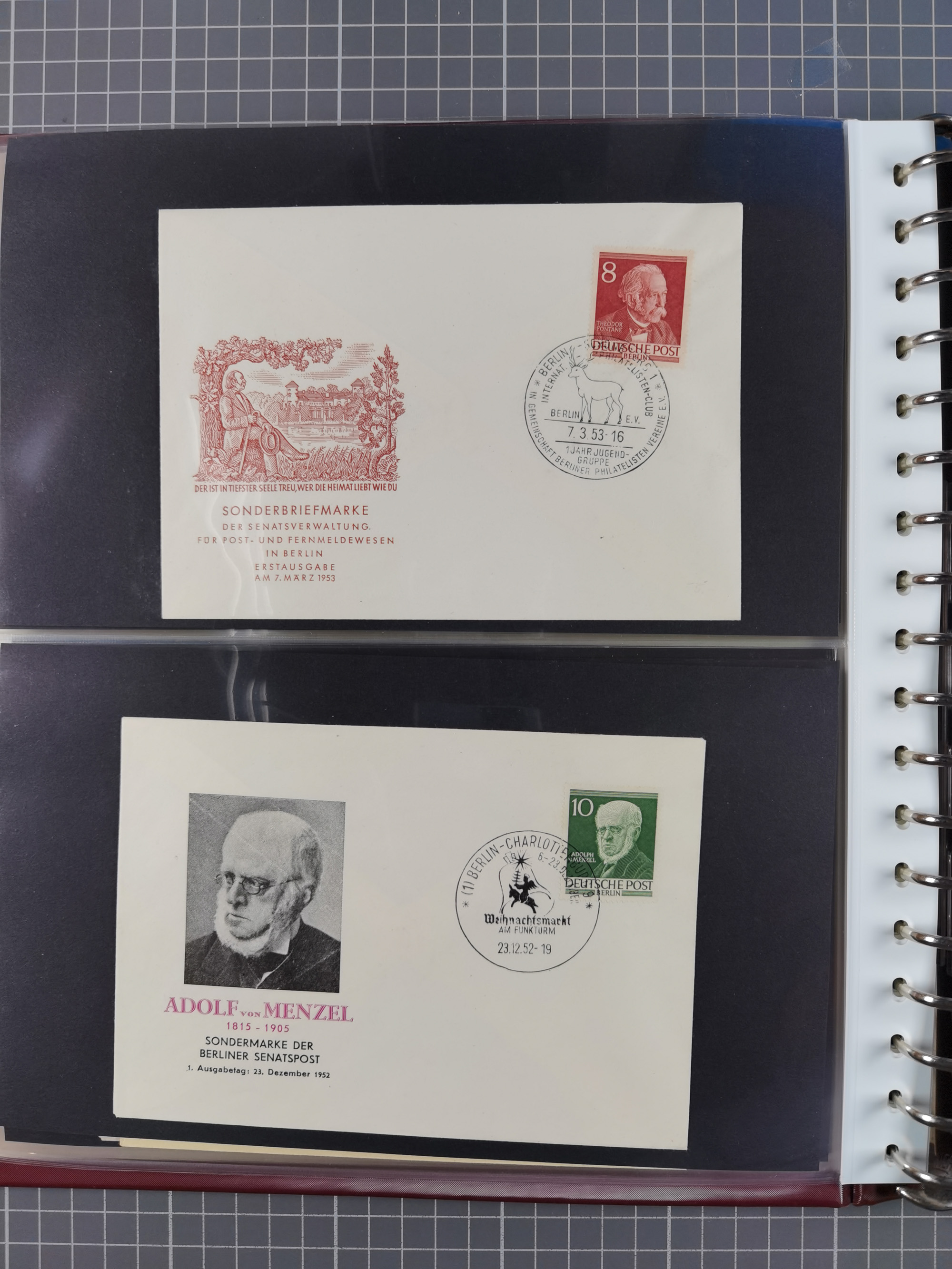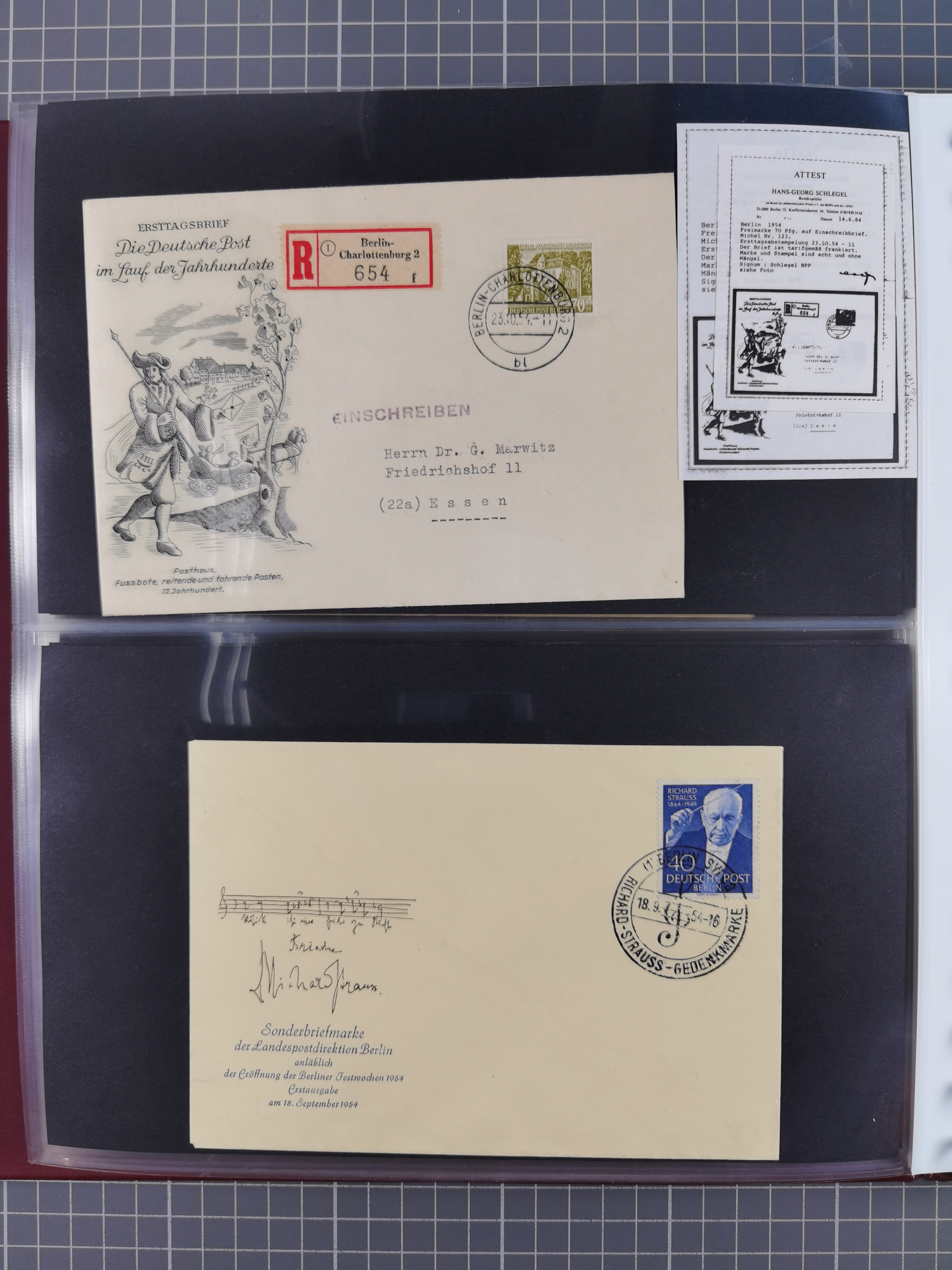 1949/79 (ca.), interessante Sammlung FDC und ETB, dabei U.a. amtliche ETB Berlin sowie FDC Bund Mi. 116, 117-20, 121-22, 143-46 und 147 sowie Berlin 61-63, 82-86 und 123