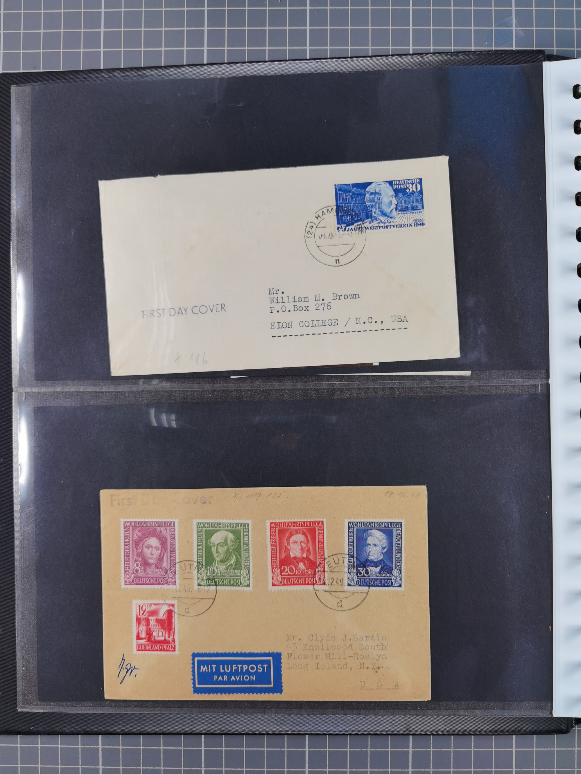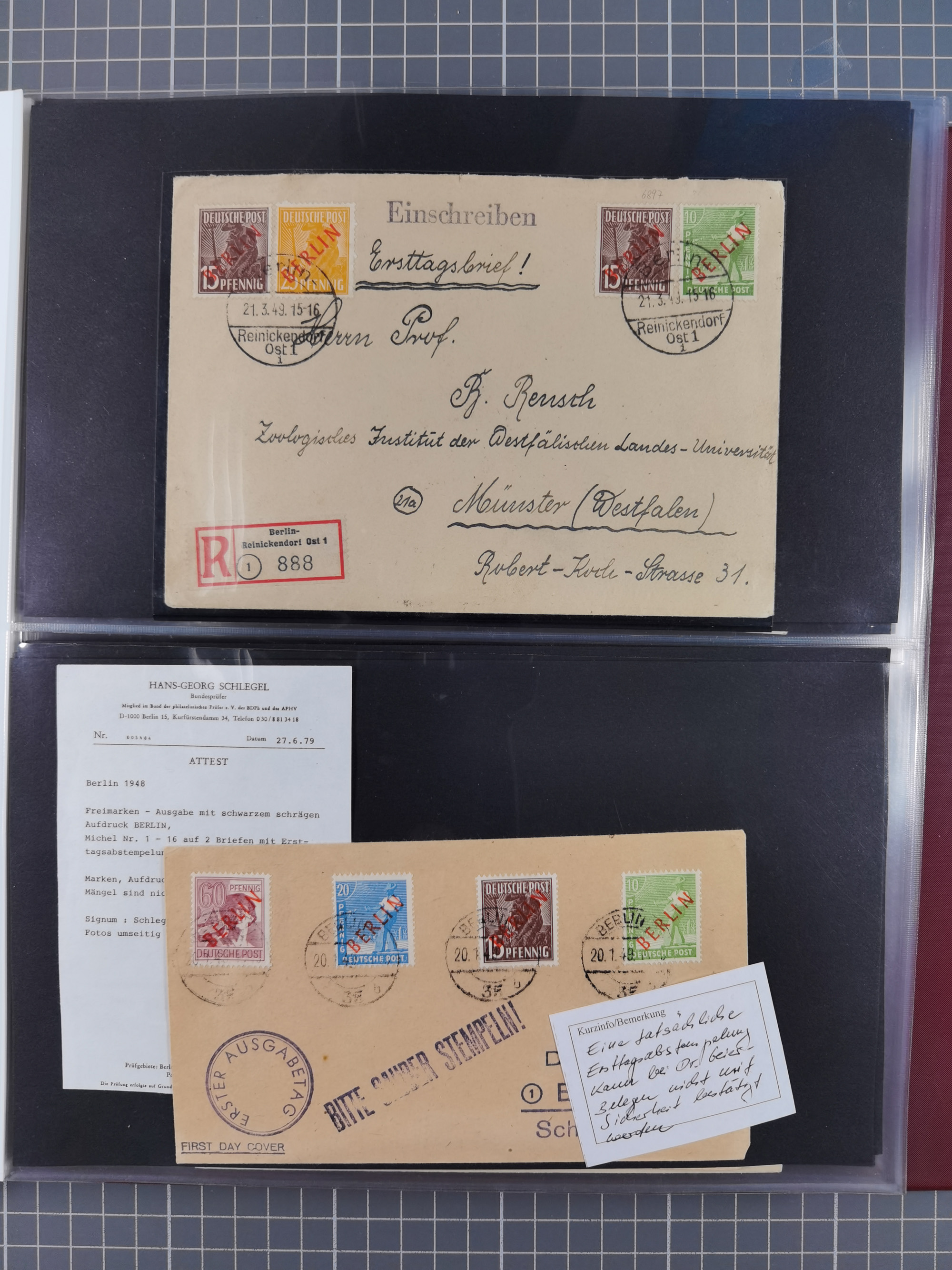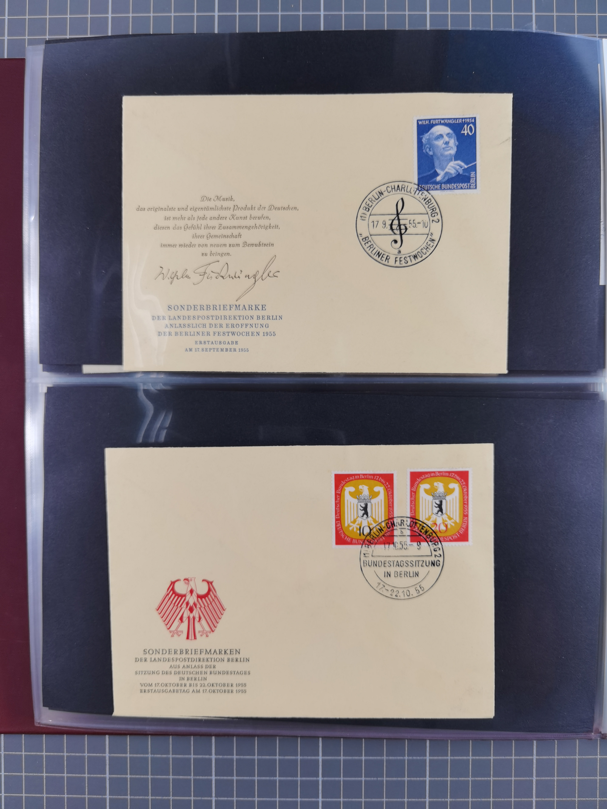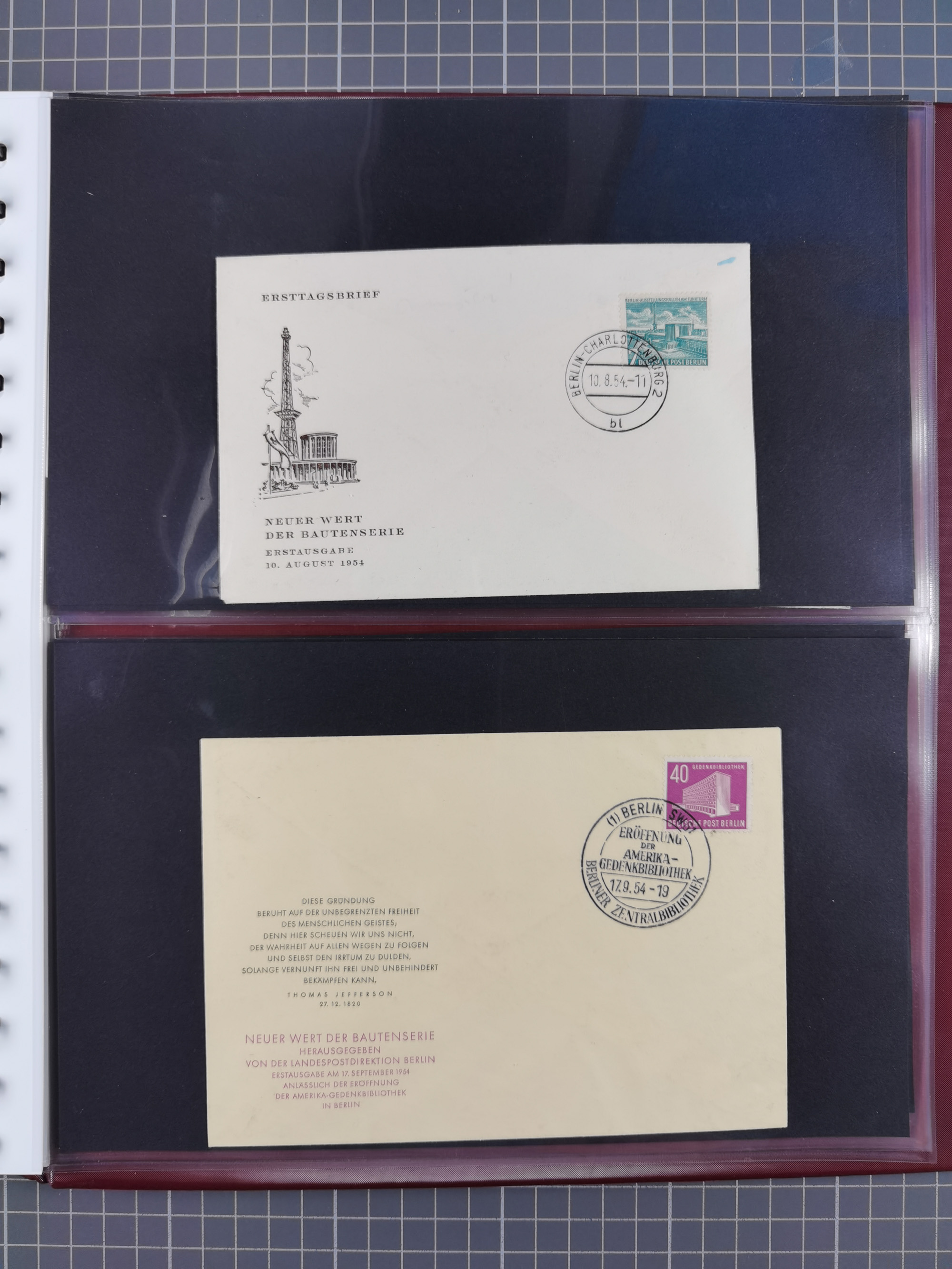 1949/79 (ca.), interessante Sammlung FDC und ETB, dabei U.a. amtliche ETB Berlin sowie FDC Bund Mi. 116, 117-20, 121-22, 143-46 und 147 sowie Berlin 61-63, 82-86 und 123