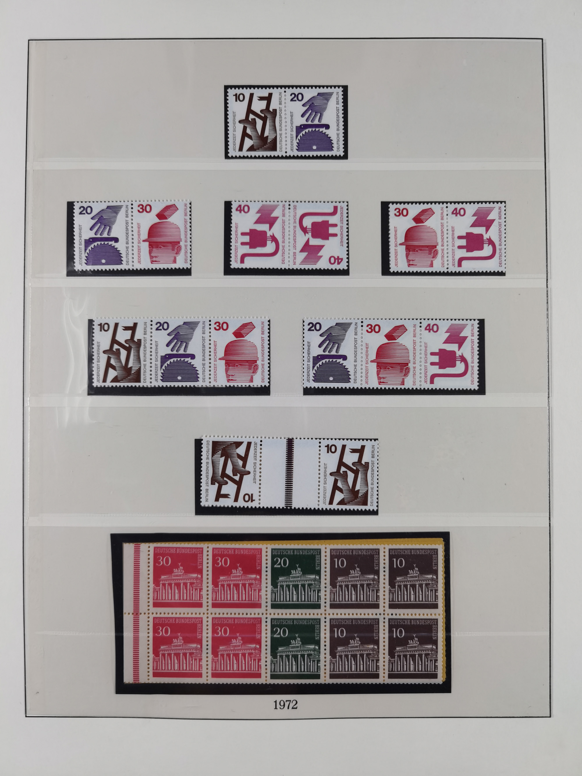 1960/2000, umfangreiche Sammlung der postfrischen Markenheftchen von Bund/Berlin in 19 SAFE-Ringbindern, sehr spezialisiert und mehrfach bis vielfach gesammelt, viele Stücke BPP-geprüft, alles sauber beschriftet und in tadelloser Qualität, ohne die großen Spitzen, aber in der Breite unglaublich reichhaltig, Katalogwert ca. 46.000,00 Euro für Bundesrepublik und ca. 34.000,00 Euro für Berlin.