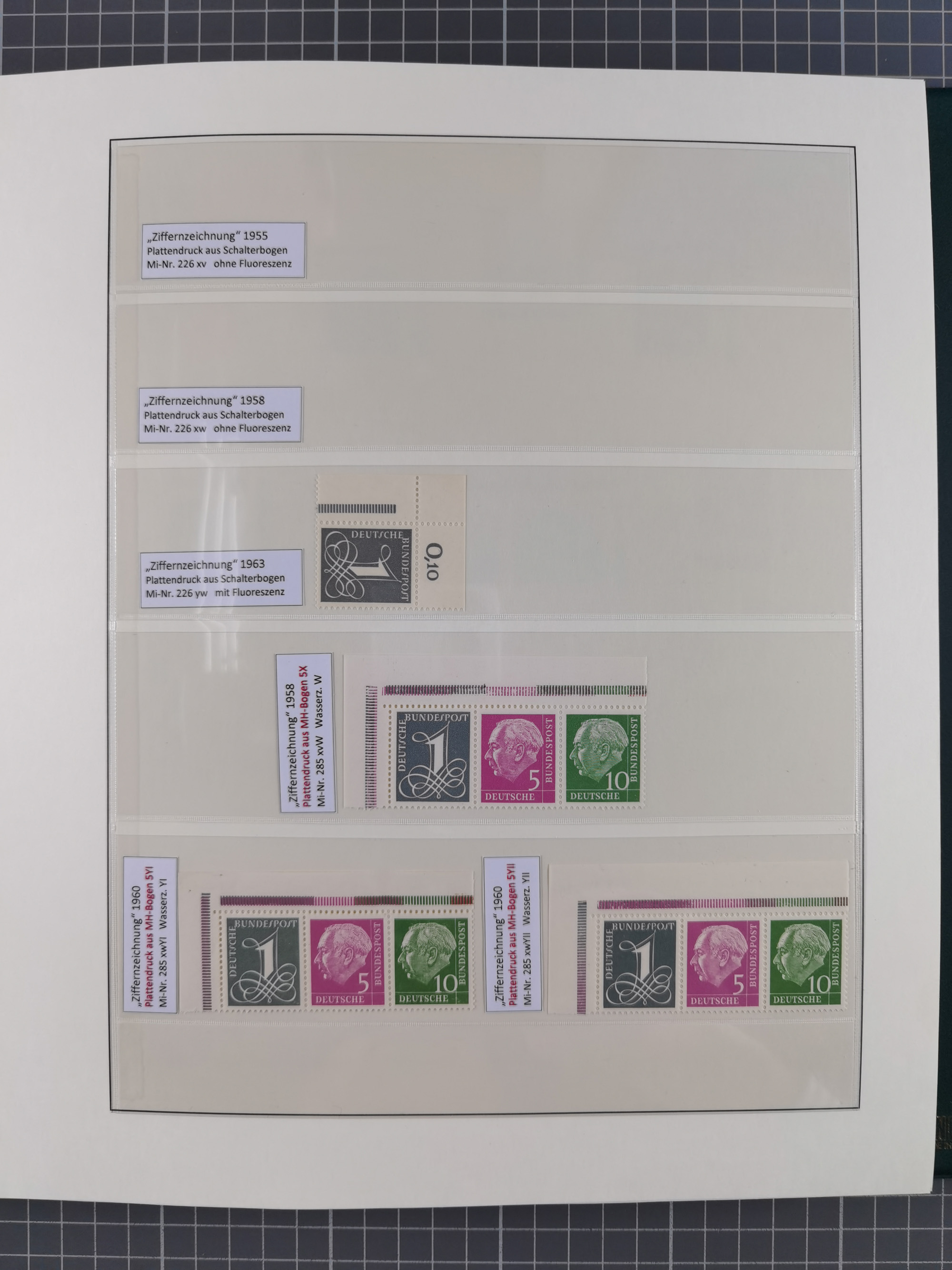 1949/2002, ungebrauchter, postfrischer und gestempelter Bestand Plattenfehler in 6 Alben sowie einer Bogenmappe, vorwiegend Plattenfehler, meist in Paaren mit genauer Bestimmung, meist gute Erhaltung
