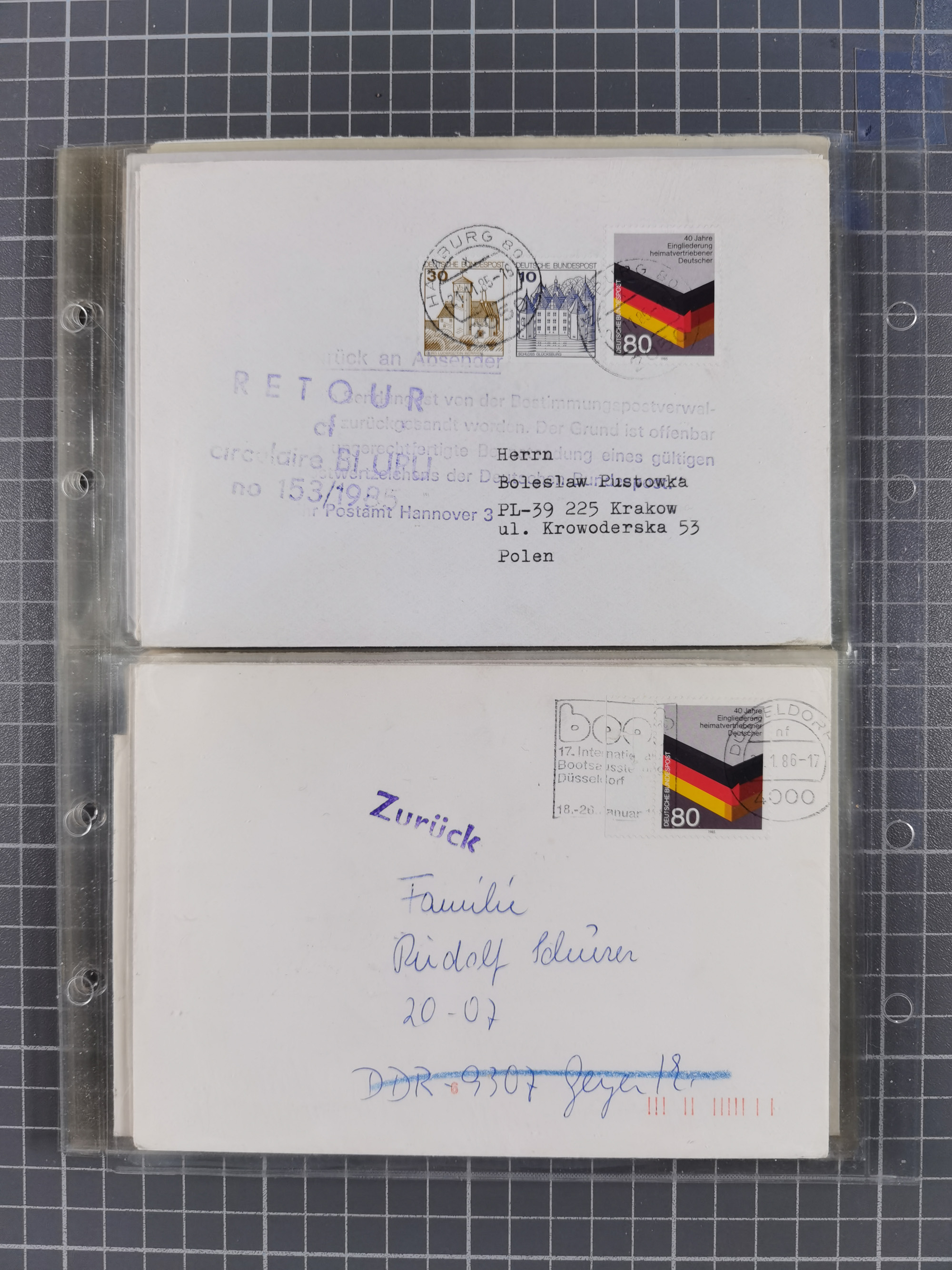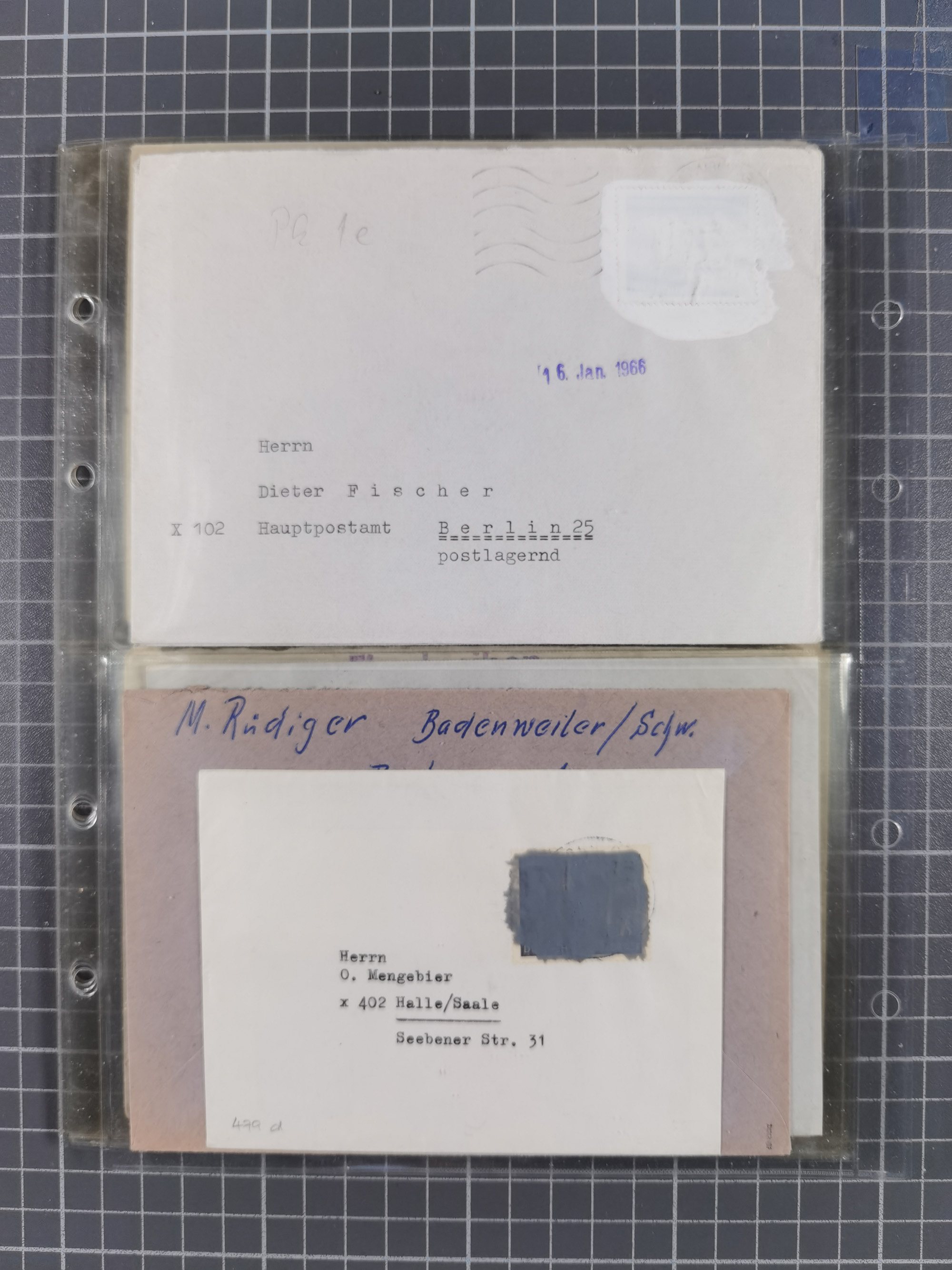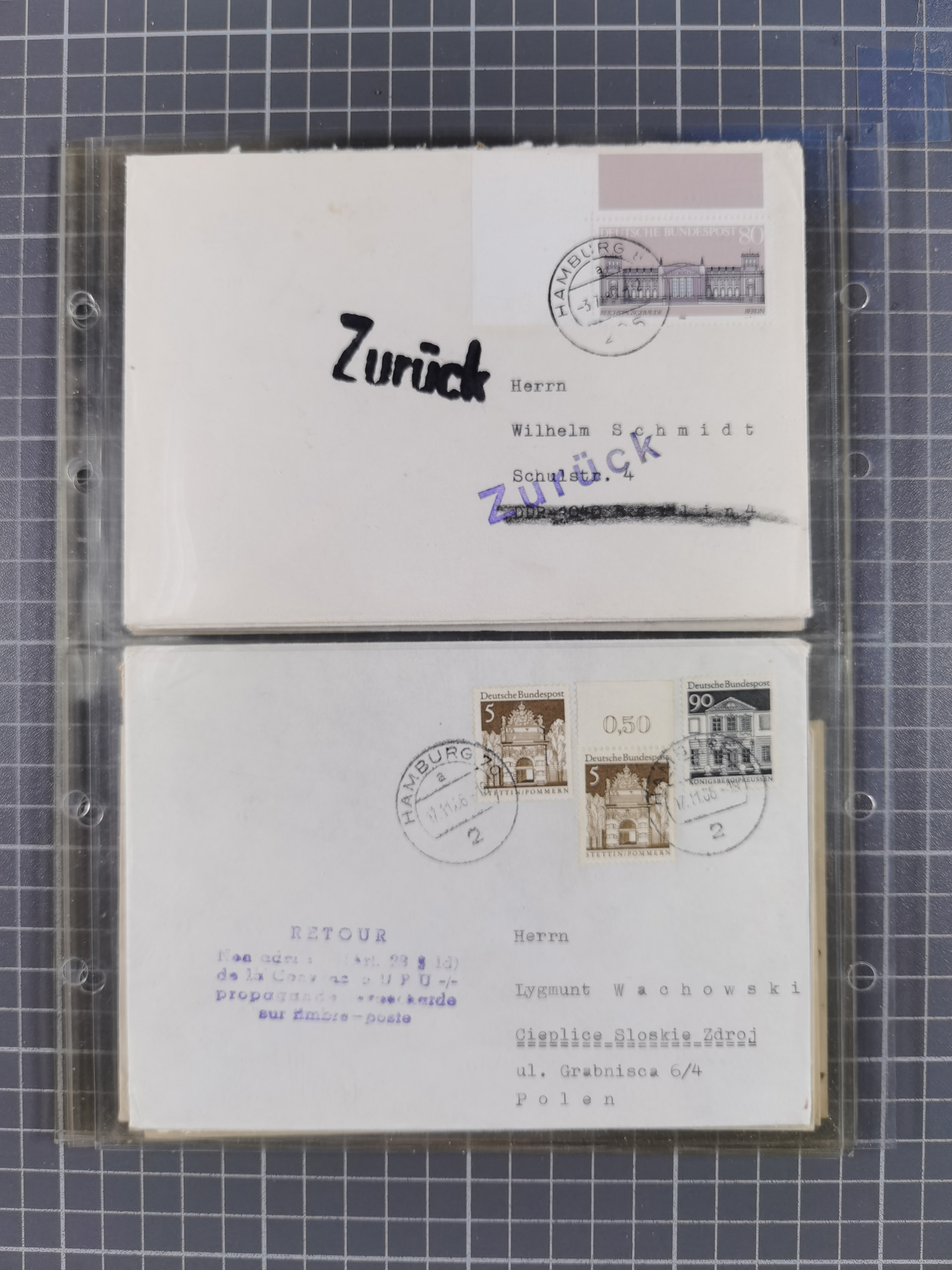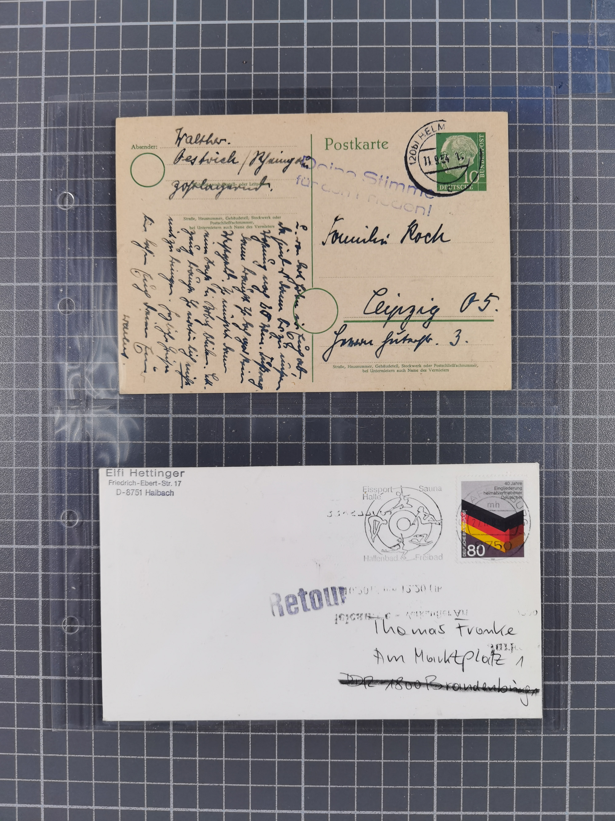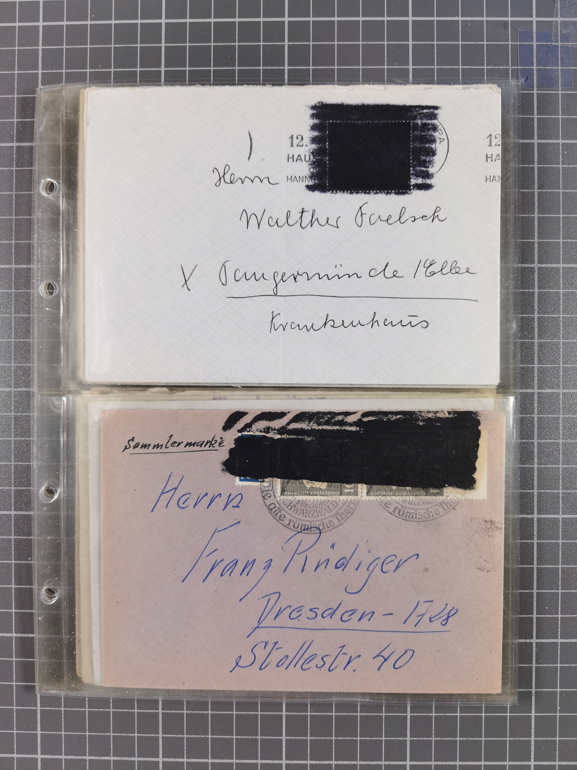 1962/64, Propaganda „Kalter Krieg", Sammlung von 277 Briefen, alle mit Propaganda-Vignetten versehen („Kampf um Wiedervereinigung". 17. Juni", „Die Mauer überwinden", Brücken bauen! Per Post oder Paket". „Wir lassen uns nicht trennen". 3 geteilt niemals!" usw. Alle Vignetten befinden sich auf Bedarfsbriefen und sind postalisch zusammen mit der Normalfrankatur abgestempelt, dabei auch 43 Luftpostbriefe, selten angeboten. Dazu noch 48 Belege Postkrieg".