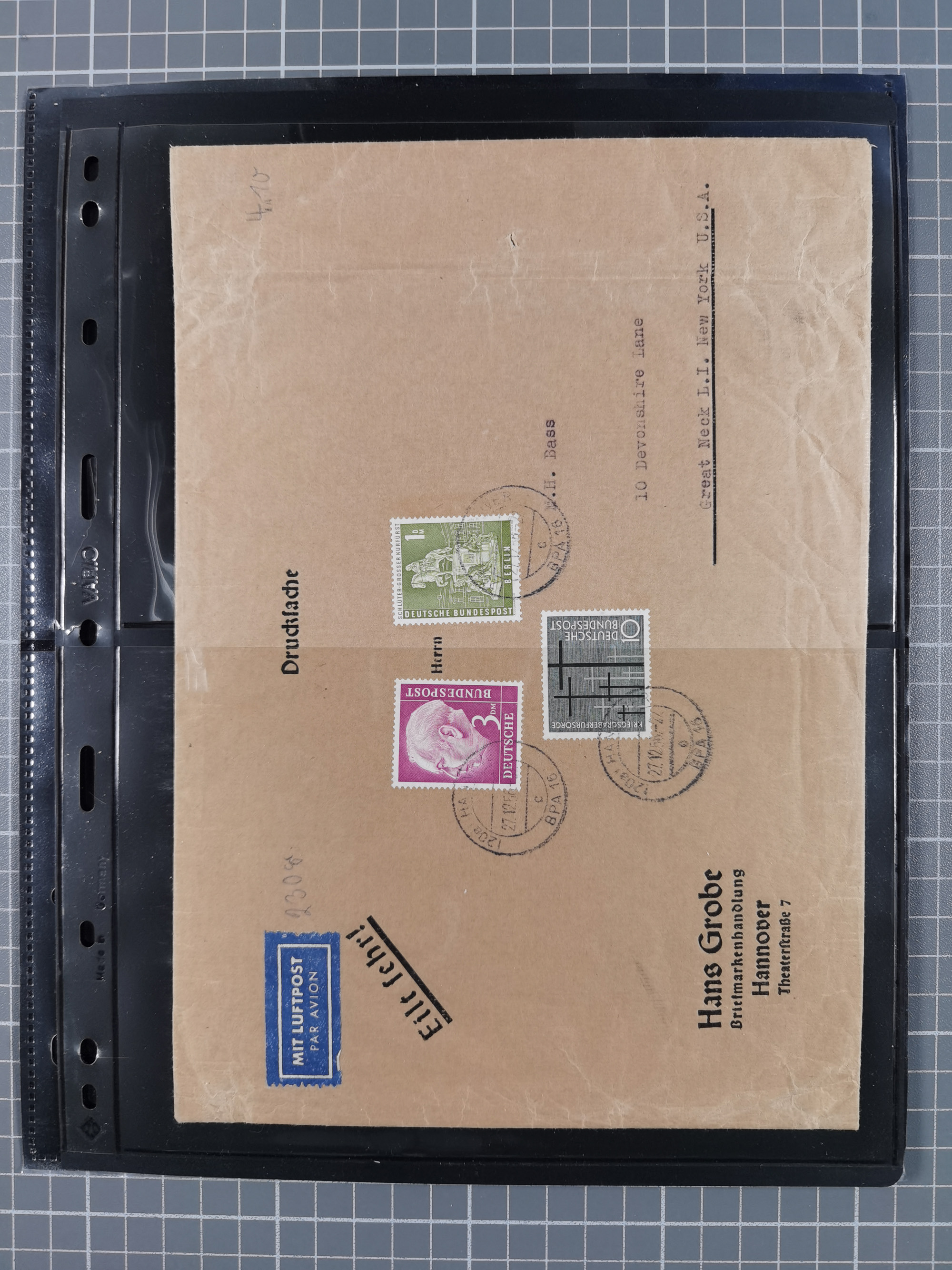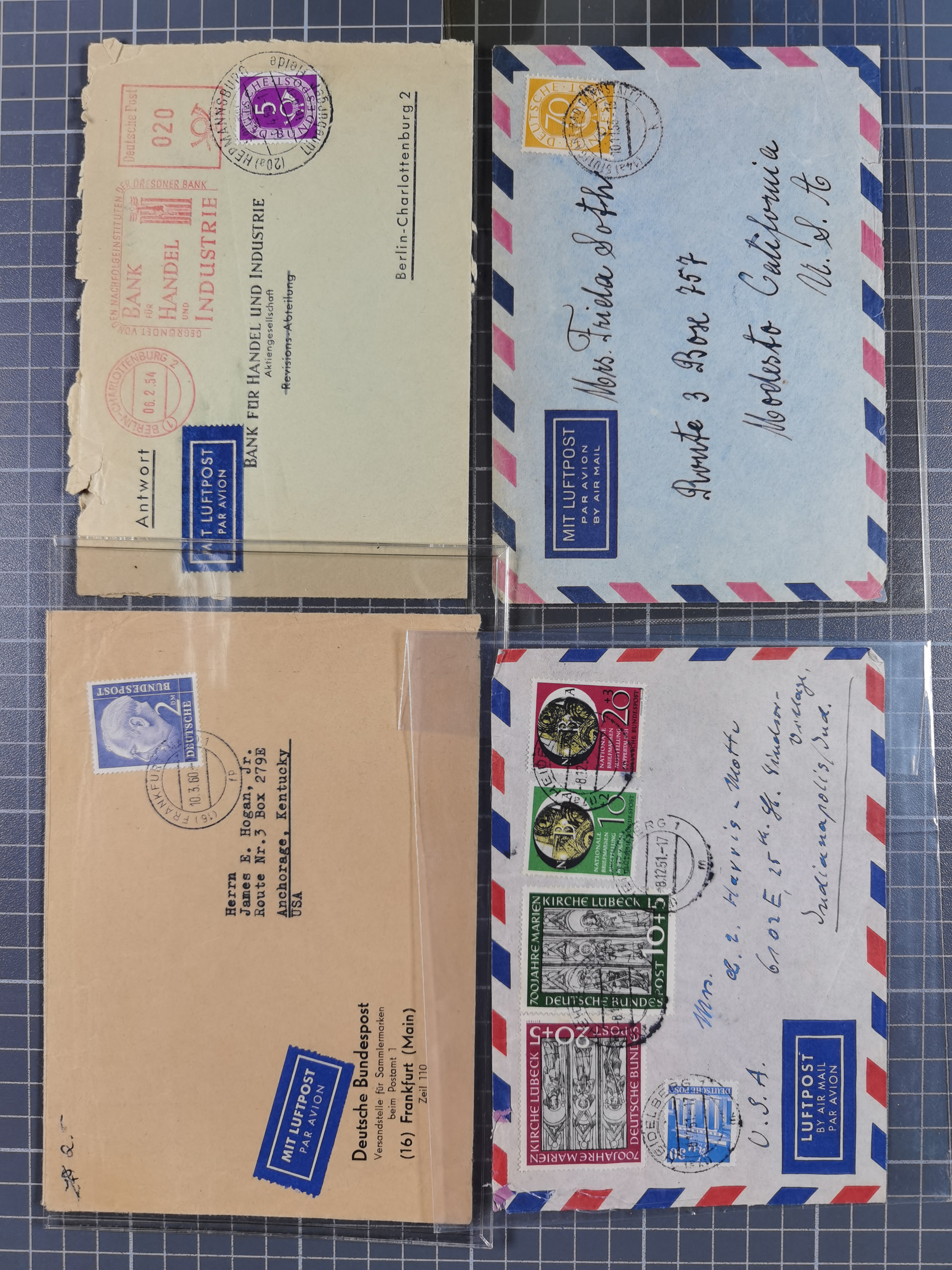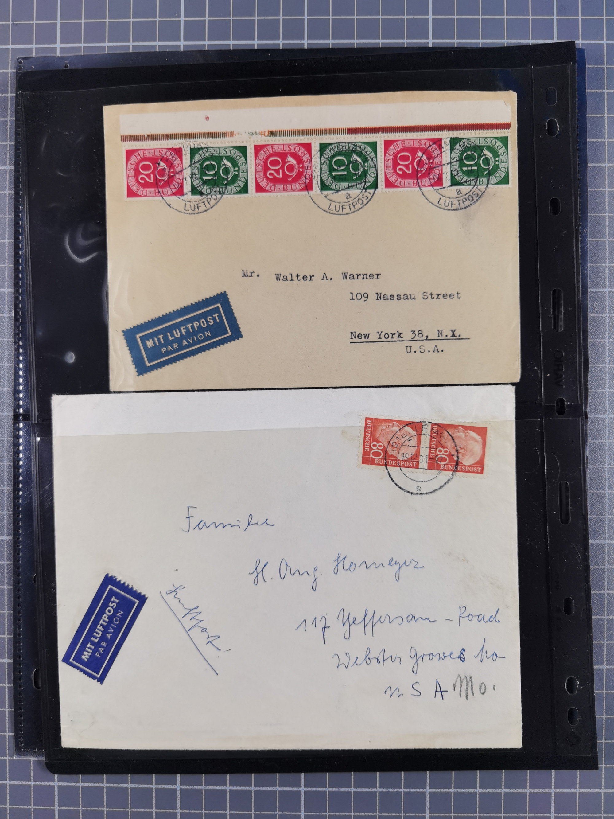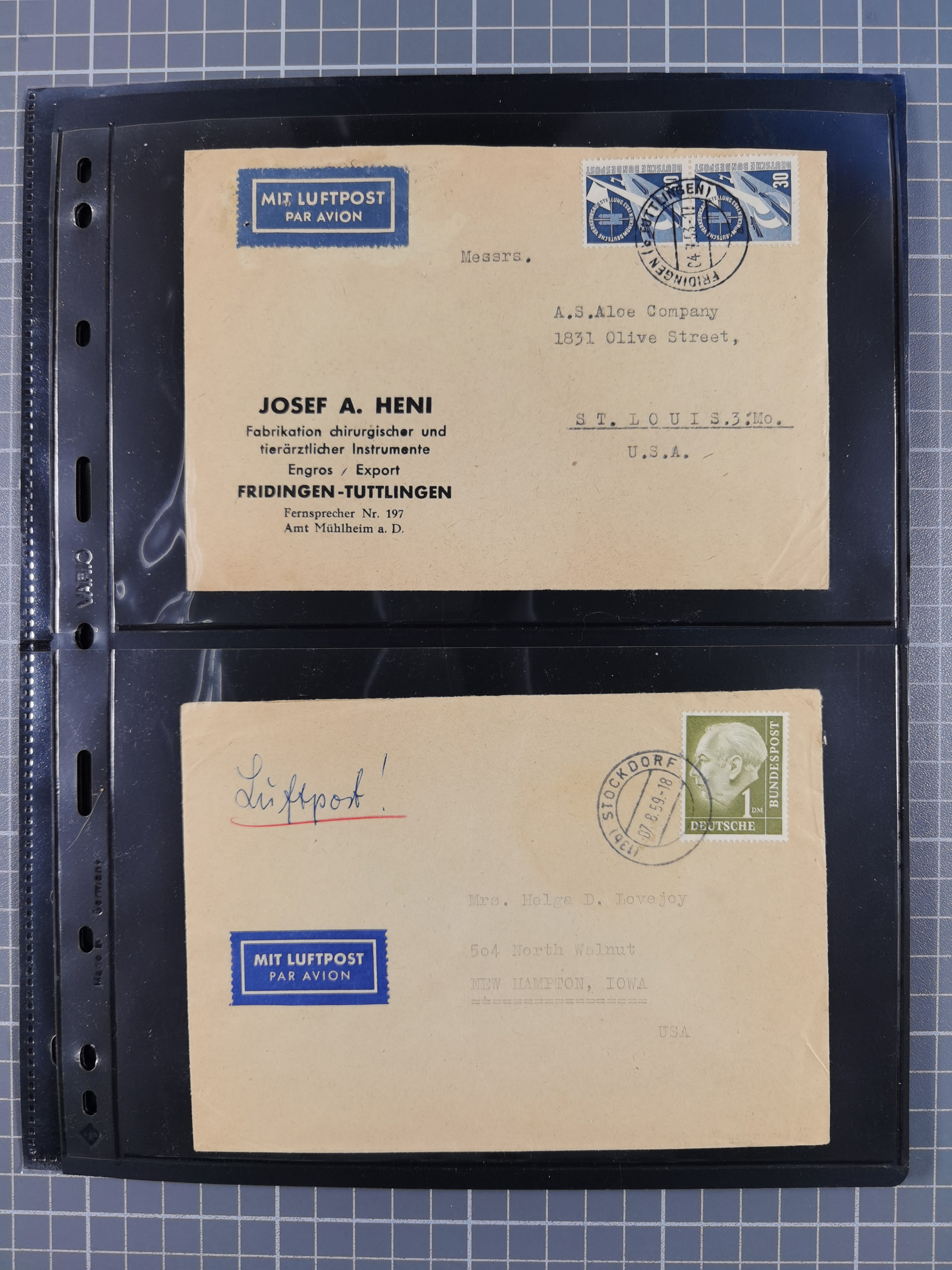 1949/94, fast 40 Briefe und Karten mit Schwerpunkt bei den Posthorn- und Heuss-Frankaturen. Dabei interessante Luftpost-Frankaturen in die USA, R-Briefe und bessere Sondermarken-Frankaturen