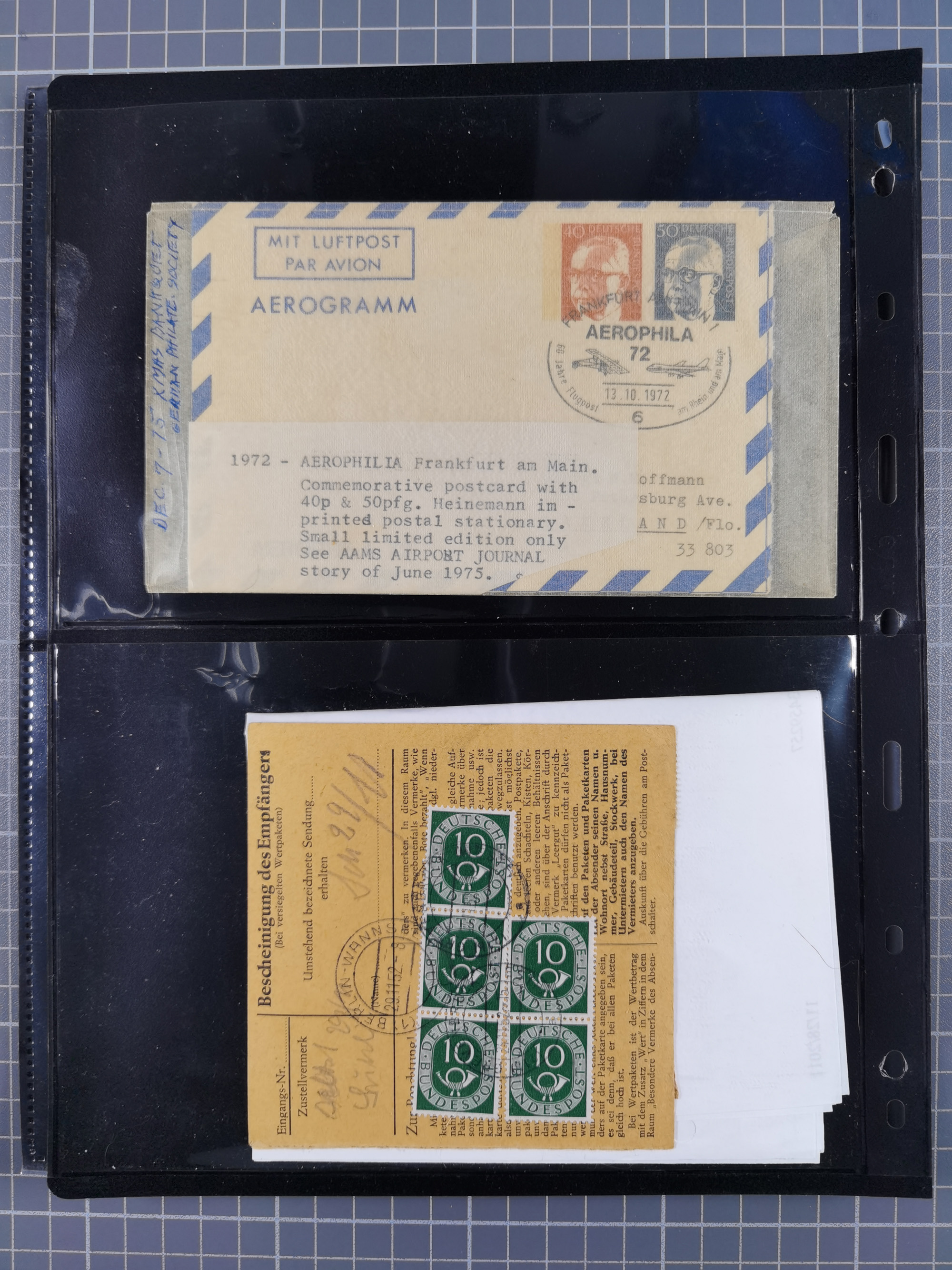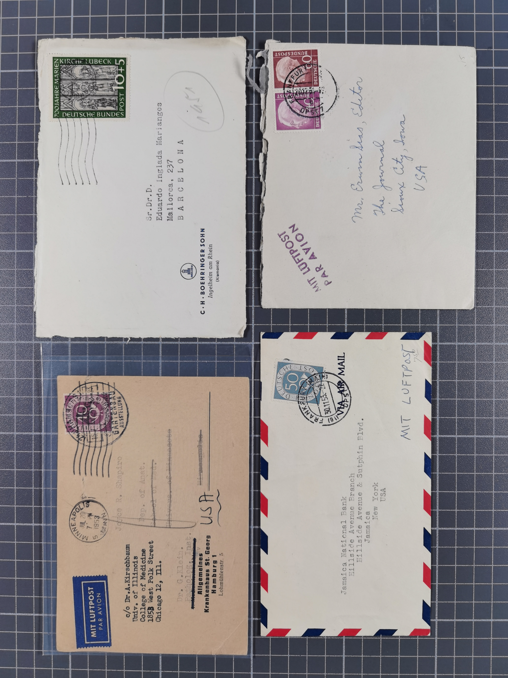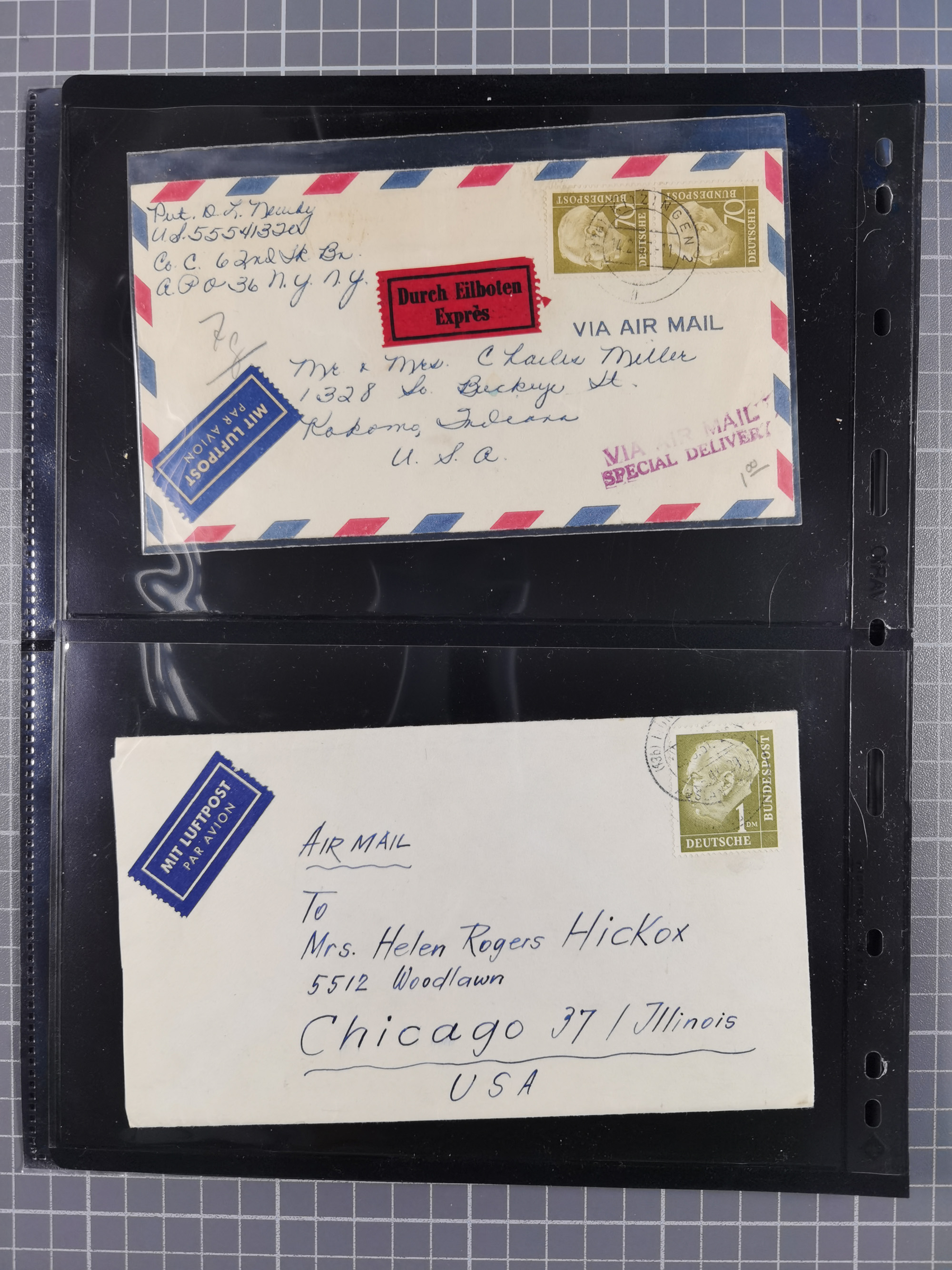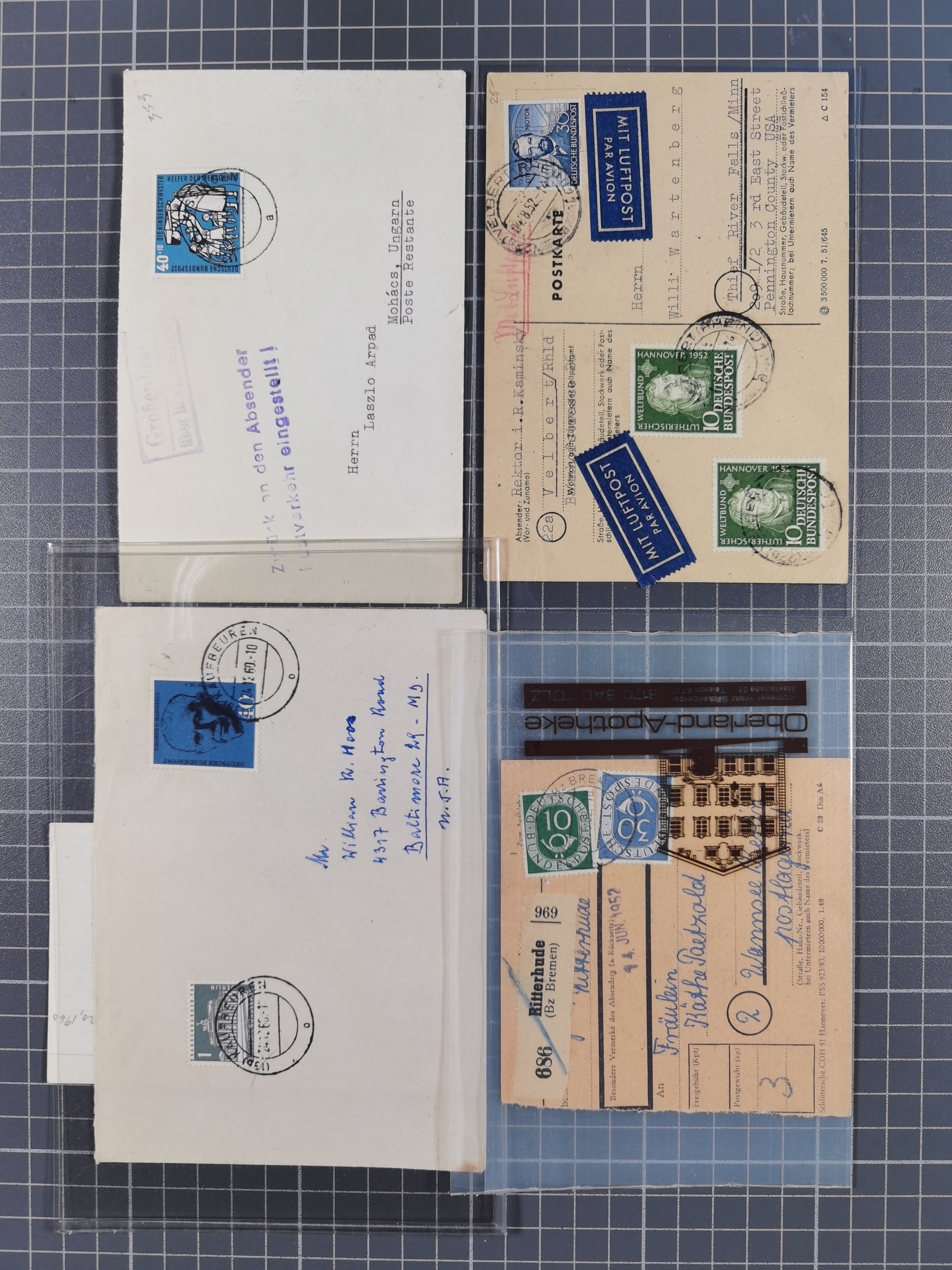 1949/94, fast 40 Briefe und Karten mit Schwerpunkt bei den Posthorn- und Heuss-Frankaturen. Dabei interessante Luftpost-Frankaturen in die USA, R-Briefe und bessere Sondermarken-Frankaturen