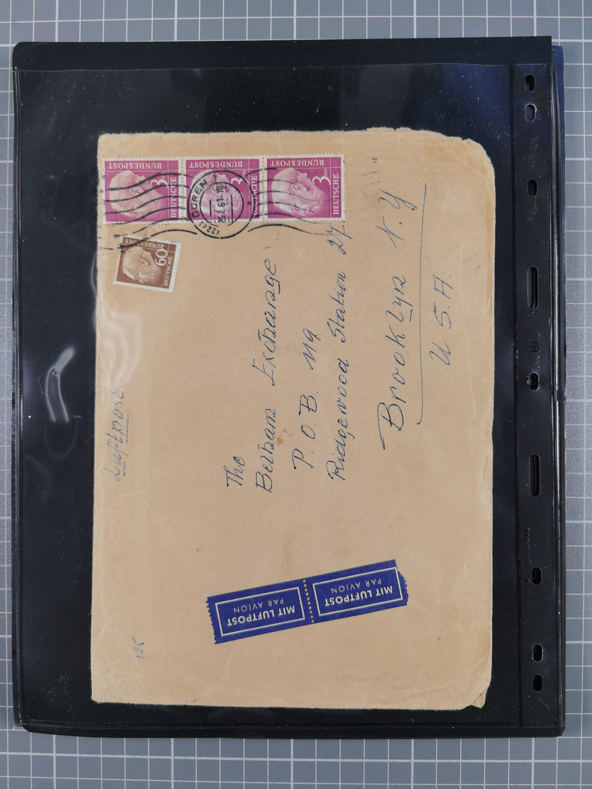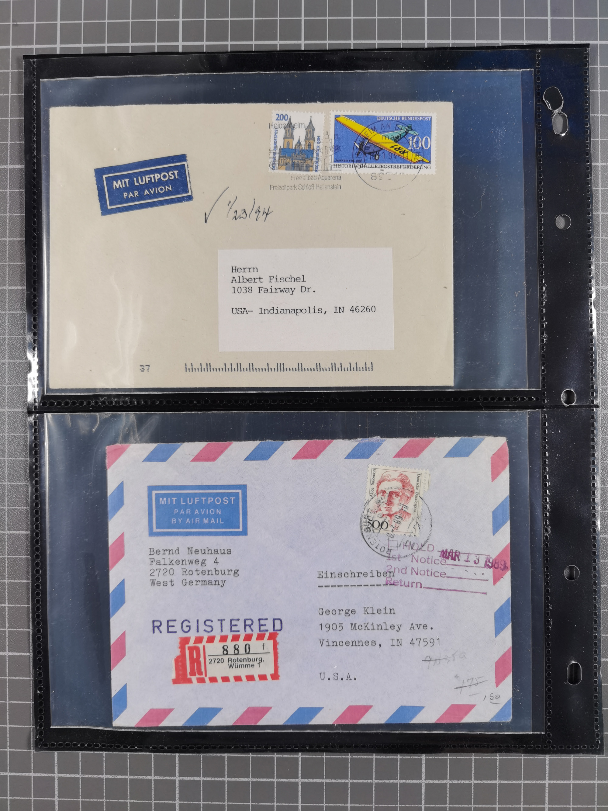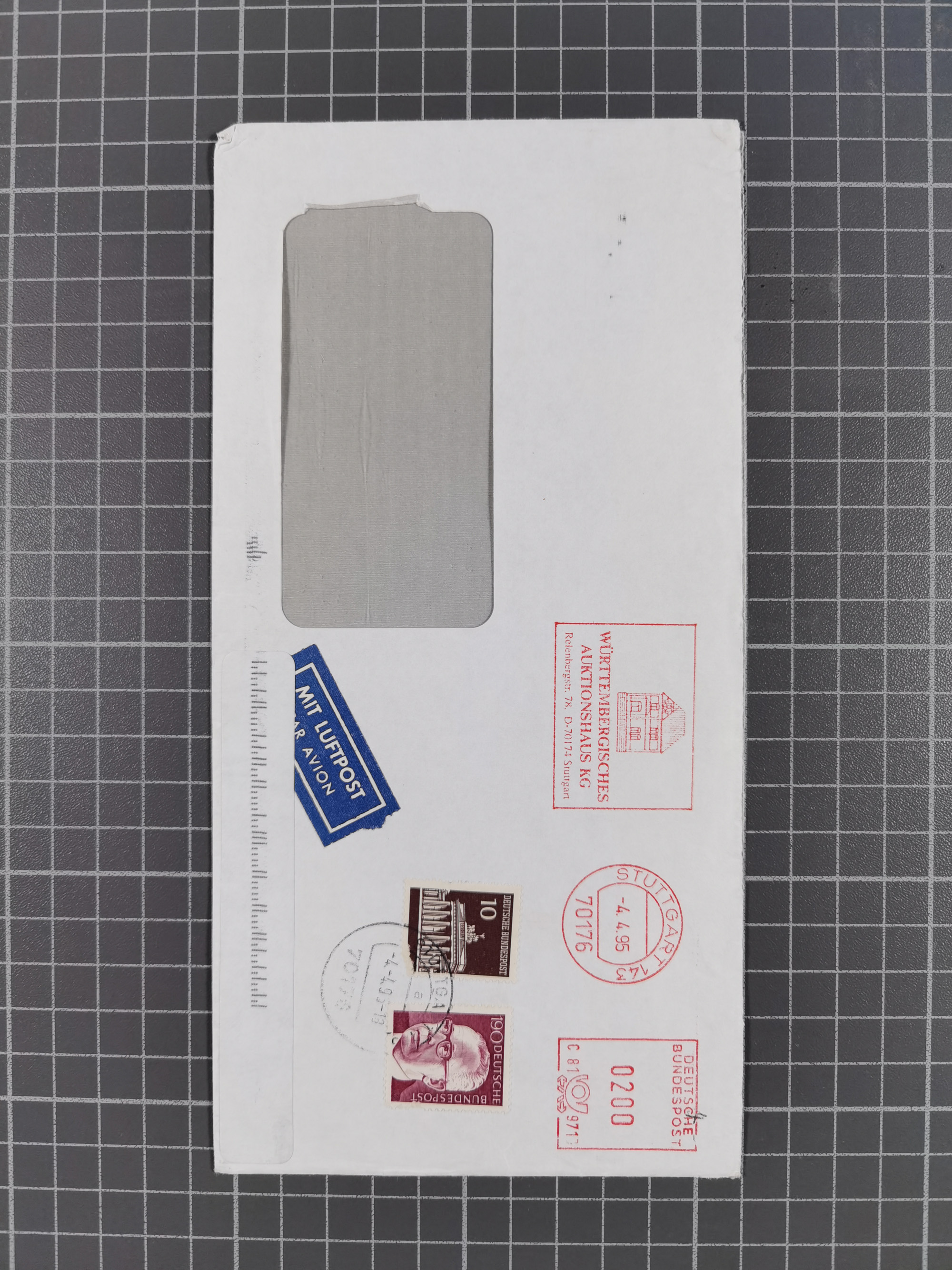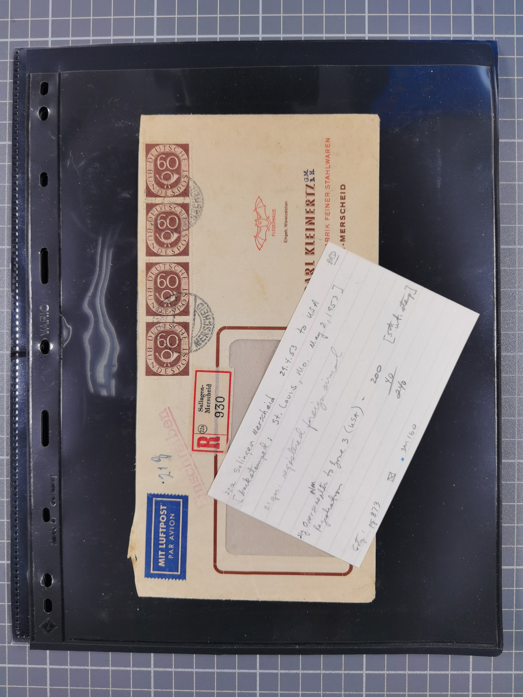 1949/94, fast 40 Briefe und Karten mit Schwerpunkt bei den Posthorn- und Heuss-Frankaturen. Dabei interessante Luftpost-Frankaturen in die USA, R-Briefe und bessere Sondermarken-Frankaturen