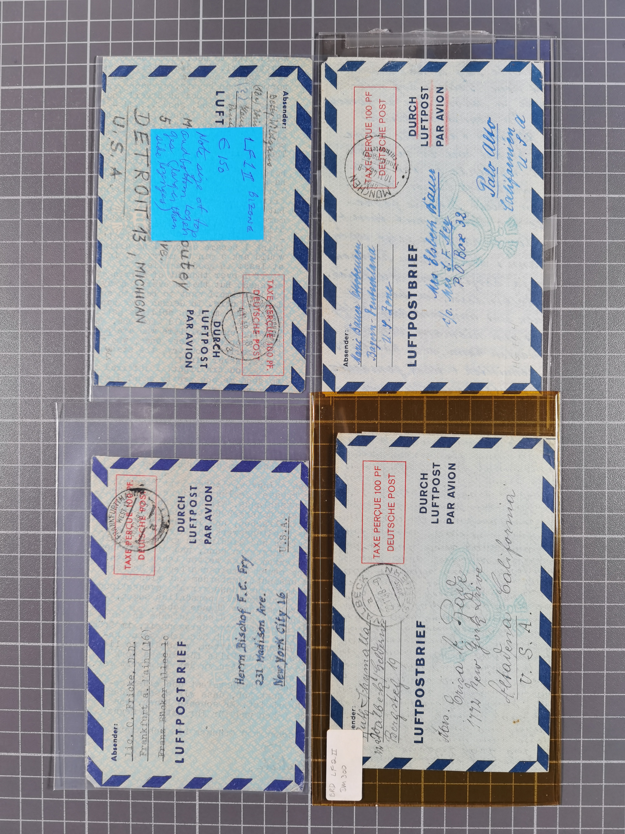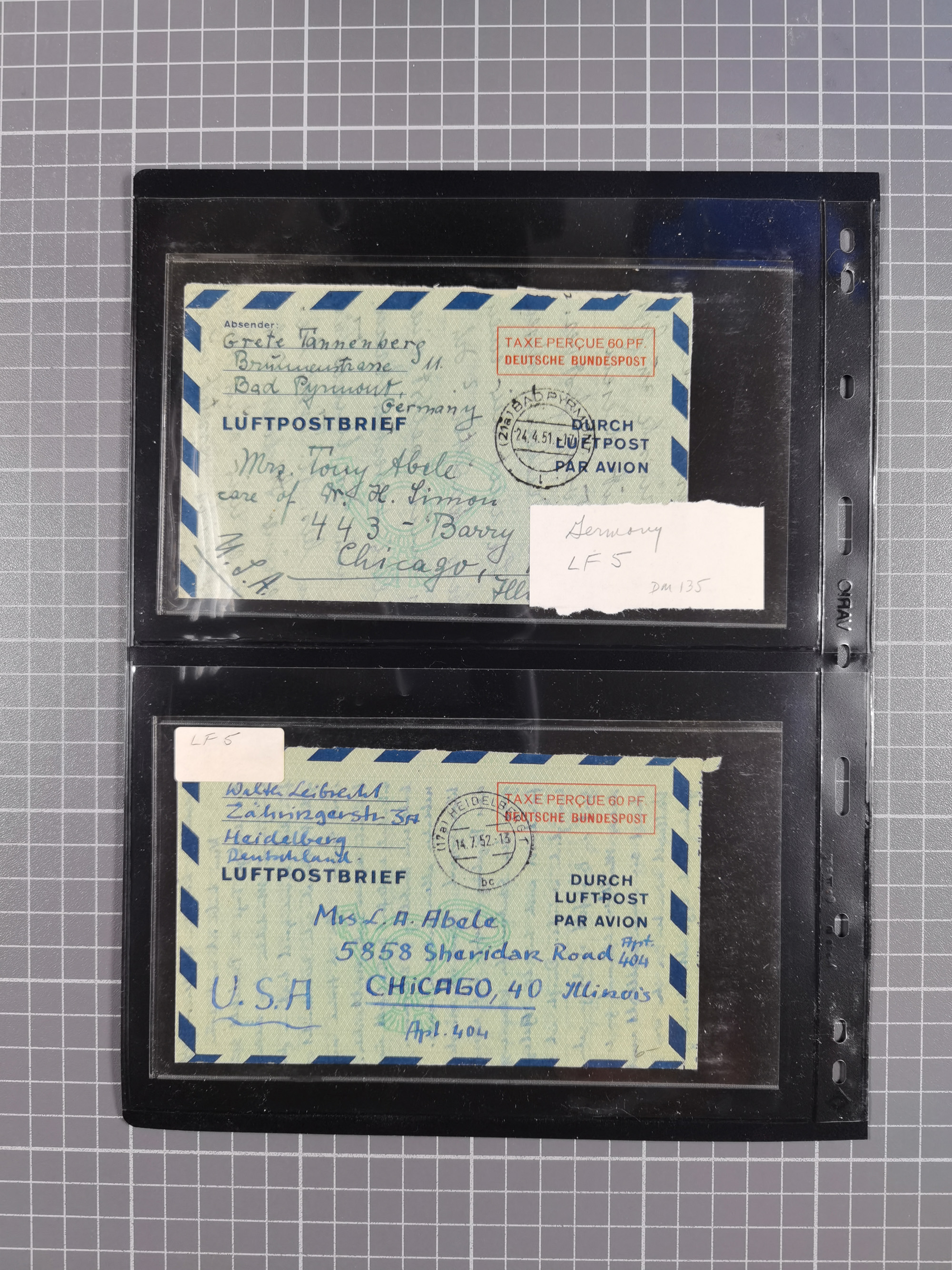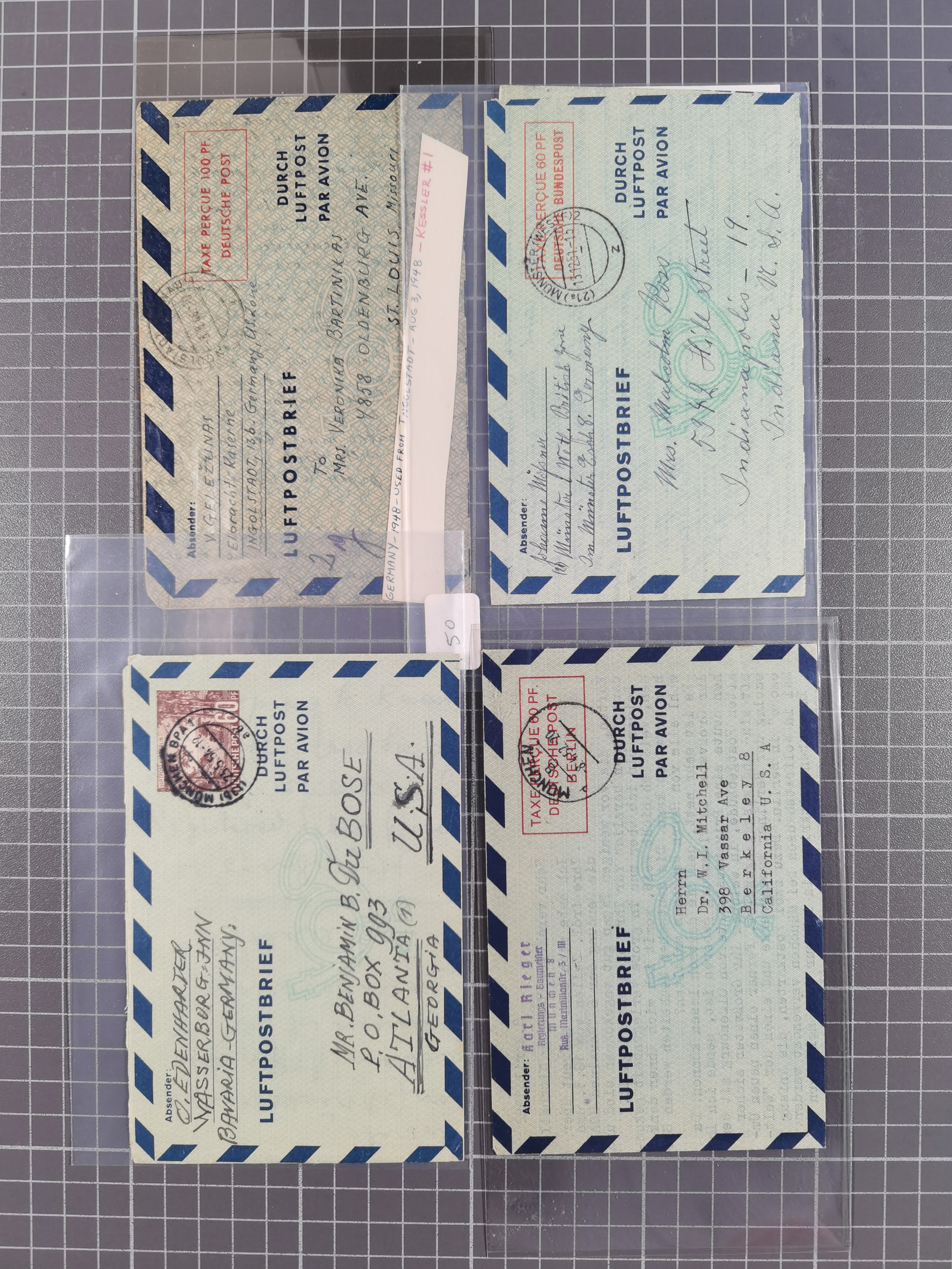 Ganzsachen: 1948/54, über 30 Luftpostleichtbriefe mit vielen Exemplaren gebraucht aus dem Bedarf, dabei u.a. Bund mit 10x Mi.-Nr. LF1 und 2 gebraucht und Berlin mit 4x Mi.-Nr. 1, meist in guter Erhaltung