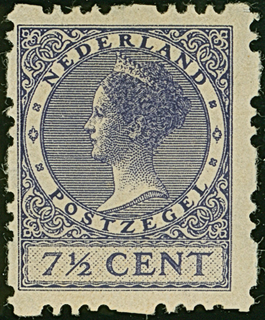 1926/39, Queen Wilhelmina 7½ c. violet with three-hole trial perforation (Driegaats), mint never hinged, very fine. ProFi has not registered any other copies in mint never hinged condition, extremly rare, unsigned with certificate Muis (2006)