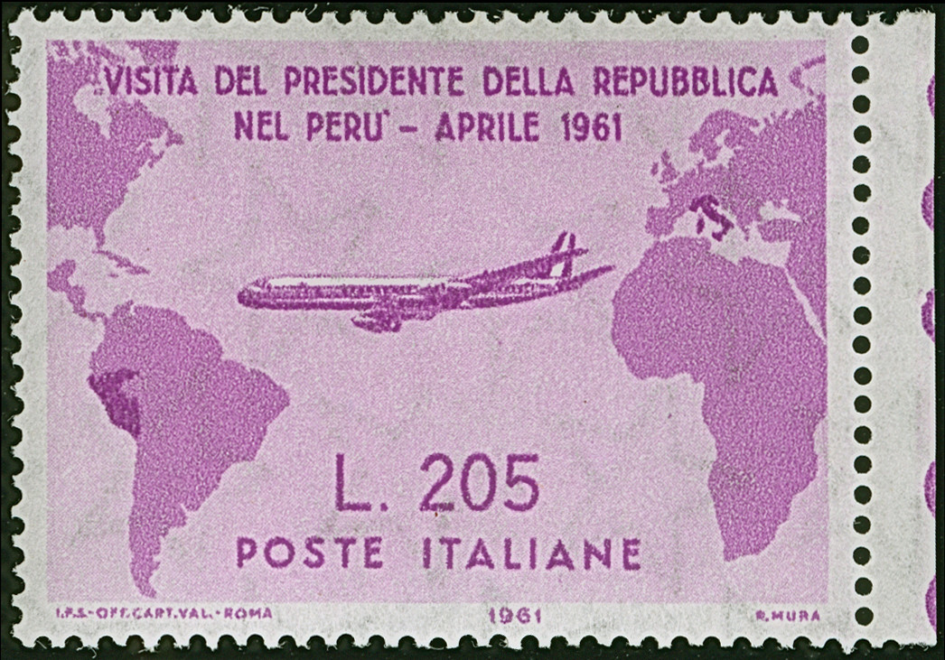 1961, Gronchi Flight 205 l. rose lilac, fresh colours, unmounted mint, very fine and scarce, signed Calves