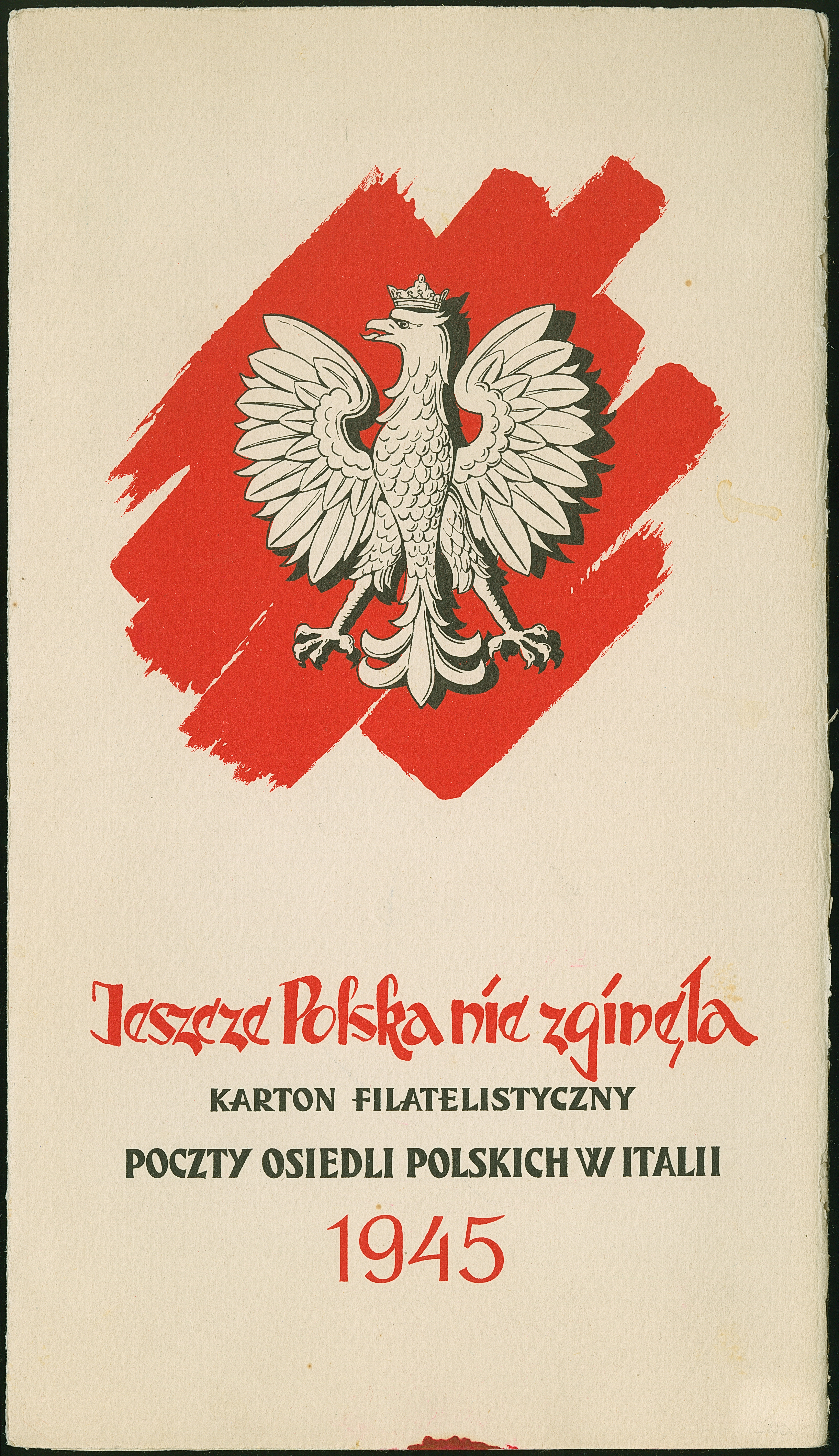 1945, special presentation folder 'Corpo Polacco' with Polish Eagle and opening lines of the national anthem on front cover, with stamps and all three souvenir sheets inside adhered to ten numbered pages, with text in Polish, French, English and Italian, very fine, only 2,000 printed in Rome and presented to various diplomats and officials.